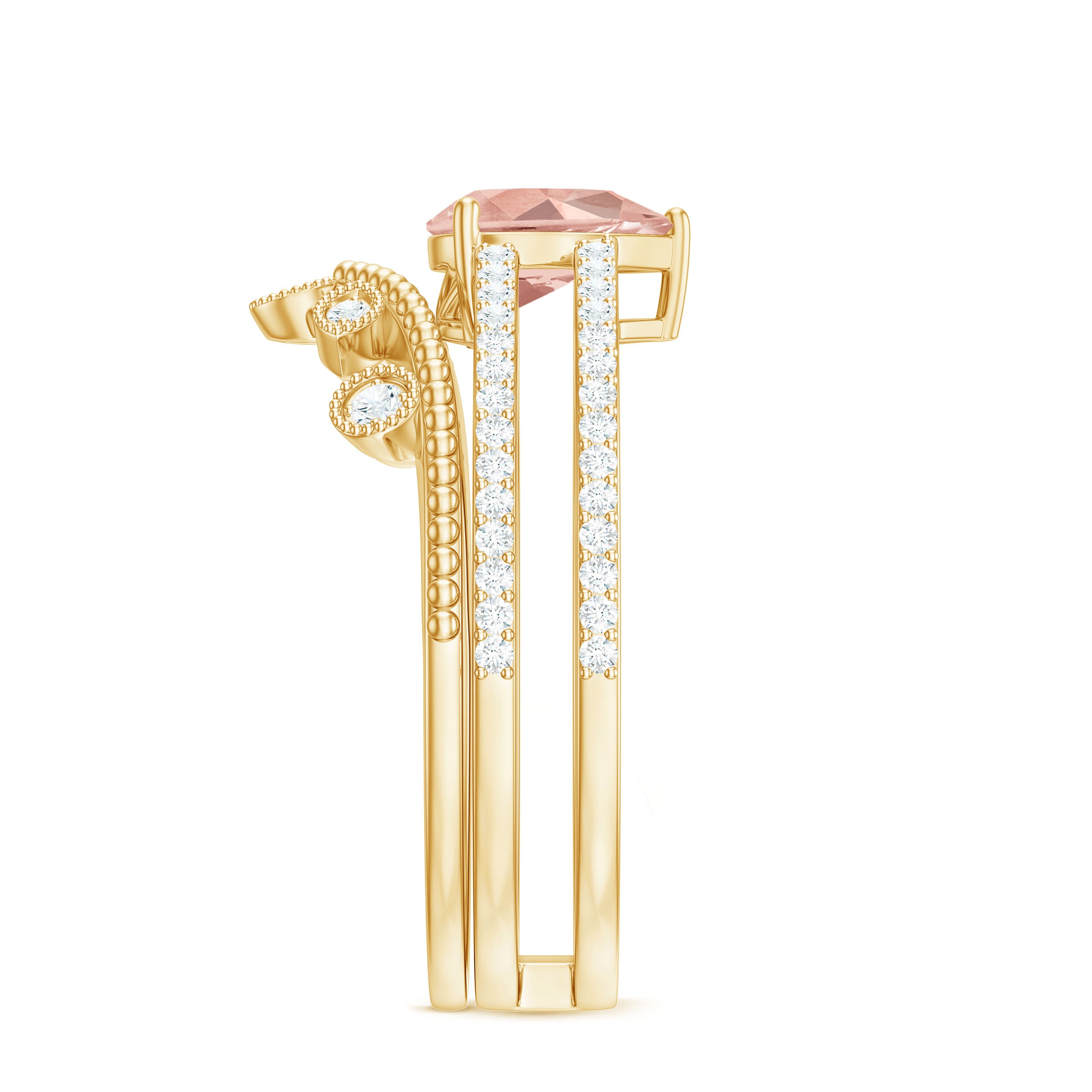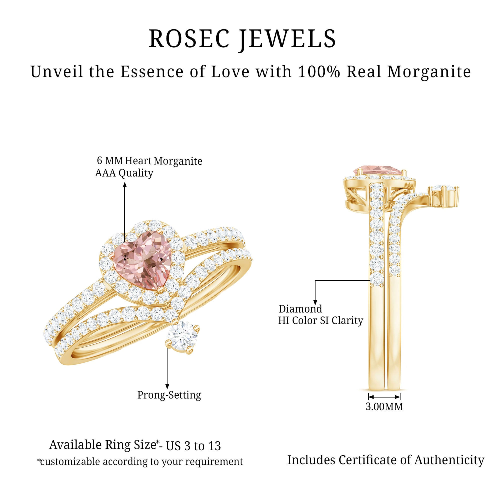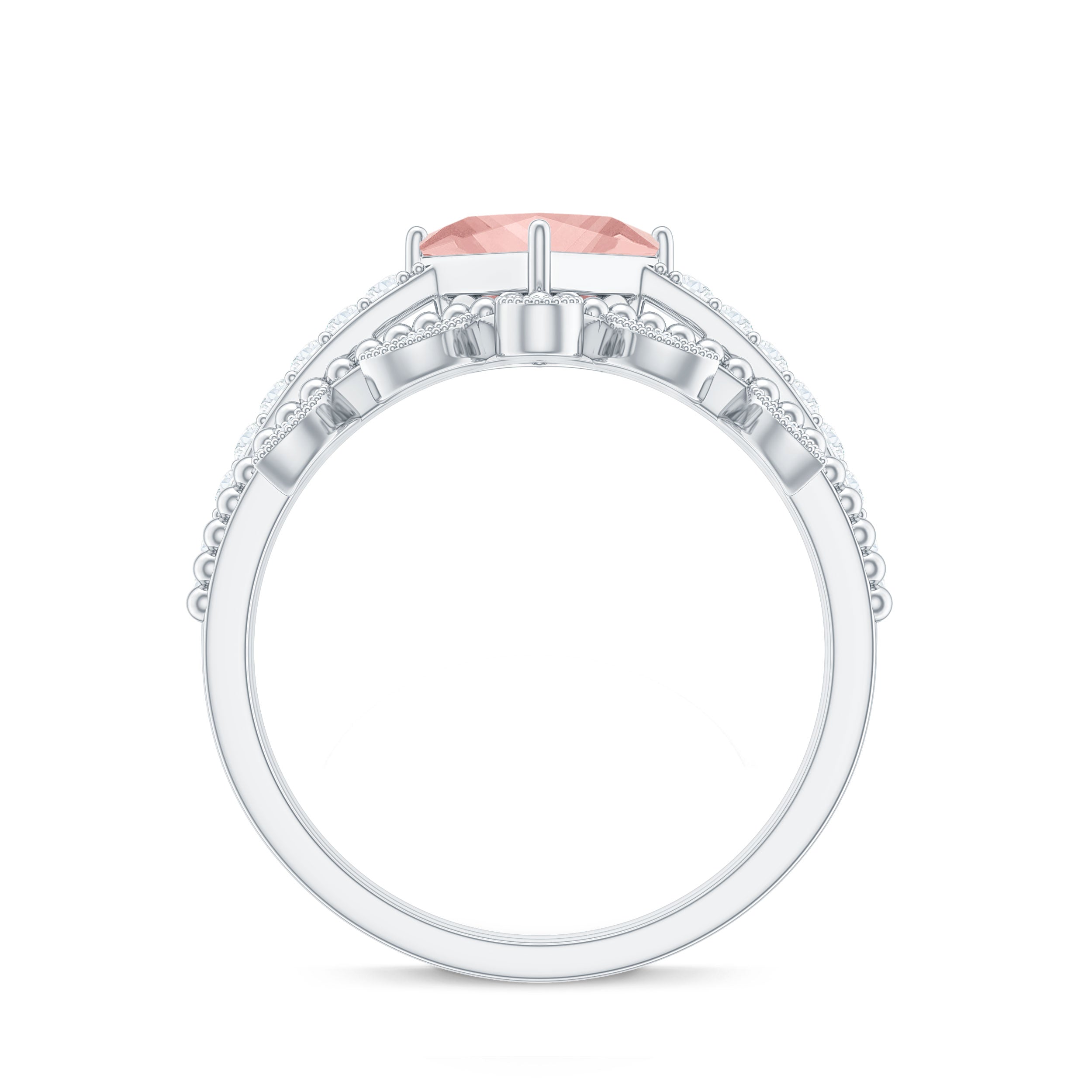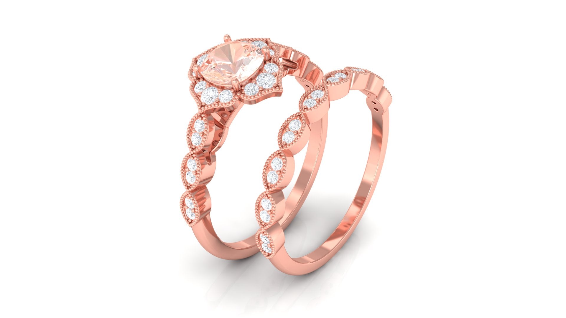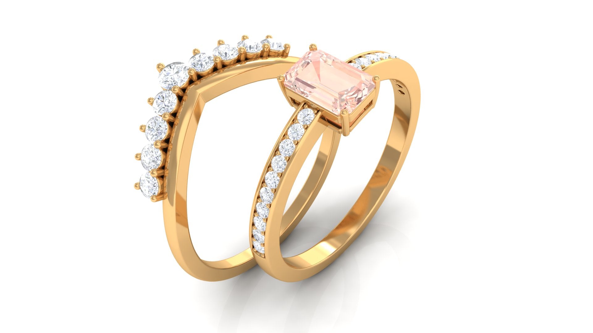 The delicate and romantic pink saturation of morganites enable our craftsmen to combine them with different colors of gold further helping us to curate fantastic morganite wedding band in white gold, yellow gold and rose gold. The great diversity in our engagement and wedding ring collection is achieved by different morganite shapes, settings and metal embellishments. Therefore, Rosec Jewels’ alluring collection of morganite wedding rings will best appeal to the women with an eye for delicate details and romantic pink hues.