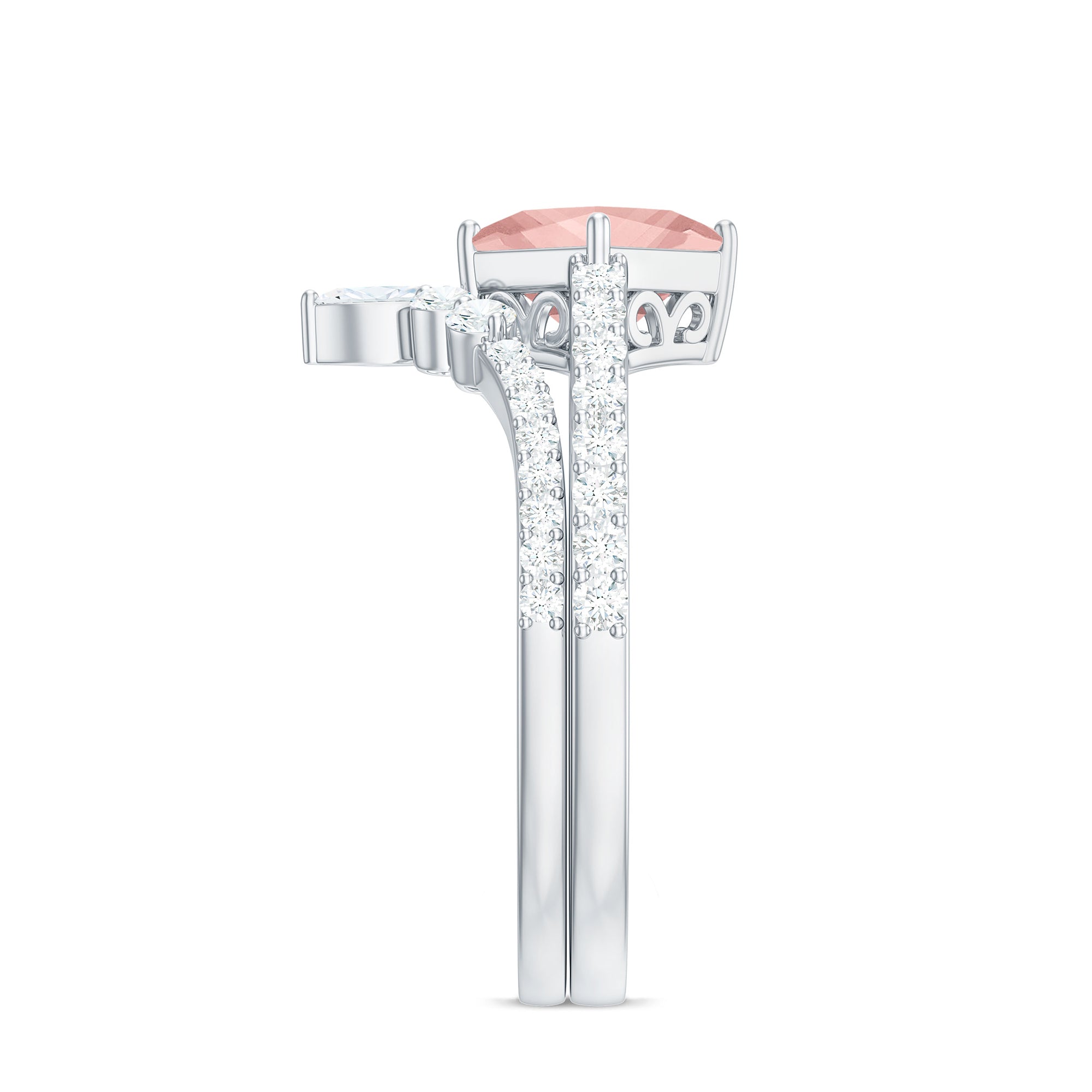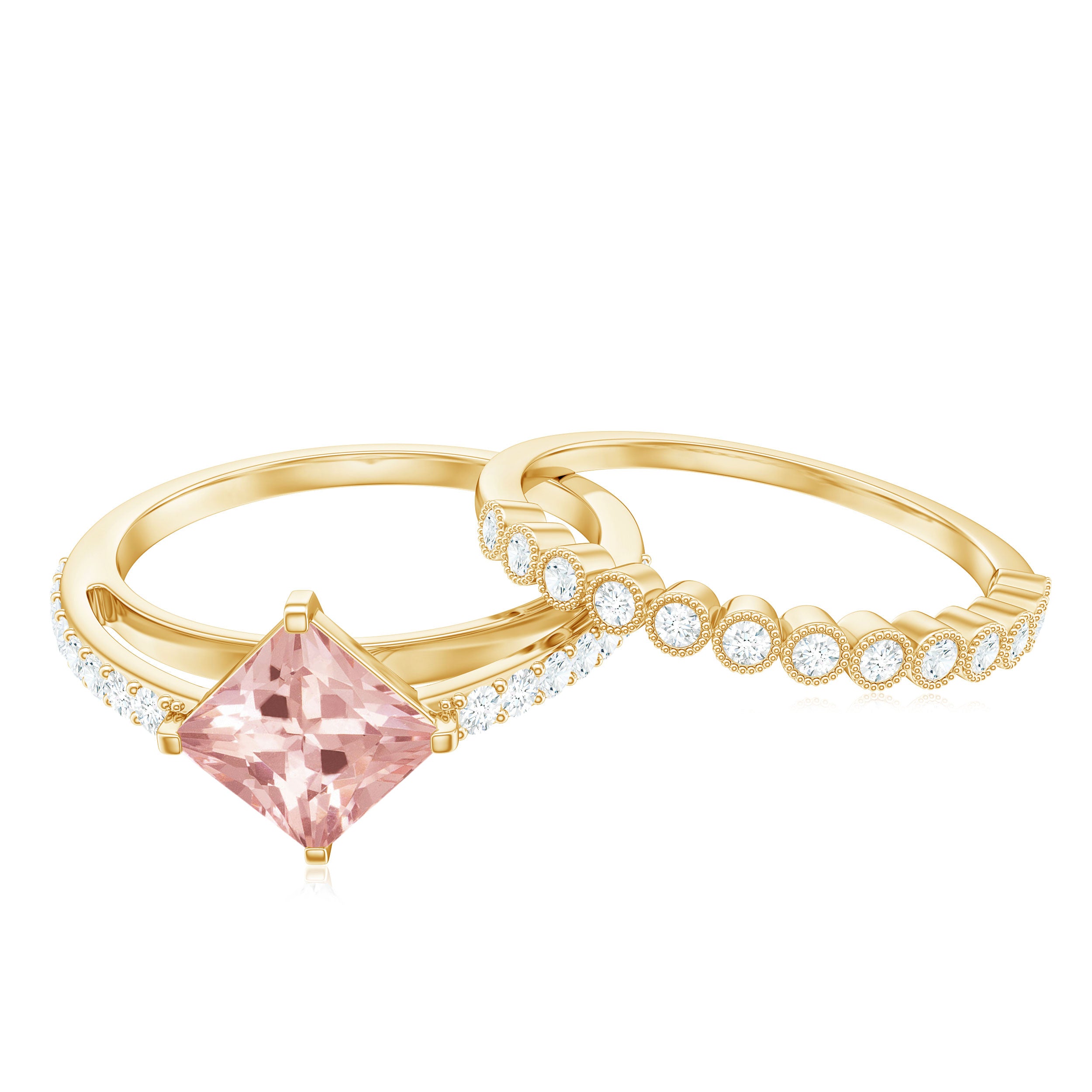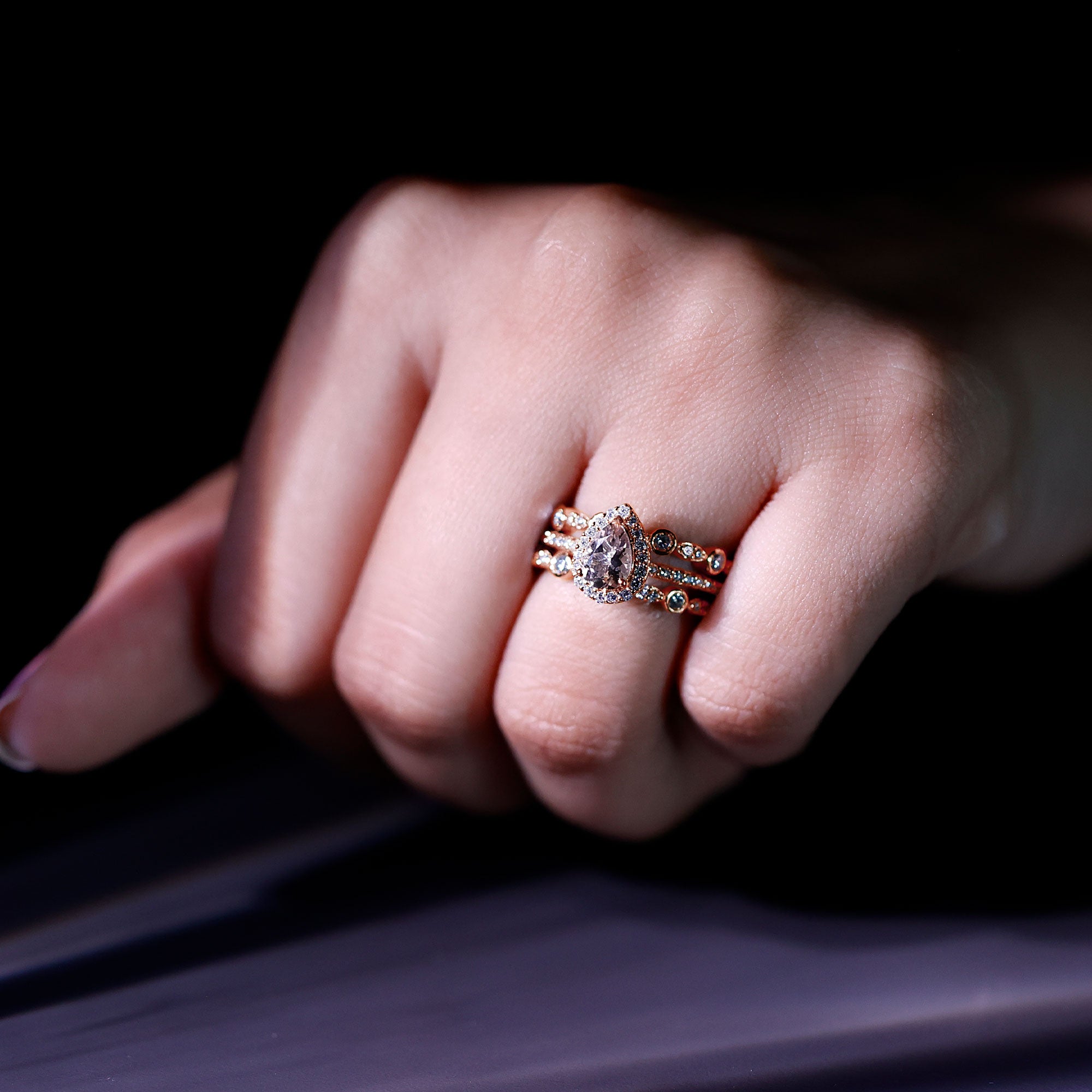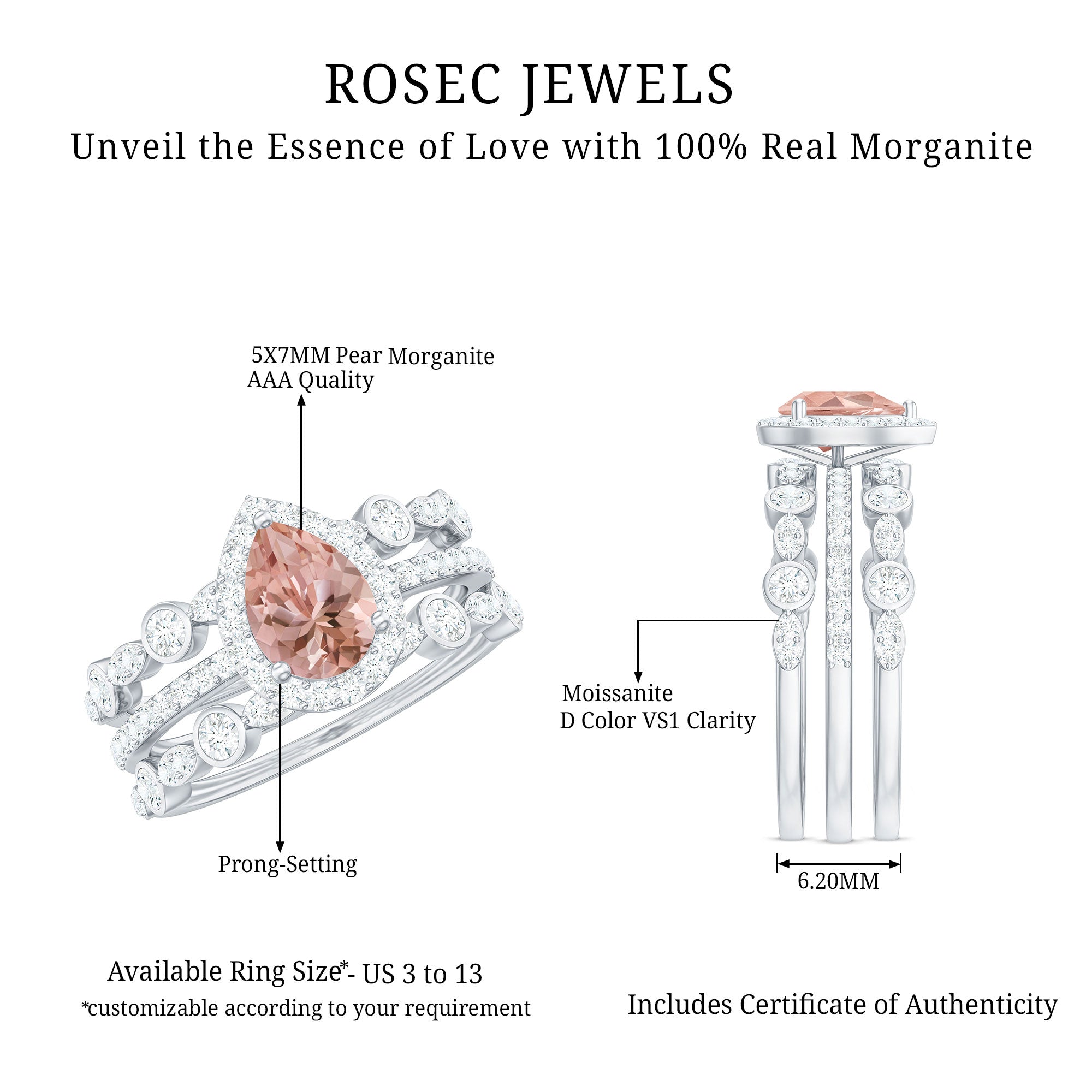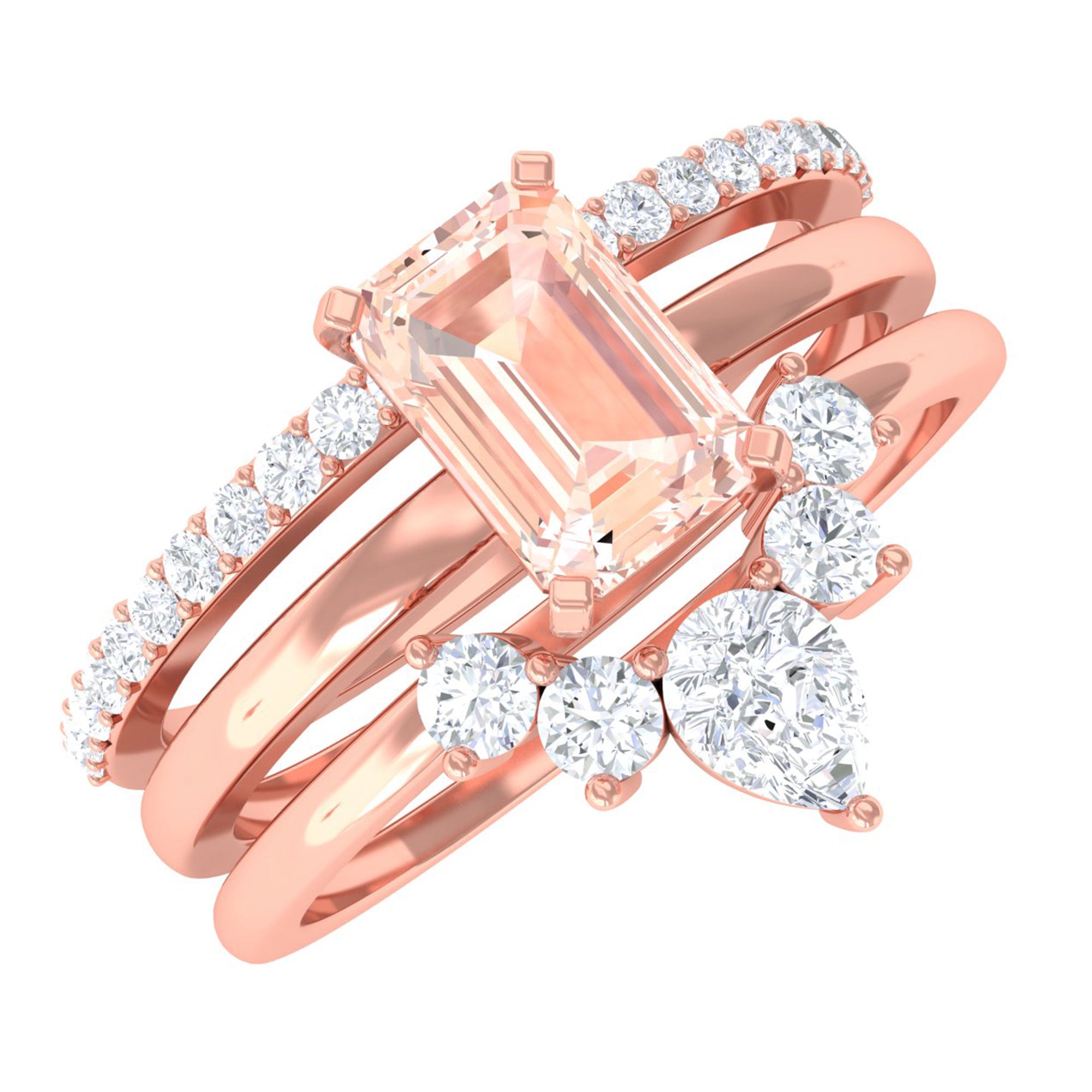 The delicate and romantic pink saturation of morganites enable our craftsmen to combine them with different colors of gold further helping us to curate fantastic morganite wedding band in white gold, yellow gold and rose gold. The great diversity in our engagement and wedding ring collection is achieved by different morganite shapes, settings and metal embellishments. Therefore, Rosec Jewels’ alluring collection of morganite wedding rings will best appeal to the women with an eye for delicate details and romantic pink hues.