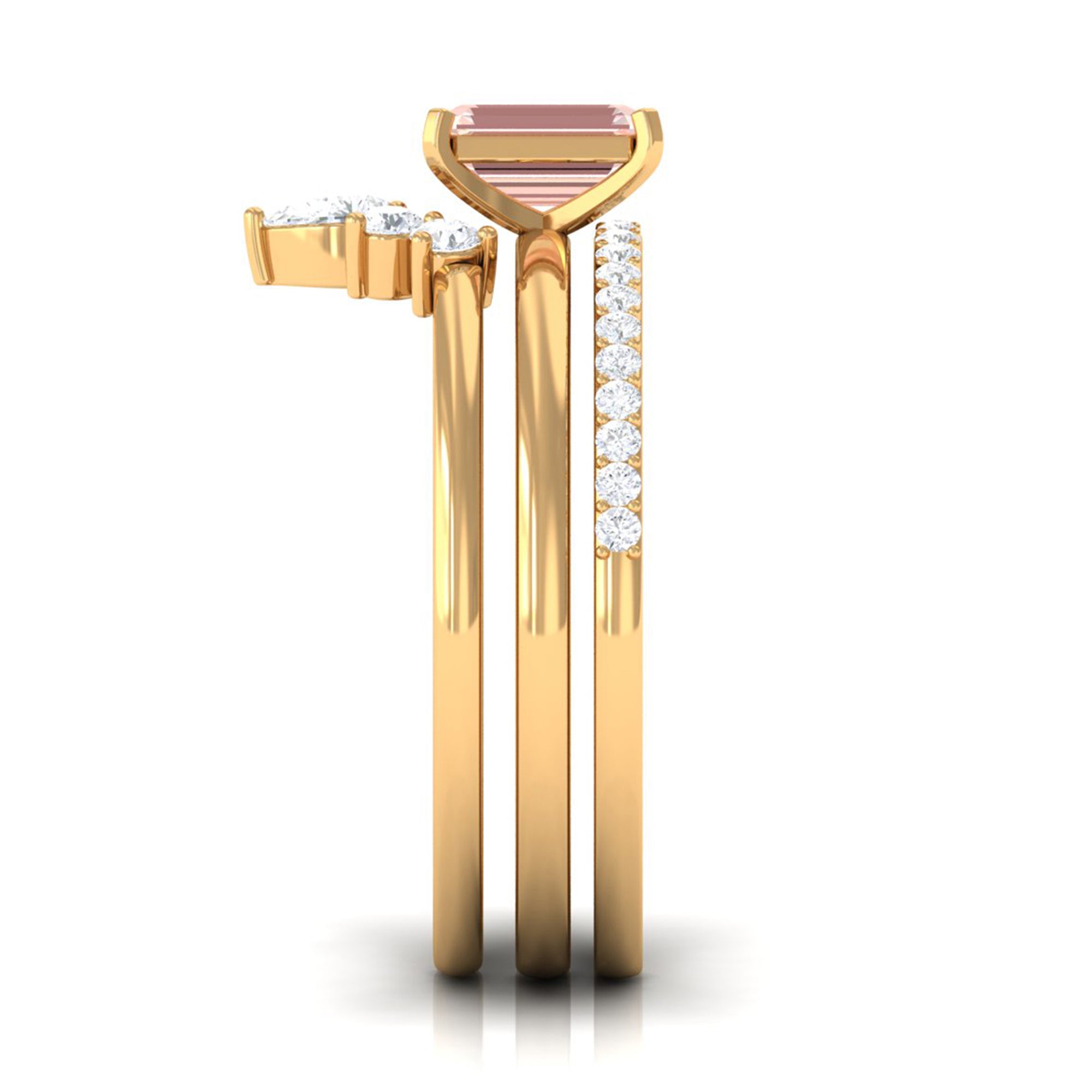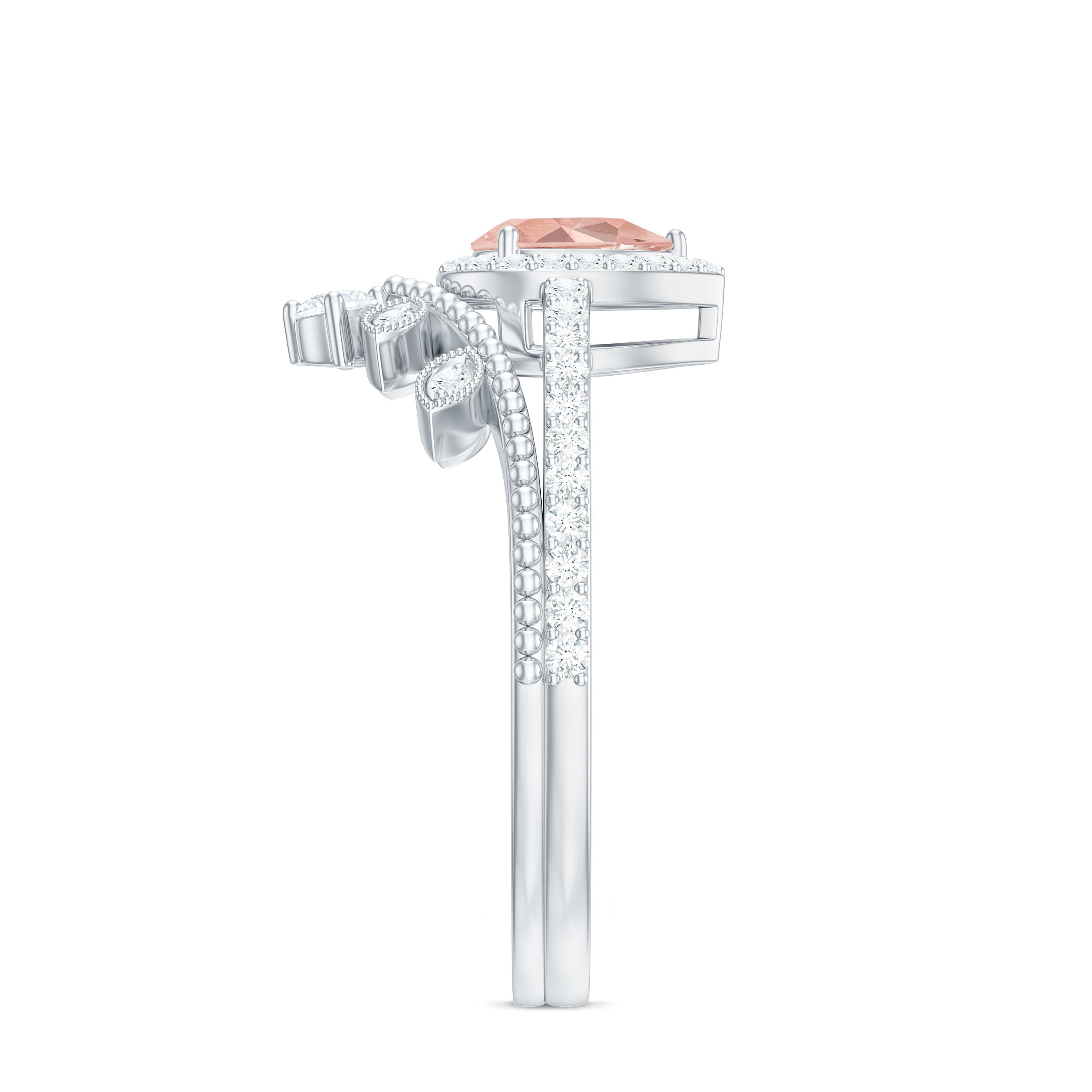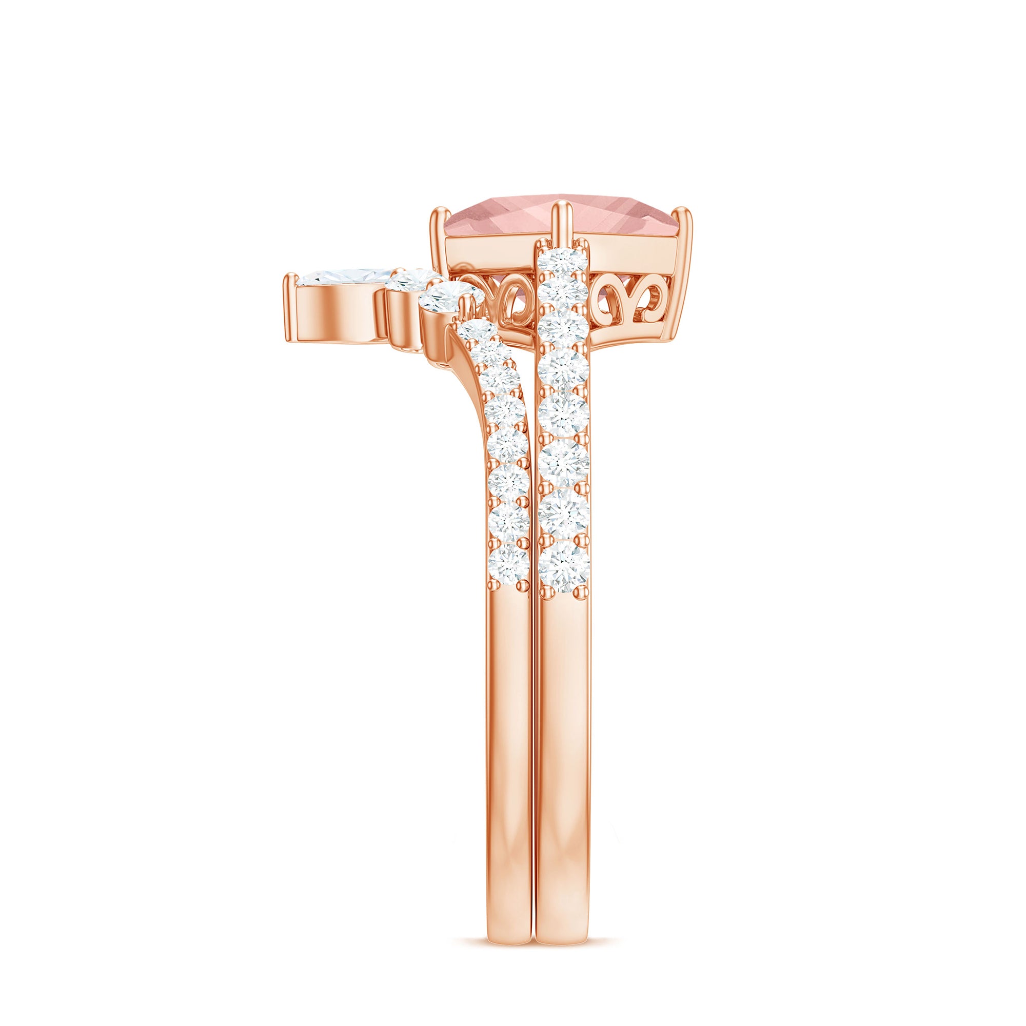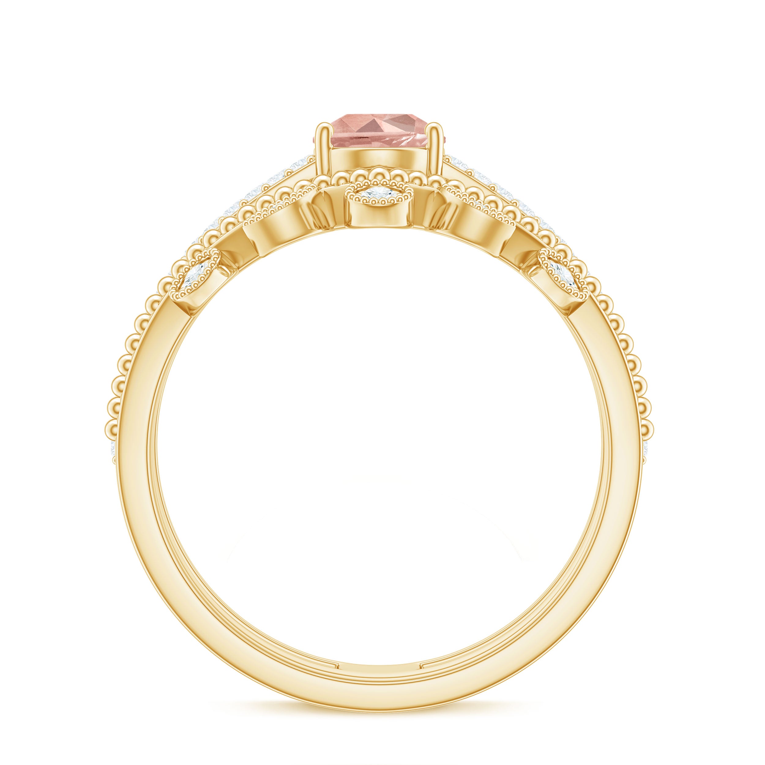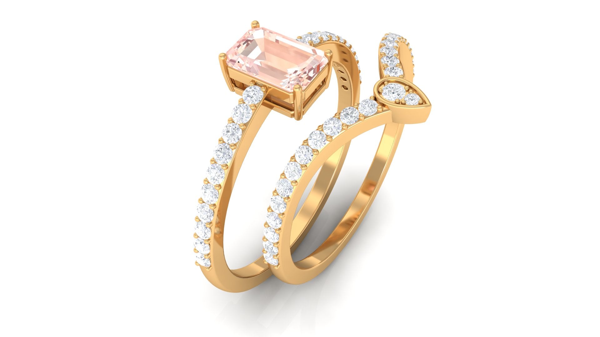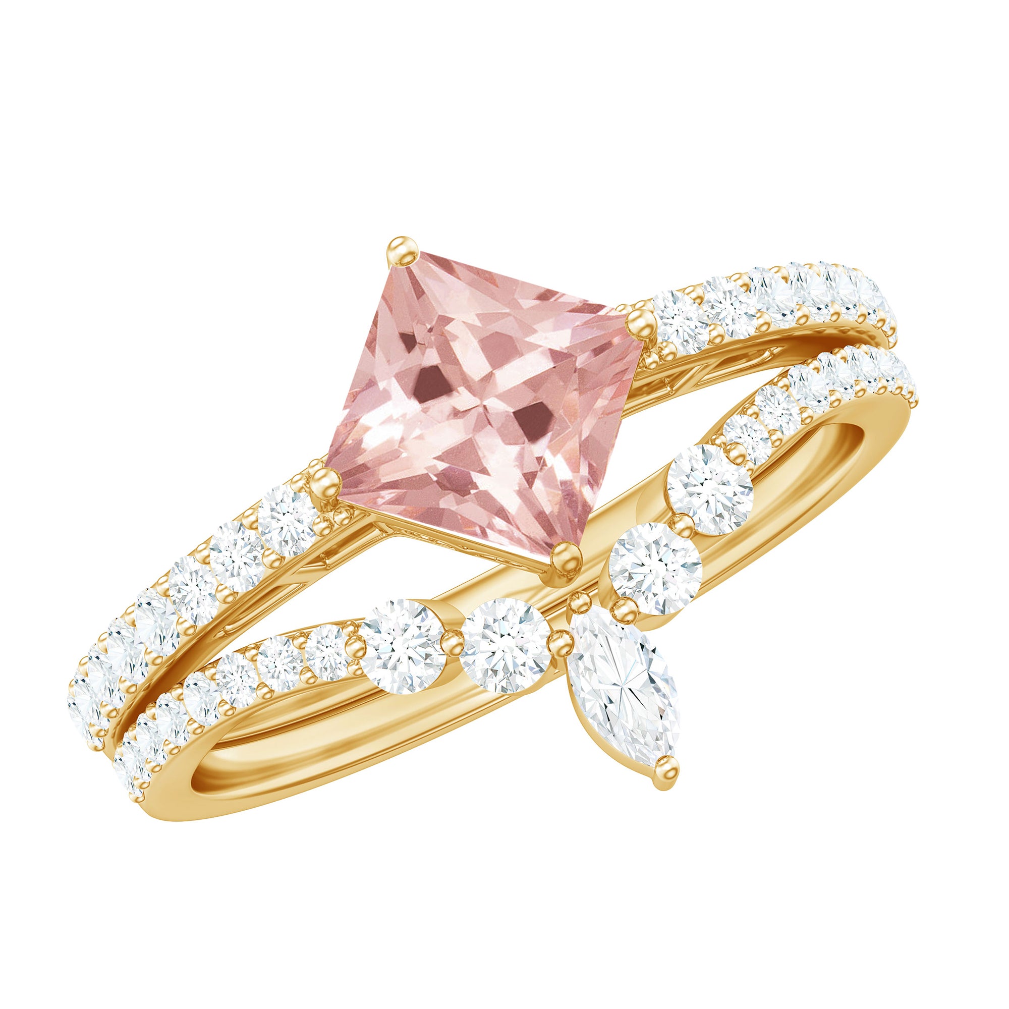 The delicate and romantic pink saturation of morganites enable our craftsmen to combine them with different colors of gold further helping us to curate fantastic morganite wedding band in white gold, yellow gold and rose gold. The great diversity in our engagement and wedding ring collection is achieved by different morganite shapes, settings and metal embellishments. Therefore, Rosec Jewels’ alluring collection of morganite wedding rings will best appeal to the women with an eye for delicate details and romantic pink hues.