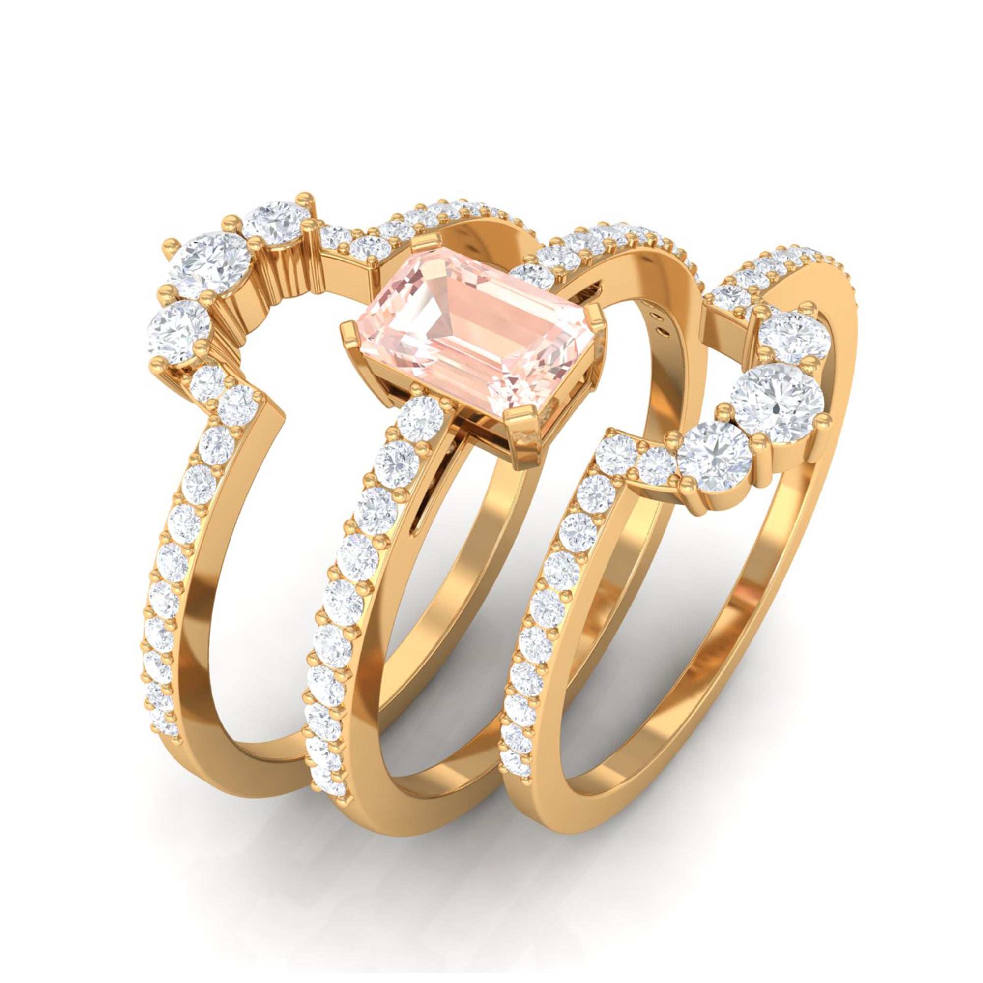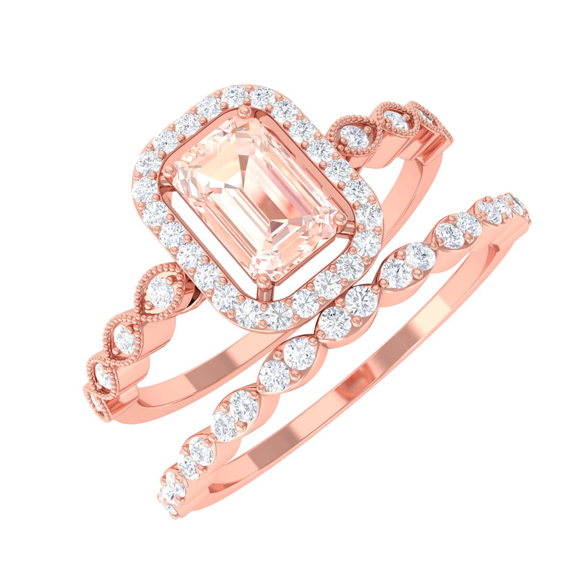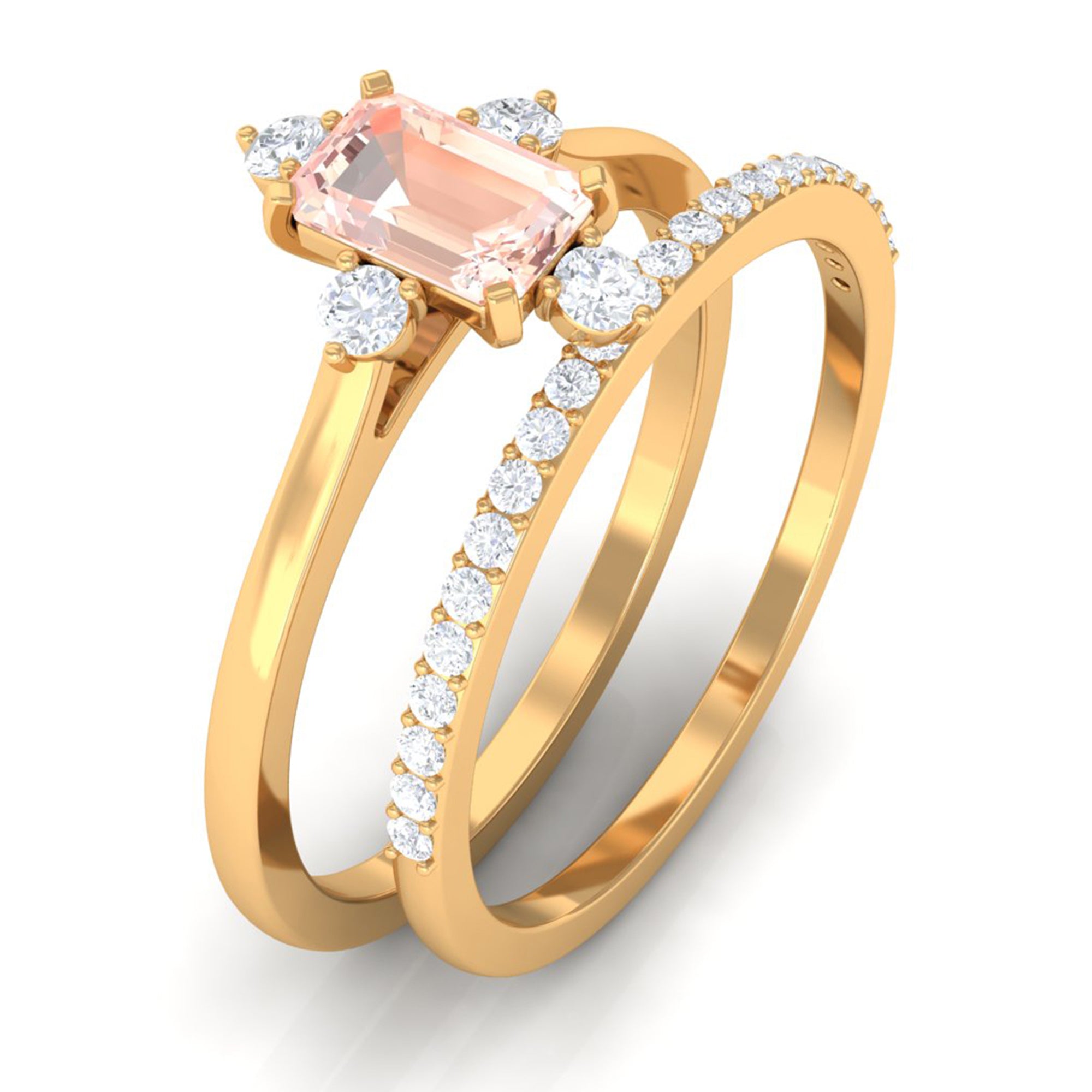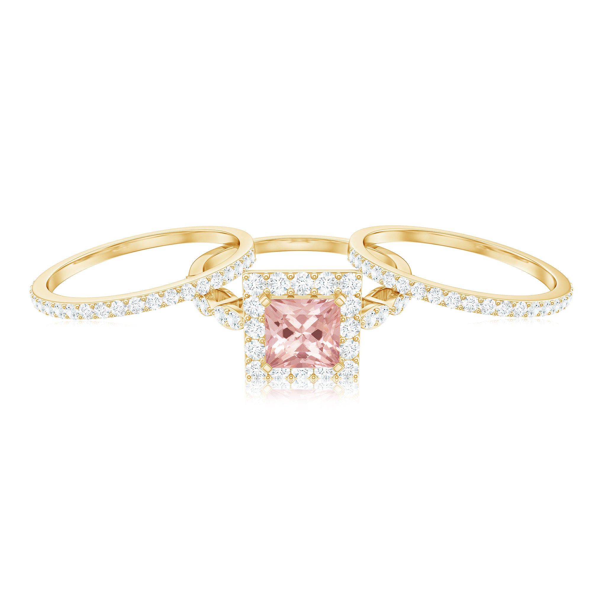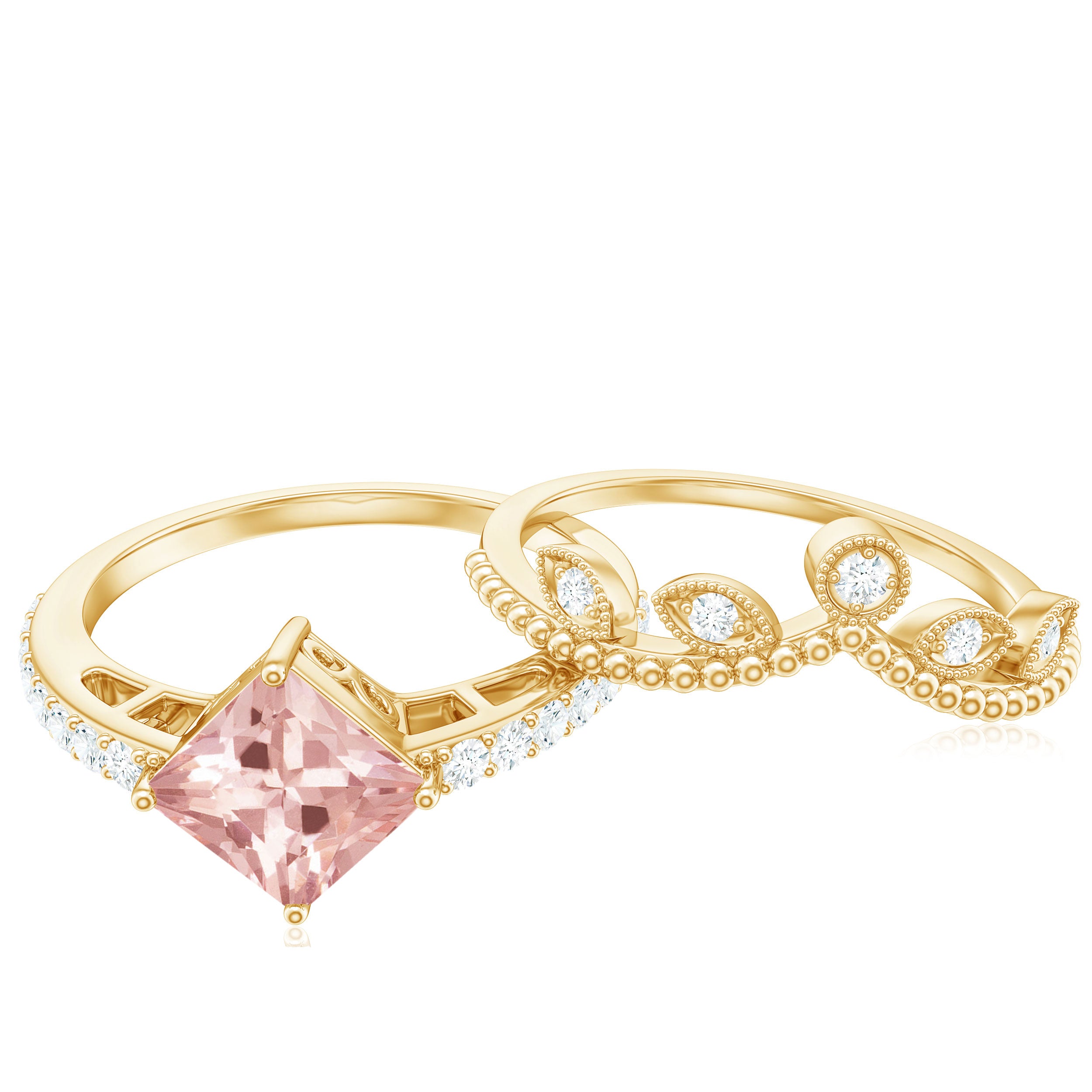 The delicate and romantic pink saturation of morganites enable our craftsmen to combine them with different colors of gold further helping us to curate fantastic morganite wedding band in white gold, yellow gold and rose gold. The great diversity in our engagement and wedding ring collection is achieved by different morganite shapes, settings and metal embellishments. Therefore, Rosec Jewels’ alluring collection of morganite wedding rings will best appeal to the women with an eye for delicate details and romantic pink hues.