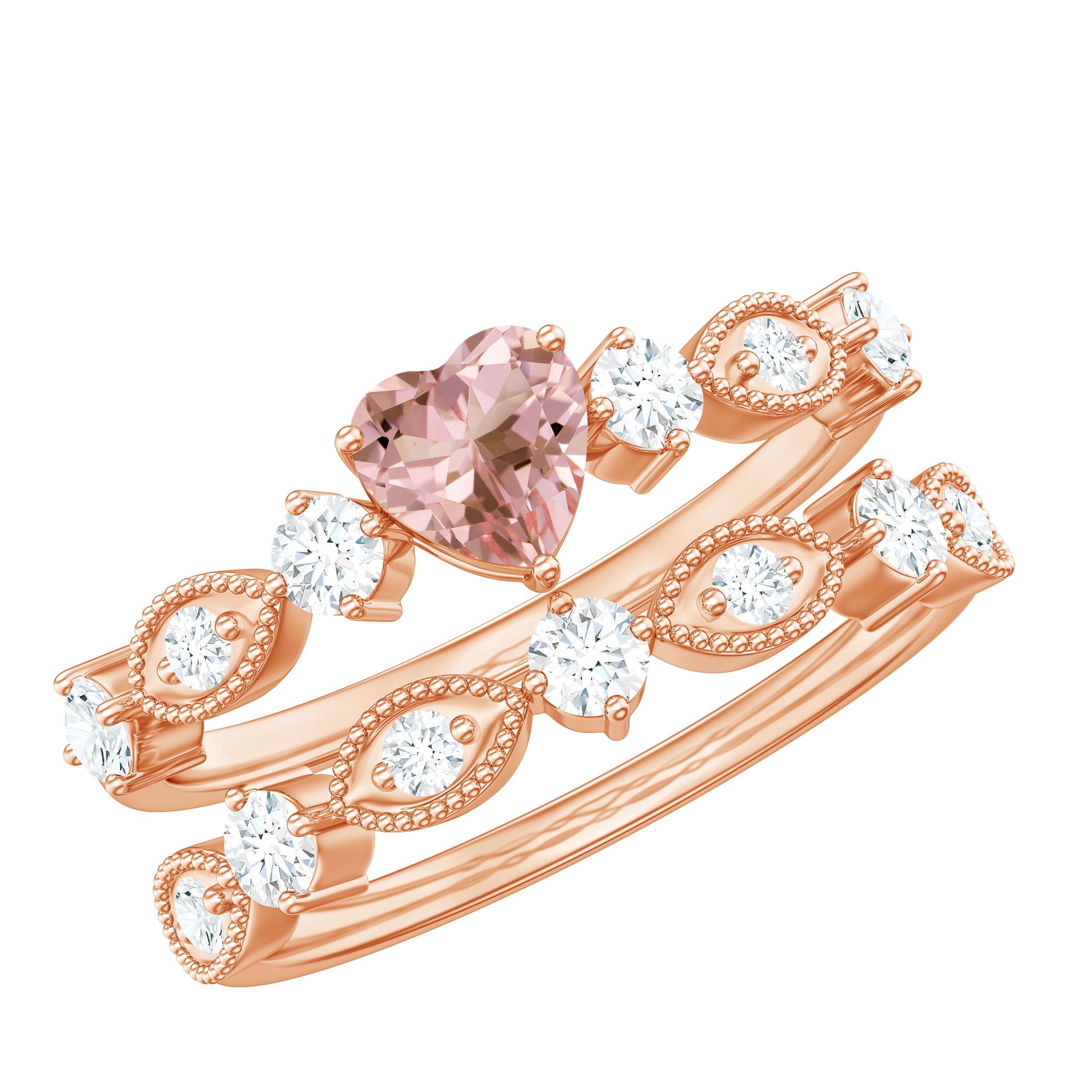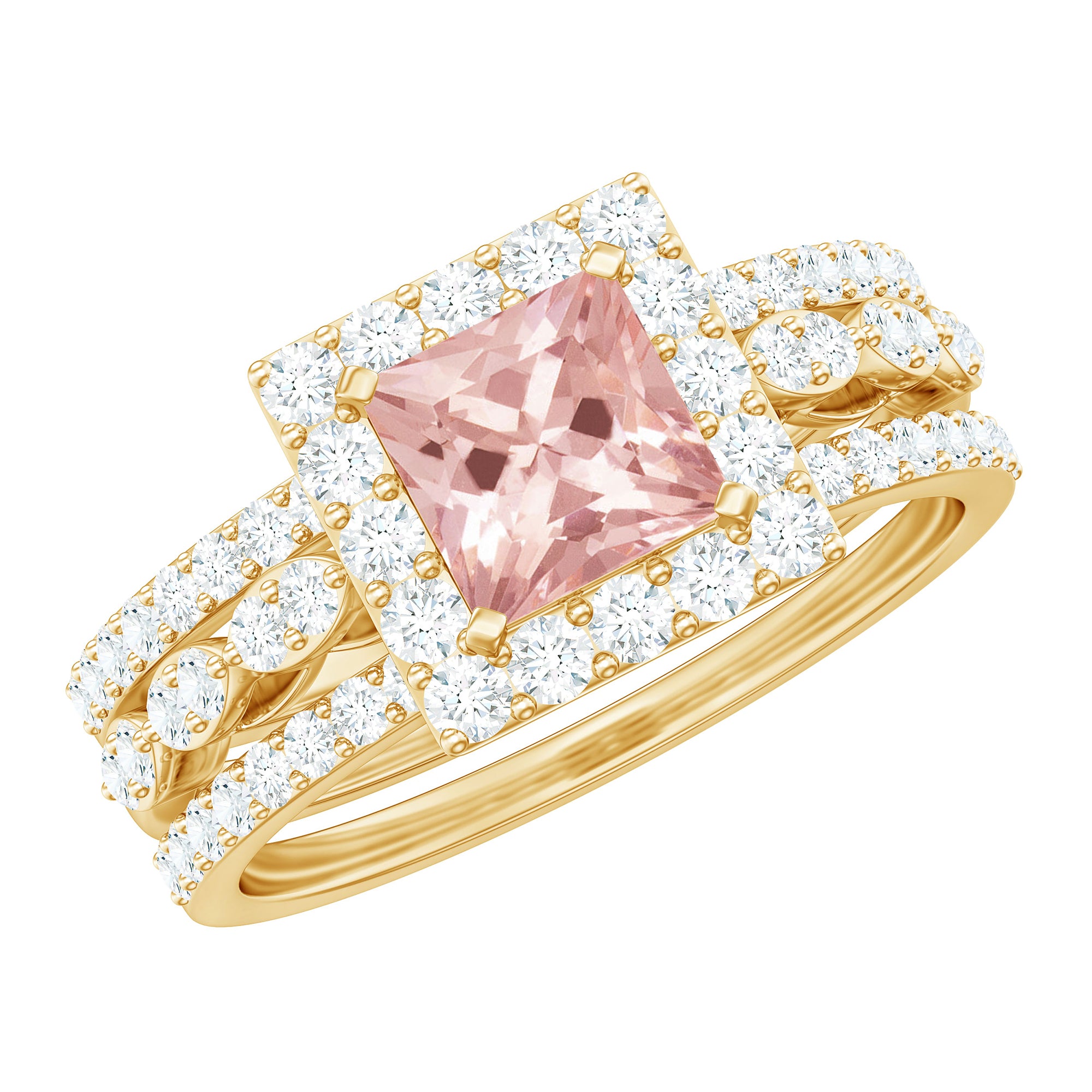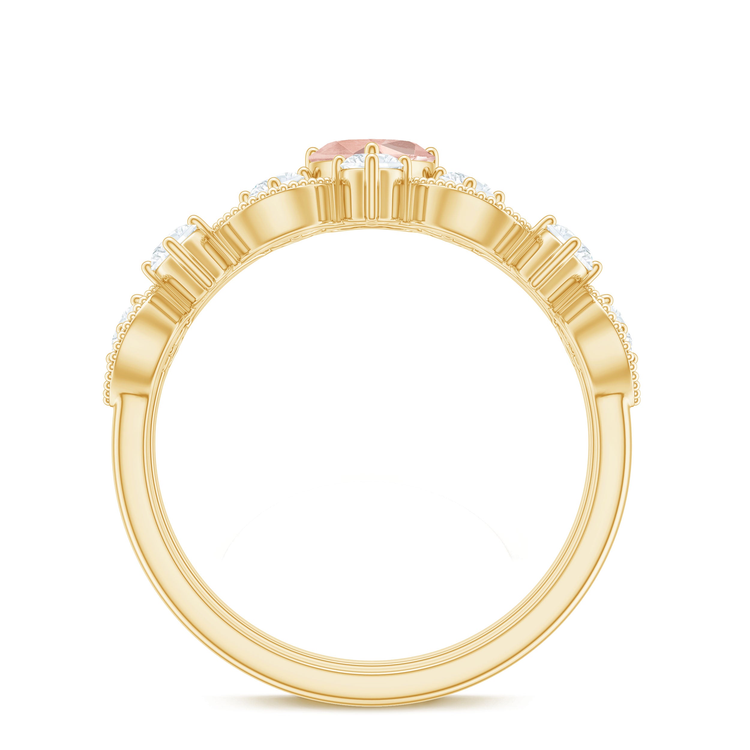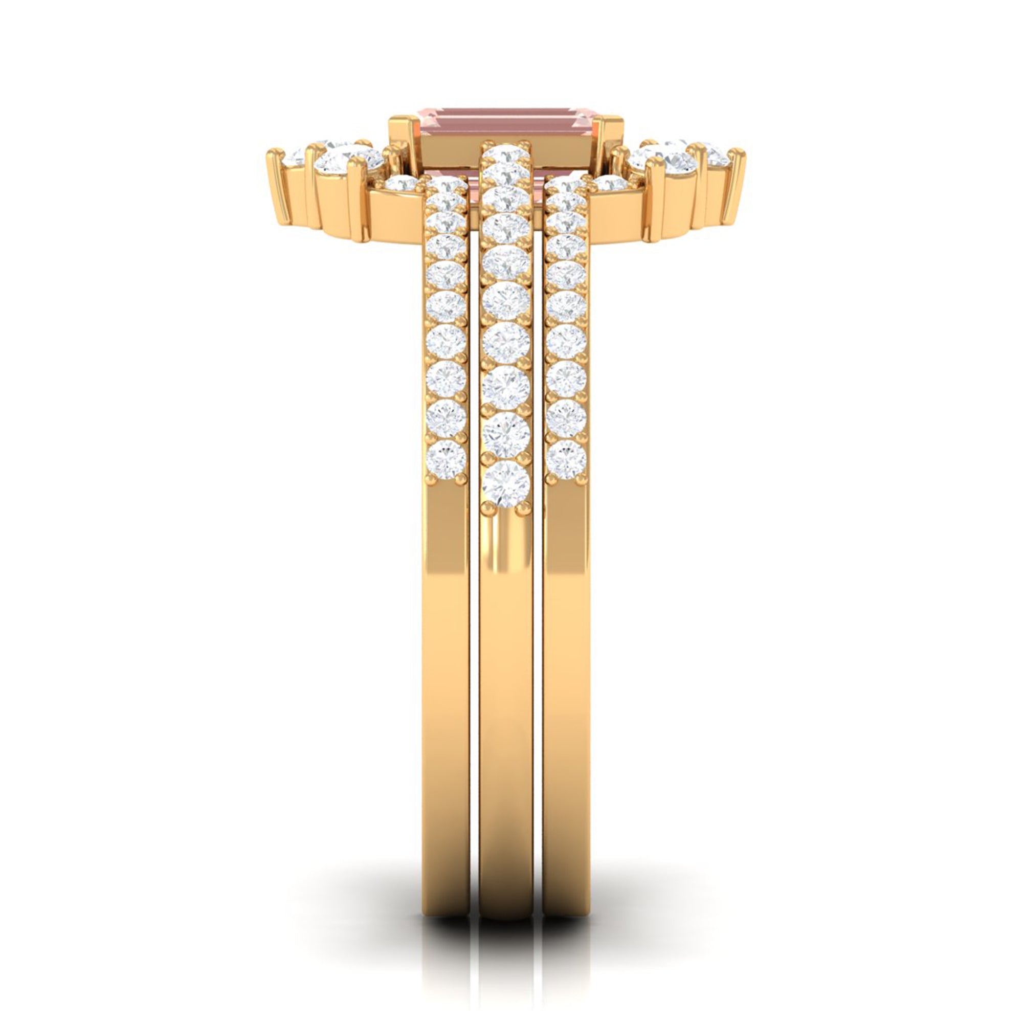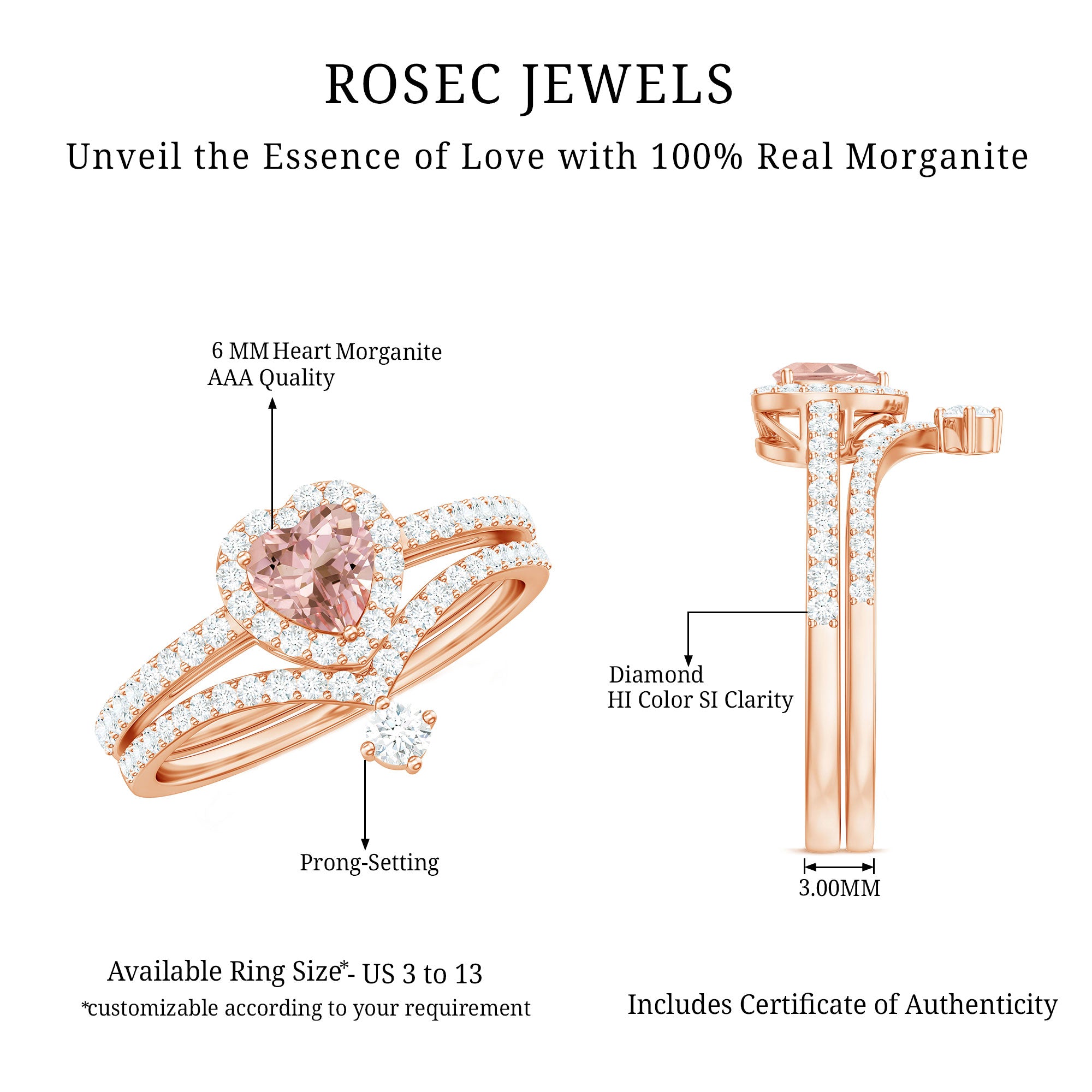 The delicate and romantic pink saturation of morganites enable our craftsmen to combine them with different colors of gold further helping us to curate fantastic morganite wedding band in white gold, yellow gold and rose gold. The great diversity in our engagement and wedding ring collection is achieved by different morganite shapes, settings and metal embellishments. Therefore, Rosec Jewels’ alluring collection of morganite wedding rings will best appeal to the women with an eye for delicate details and romantic pink hues.