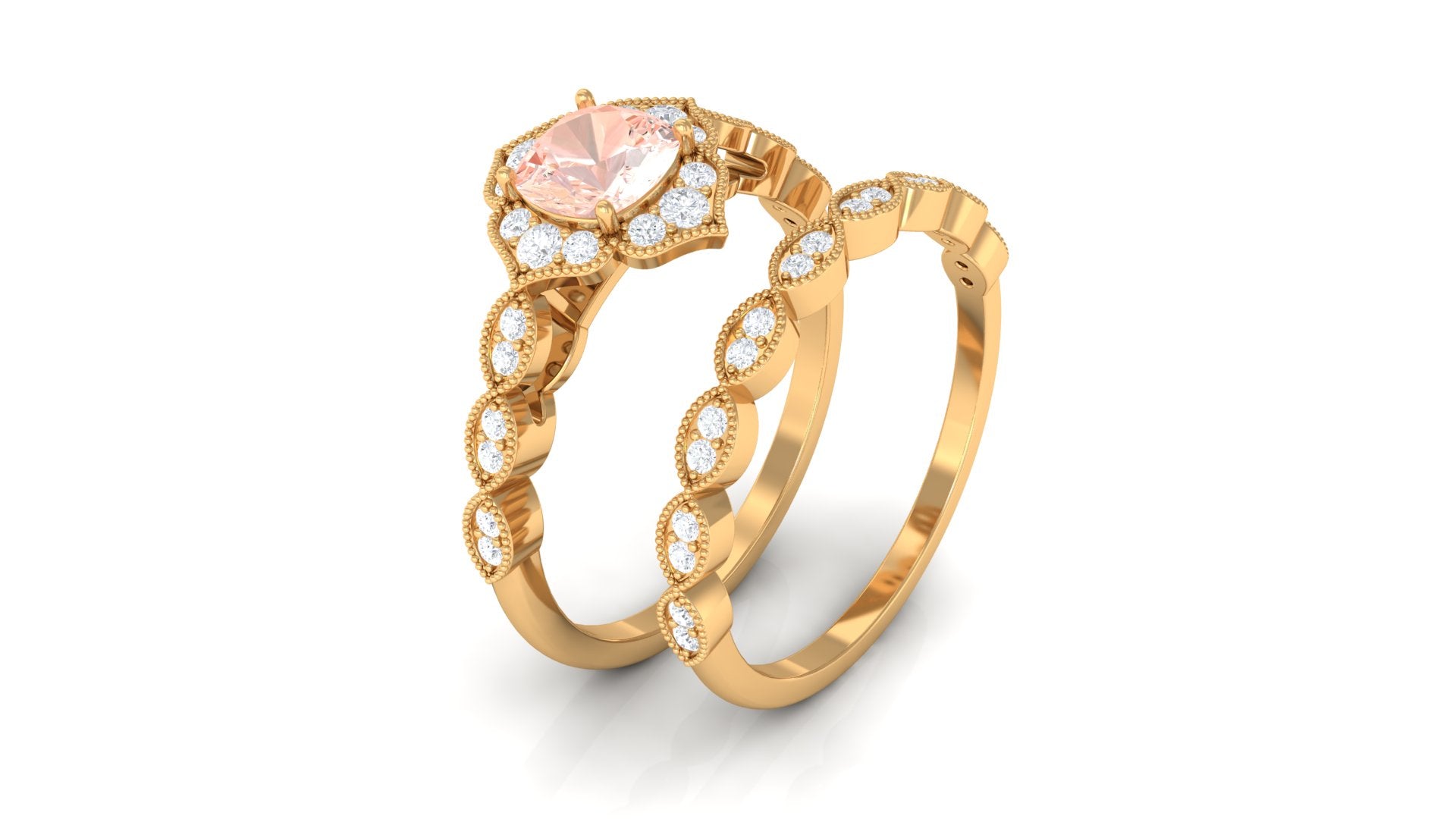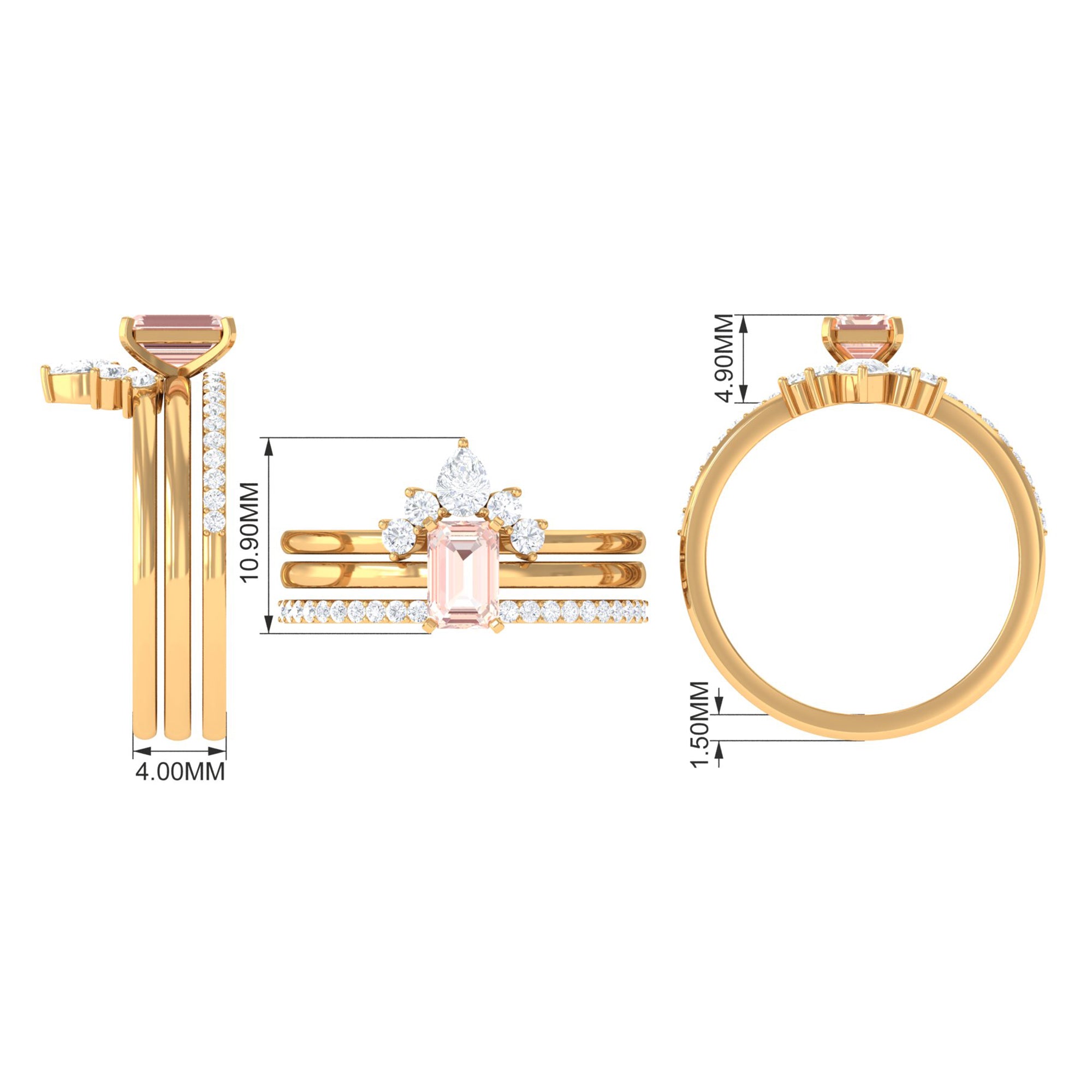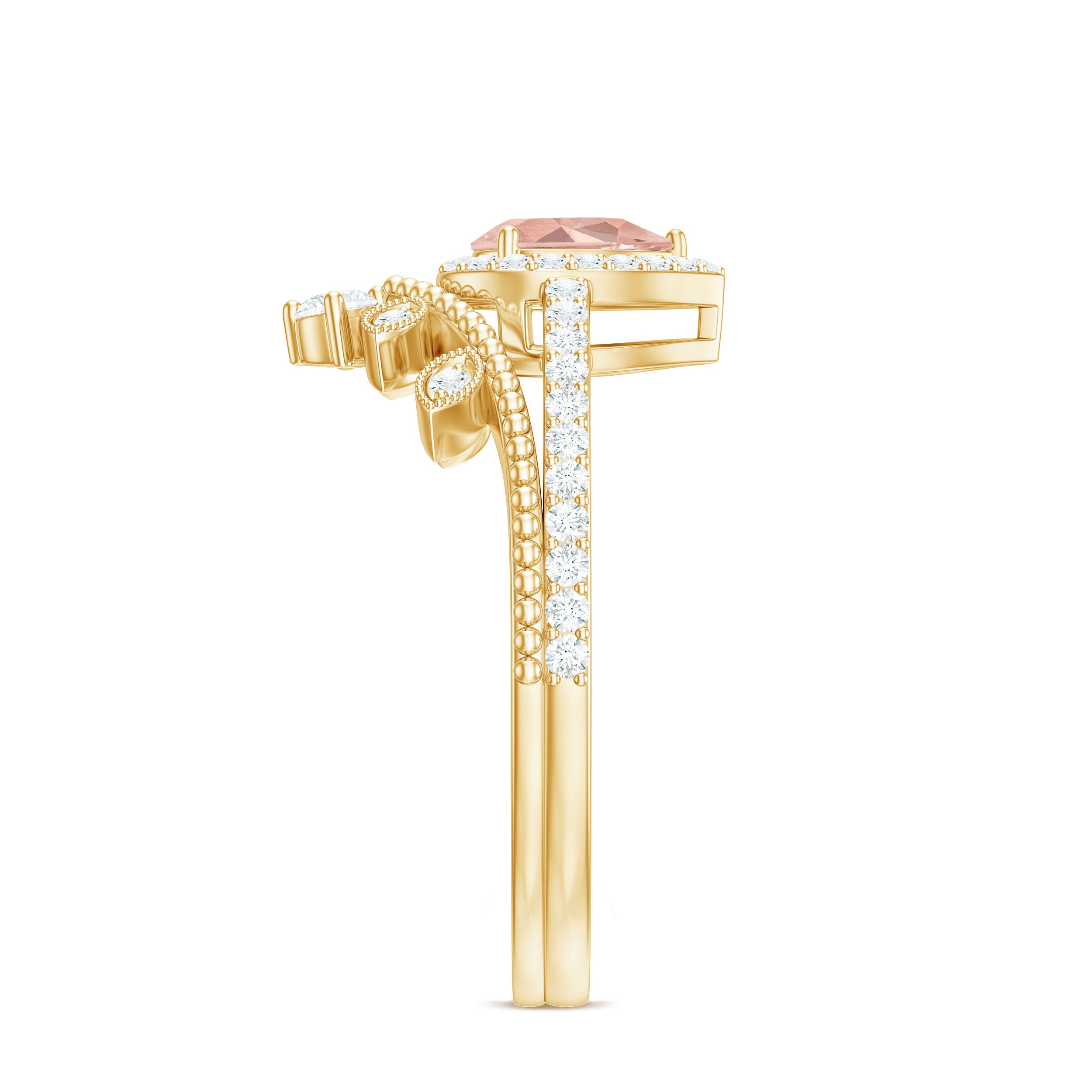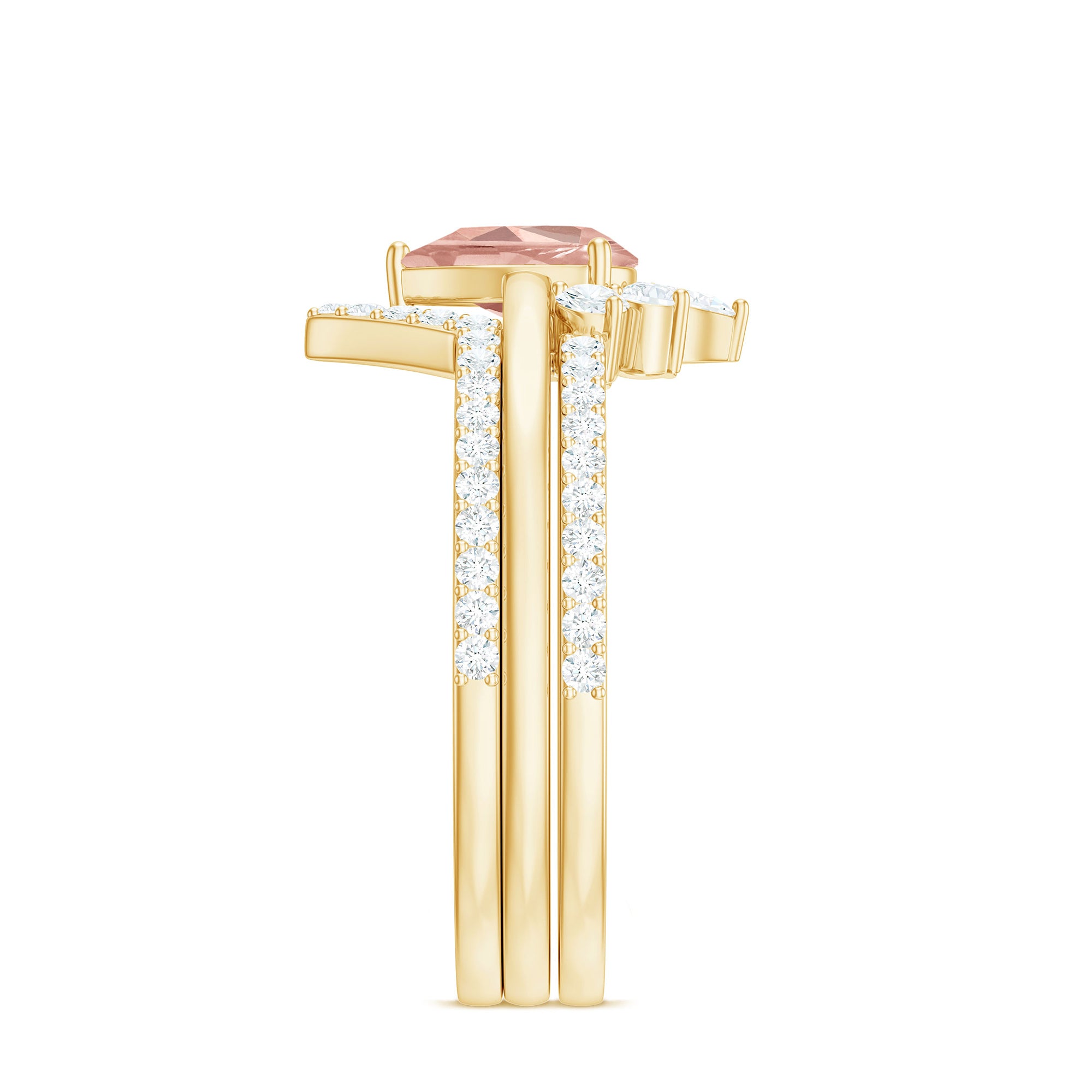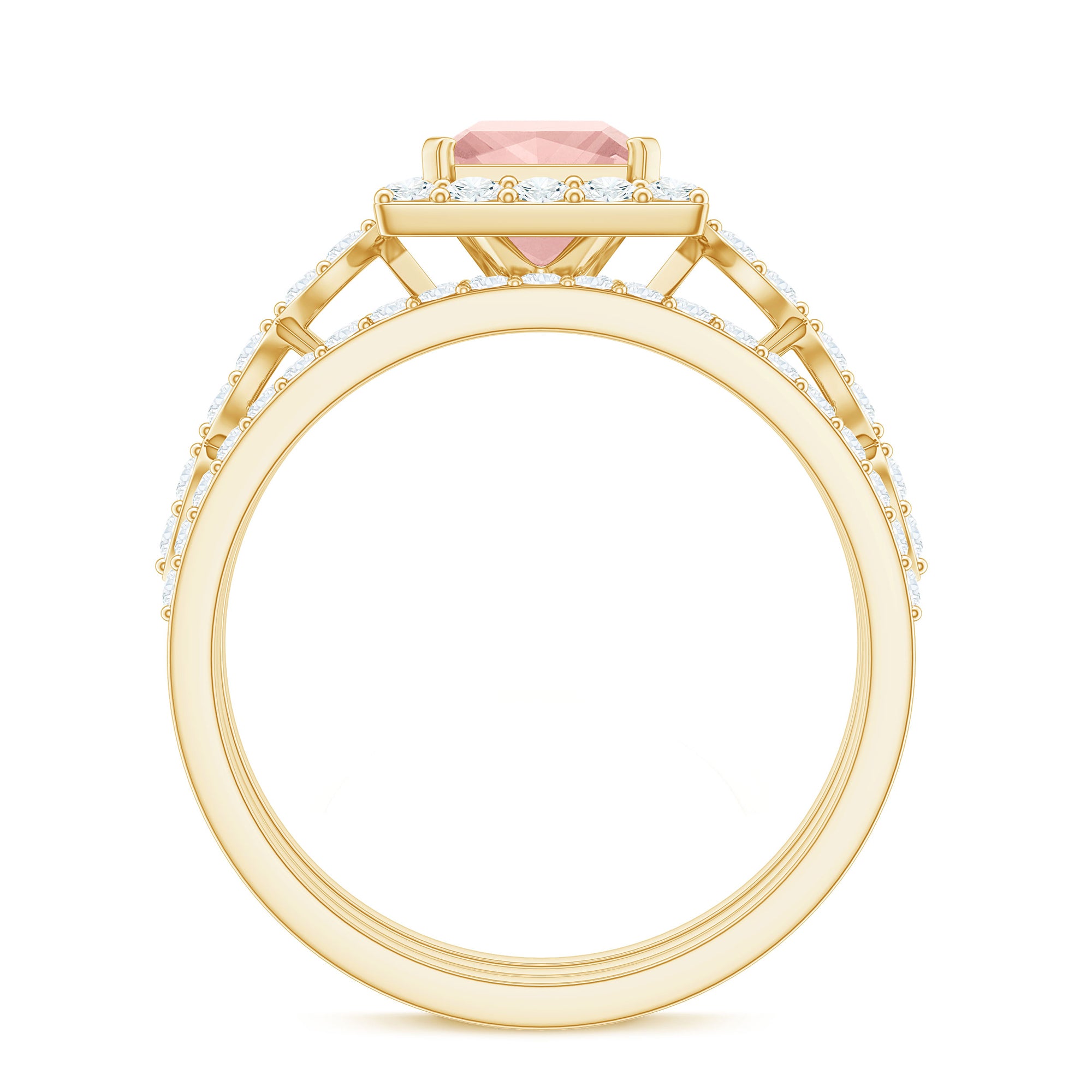 The delicate and romantic pink saturation of morganites enable our craftsmen to combine them with different colors of gold further helping us to curate fantastic morganite wedding band in white gold, yellow gold and rose gold. The great diversity in our engagement and wedding ring collection is achieved by different morganite shapes, settings and metal embellishments. Therefore, Rosec Jewels’ alluring collection of morganite wedding rings will best appeal to the women with an eye for delicate details and romantic pink hues.