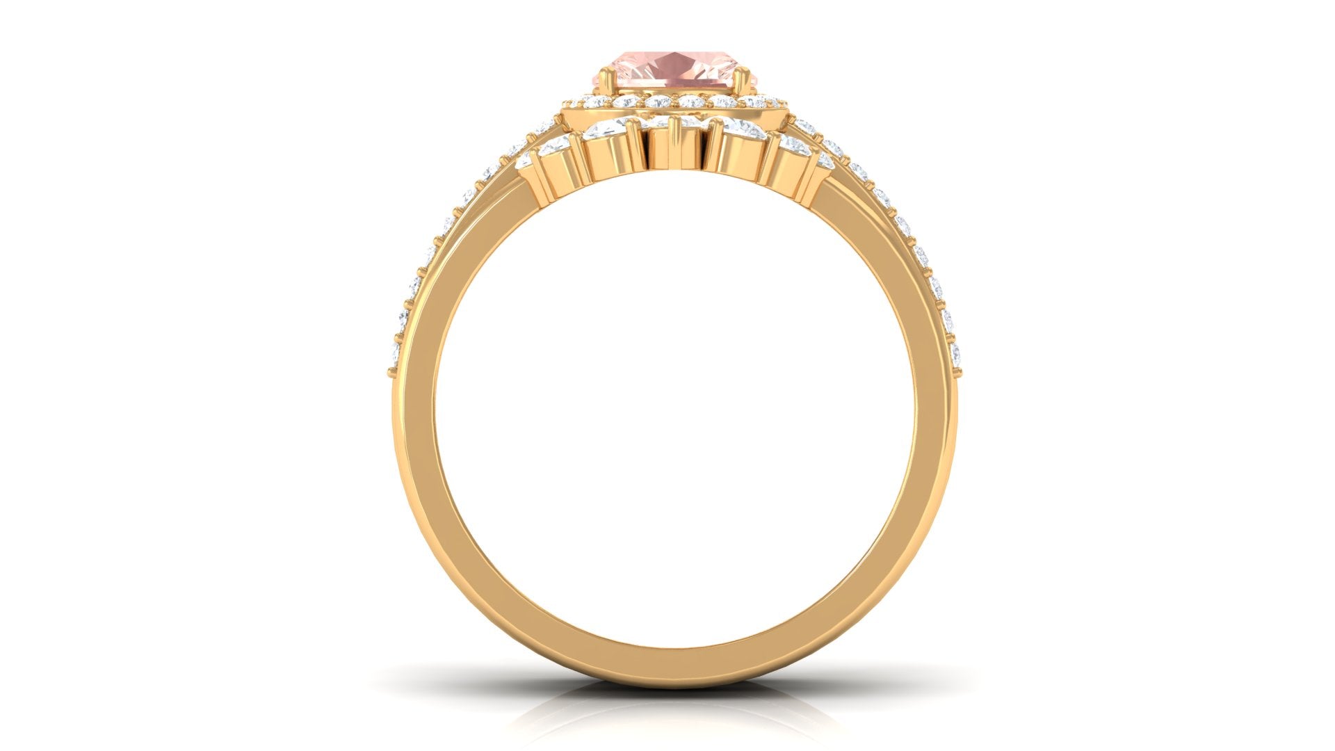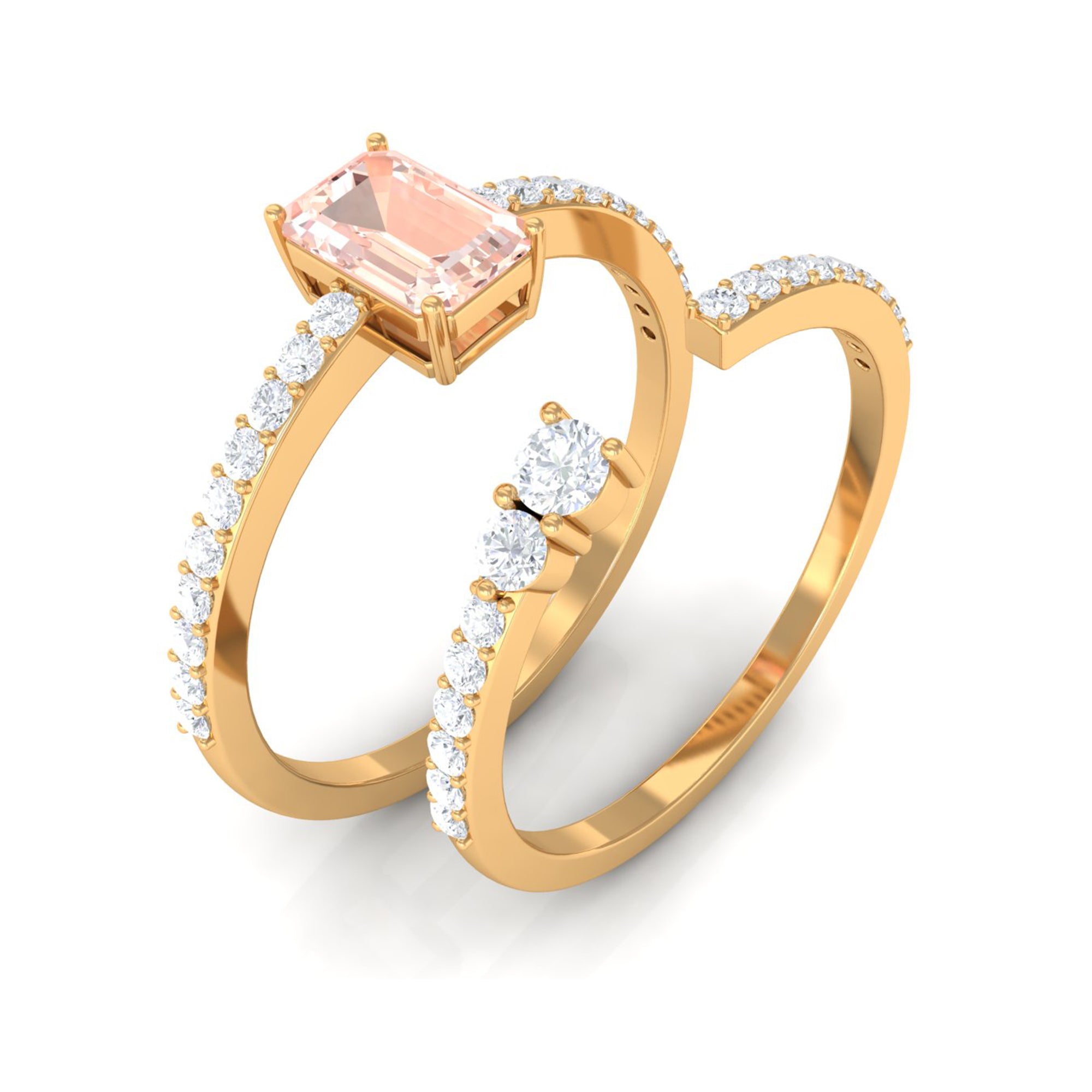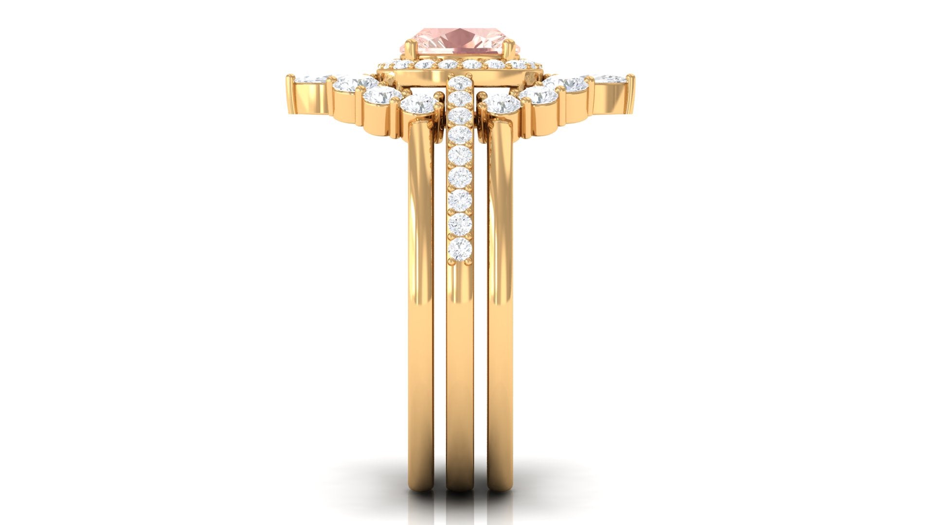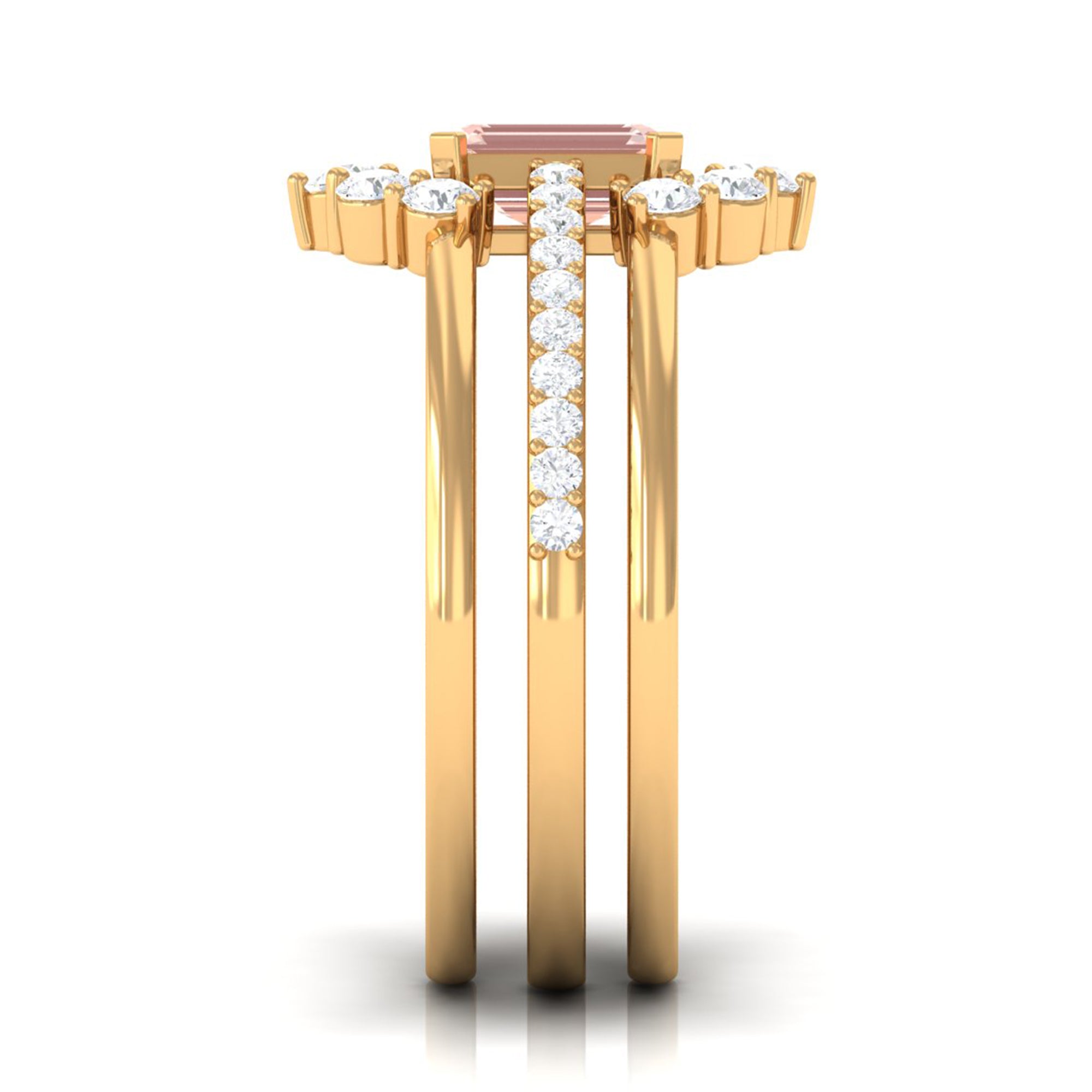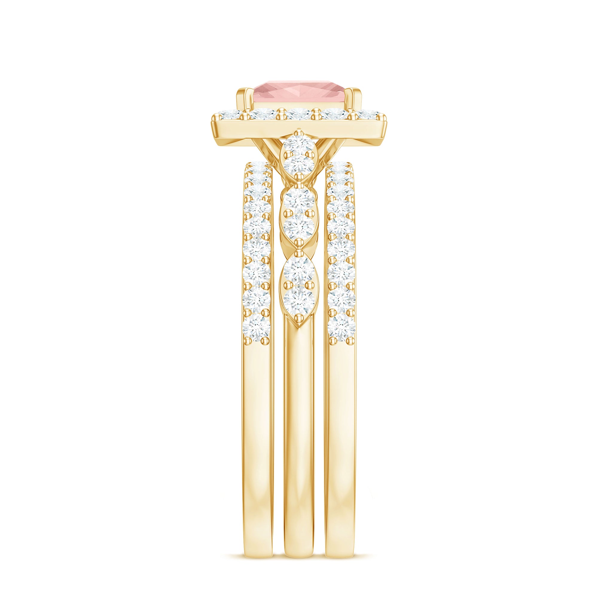 The delicate and romantic pink saturation of morganites enable our craftsmen to combine them with different colors of gold further helping us to curate fantastic morganite wedding band in white gold, yellow gold and rose gold. The great diversity in our engagement and wedding ring collection is achieved by different morganite shapes, settings and metal embellishments. Therefore, Rosec Jewels’ alluring collection of morganite wedding rings will best appeal to the women with an eye for delicate details and romantic pink hues.
