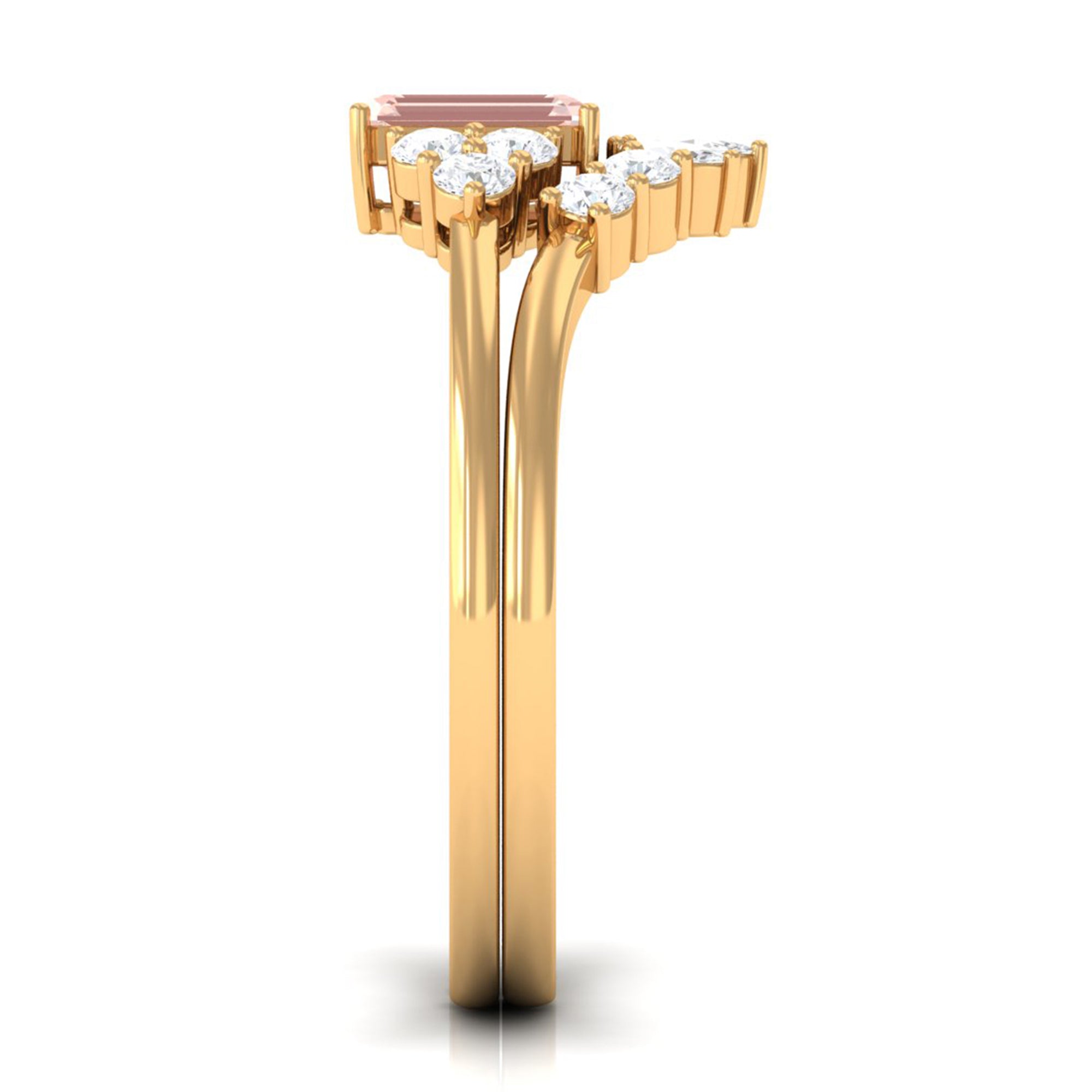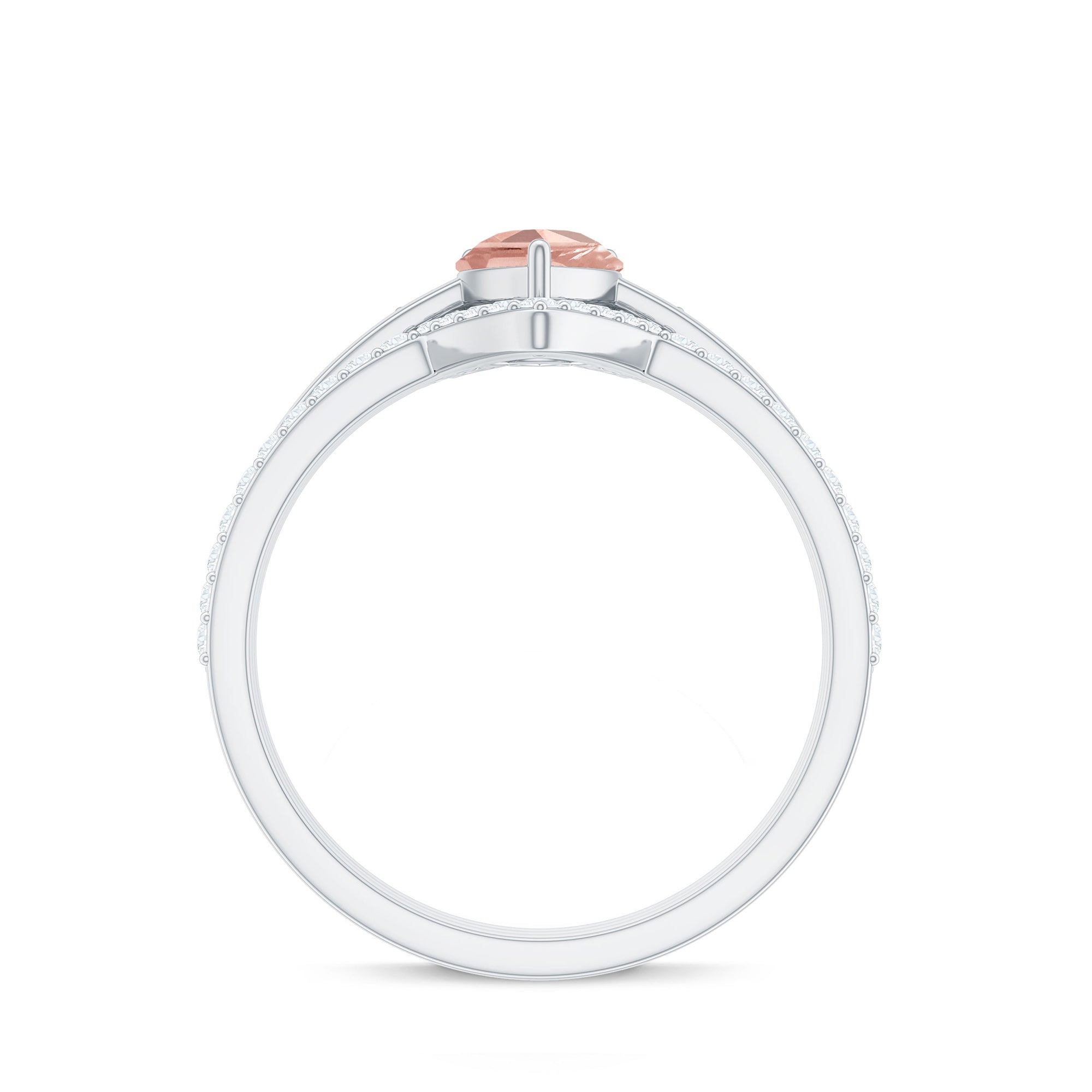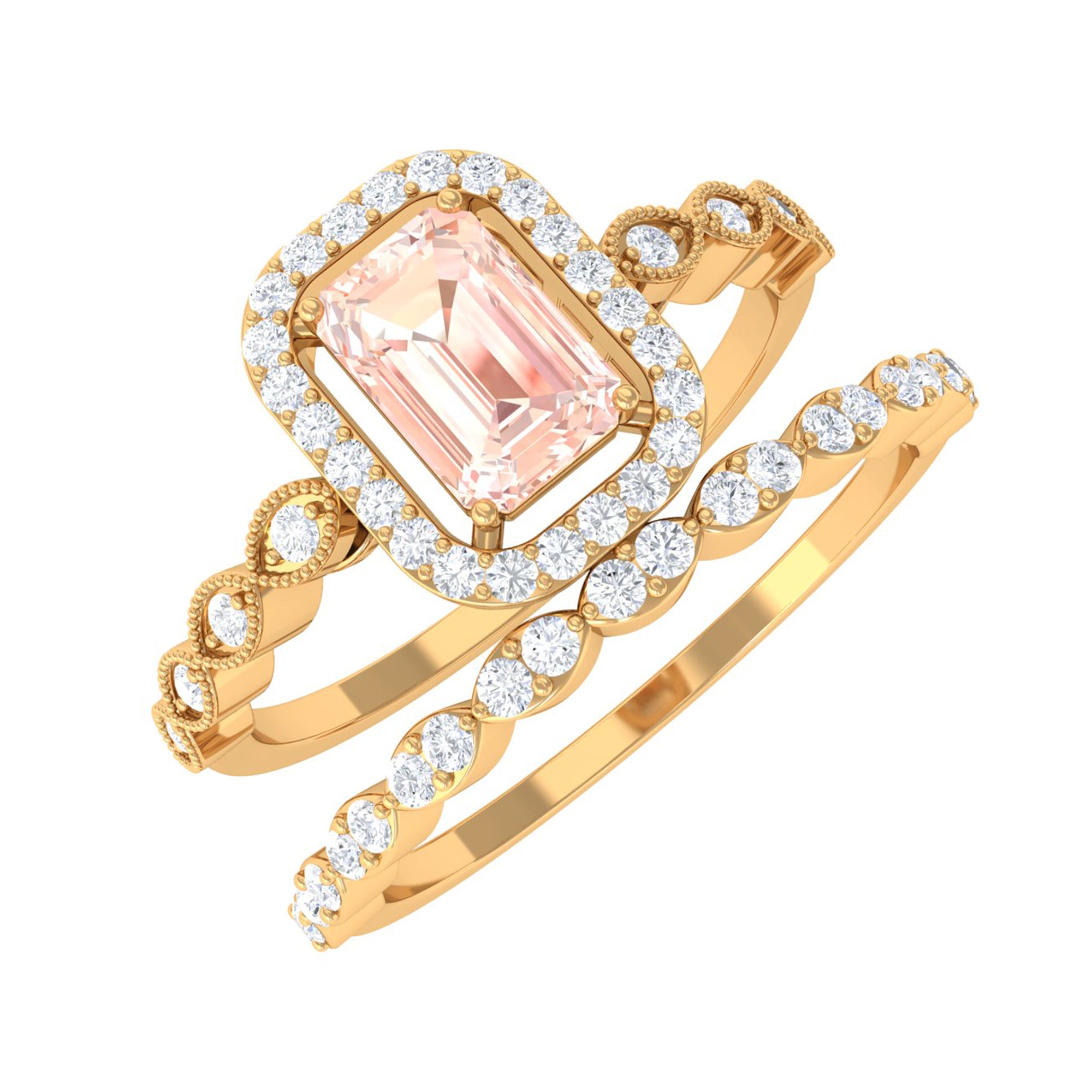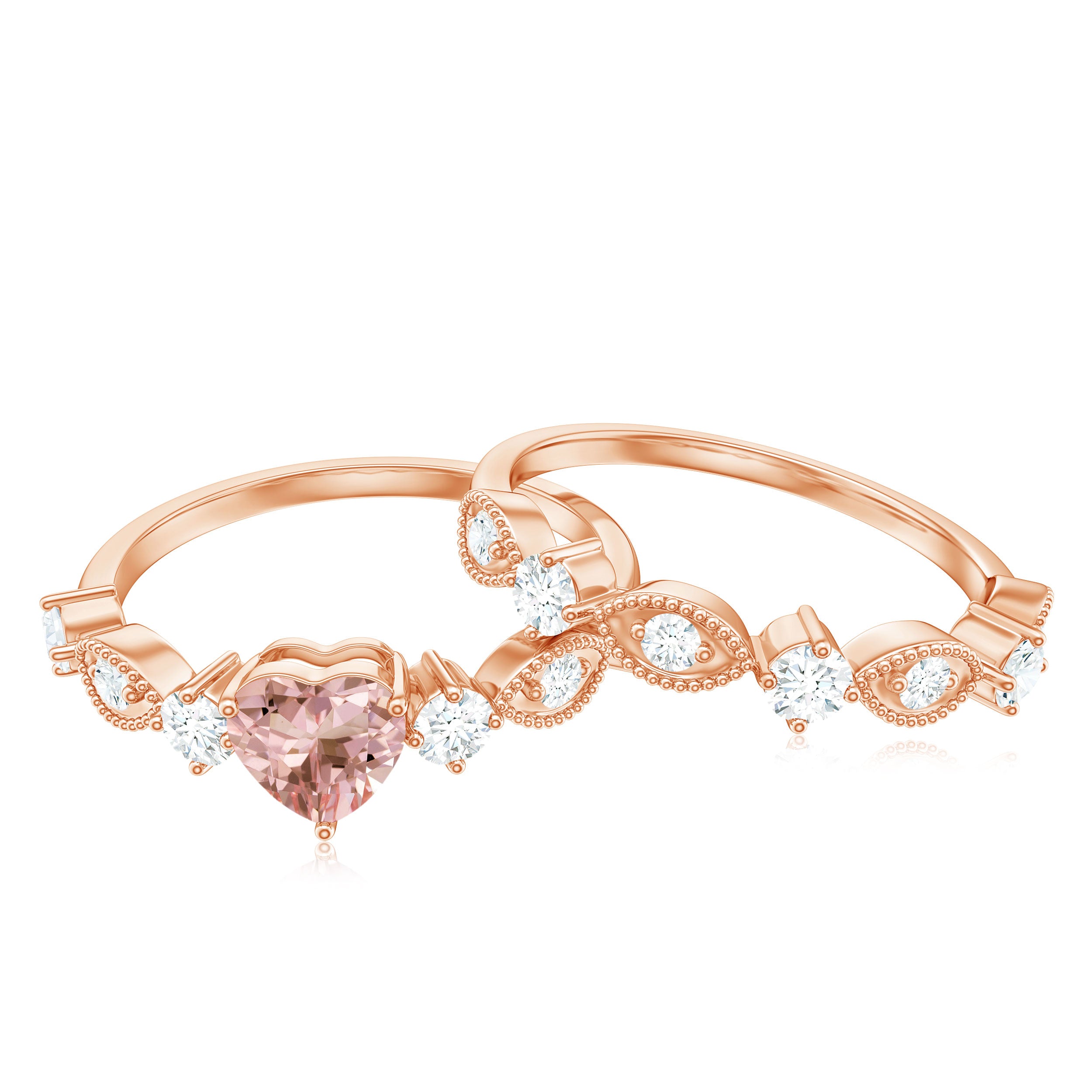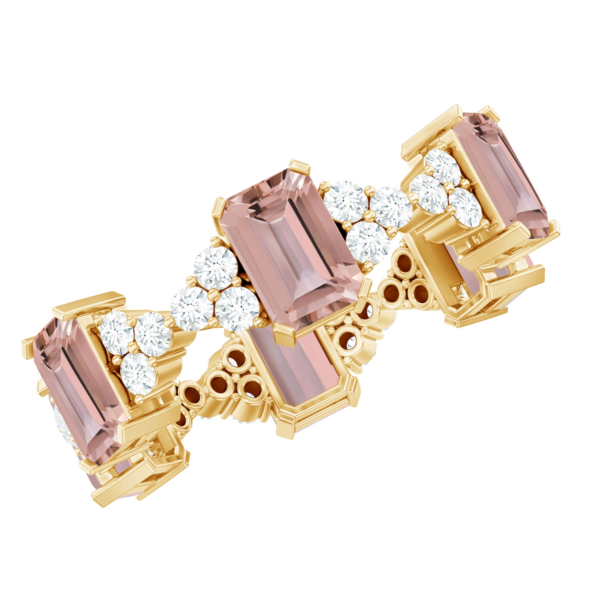 The delicate and romantic pink saturation of morganites enable our craftsmen to combine them with different colors of gold further helping us to curate fantastic morganite wedding band in white gold, yellow gold and rose gold. The great diversity in our engagement and wedding ring collection is achieved by different morganite shapes, settings and metal embellishments. Therefore, Rosec Jewels’ alluring collection of morganite wedding rings will best appeal to the women with an eye for delicate details and romantic pink hues.