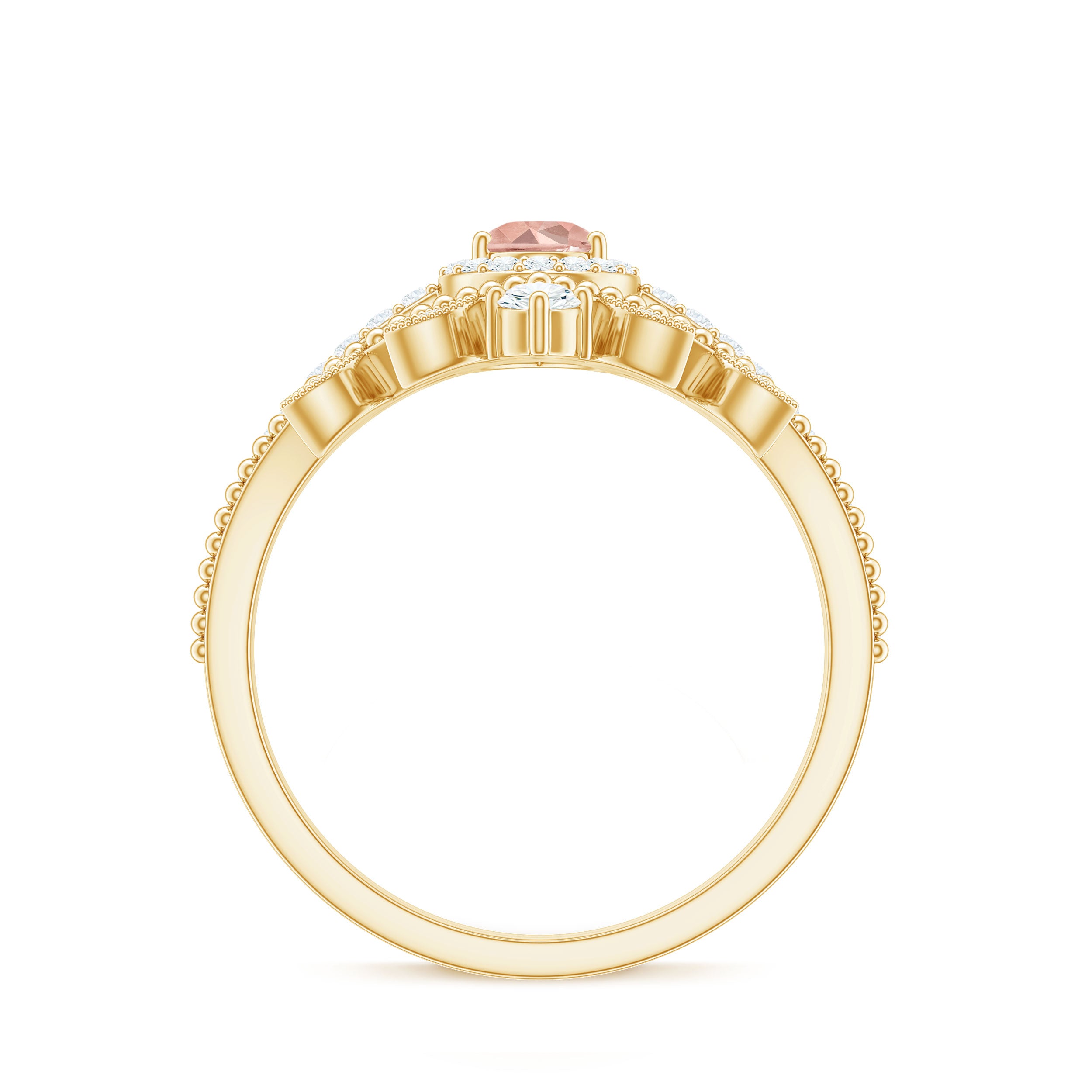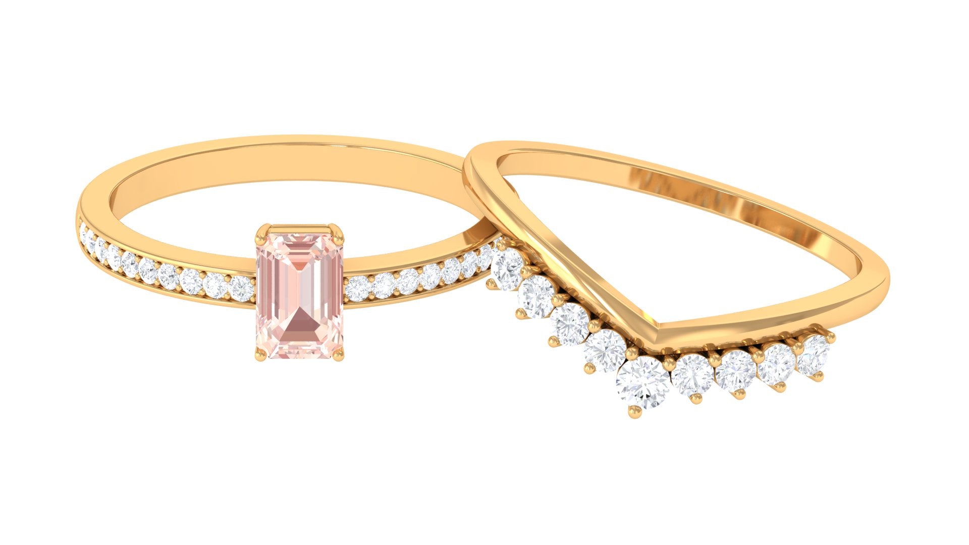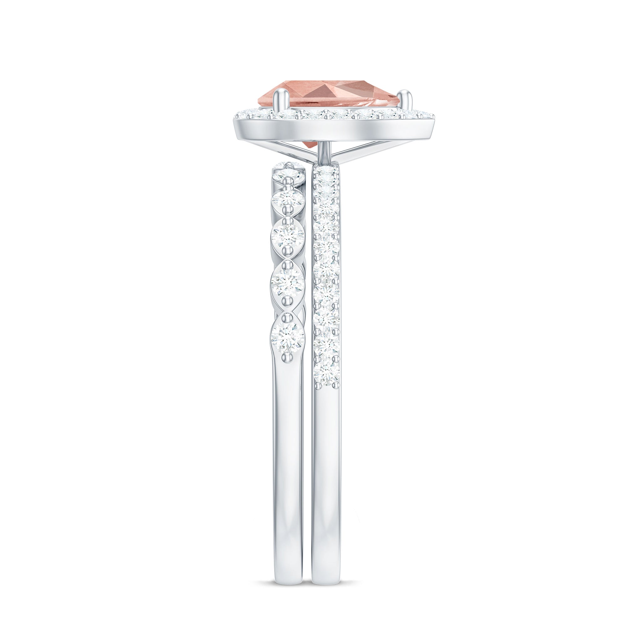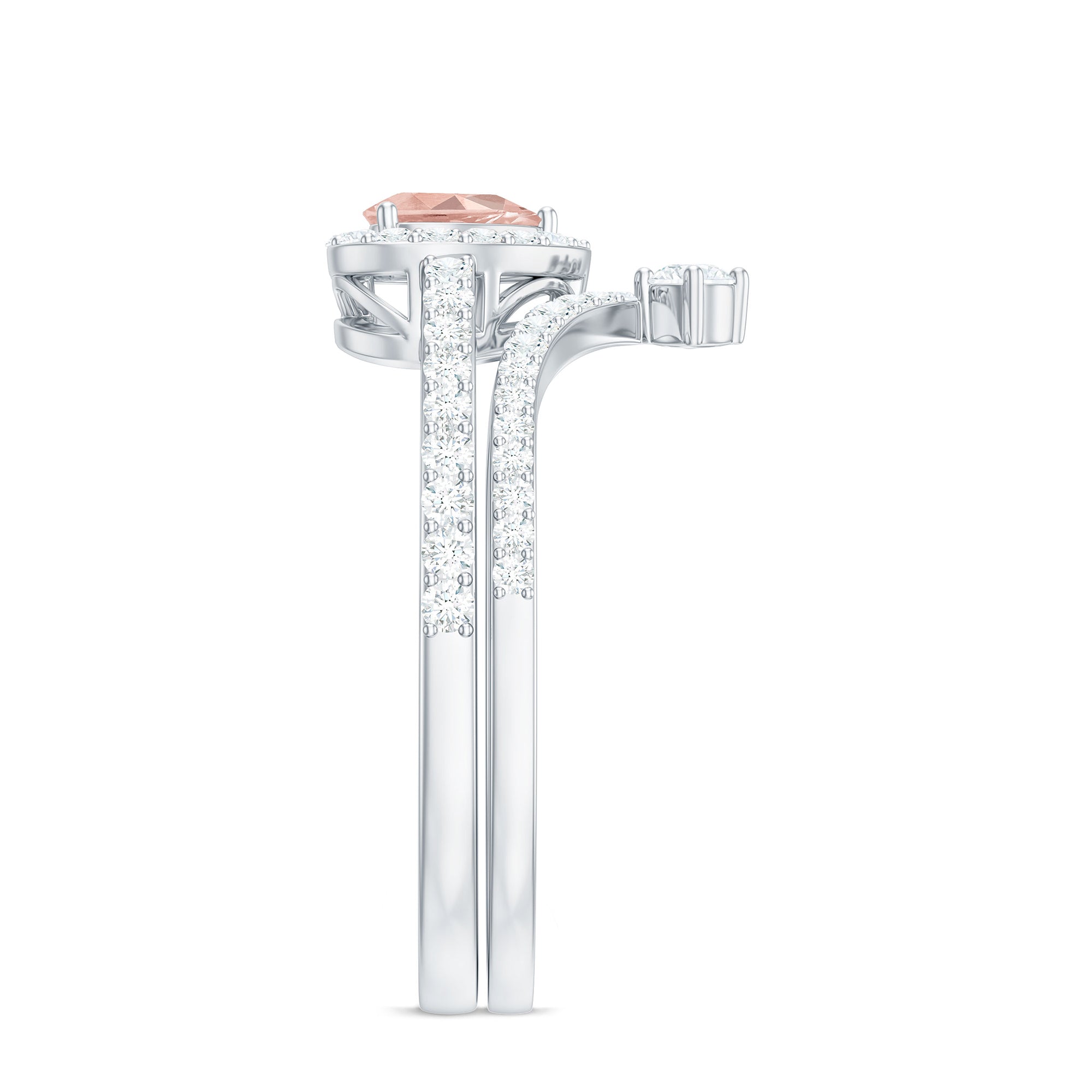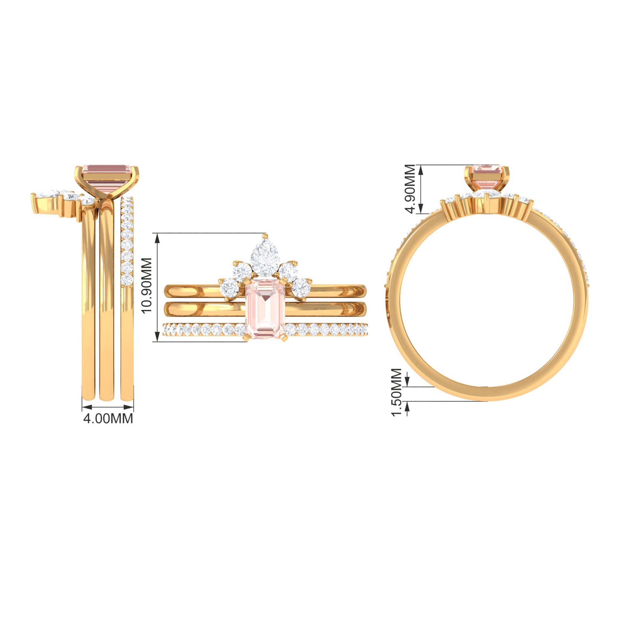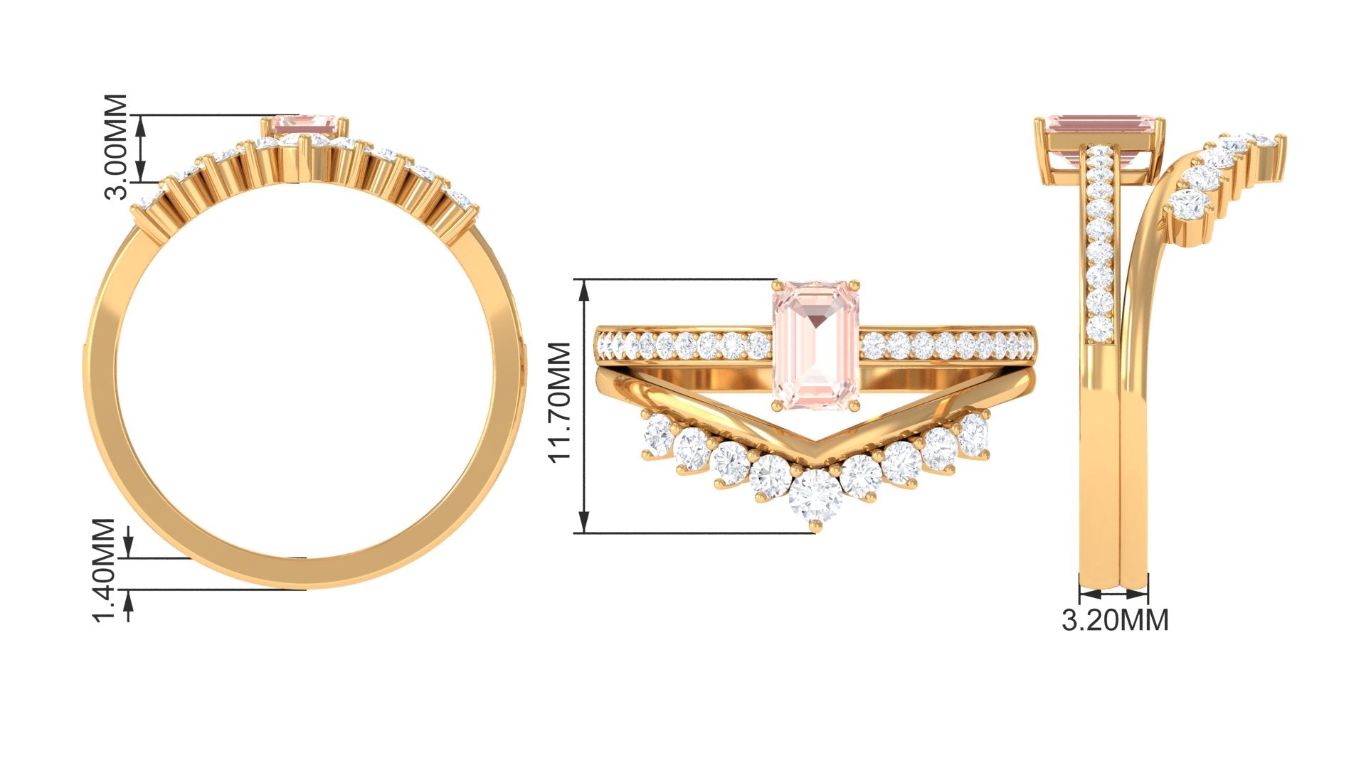 The delicate and romantic pink saturation of morganites enable our craftsmen to combine them with different colors of gold further helping us to curate fantastic morganite wedding band in white gold, yellow gold and rose gold. The great diversity in our engagement and wedding ring collection is achieved by different morganite shapes, settings and metal embellishments. Therefore, Rosec Jewels’ alluring collection of morganite wedding rings will best appeal to the women with an eye for delicate details and romantic pink hues.