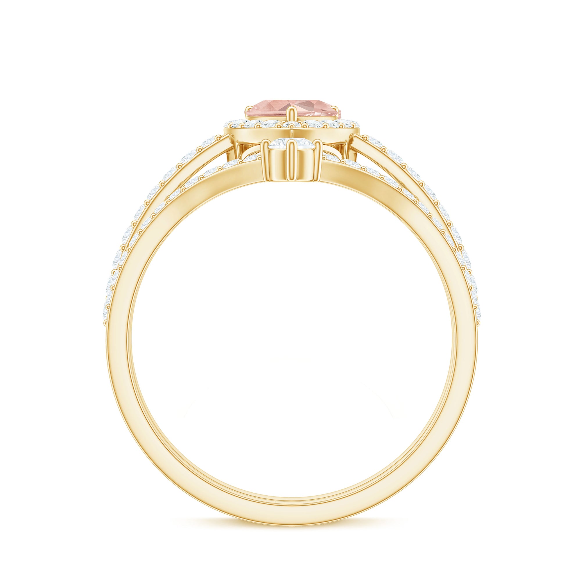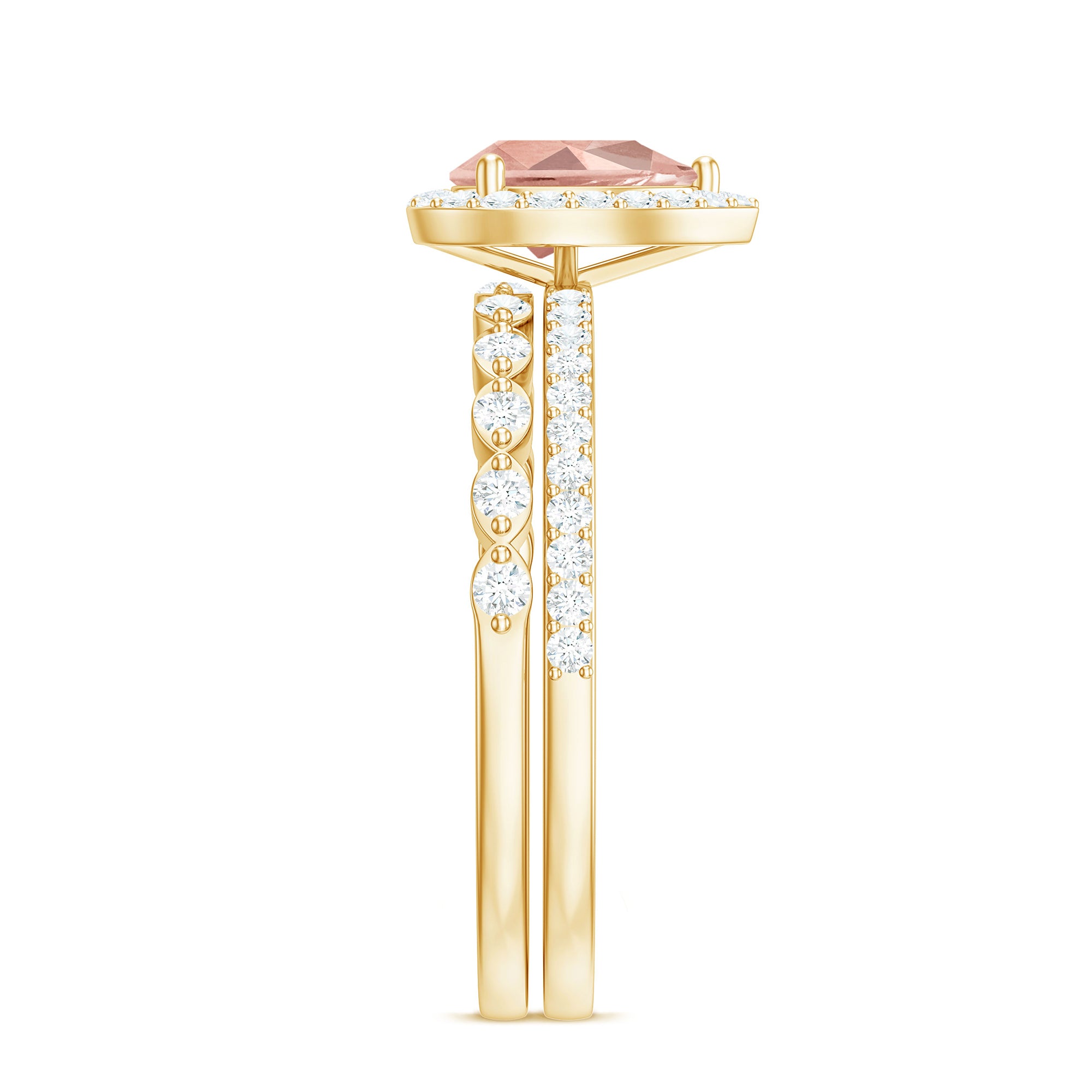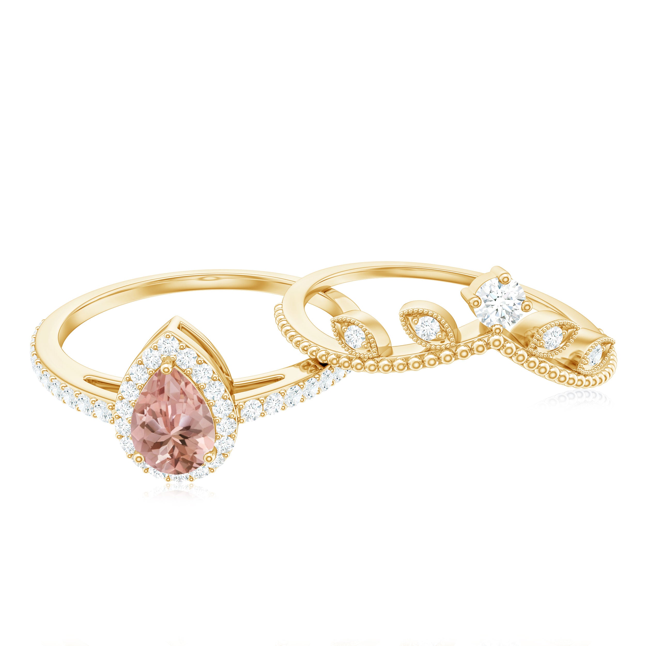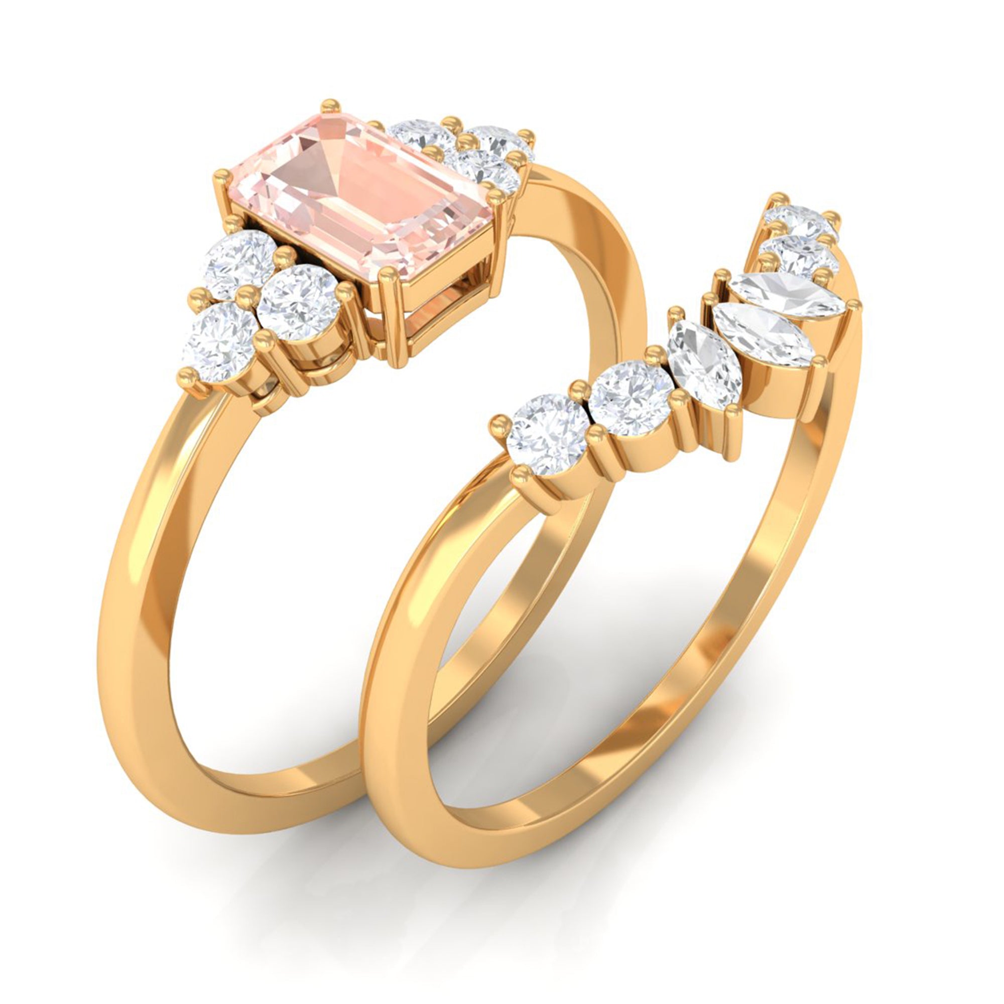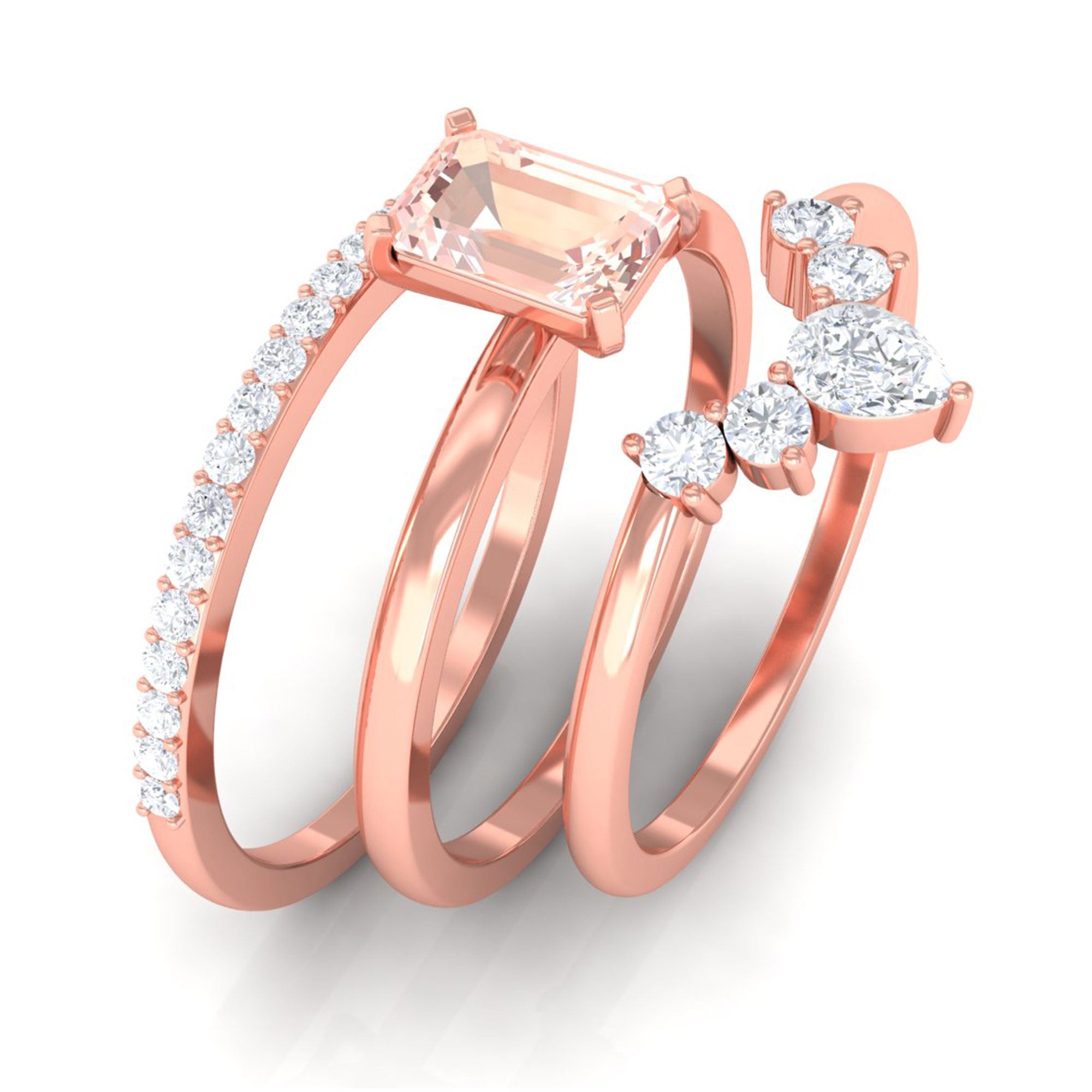 The delicate and romantic pink saturation of morganites enable our craftsmen to combine them with different colors of gold further helping us to curate fantastic morganite wedding band in white gold, yellow gold and rose gold. The great diversity in our engagement and wedding ring collection is achieved by different morganite shapes, settings and metal embellishments. Therefore, Rosec Jewels’ alluring collection of morganite wedding rings will best appeal to the women with an eye for delicate details and romantic pink hues.