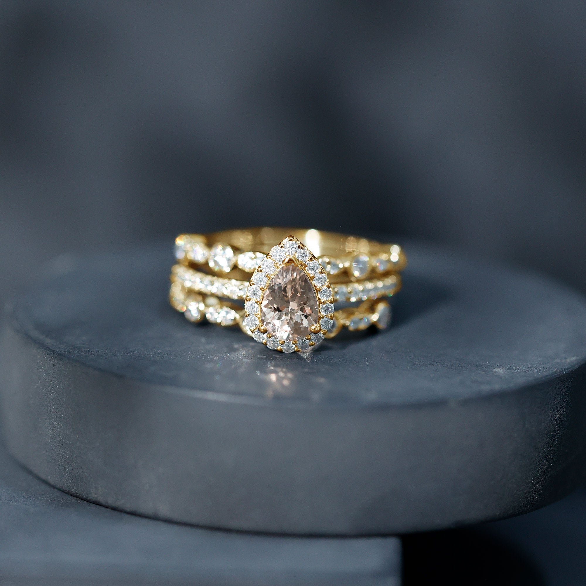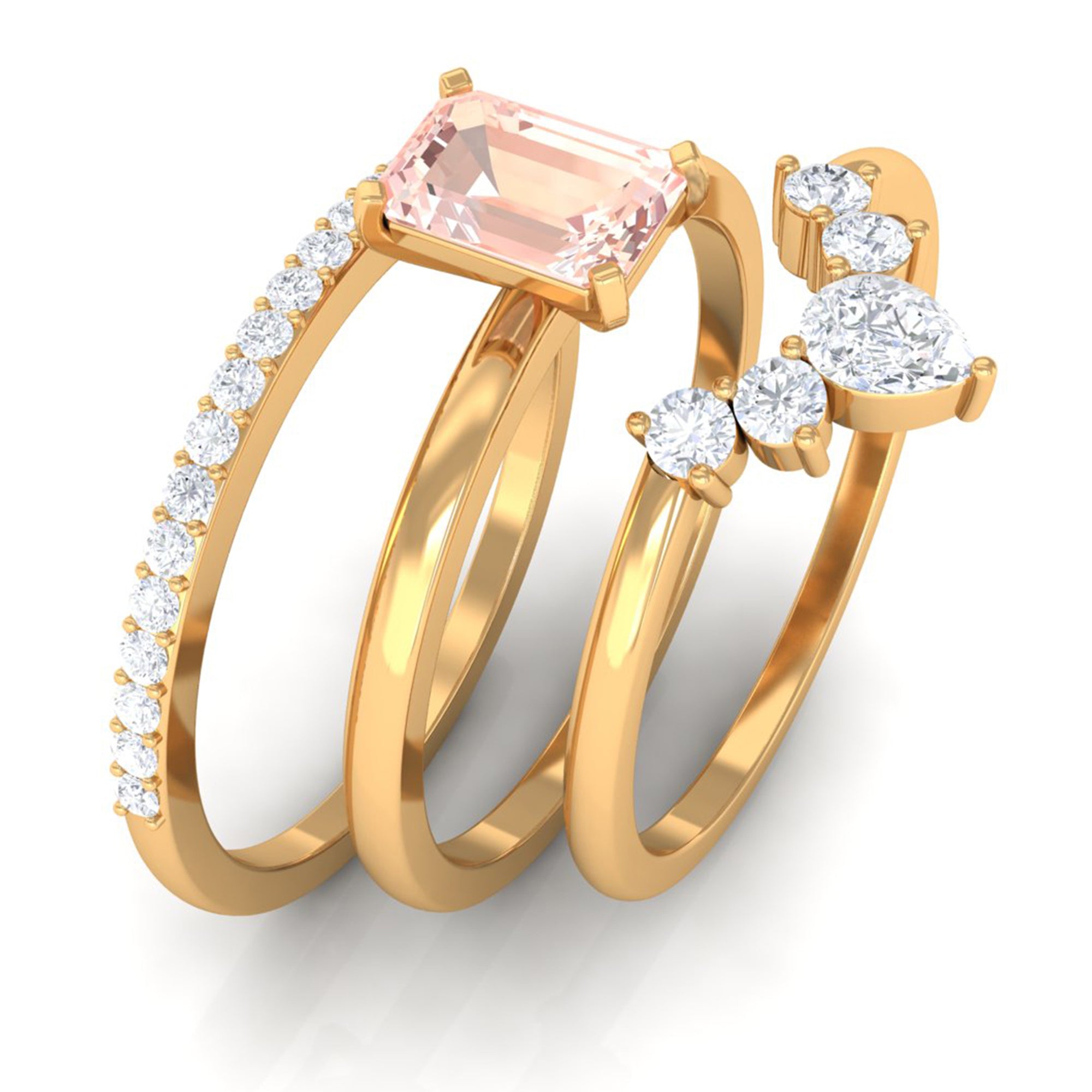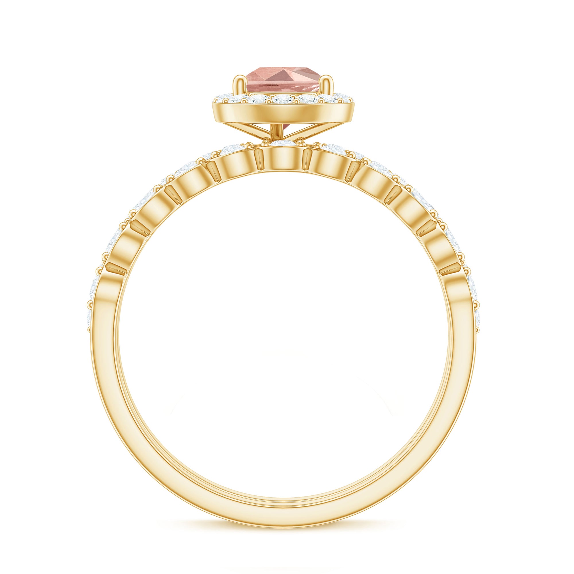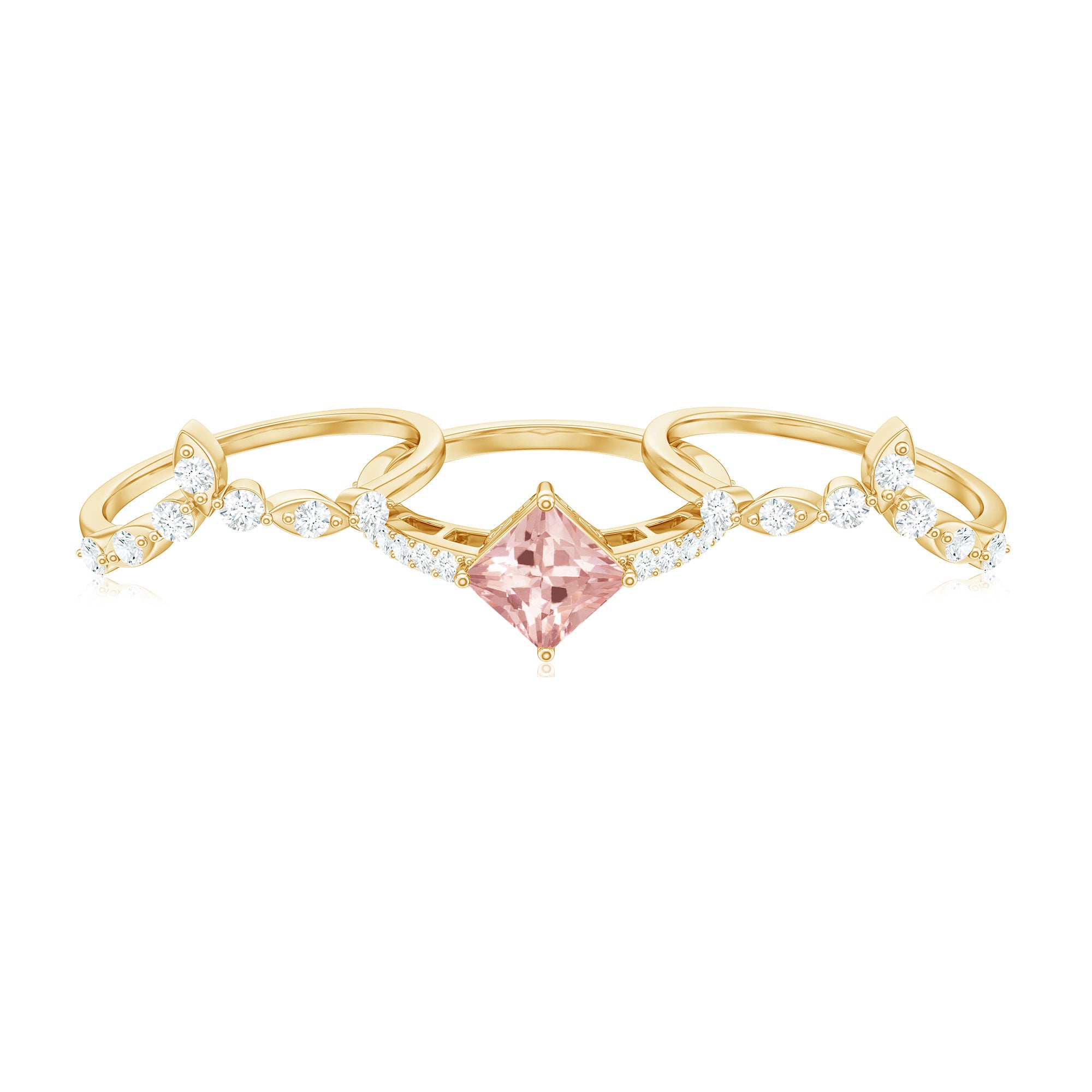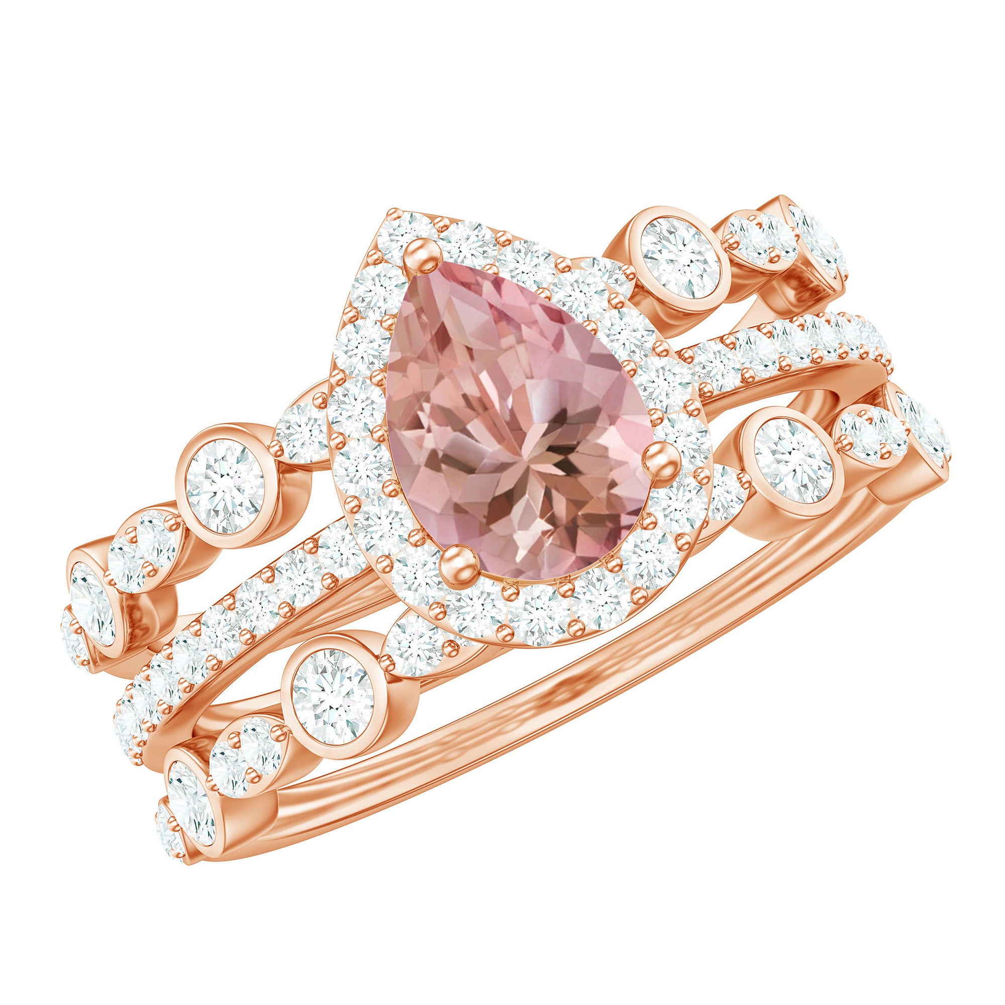 The delicate and romantic pink saturation of morganites enable our craftsmen to combine them with different colors of gold further helping us to curate fantastic morganite wedding band in white gold, yellow gold and rose gold. The great diversity in our engagement and wedding ring collection is achieved by different morganite shapes, settings and metal embellishments. Therefore, Rosec Jewels’ alluring collection of morganite wedding rings will best appeal to the women with an eye for delicate details and romantic pink hues.