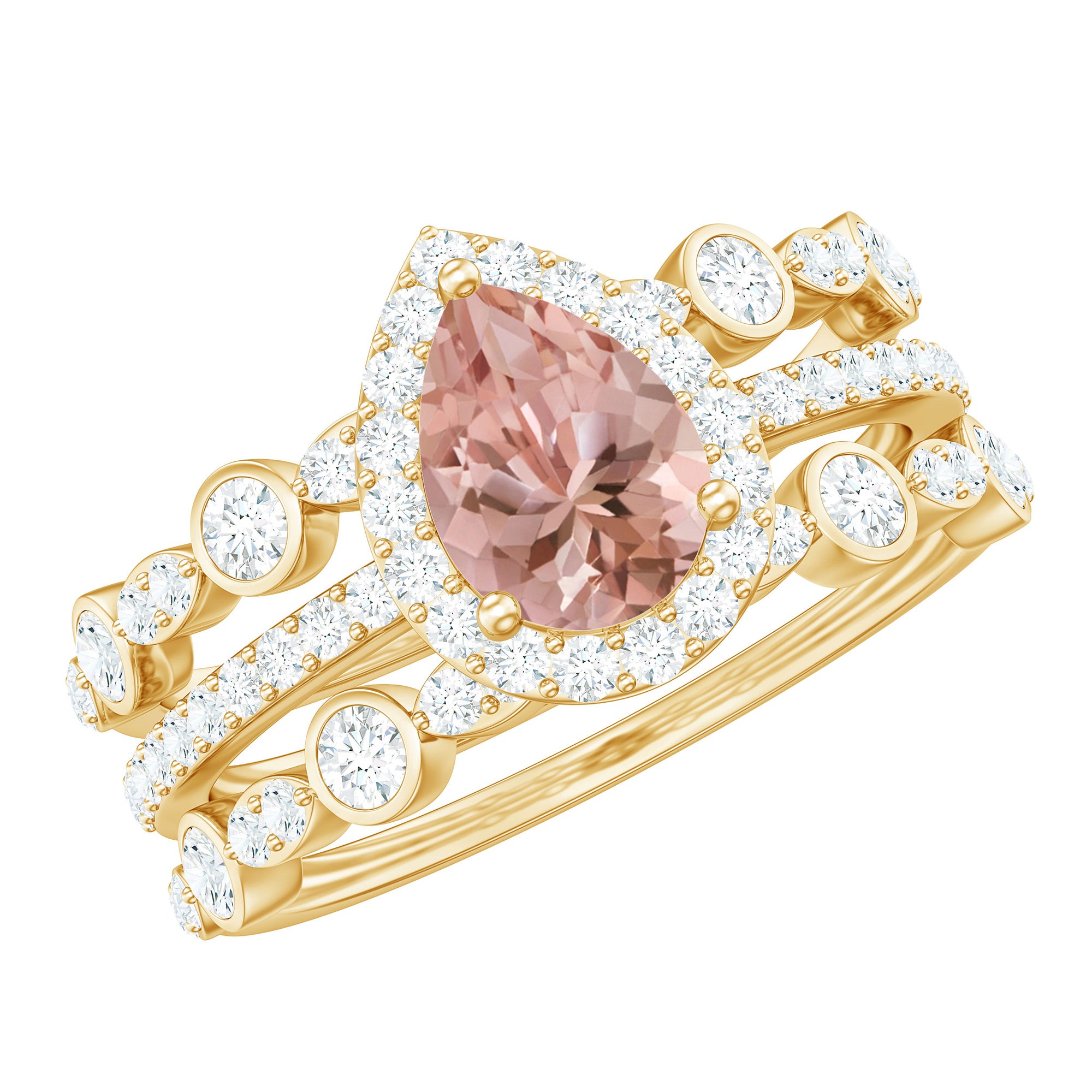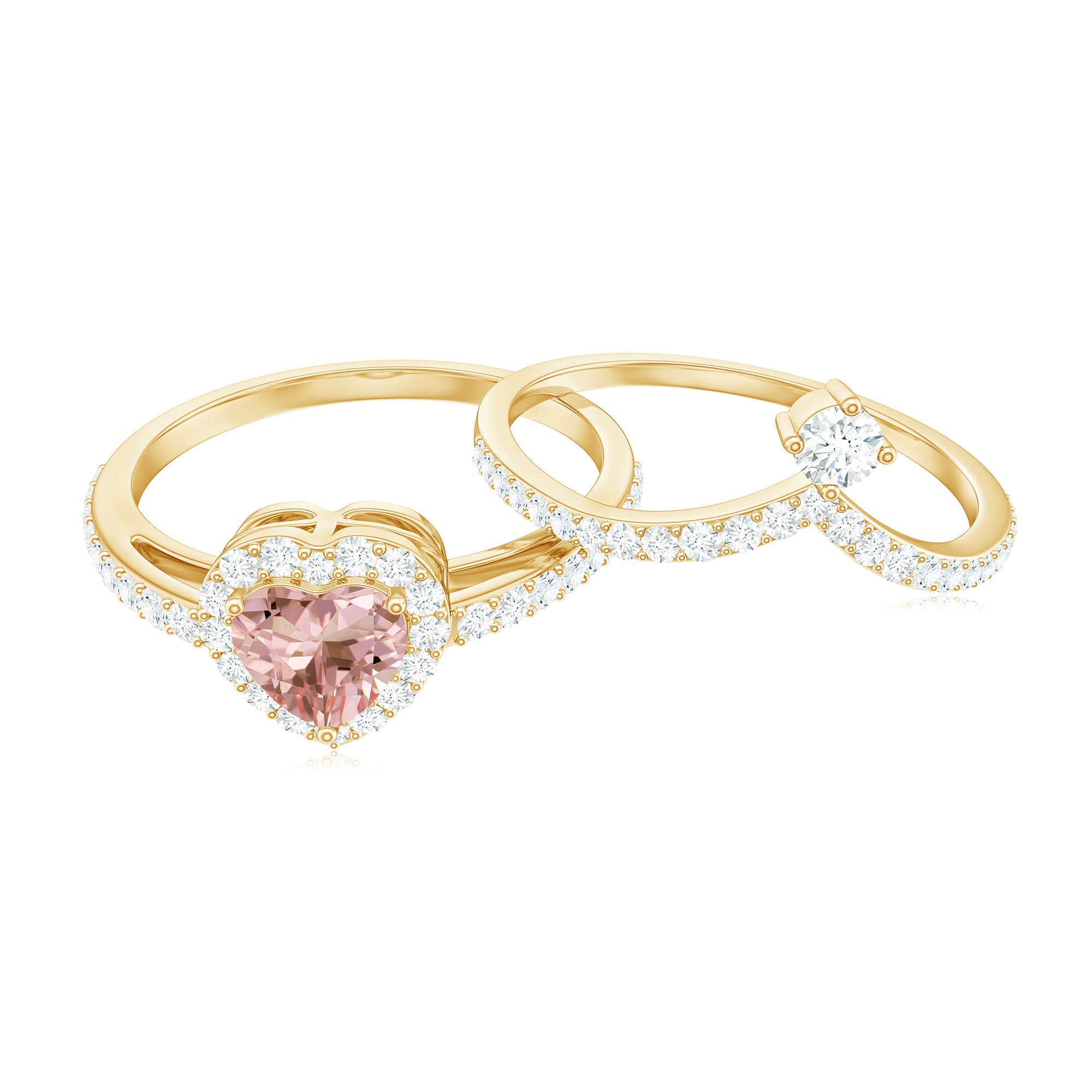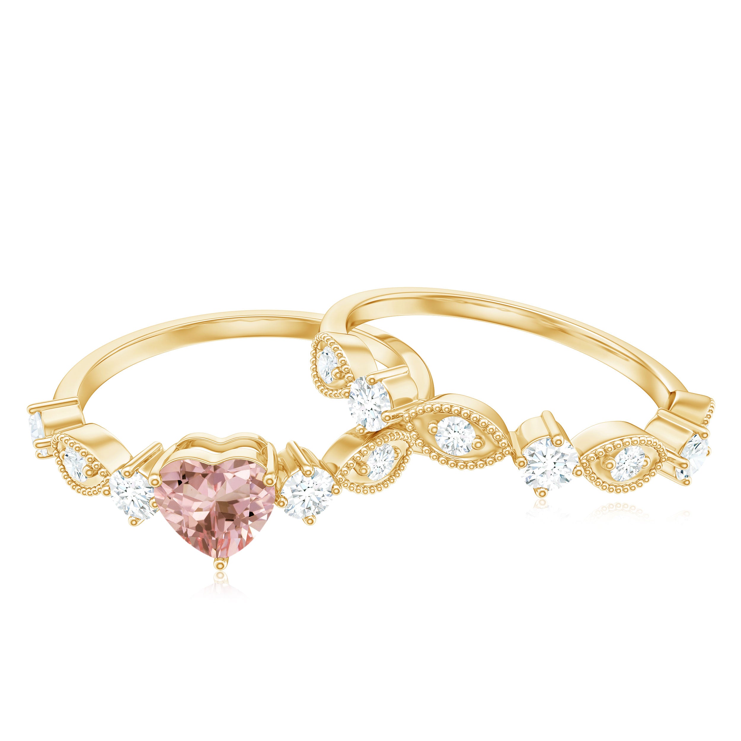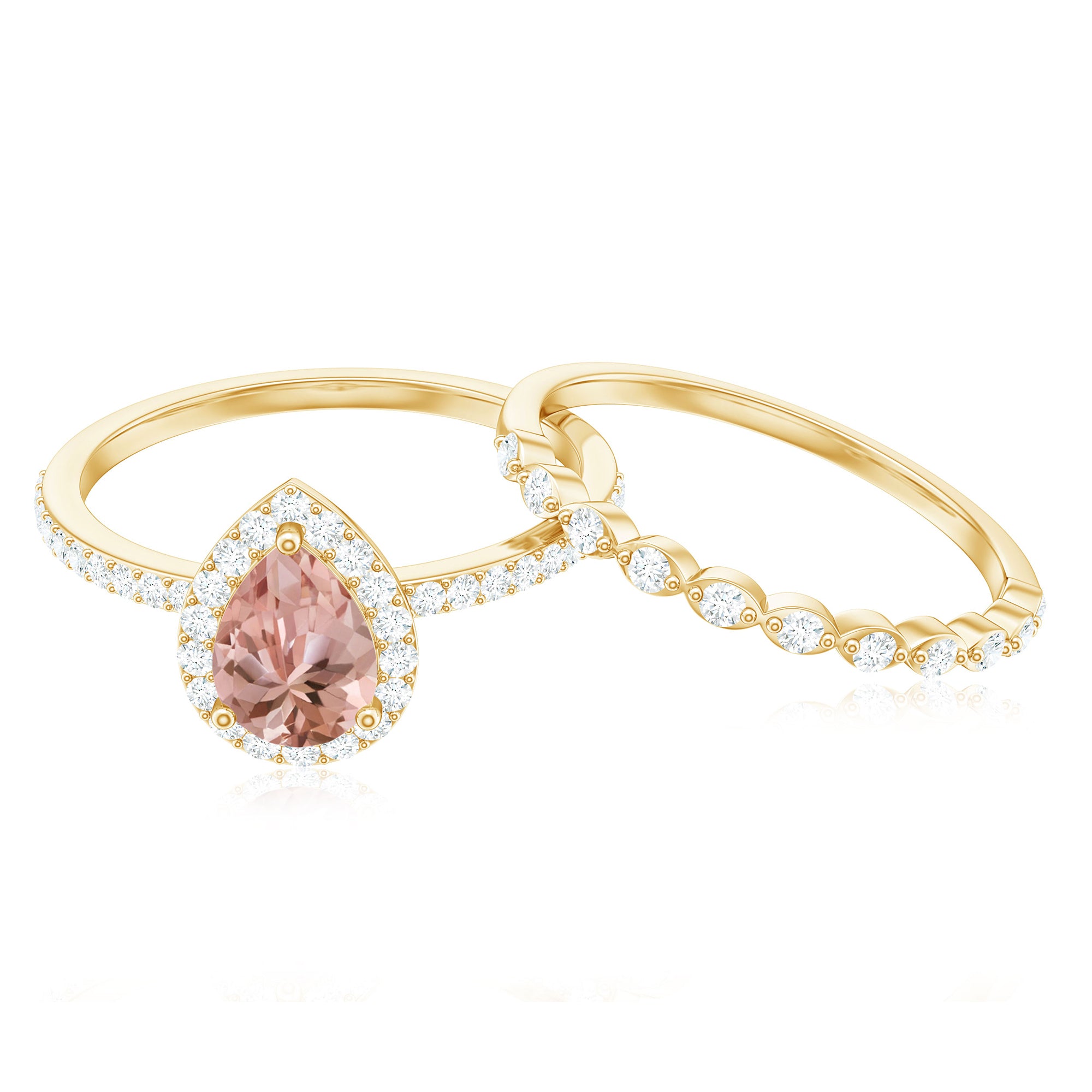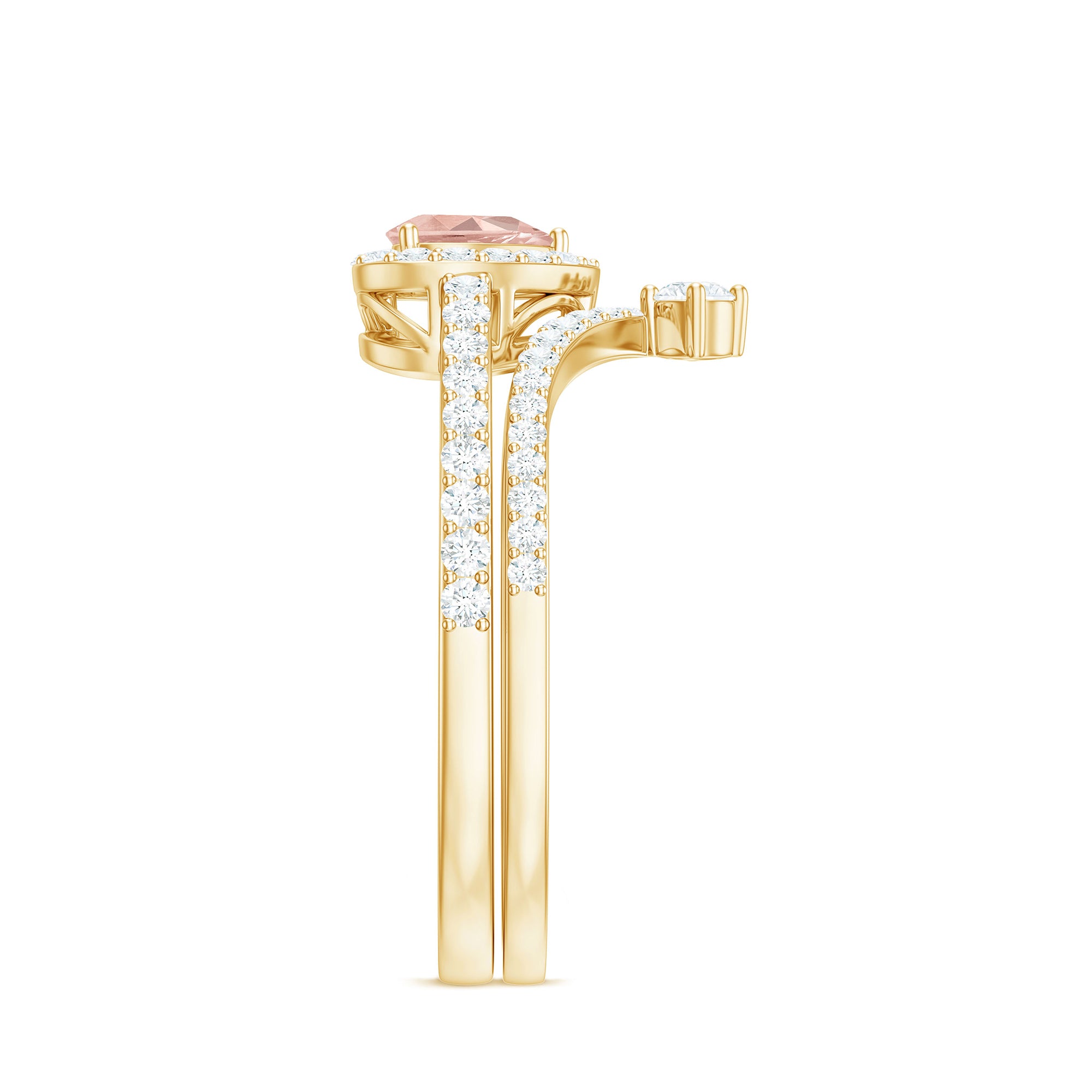 The delicate and romantic pink saturation of morganites enable our craftsmen to combine them with different colors of gold further helping us to curate fantastic morganite wedding band in white gold, yellow gold and rose gold. The great diversity in our engagement and wedding ring collection is achieved by different morganite shapes, settings and metal embellishments. Therefore, Rosec Jewels’ alluring collection of morganite wedding rings will best appeal to the women with an eye for delicate details and romantic pink hues.