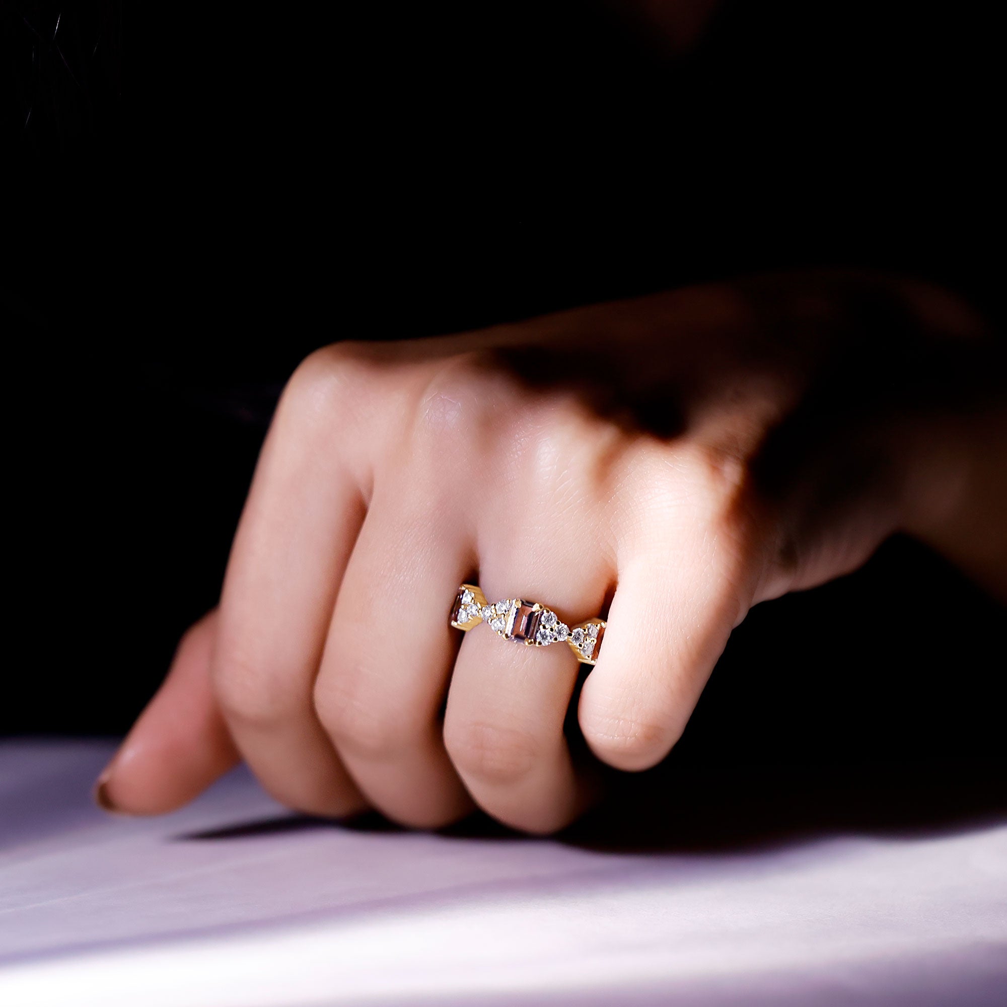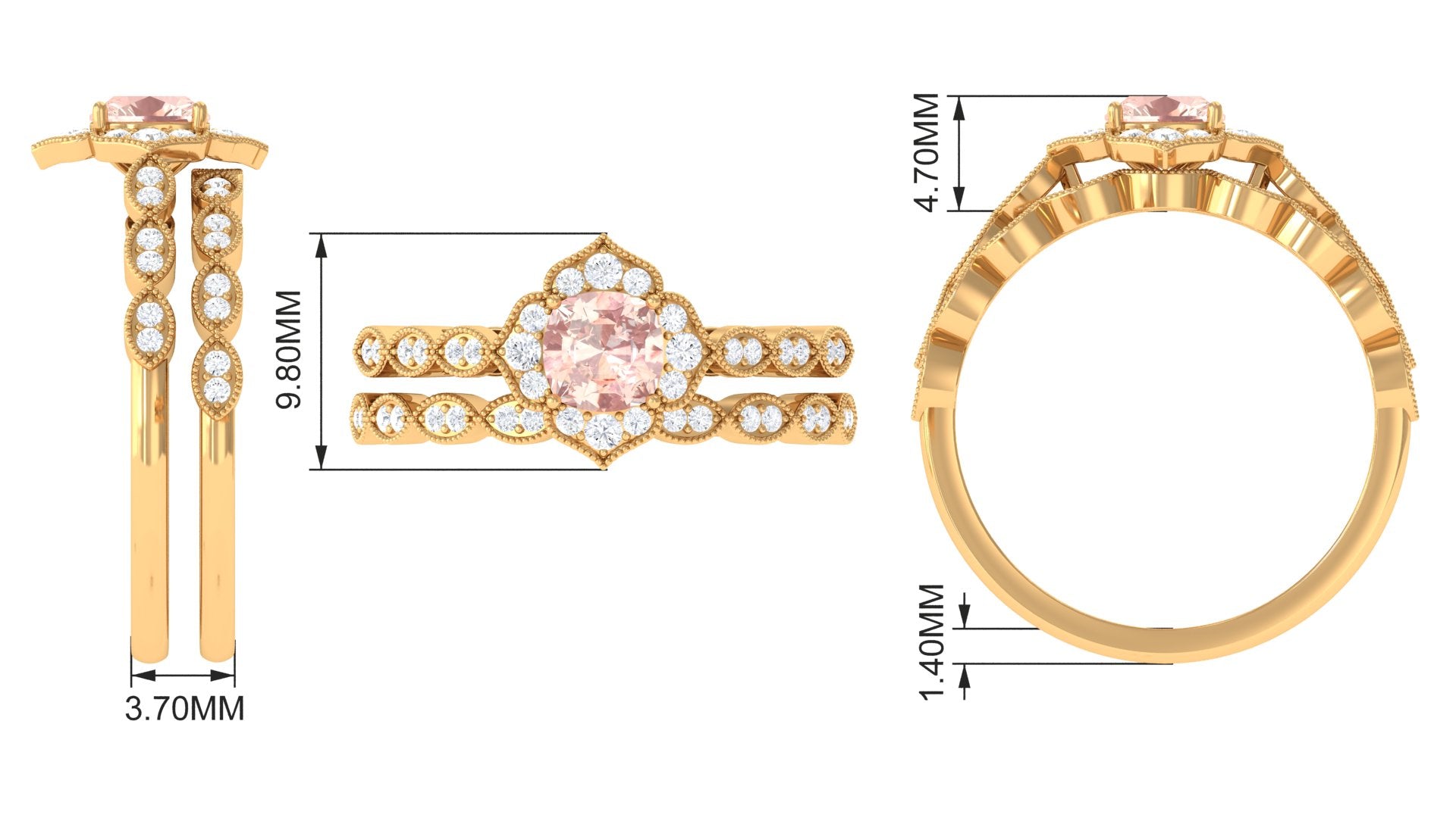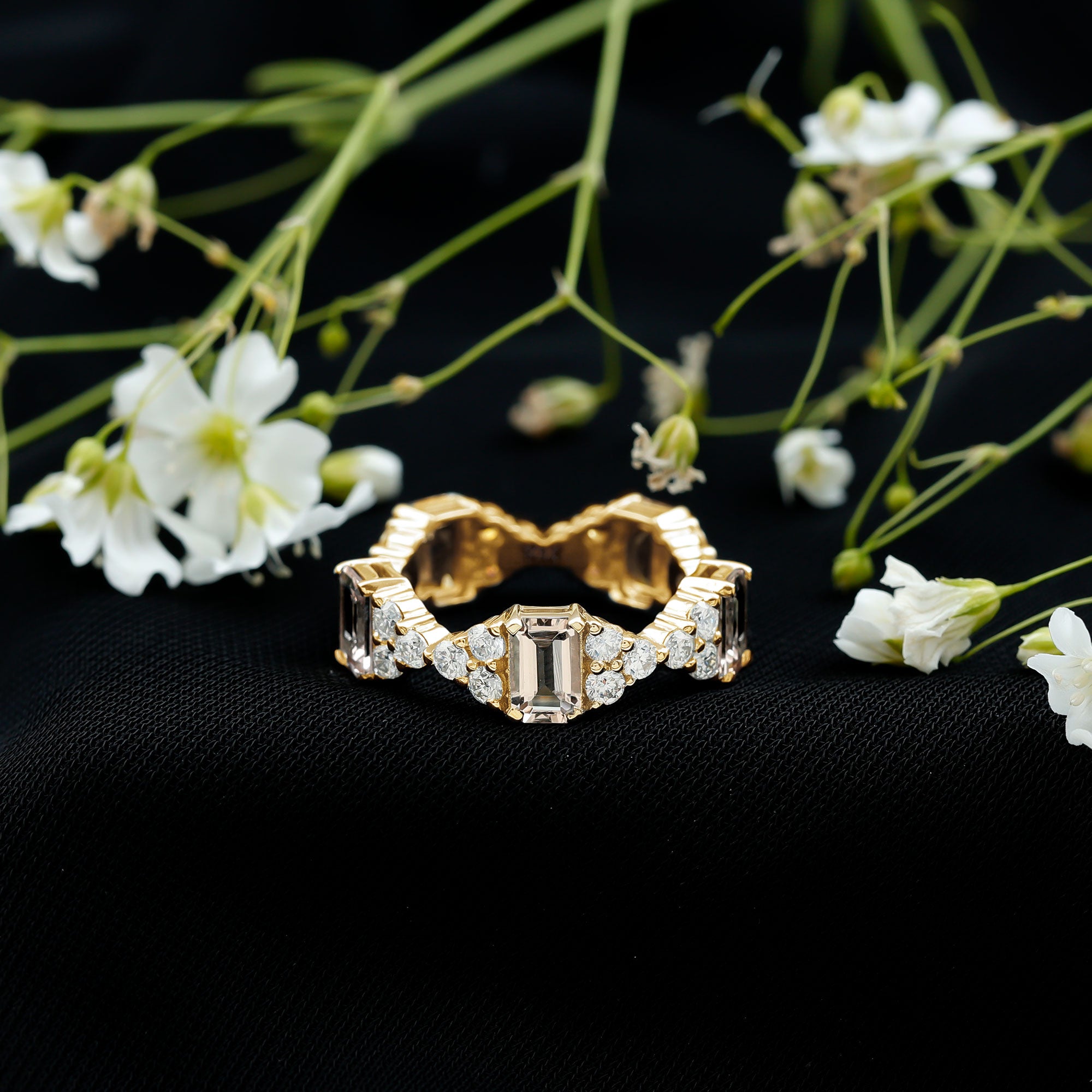 The morganite wedding rings with the delicate peach hue of the sister gemstone of emerald are truly adorable. The resemblance of morganite with pink diamond, has increased the popularity of morganites to craft adorable morganite wedding rings for women. Alongside fantastic durability, the overall quality of morganites is assured by our lapidarist with a keen eye for perfection by going through the 4 C’s of Gemstone.
