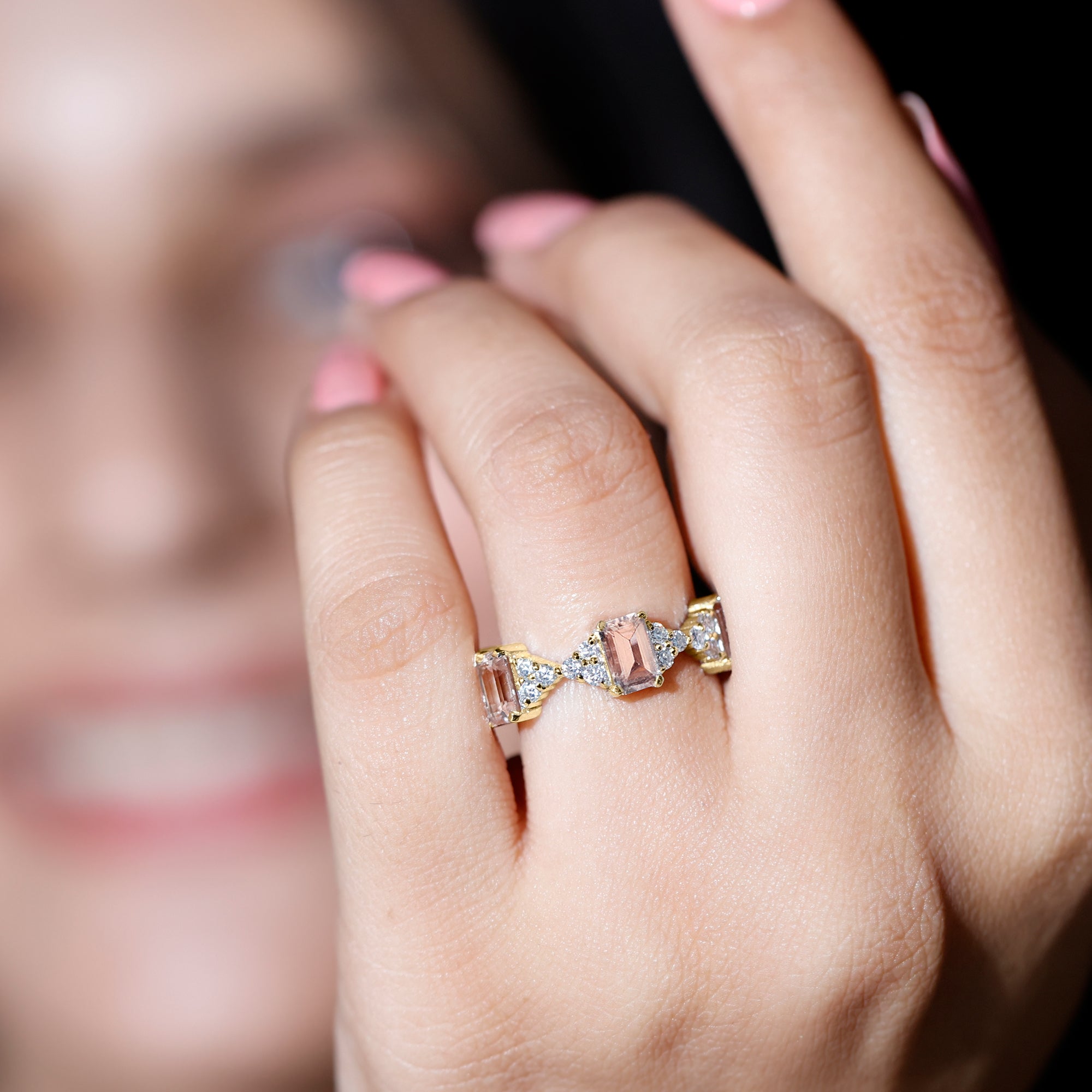 • Cut: The hardness of morganite rough makes it possible to cut it into any desirable shape of gemstone in morganite wedding bands.