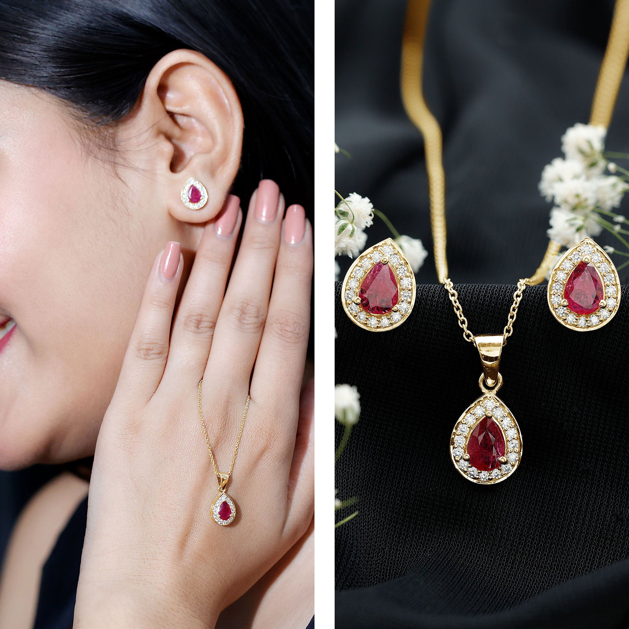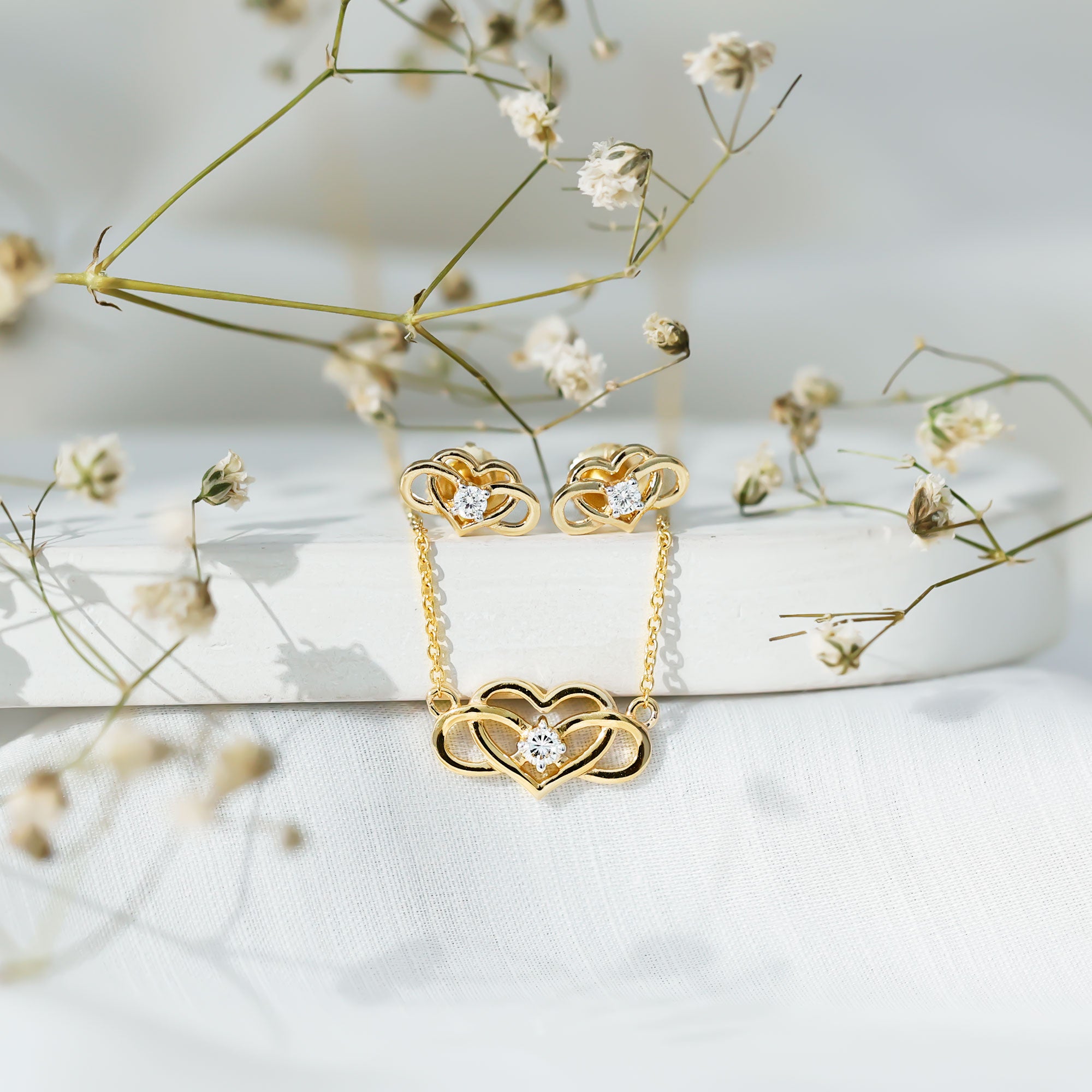 The pendant necklace and earrings set completes your look for the occasion. Wearing matching gemstone jewelry is very much in trend, and many women take this route to accentuate their outfit. Jewelry sets are a great way to bring out the best in you and outshine everyone else in the room. We think they surely are. We do not want you to miss that chance; hence, here is our vibrant collection of jewelry sets. They come with different gemstones, from diamonds and moissanites to rubies, emeralds, and amethysts. Classic as well as contemporary designs are part of this collection. They come in dainty, medium, and big sizes. Choose the one that speaks to and for you. With our wide range, each woman is sure to find something appealing for herself.