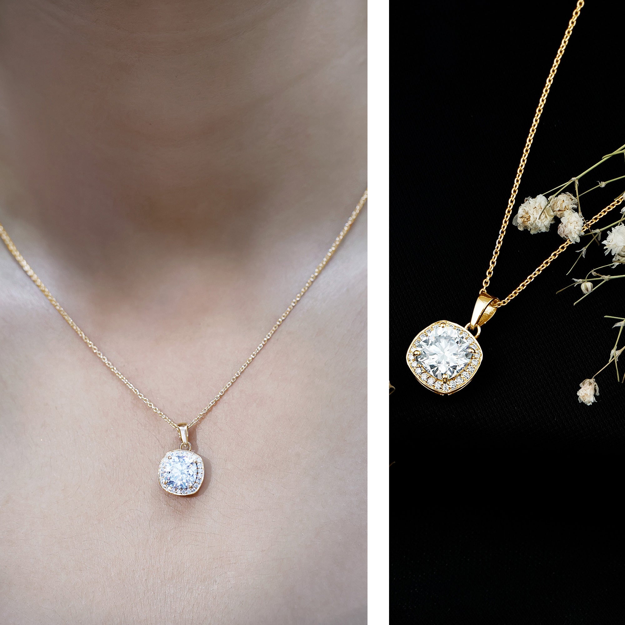 Some popular necklace for wedding are solitaire, halo, vintage.