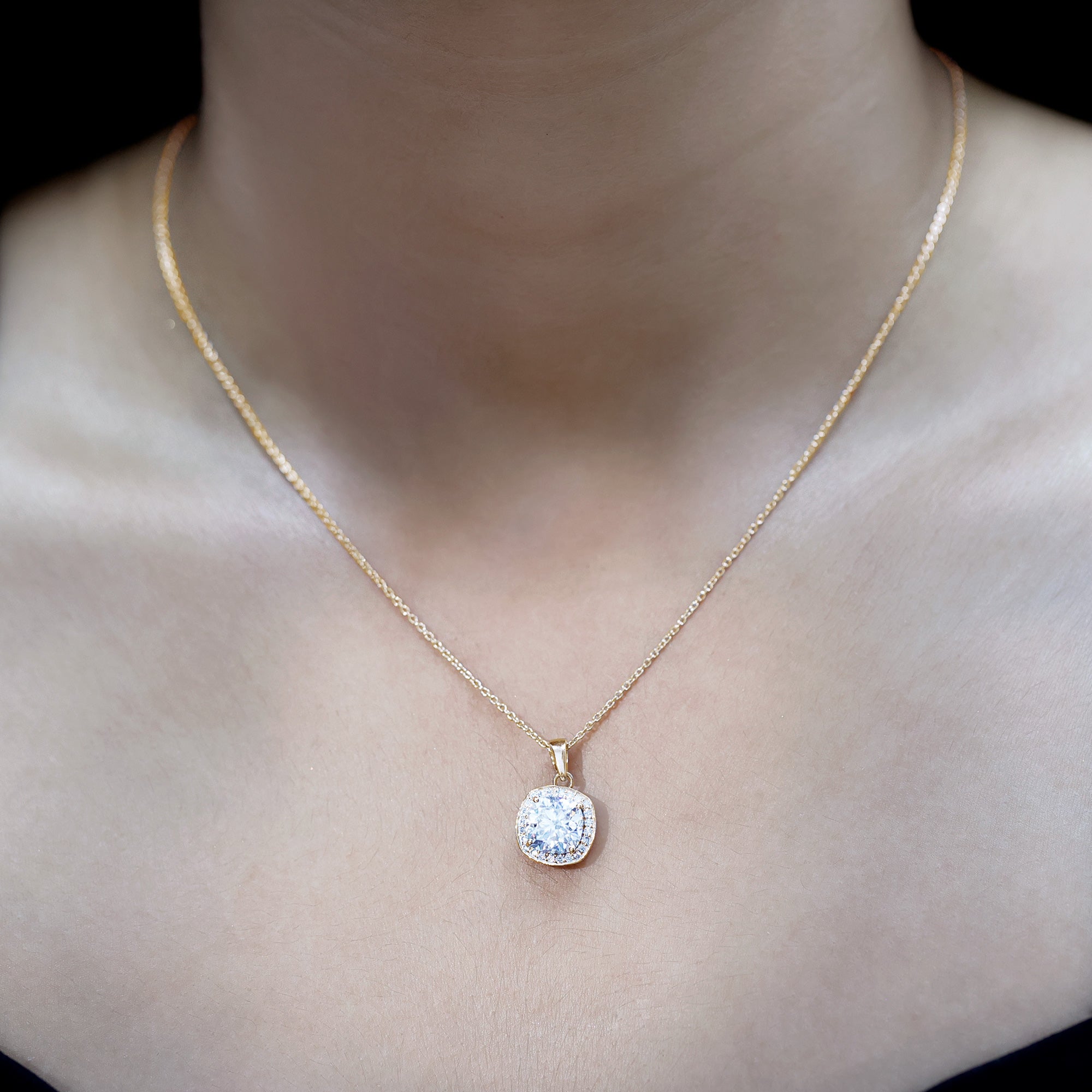 Halo Necklace: Halo necklaces are for those who love extra sparkle in their necklaces, besides the shine of single gemstone. Central gemstone is surrounded by dainty shining or colored gemstones of different shapes to make different designs. Elegant and eye-catching, these necklaces are statement pieces for your every moment.