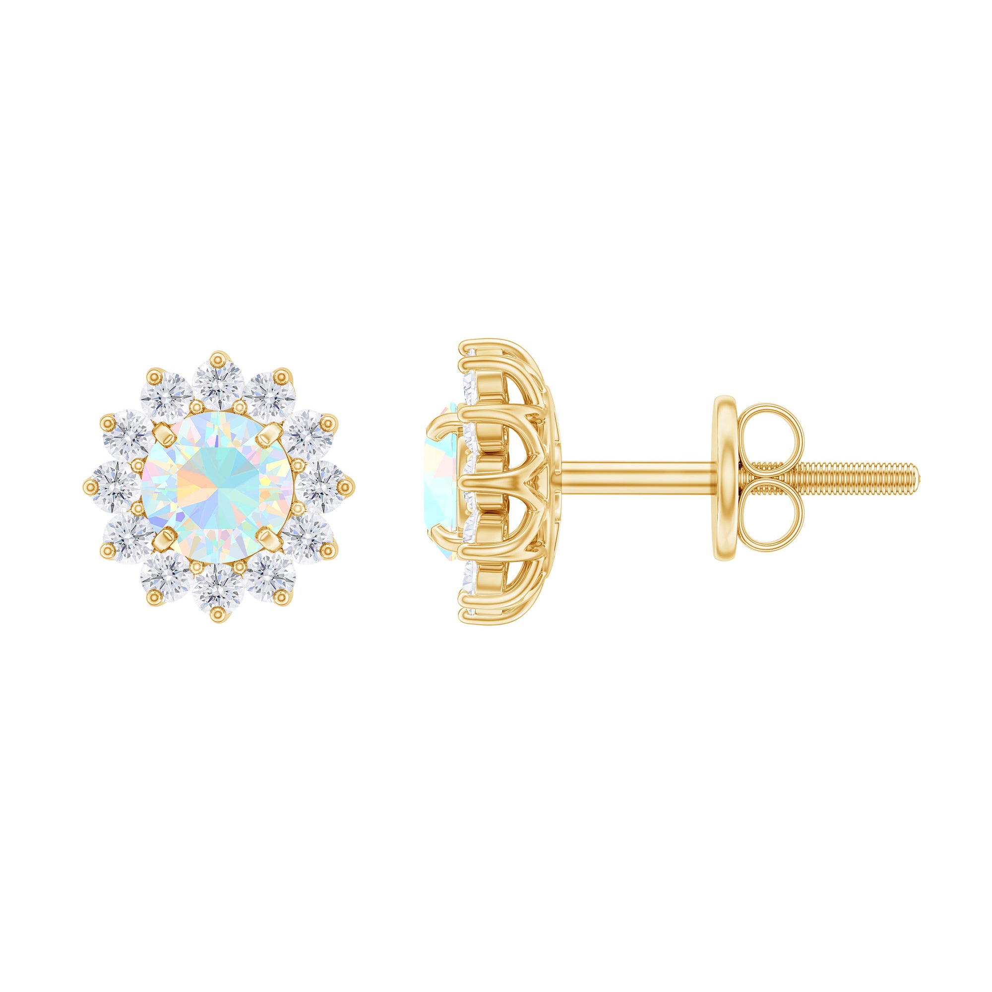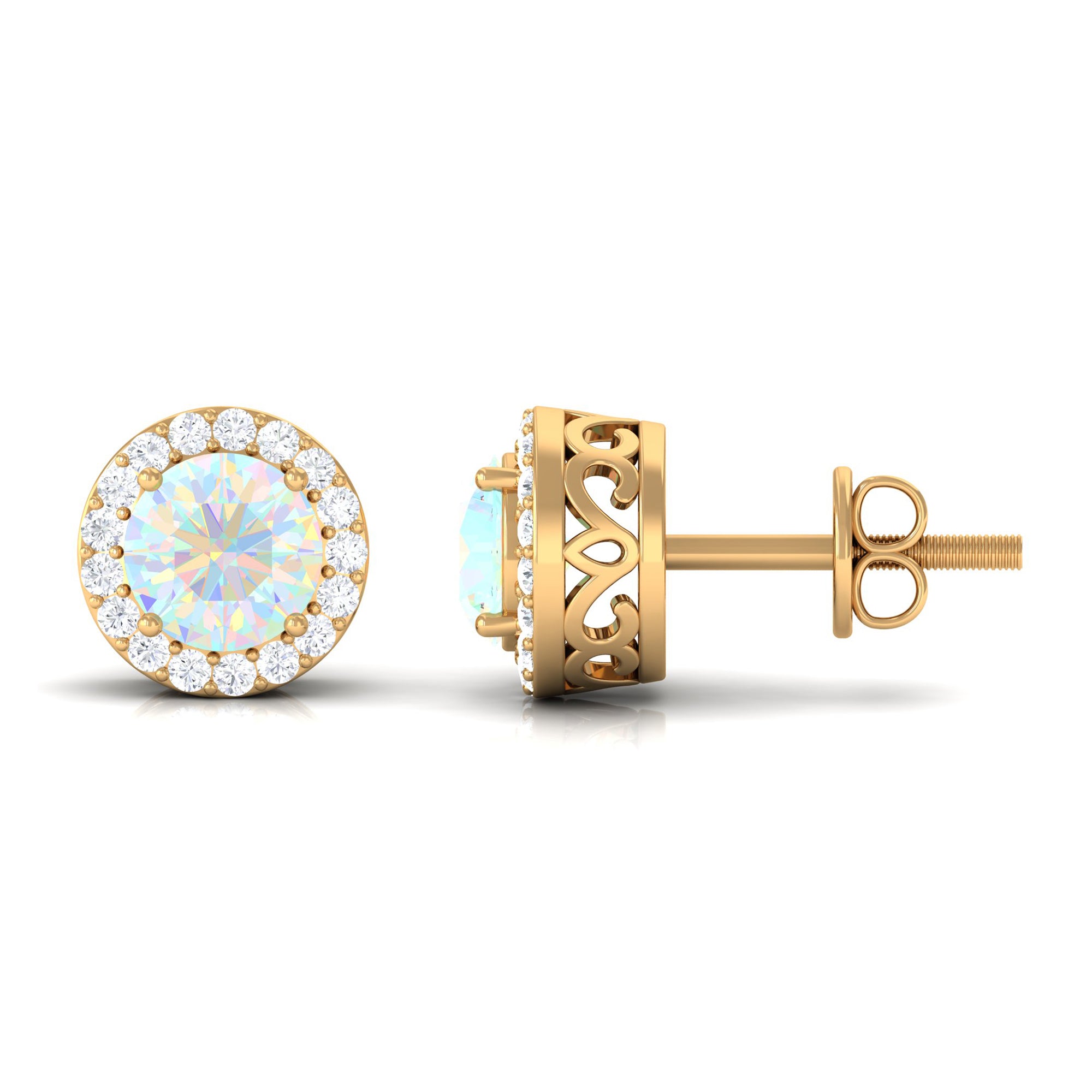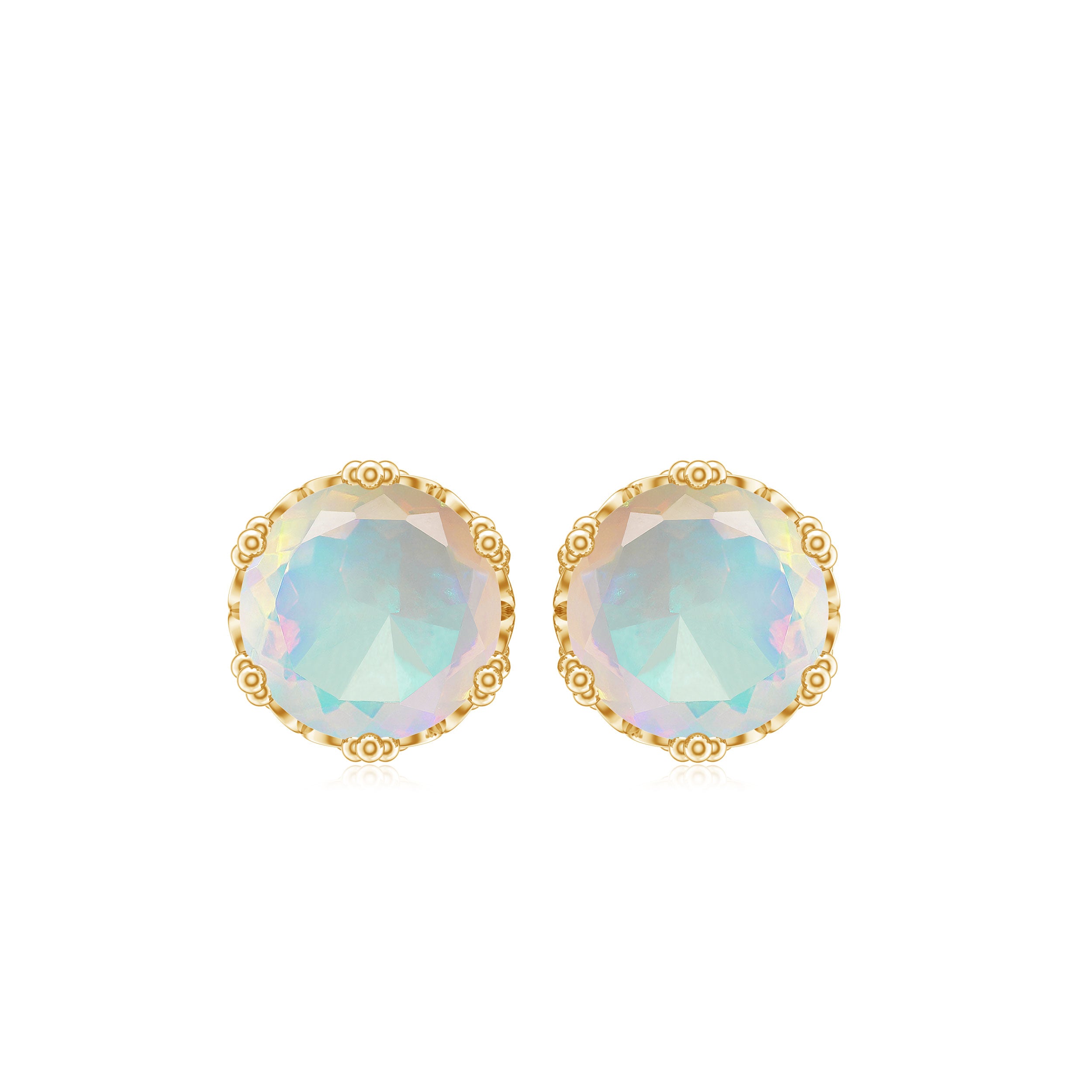 Meant to be flaunted every day, Genuine Opal Stud Earrings are worn directly through the earlobe (often secured by a screw, latch, or butterfly post back). To effortlessly lend their classic and minimalist style an eye-catching colorful touch, they are adorned with the Centerpiece of Ethiopian Opal. The best part? You could go from teaming up these Opal Gold Stud Earrings with your work ensembles or complement your fancy attires with their understated appeal, they know how to fit with every look.