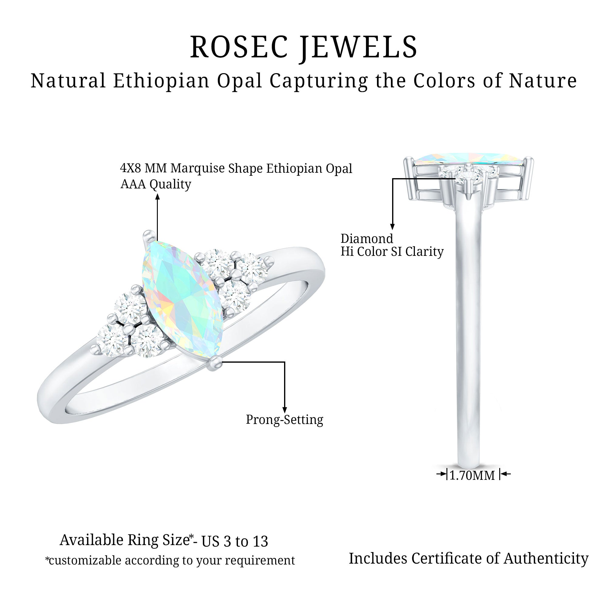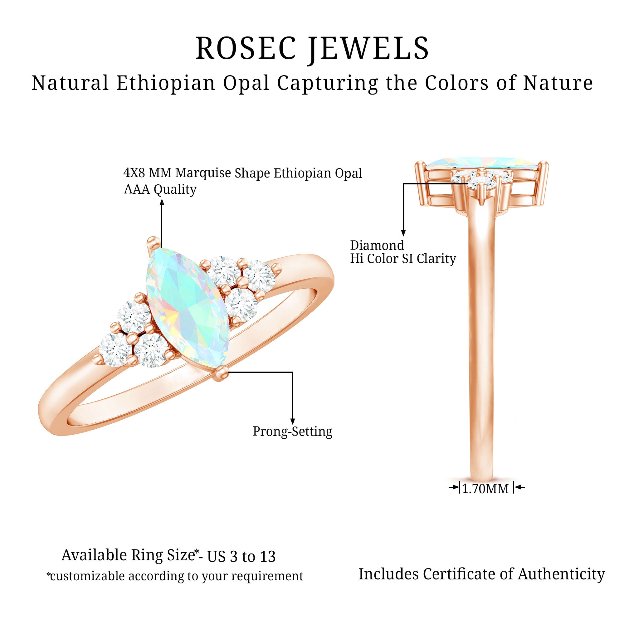 Our natural opal rings are available online at Rosec Jewels are authentic, ethically sourced, and come with a certificate. Explore the wide range and various designs of real opal rings like solitaire, halo, vintage-inspired, and others. Ethiopian opal rings have rainbow colors and look more beautiful with diamond and Moissanite.