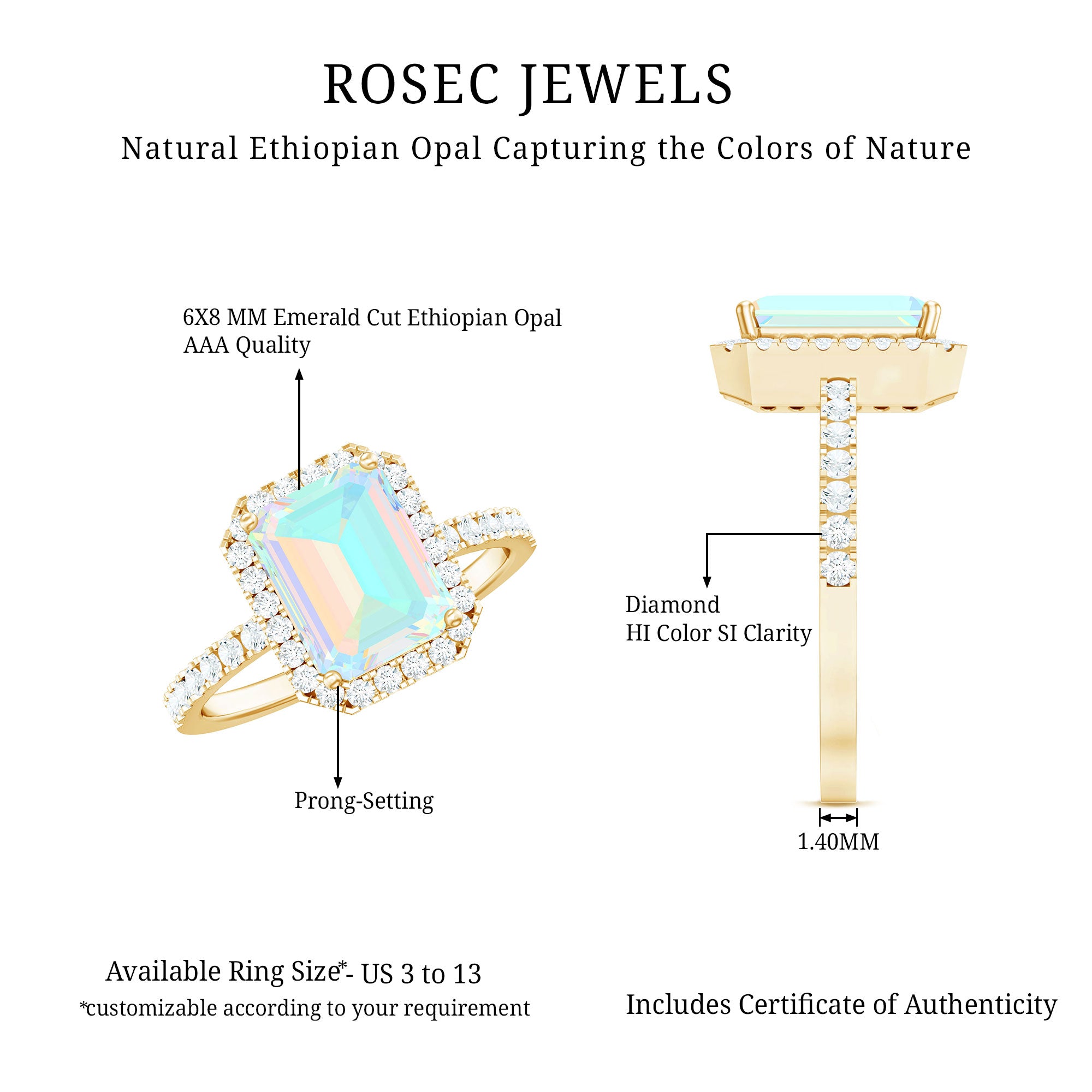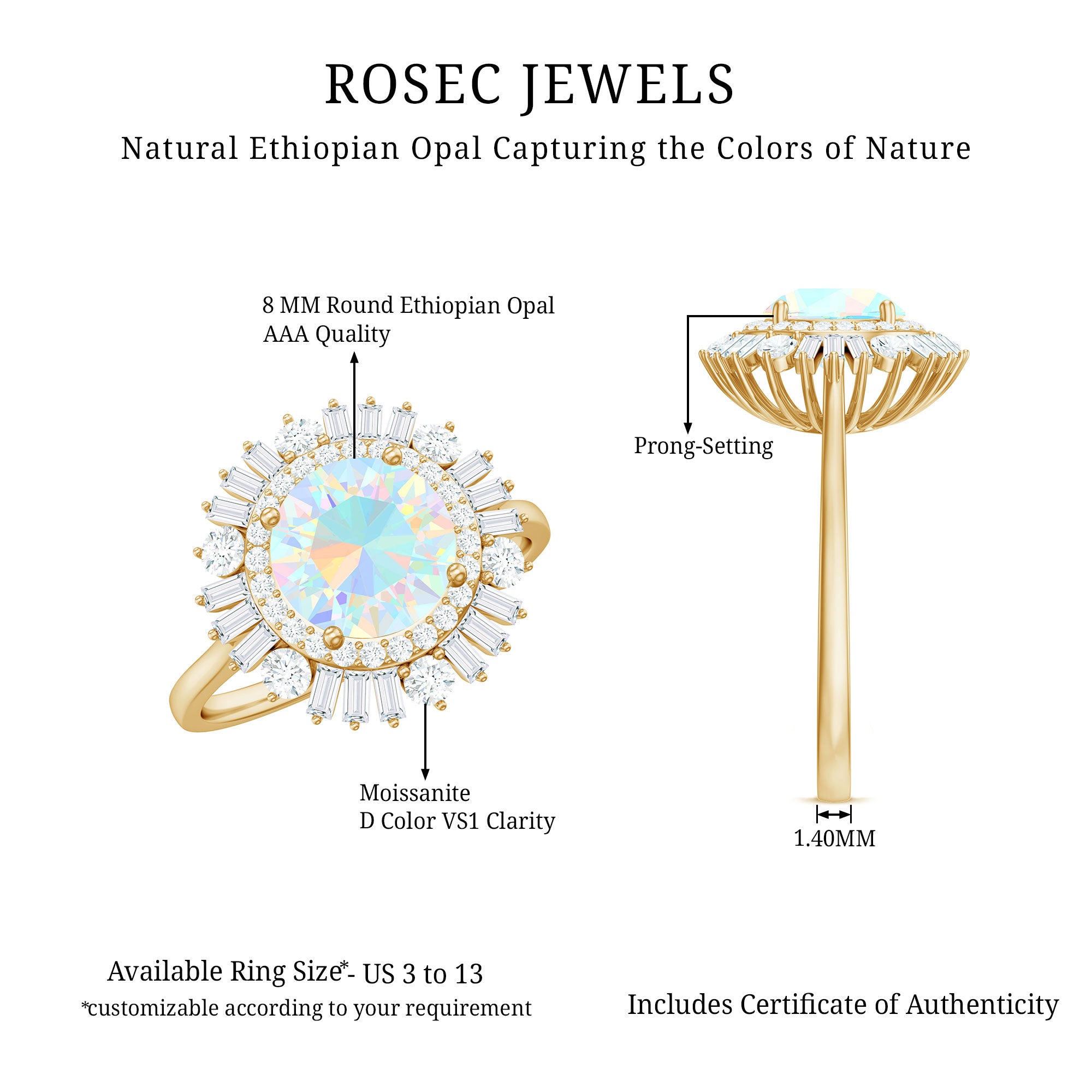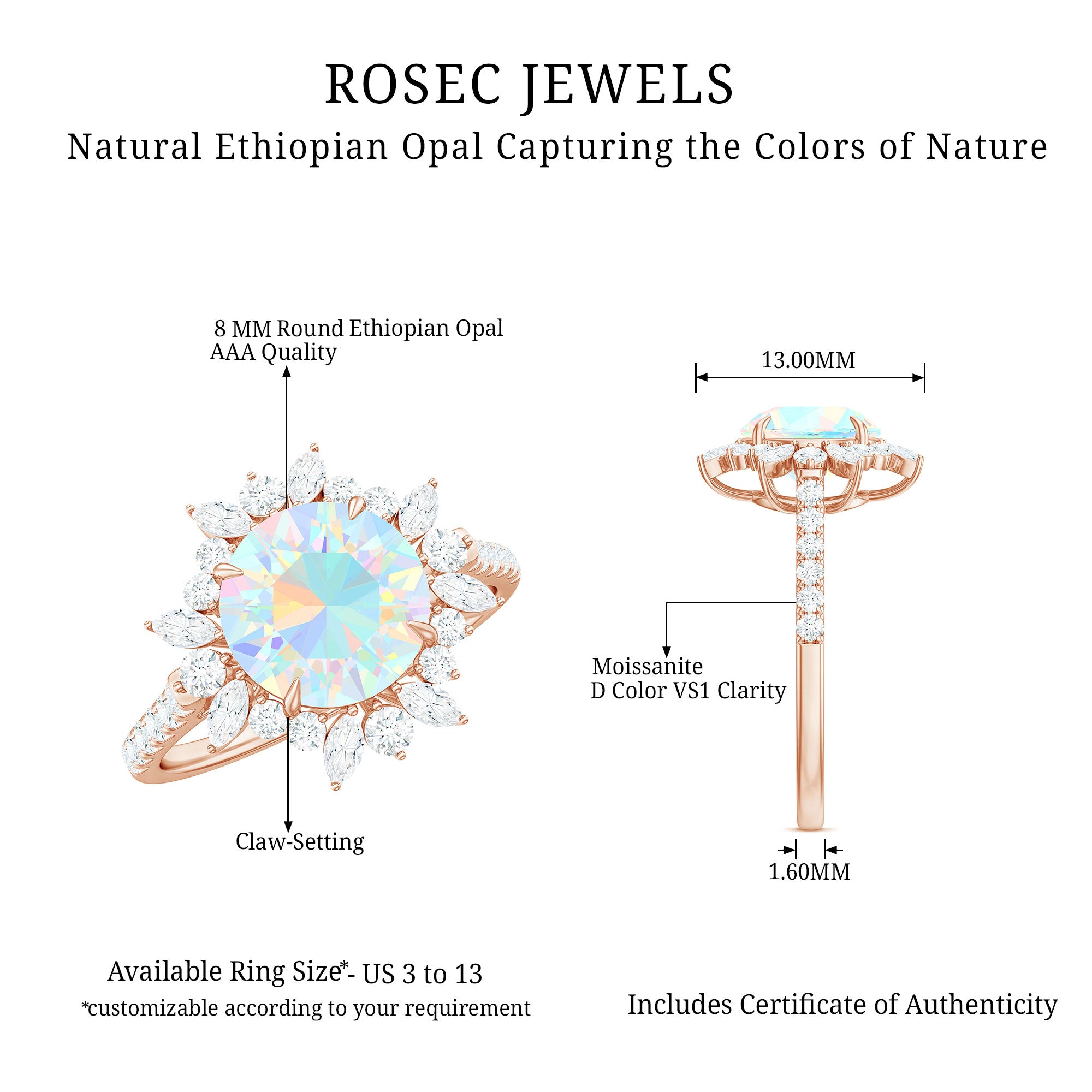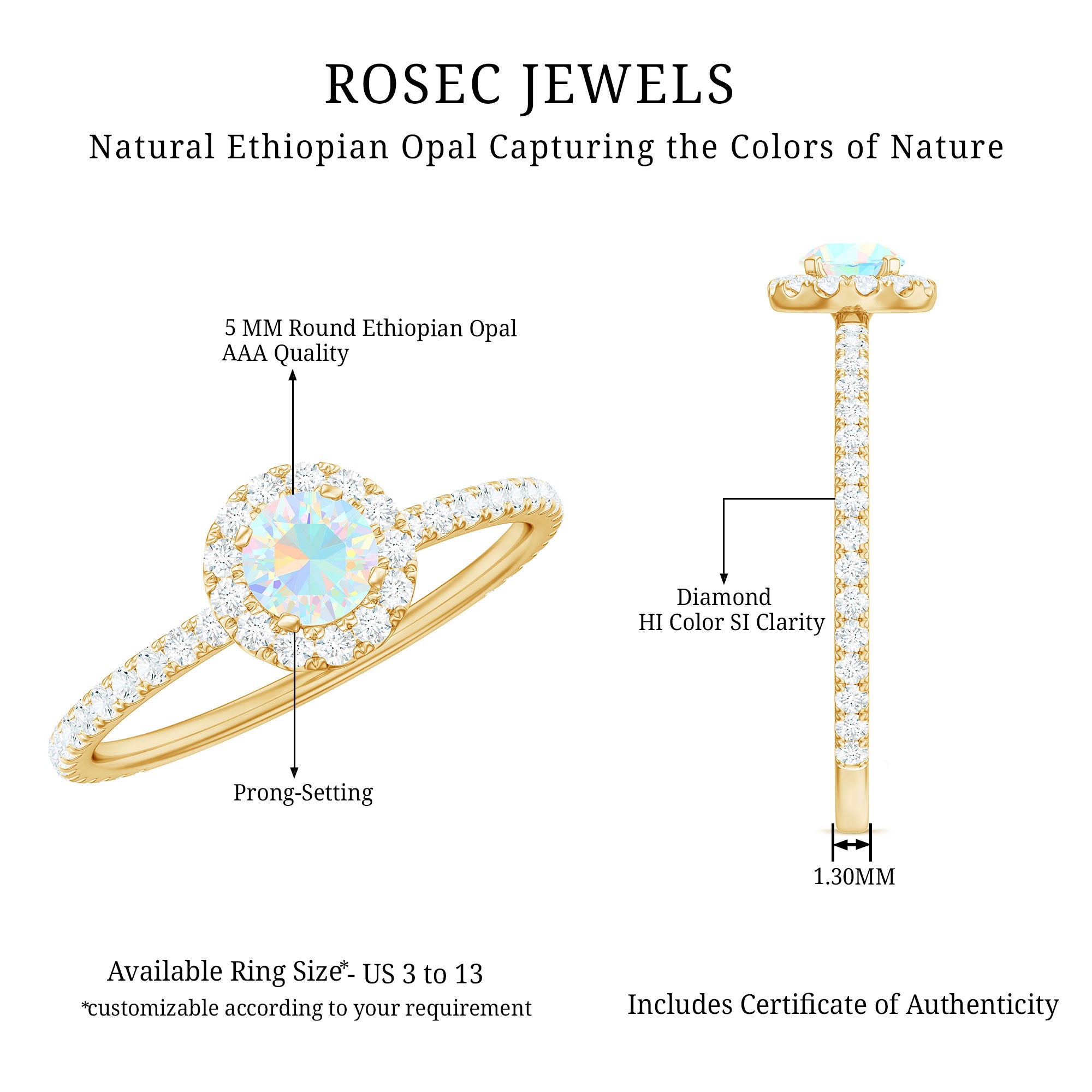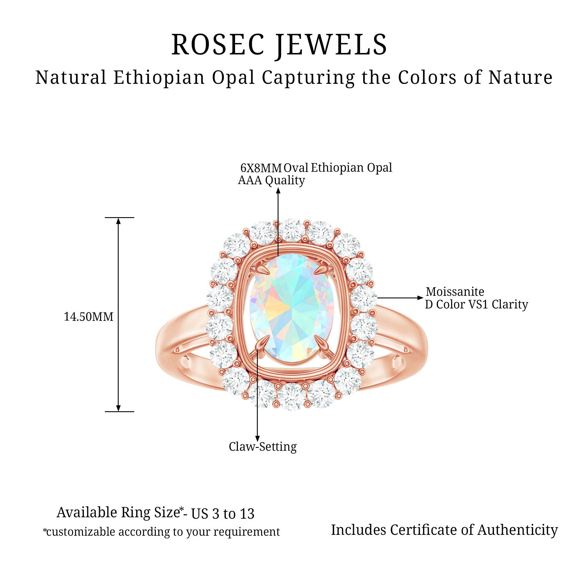 Our natural opal rings are available online at Rosec Jewels are authentic, ethically sourced, and come with a certificate. Explore the wide range and various designs of real opal rings like solitaire, halo, vintage-inspired, and others. Ethiopian opal rings have rainbow colors and look more beautiful with diamond and Moissanite.