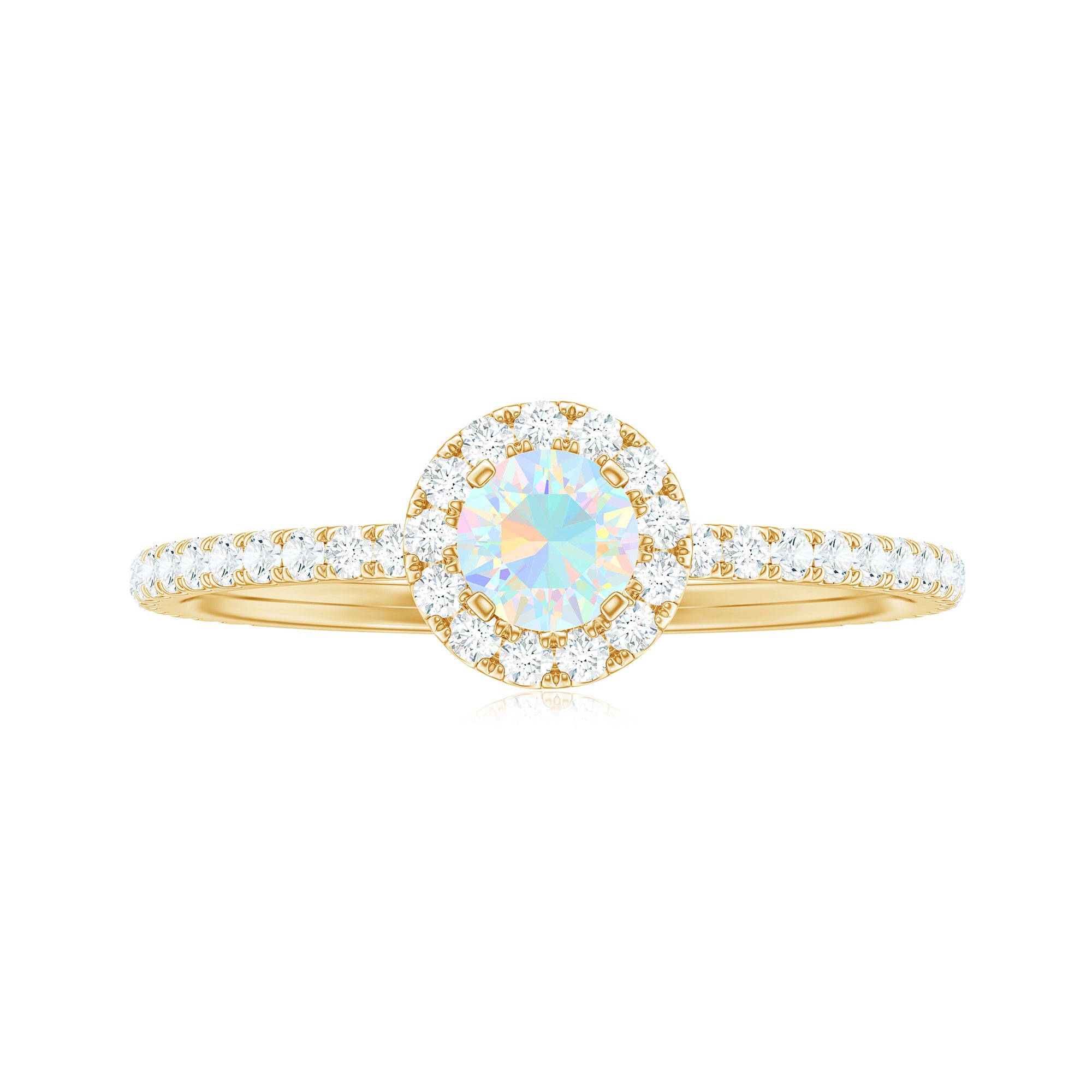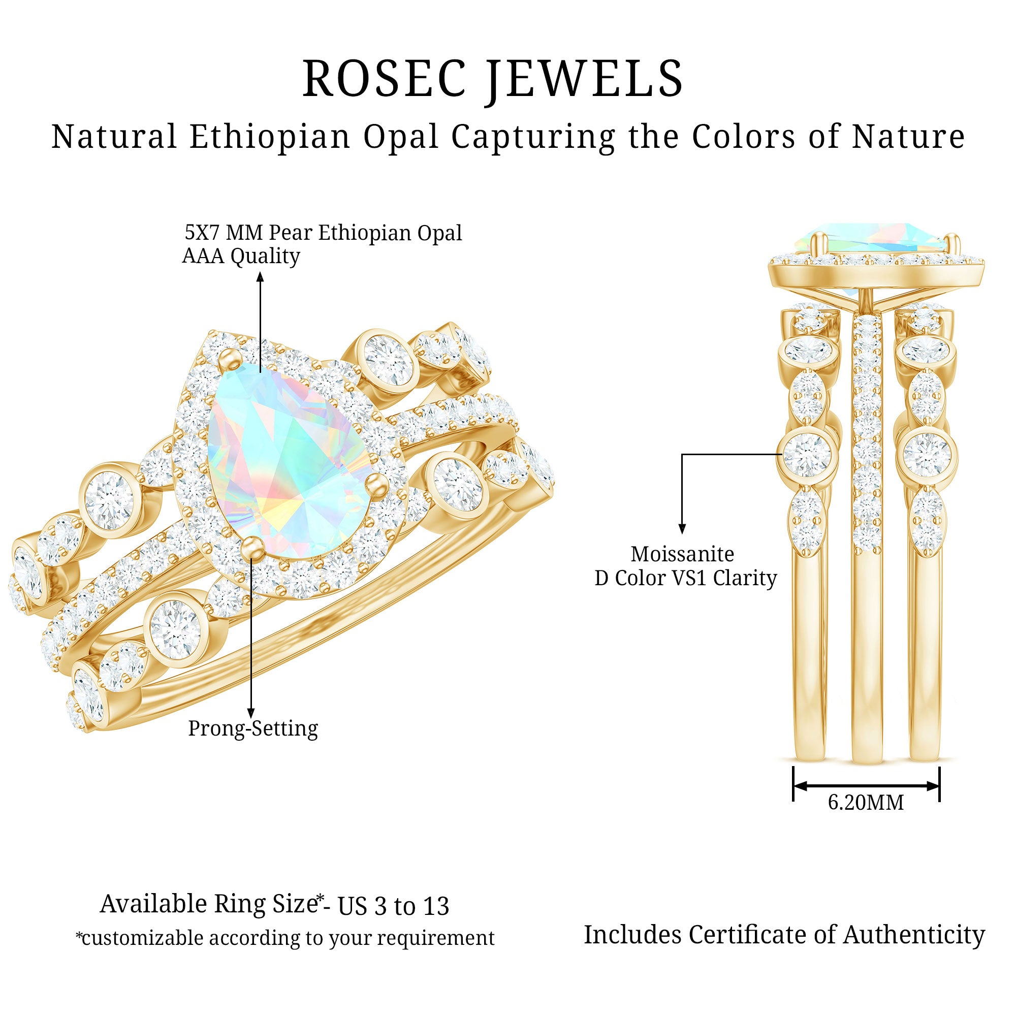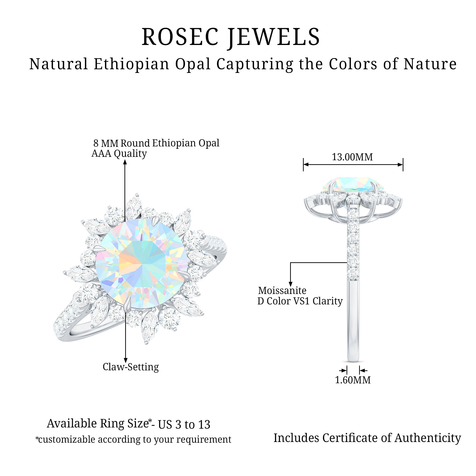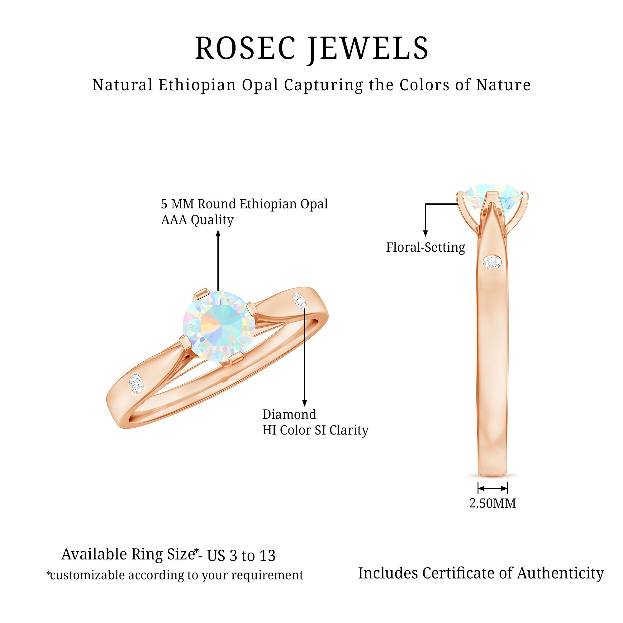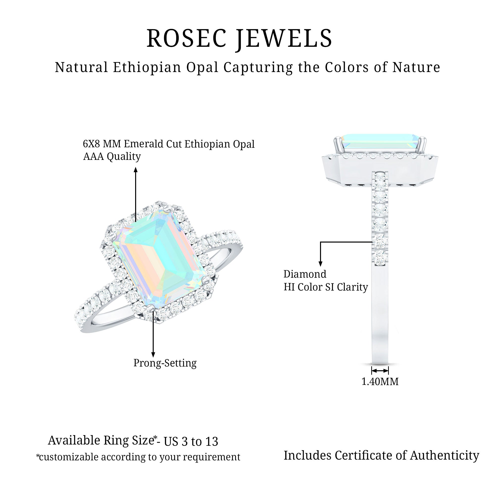 Our natural opal rings are available online at Rosec Jewels are authentic, ethically sourced, and come with a certificate. Explore the wide range and various designs of real opal rings like solitaire, halo, vintage-inspired, and others. Ethiopian opal rings have rainbow colors and look more beautiful with diamond and Moissanite.