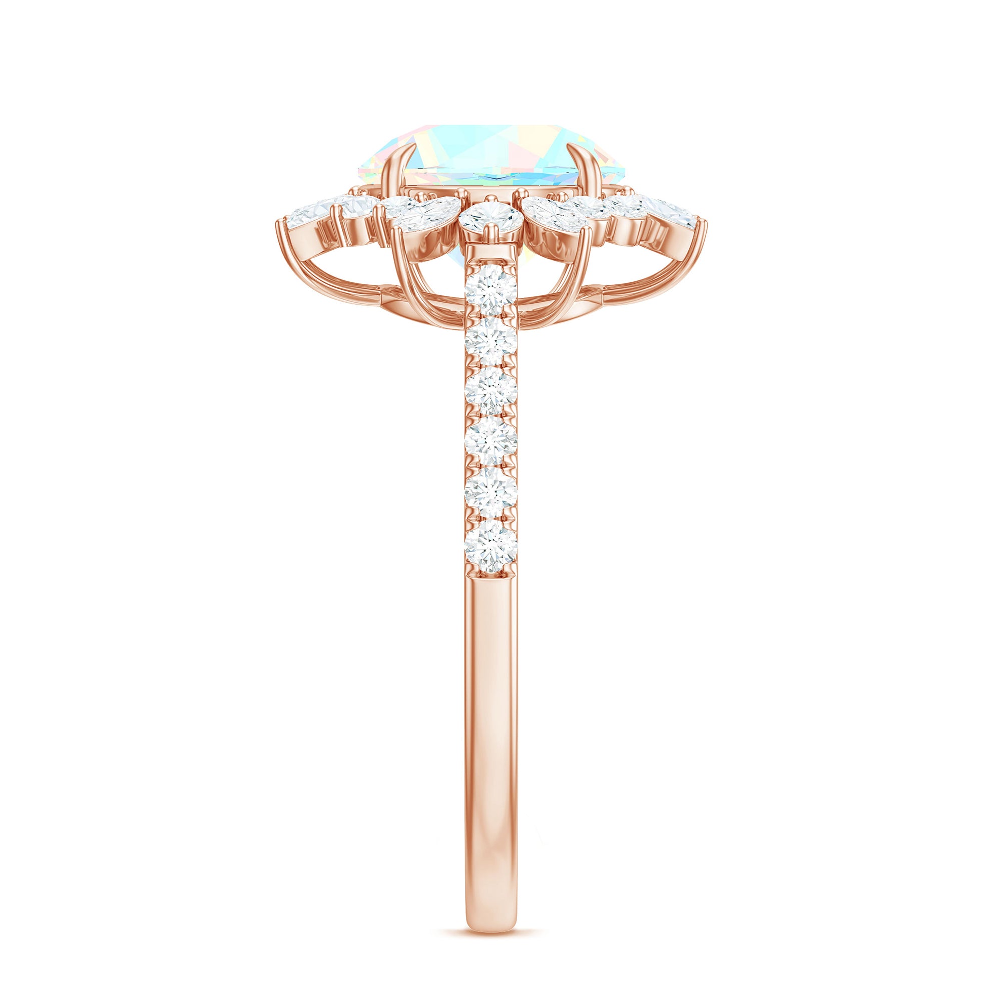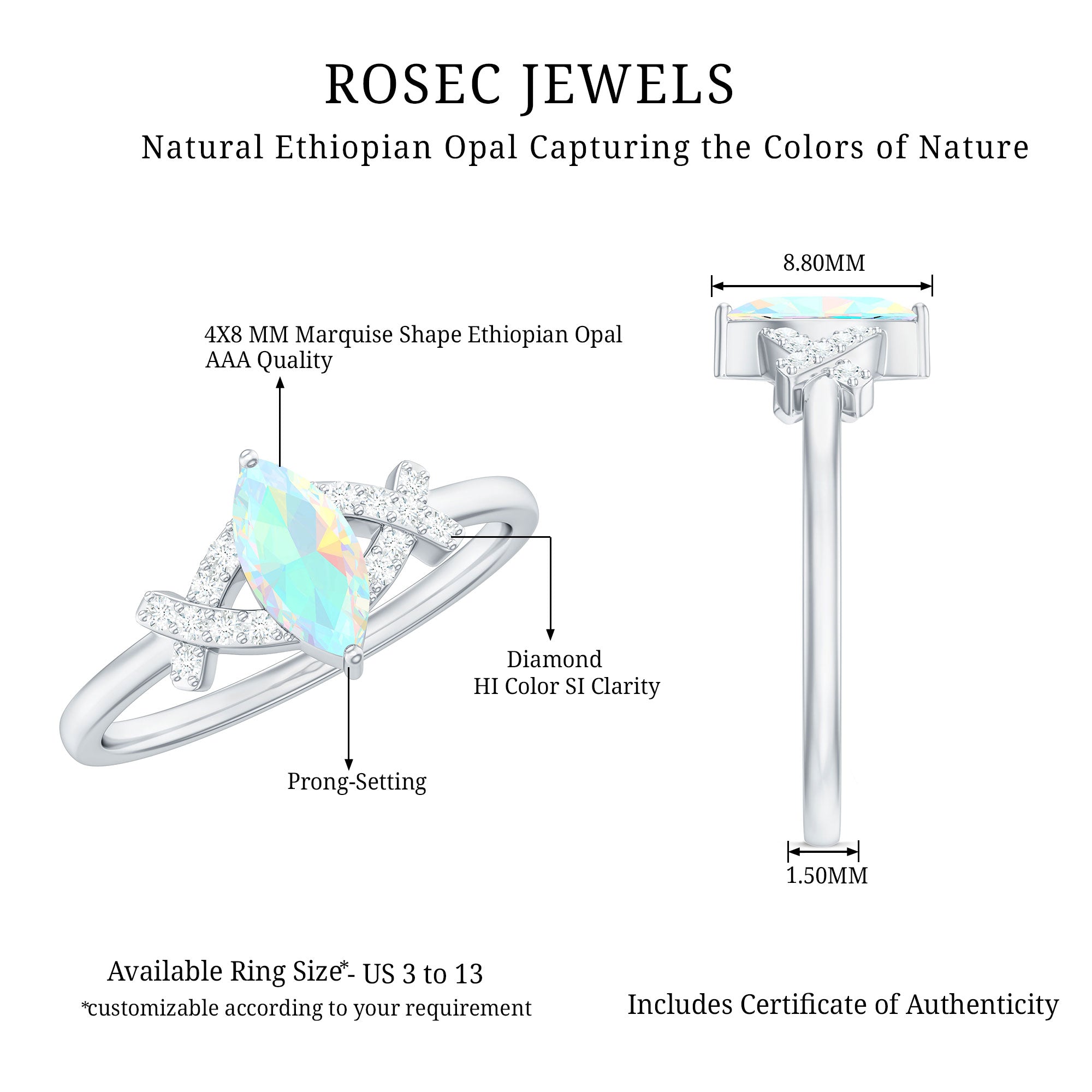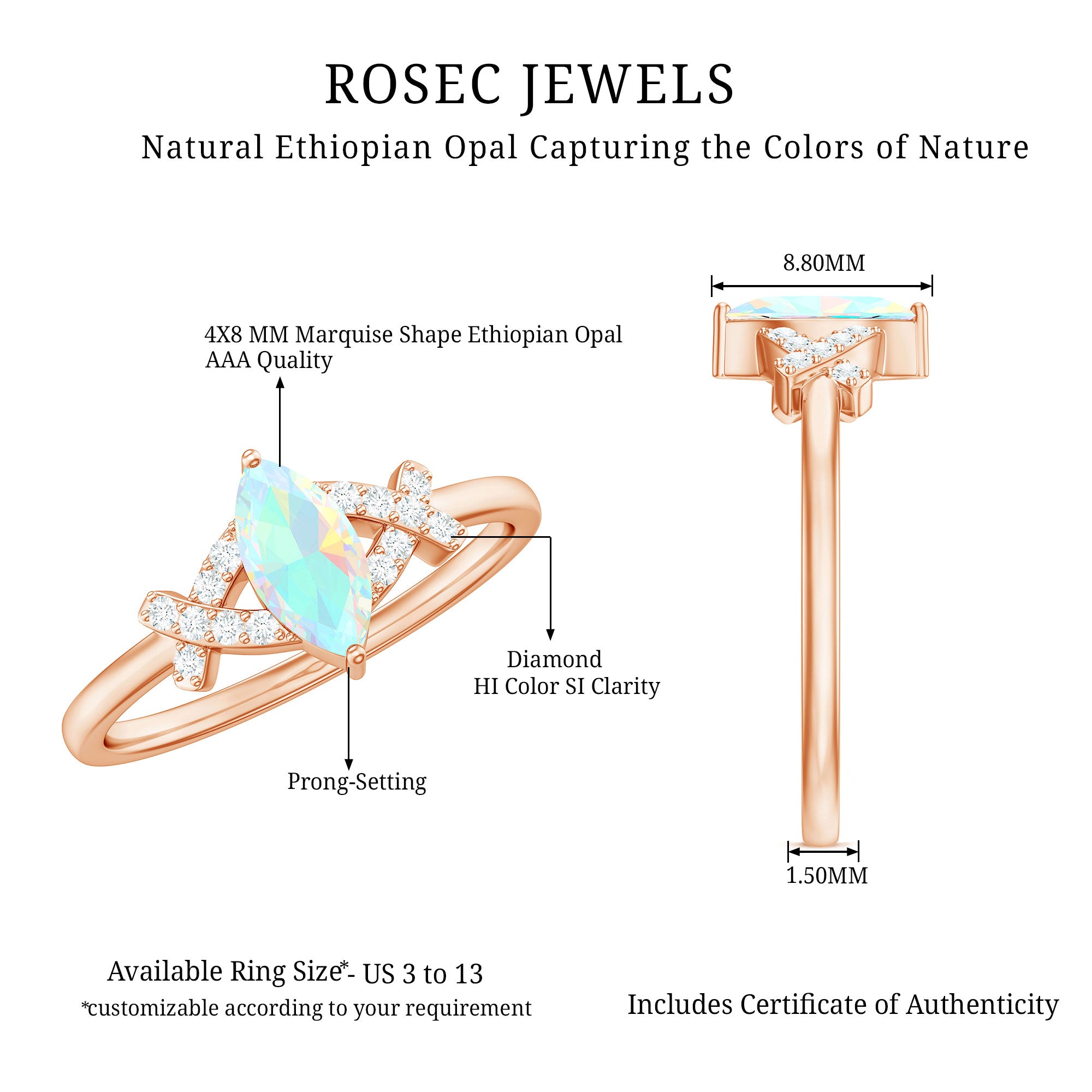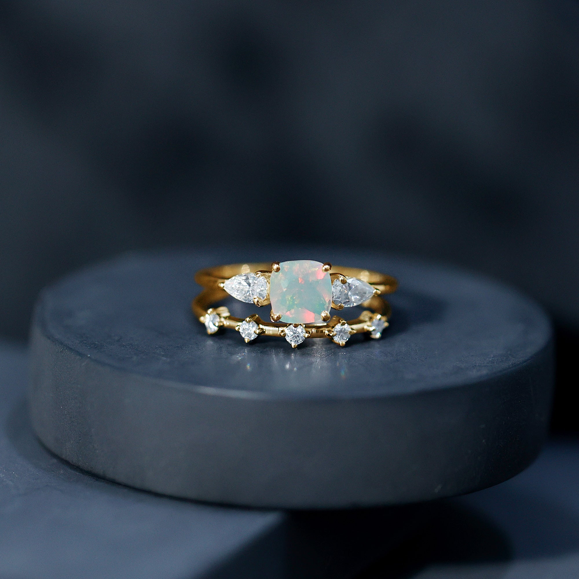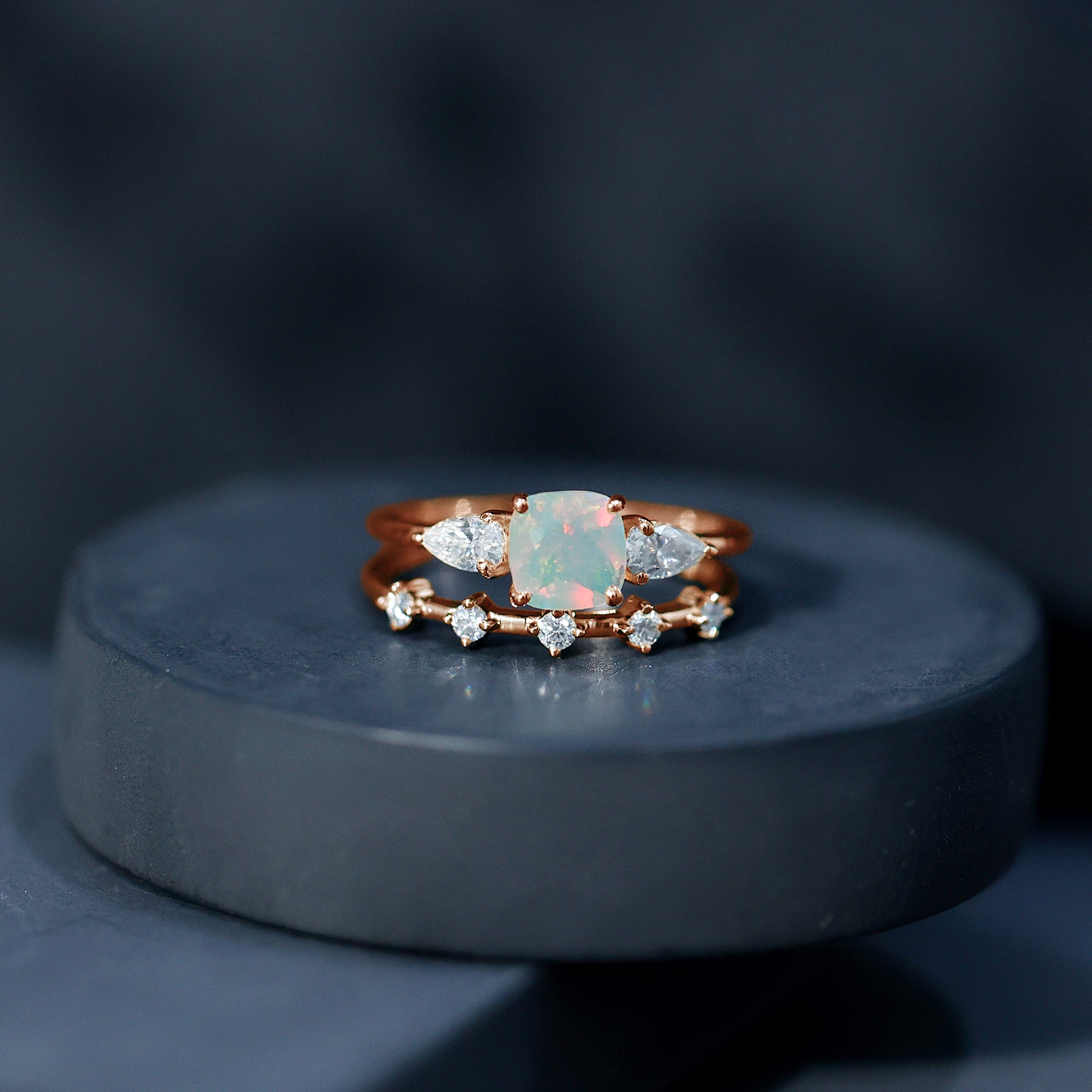 Ethiopian opal rings for women are a unique and vibrant choice for engagement rings. The opal natural play of colors, often shifting between fiery reds, deep blues, and soft greens. Our unique opal and diamond engagement ring symbolizes the dynamic nature of love.