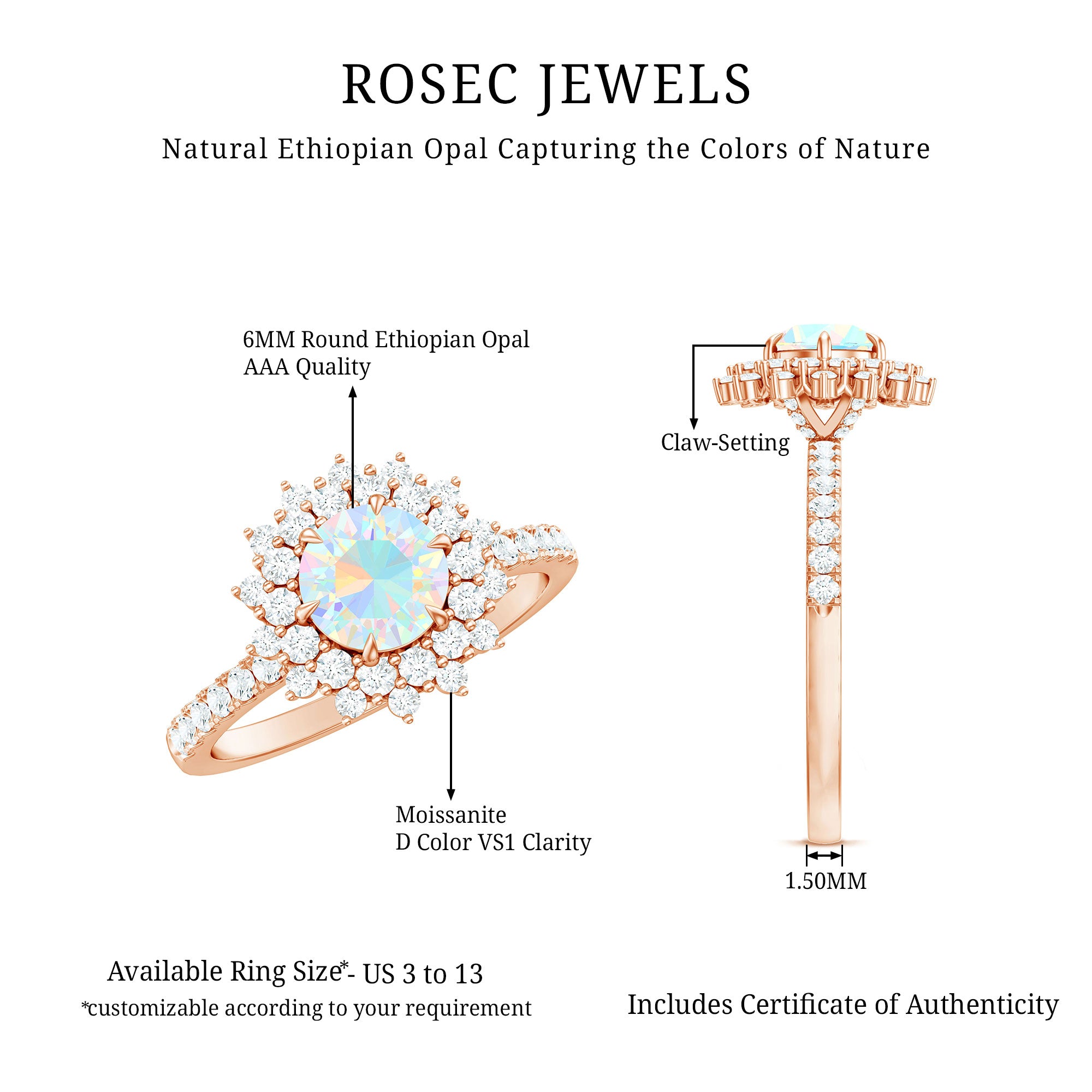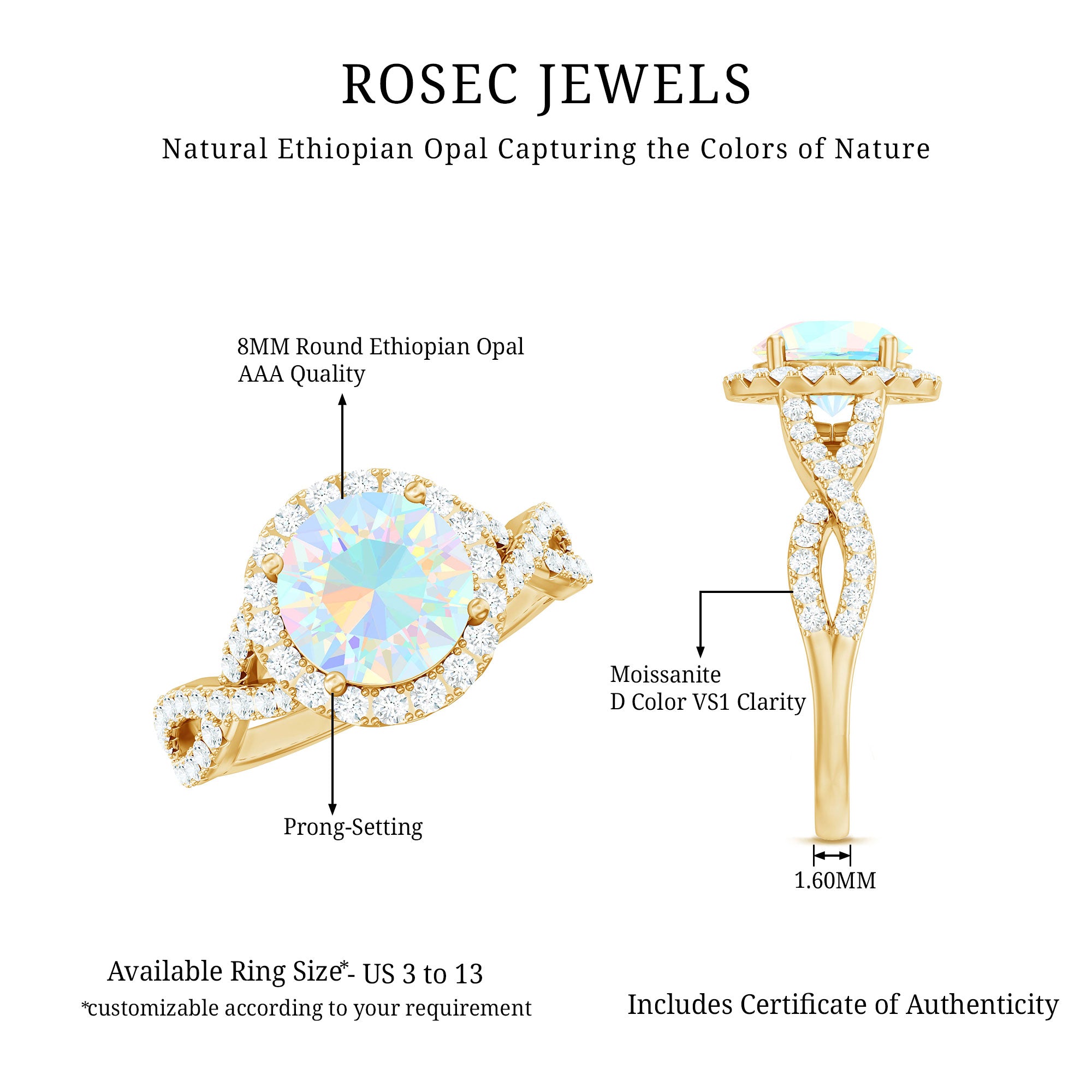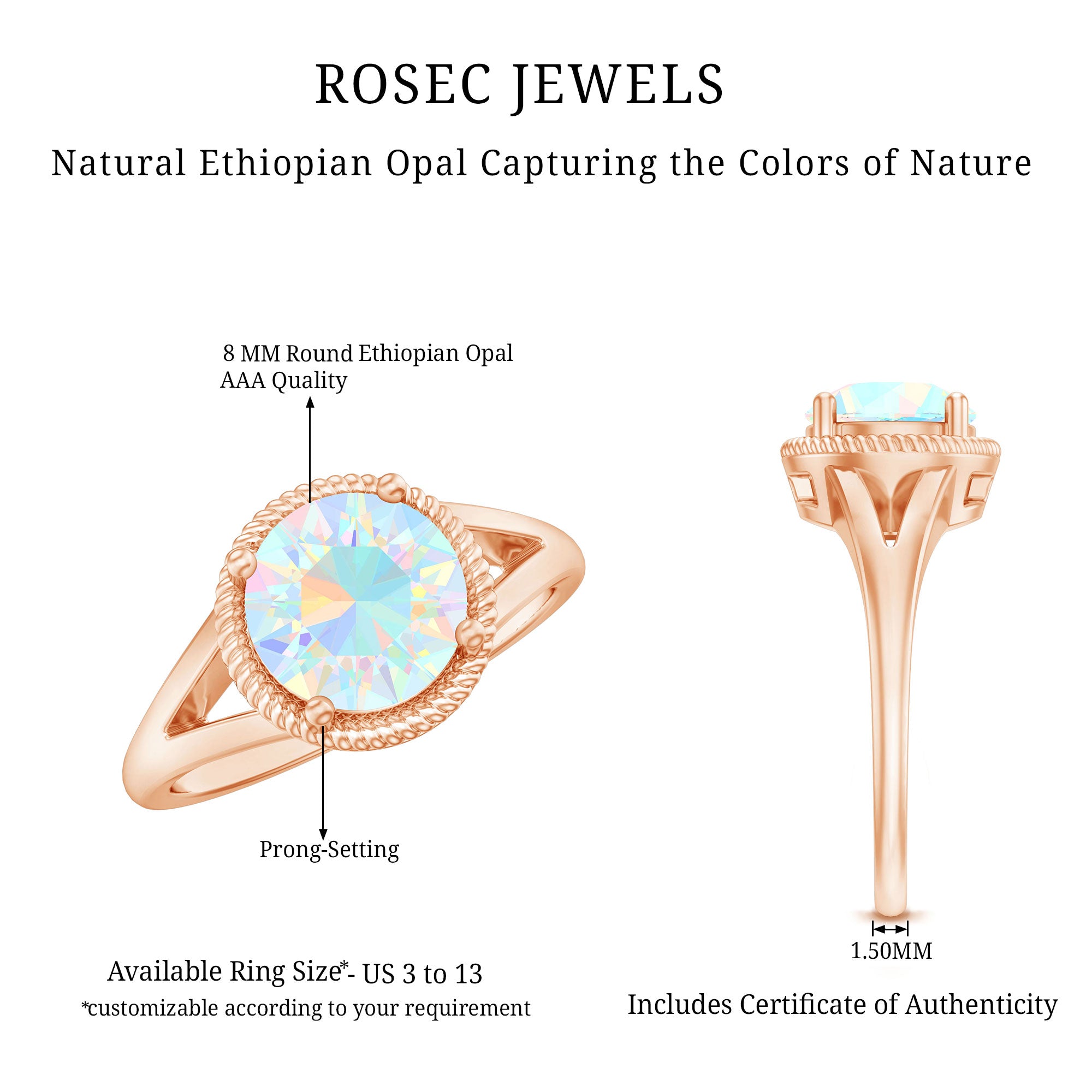 Our natural opal rings are available online at Rosec Jewels are authentic, ethically sourced, and come with a certificate. Explore the wide range and various designs of real opal rings like solitaire, halo, vintage-inspired, and others. Ethiopian opal rings have rainbow colors and look more beautiful with diamond and Moissanite.