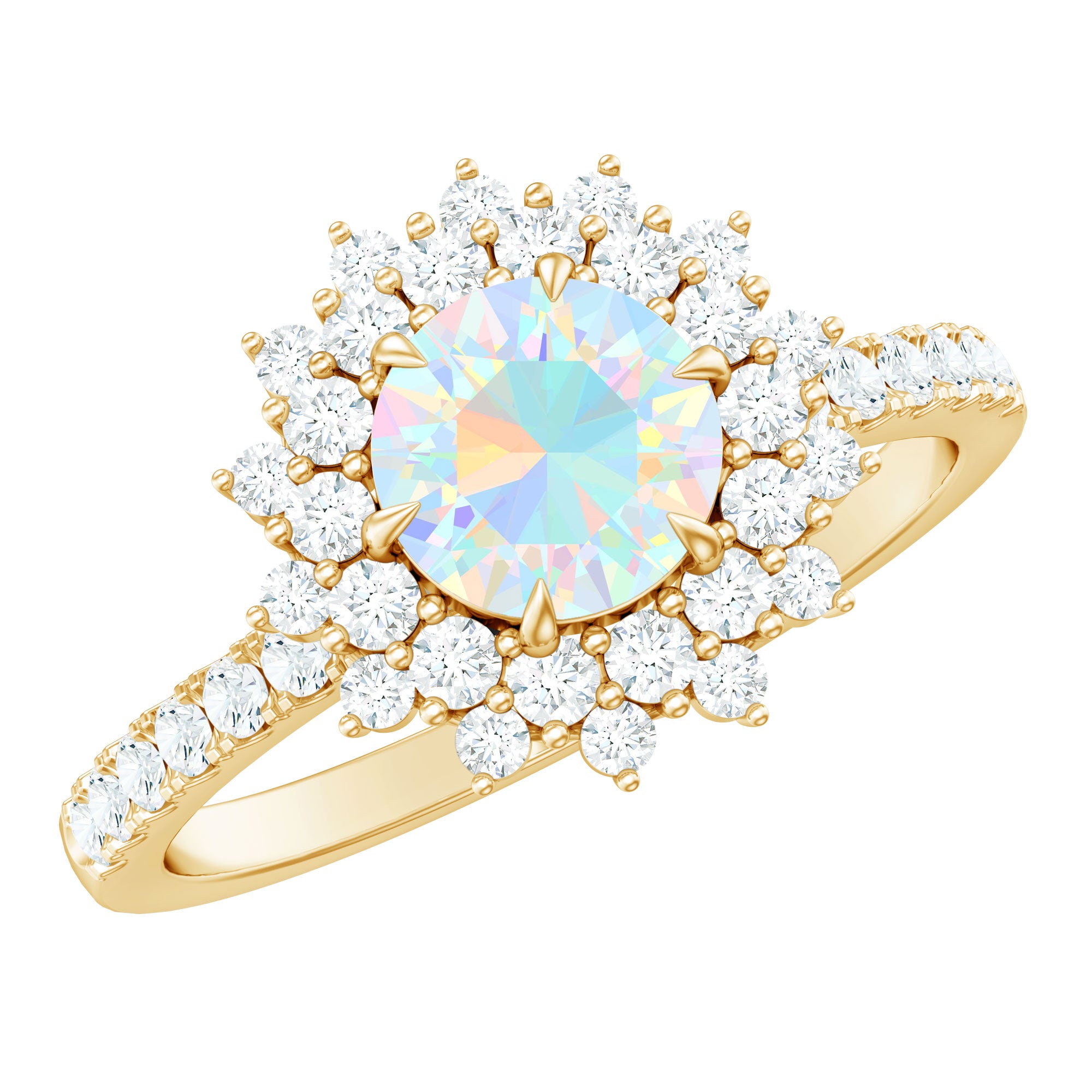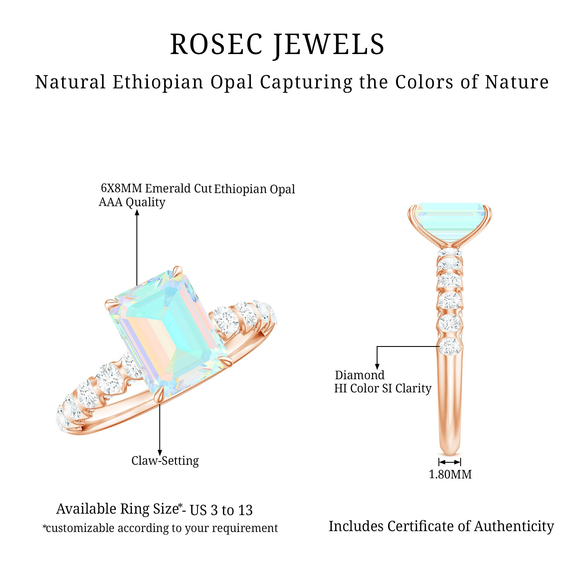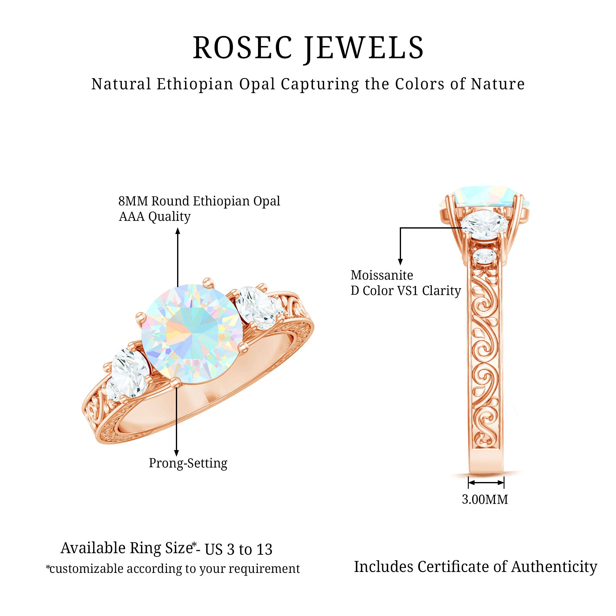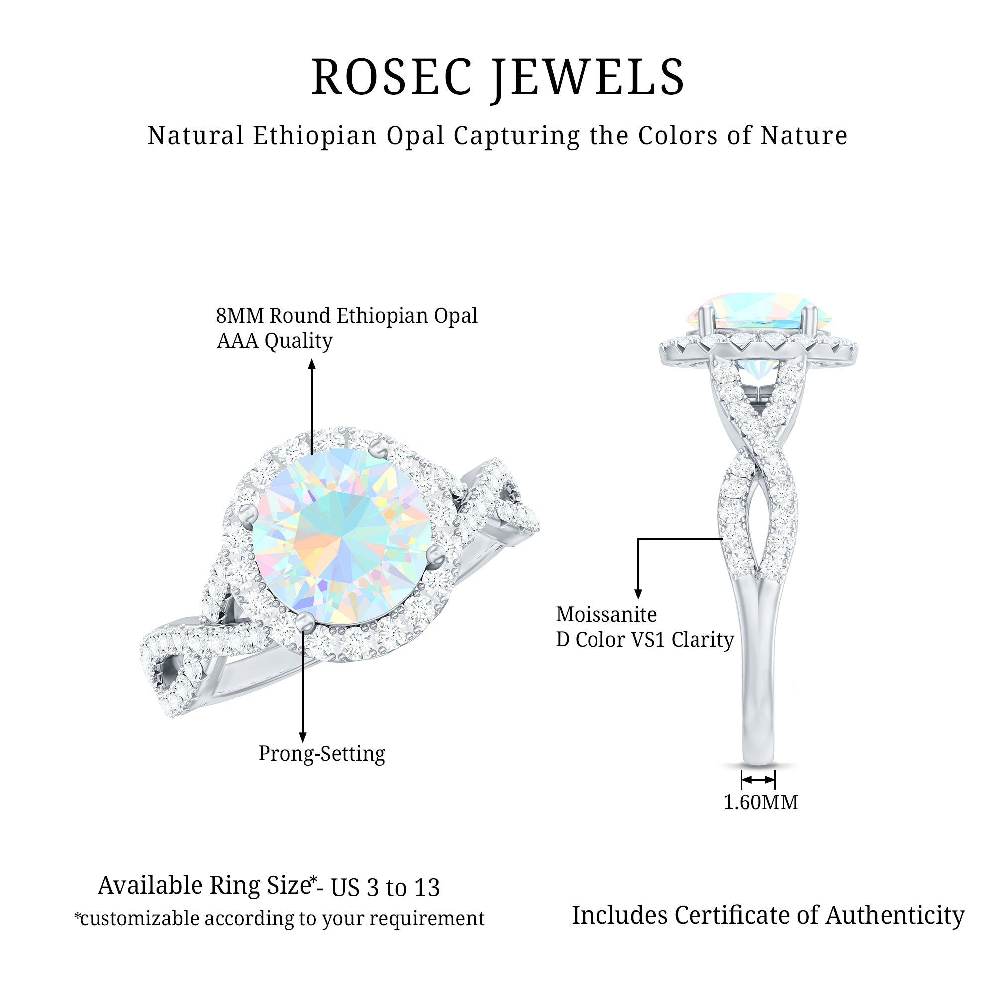 Our natural opal rings are available online at Rosec Jewels are authentic, ethically sourced, and come with a certificate. Explore the wide range and various designs of real opal rings like solitaire, halo, vintage-inspired, and others. Ethiopian opal rings have rainbow colors and look more beautiful with diamond and Moissanite.
