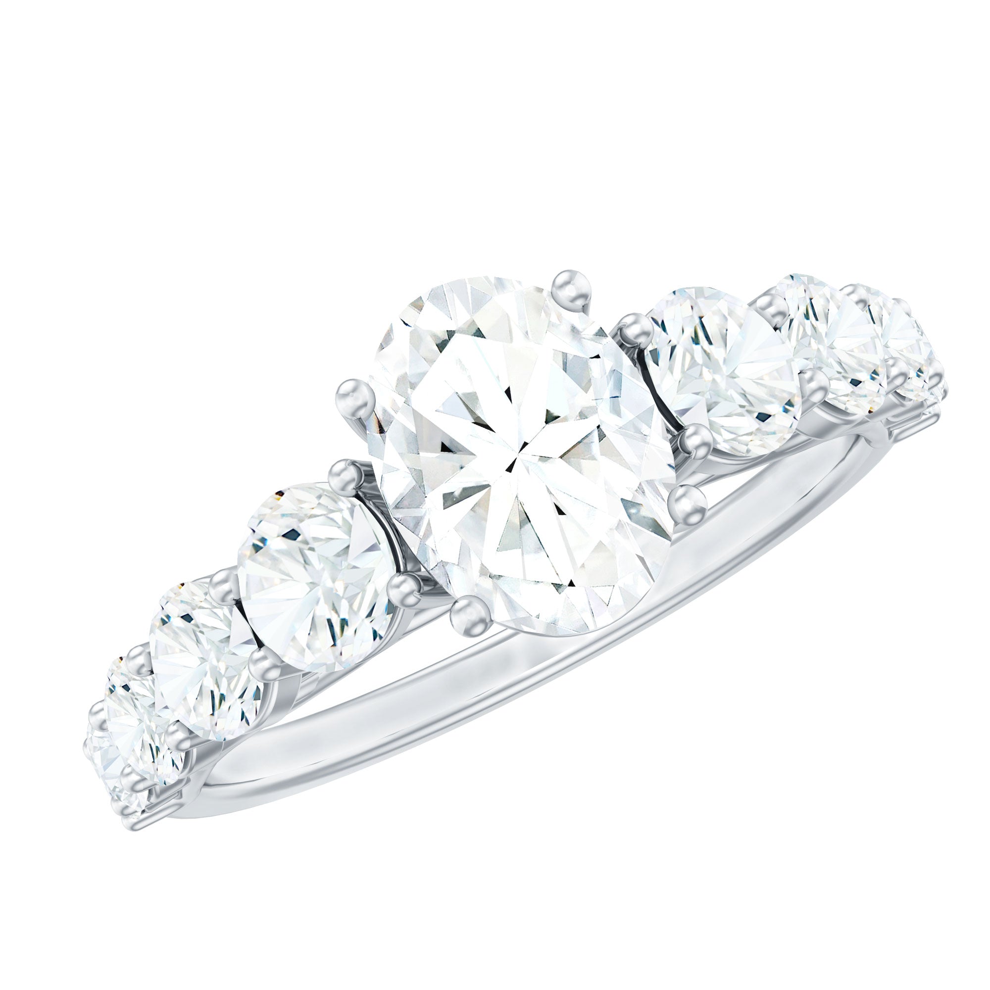 Rings combining the sparkle of a round gemstone with an elegant, elongated shape are oval engagement rings. With 58 facets, this shape gives gemstones more brilliance and a larger look than round-shaped stones of the same carat weight.The oval is measured by its length and width, with a ratio between 1.33 and 1.66, for a personalized fit.