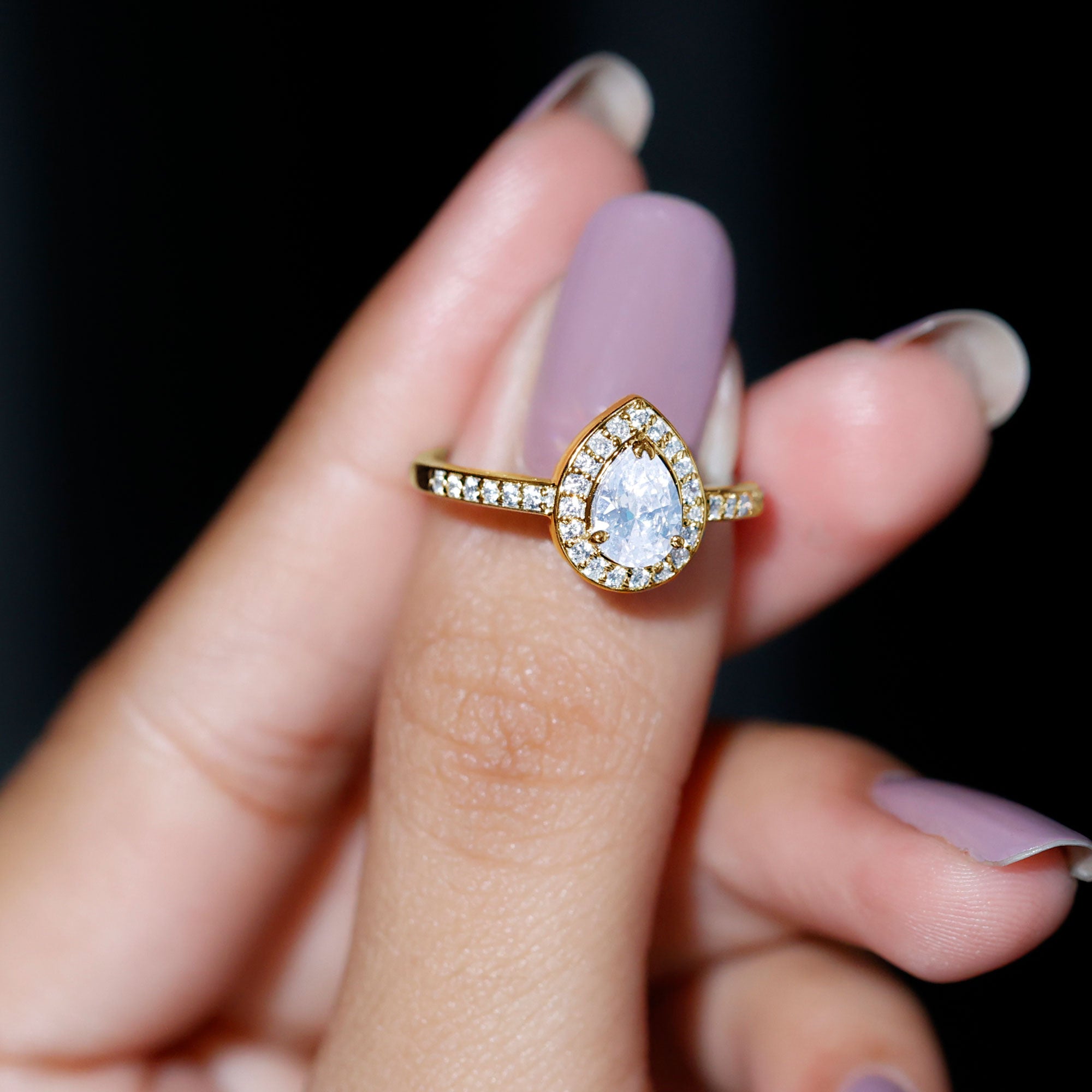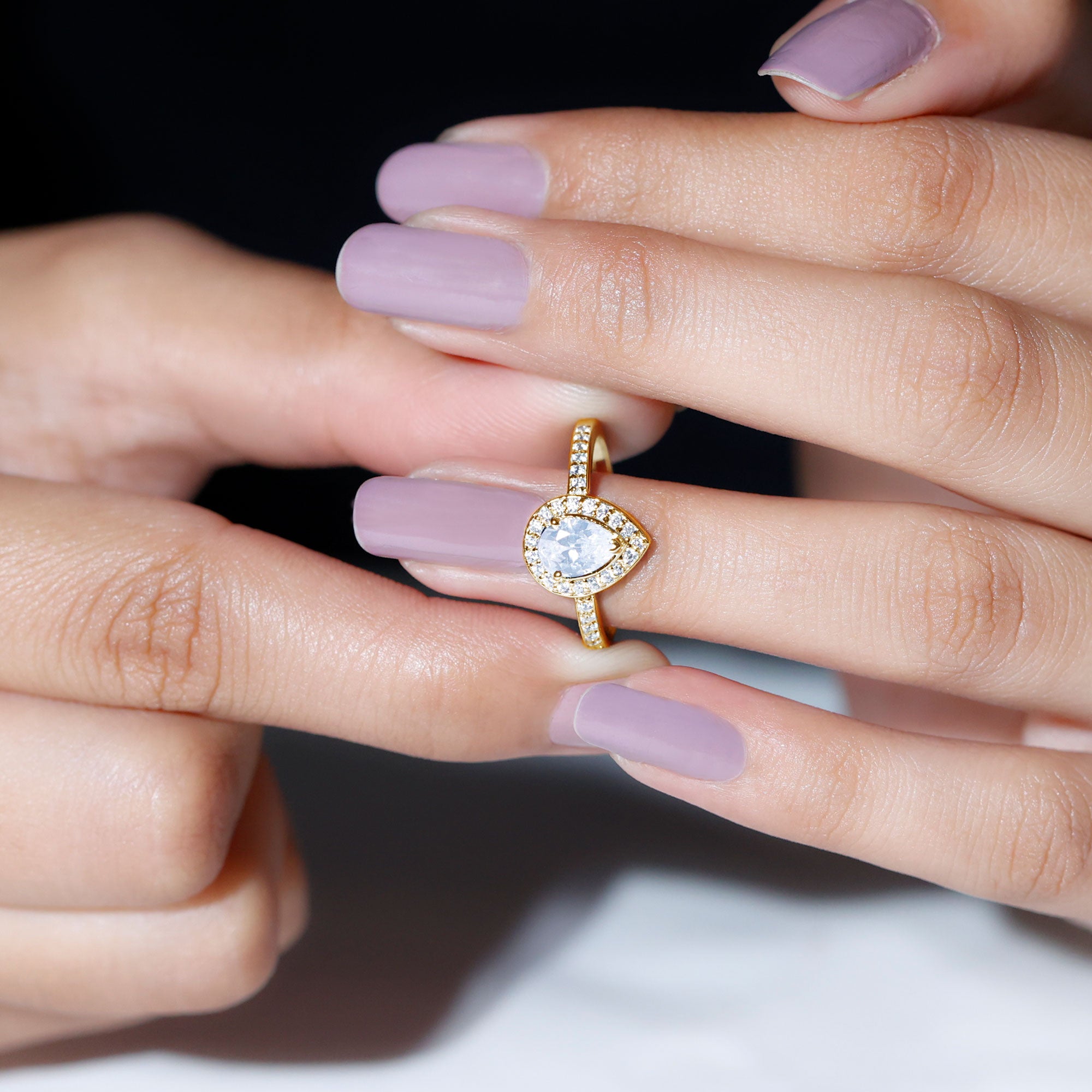 Lab Grown Diamond, Sapphire, ruby, emerald, moissanite, aquamarine, and topaz are popular choices for pear shaped jewelry.