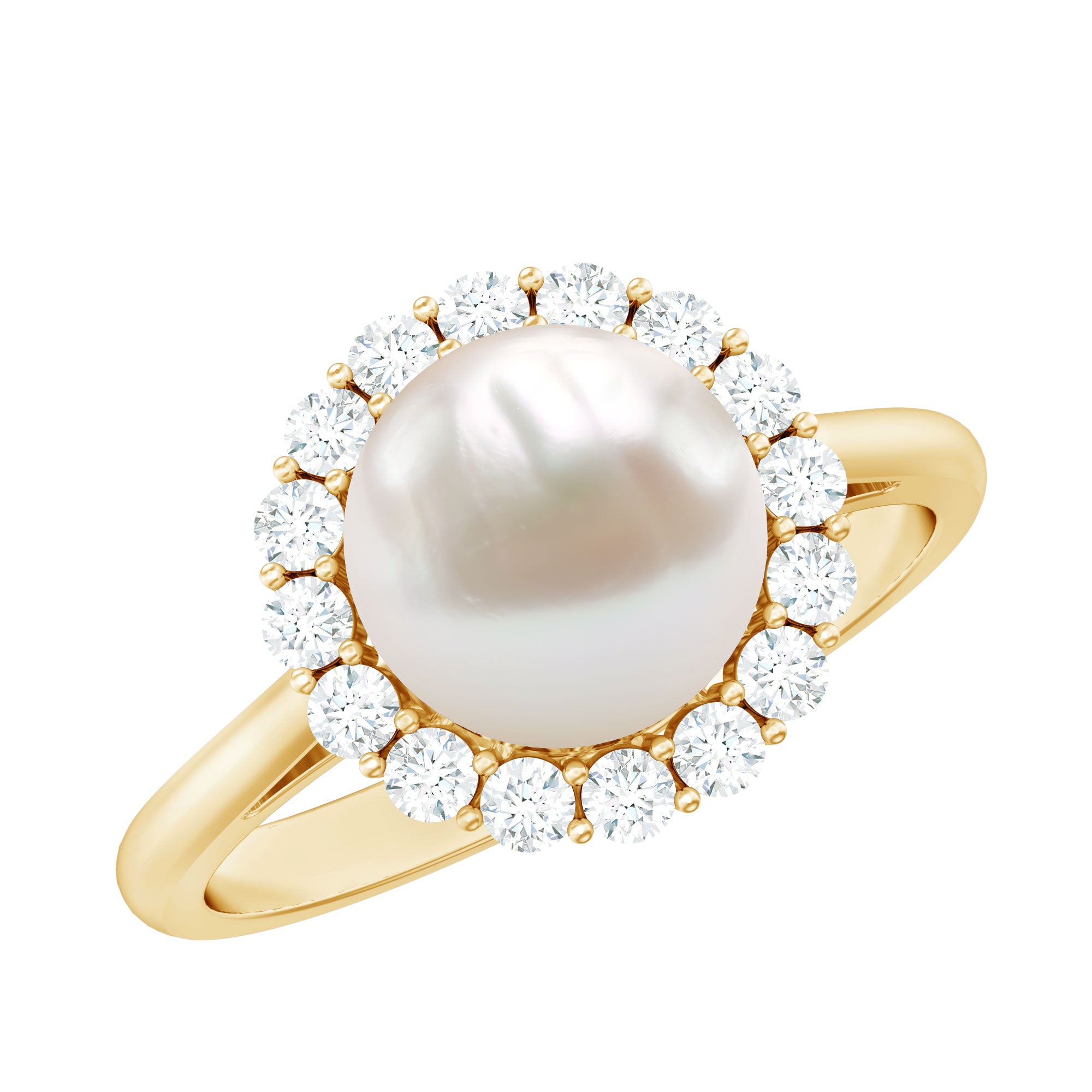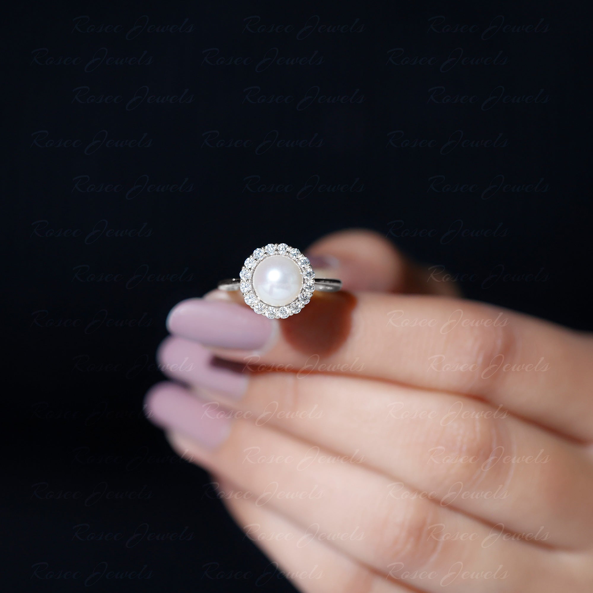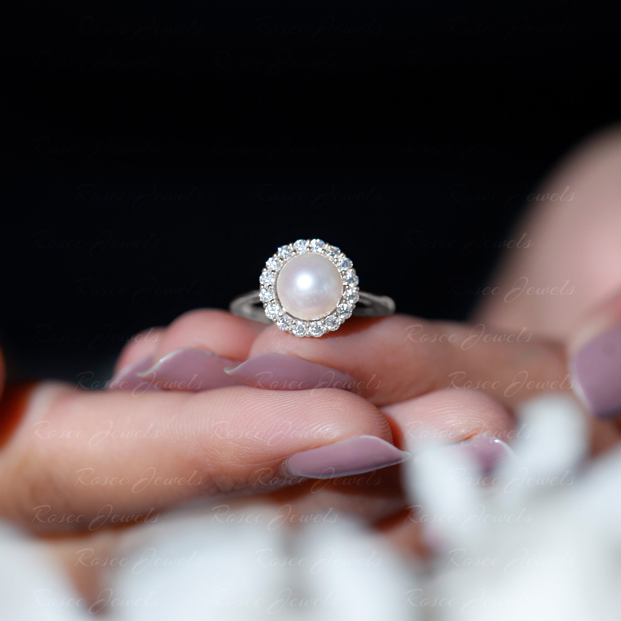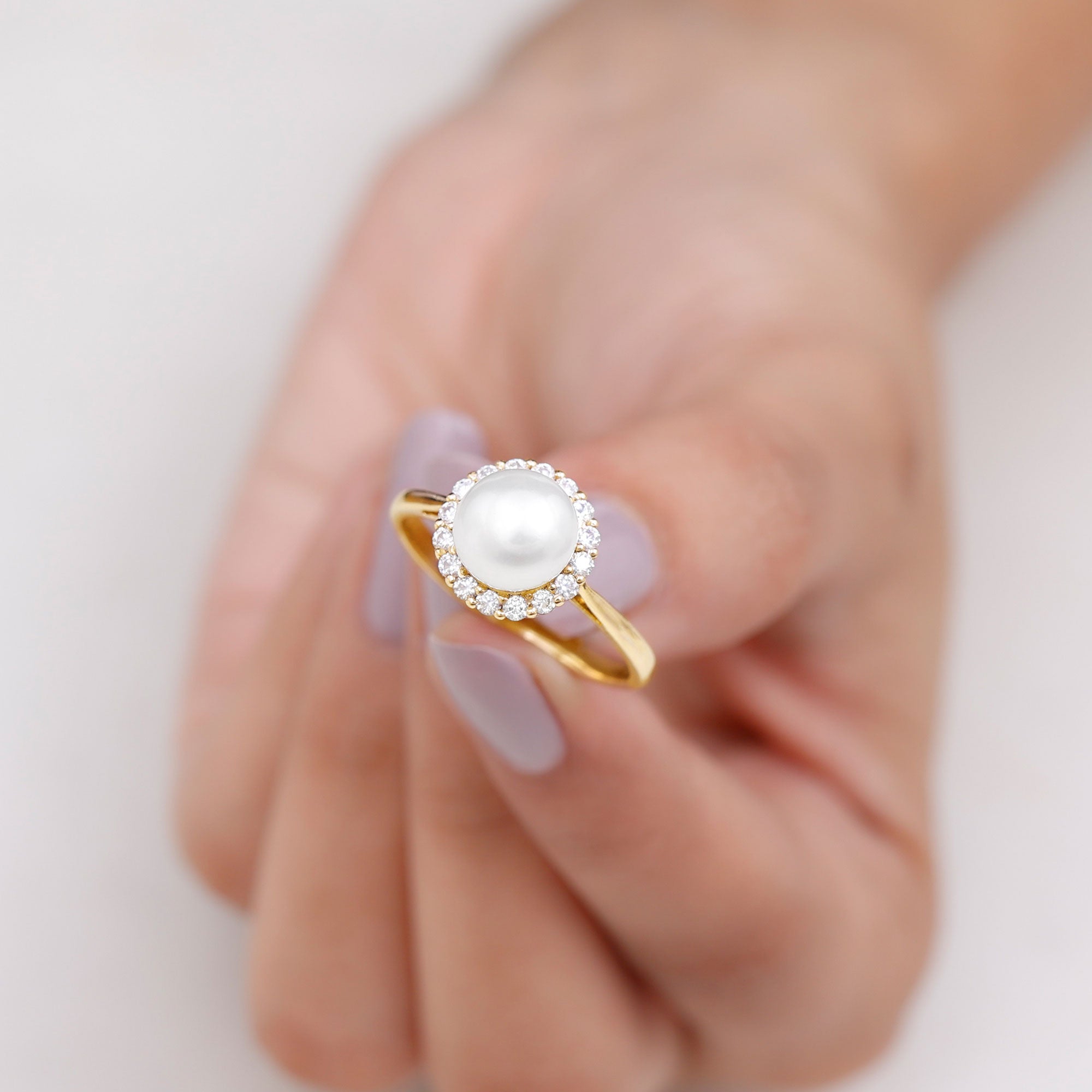 • Freshwater Pearl Halo Rings: - Stands out and unique with the shiny hues of pearl and sparkling diamond halo. This style of pearl engagement ring adds extra sparkle to the ring and also maximizes the center pearl's beauty. This pearl engagement ring can be served as a token of love to your lady luck.