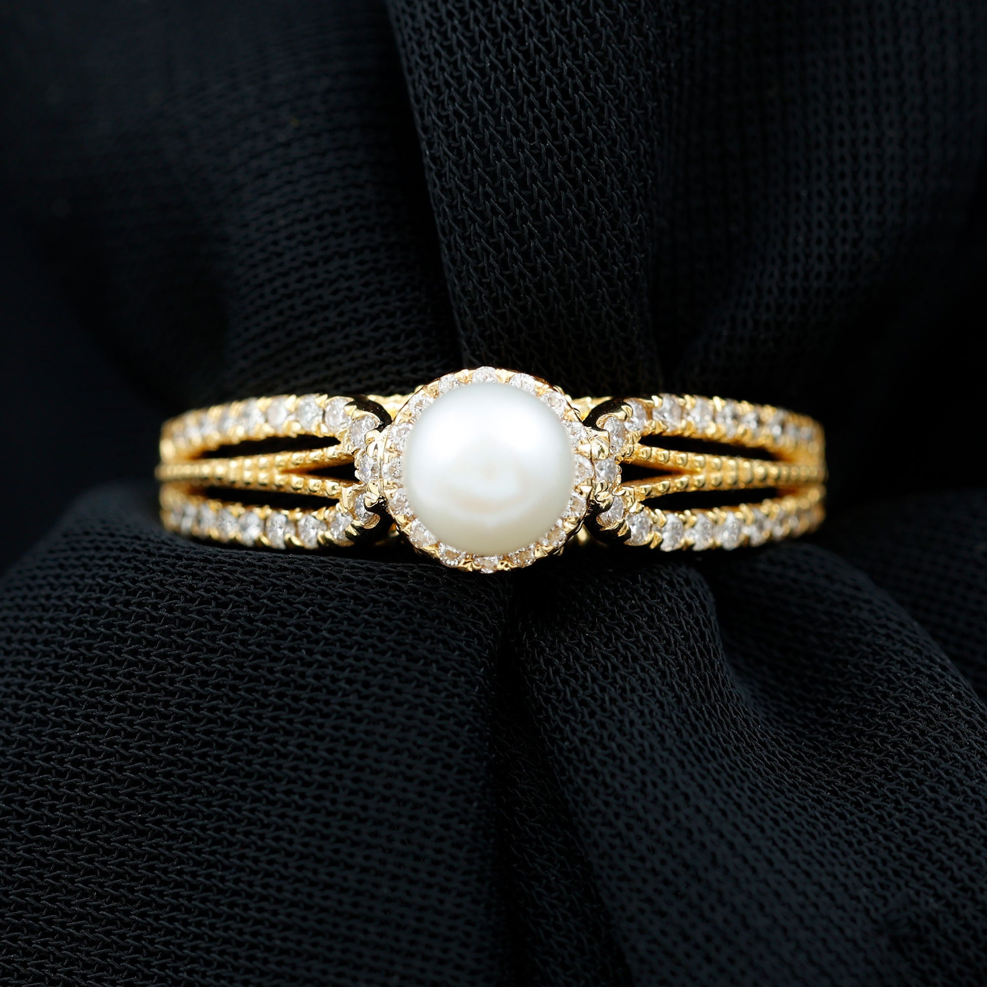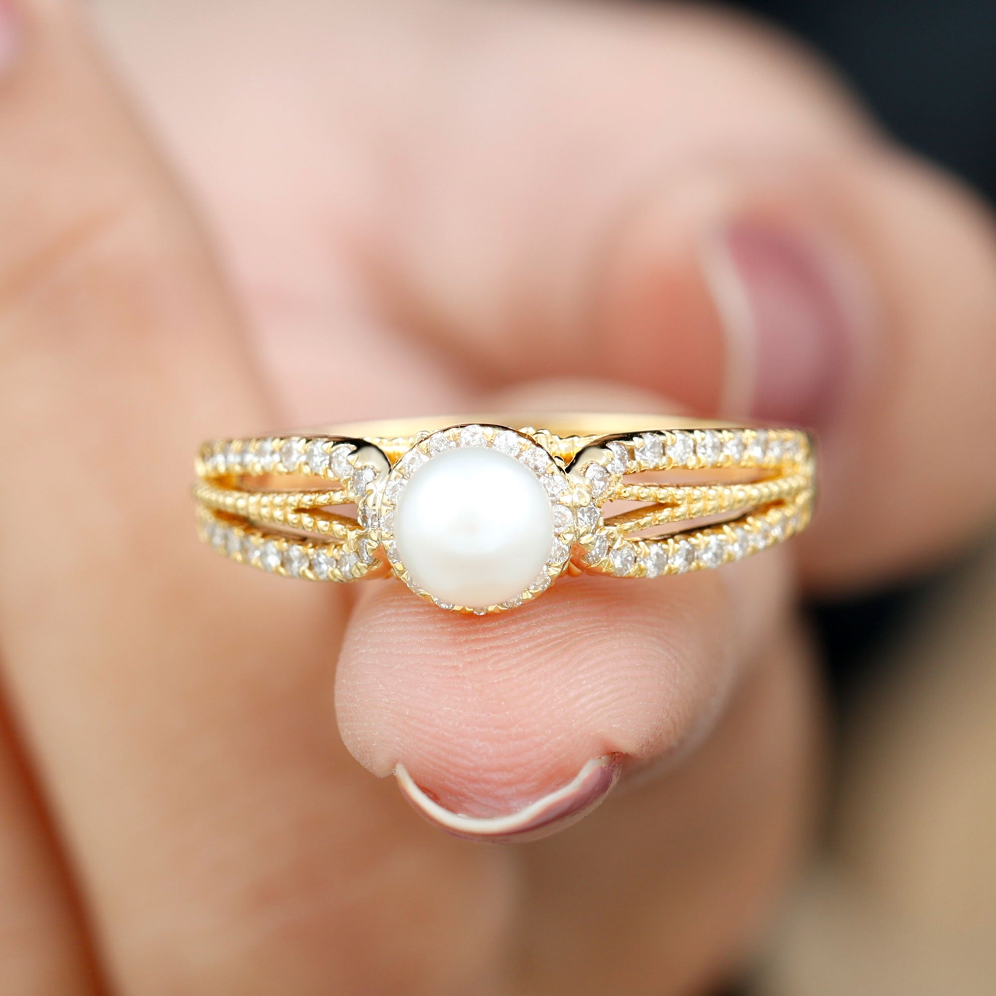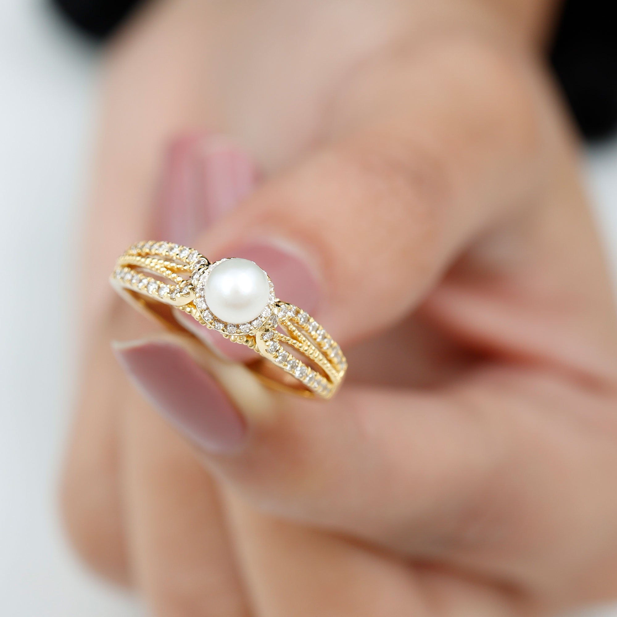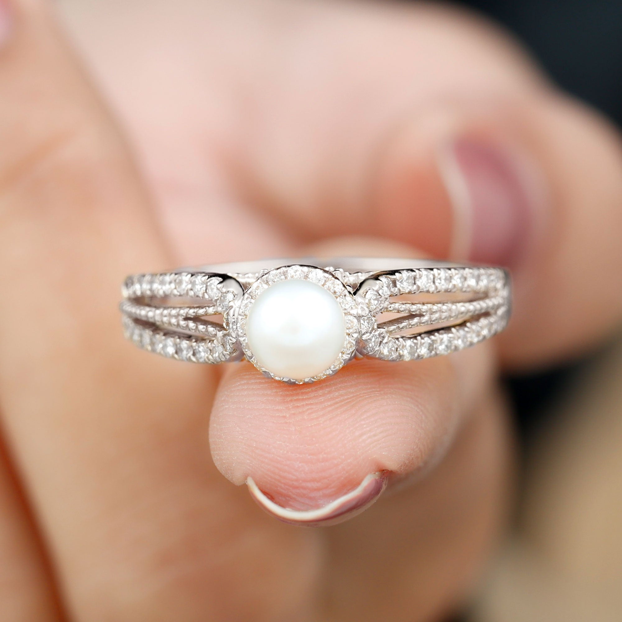 Freshwater Pearl Halo Rings: - Stands out and unique with the shiny hues of pearl and sparkling diamond halo. This style of pearl engagement ring adds extra sparkle to the ring and also maximizes the center pearl's beauty. This pearl engagement ring can be served as a token of love to your lady luck.