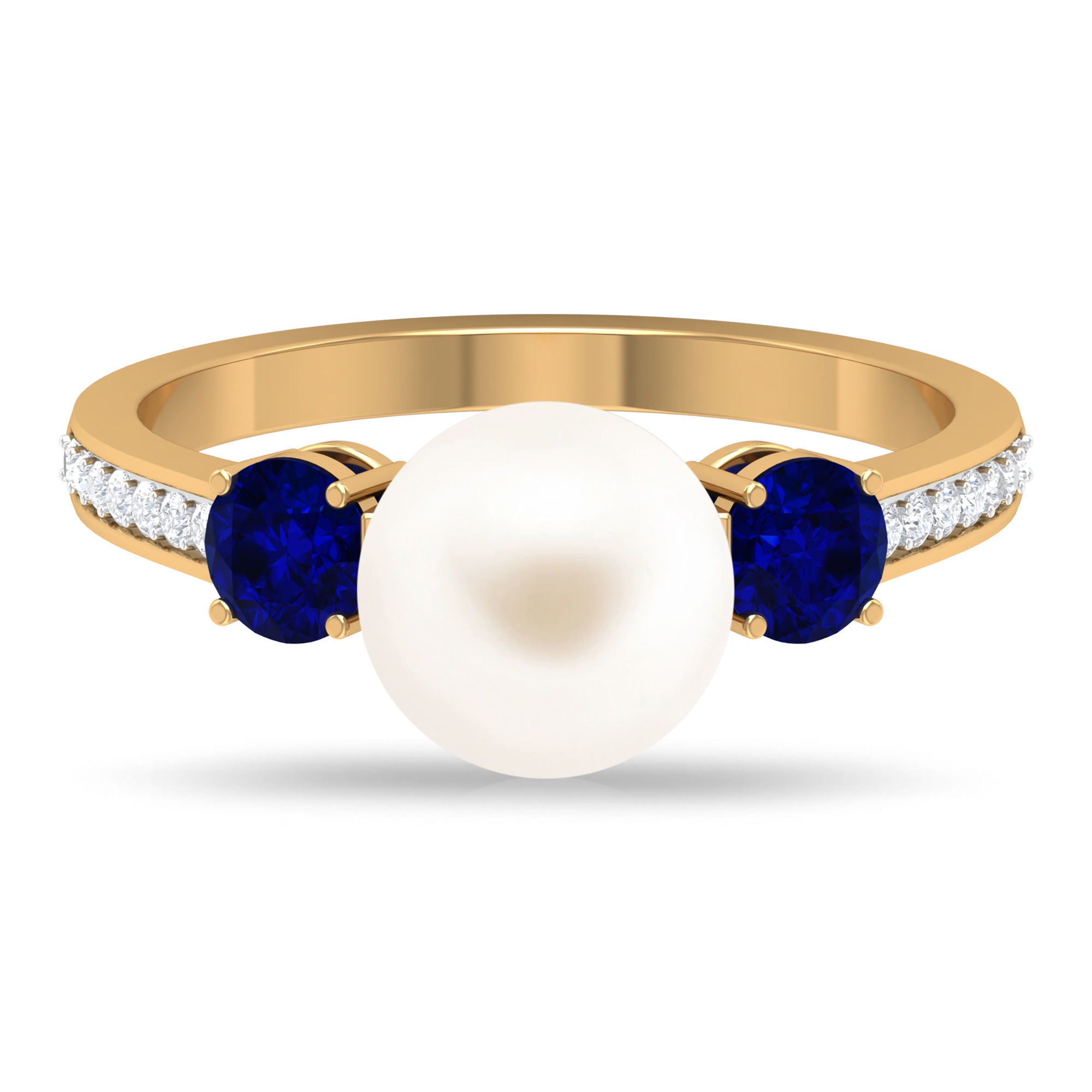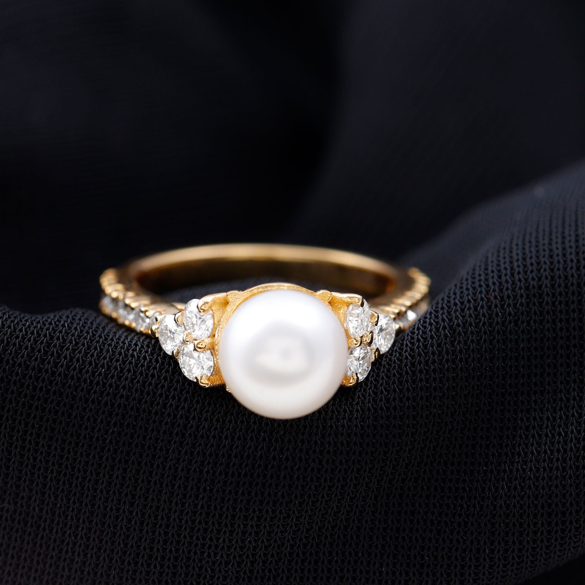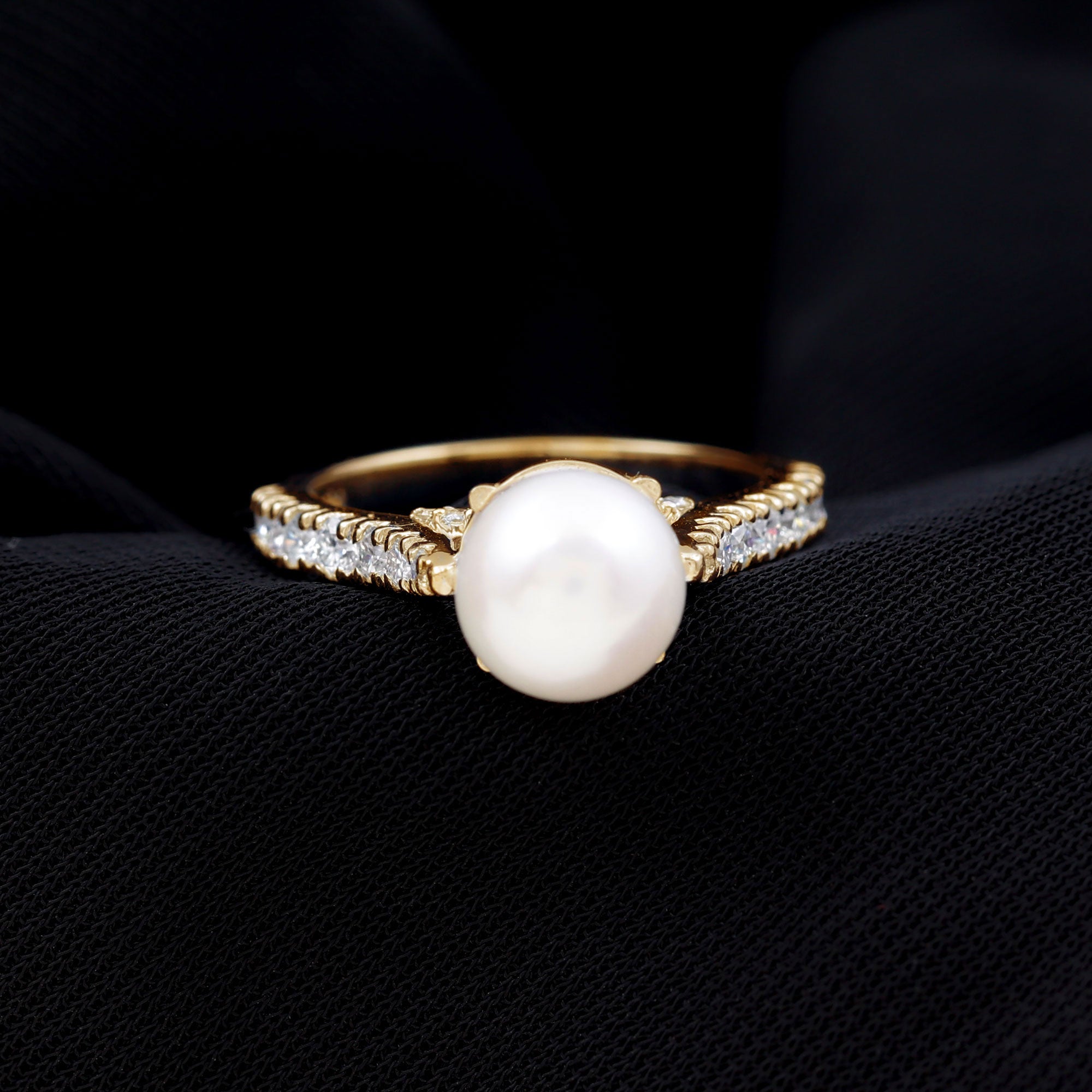 Freshwater Pearl Solitaire Rings: - Famous for their simplicity and classic appearance, these solitaire rings are designed for every age of woman. Bringing an aura of enduring elegance, this pearl solitaire ring in 10K, 14K, or 18K gold truly captivated with its alluring charm. The delicate diamond studded shank enhanced the beauty of the bead set around freshwater pearl gem. The ring's simplicity is outstanding, making it a perfect accessory for both your daytime and evening ensembles.
