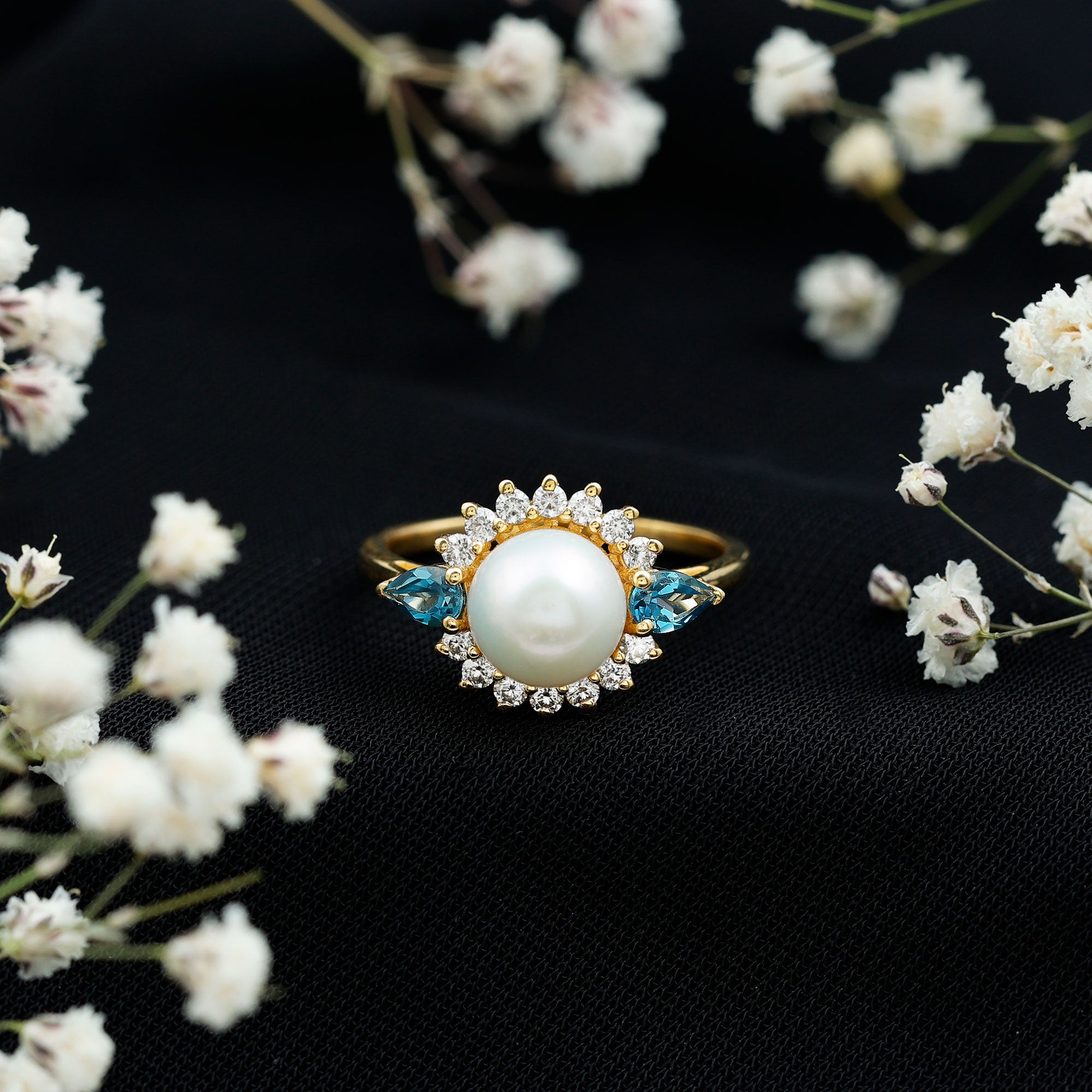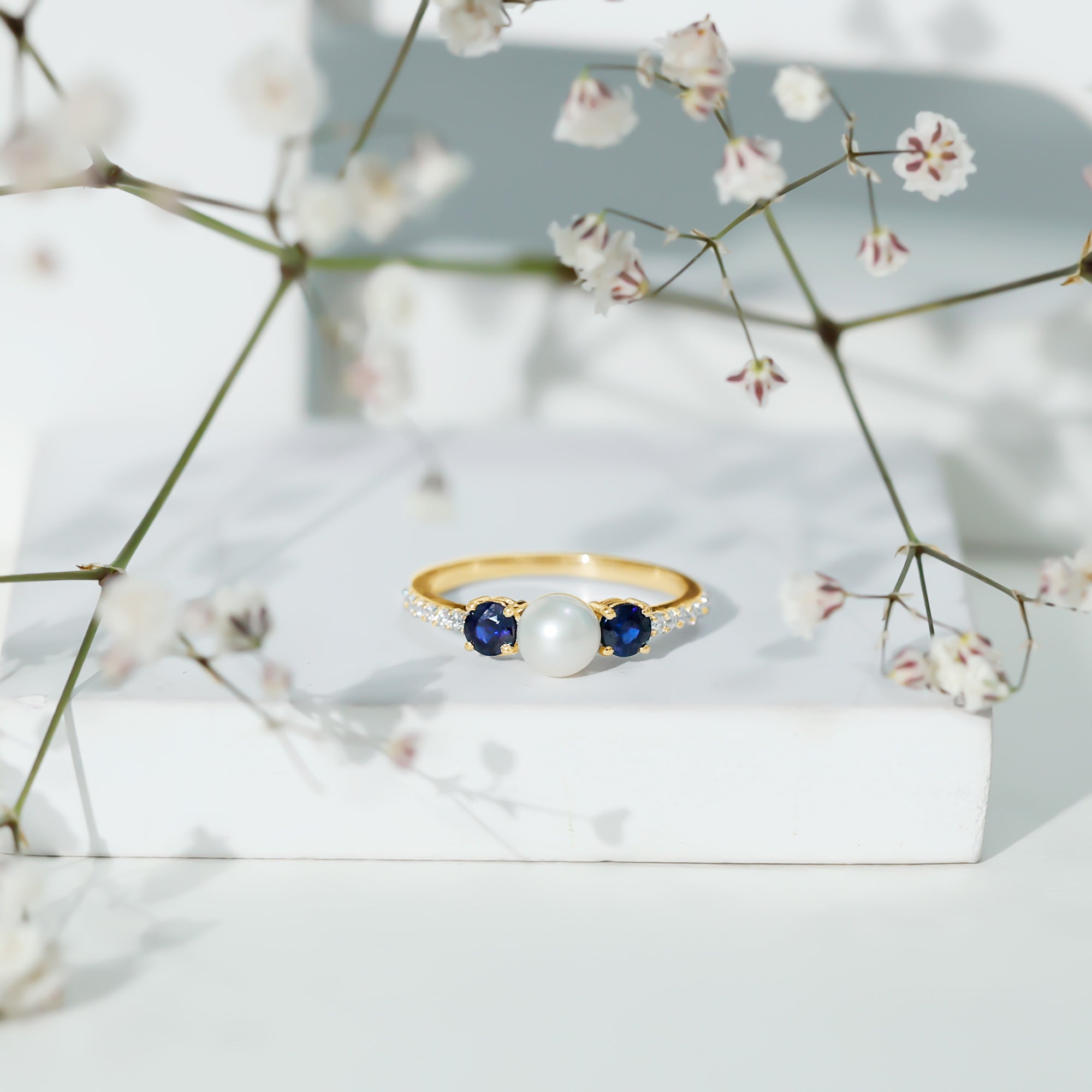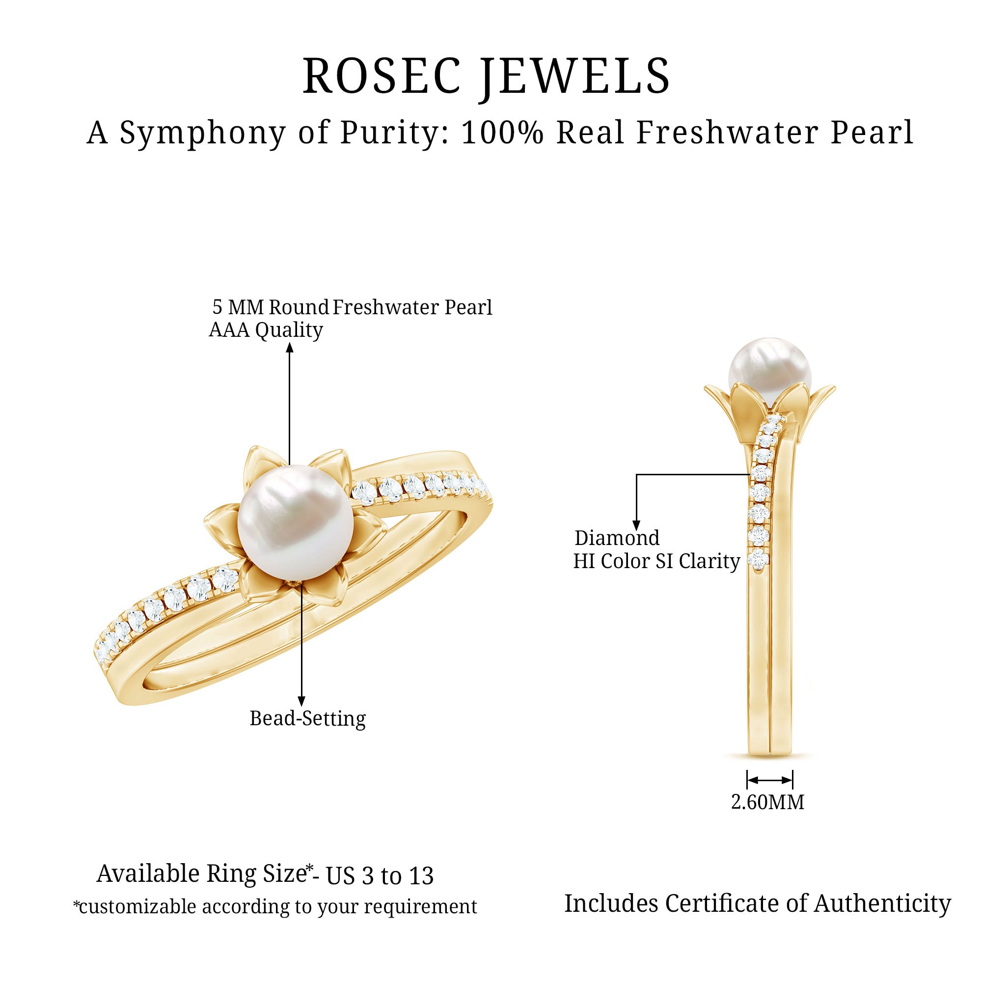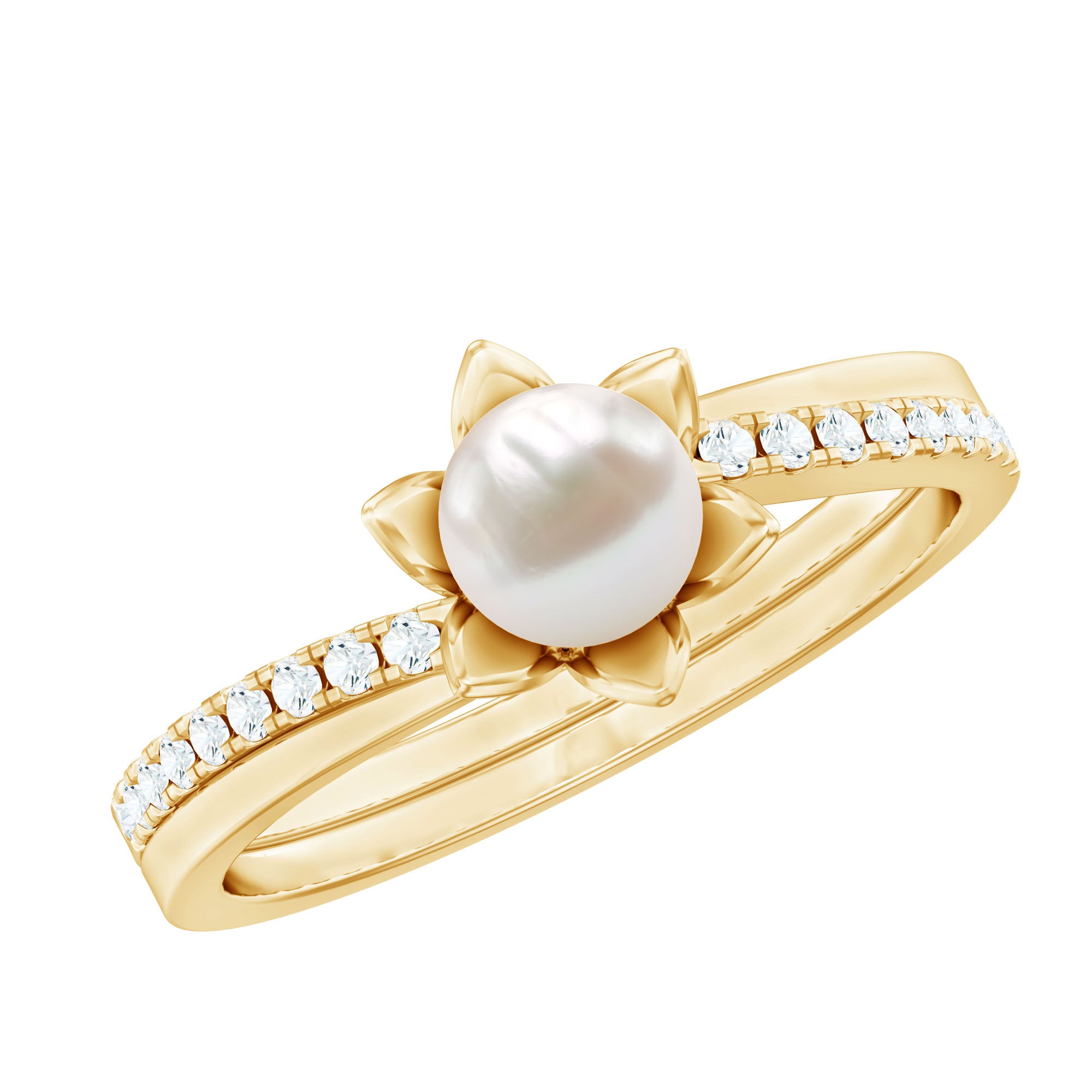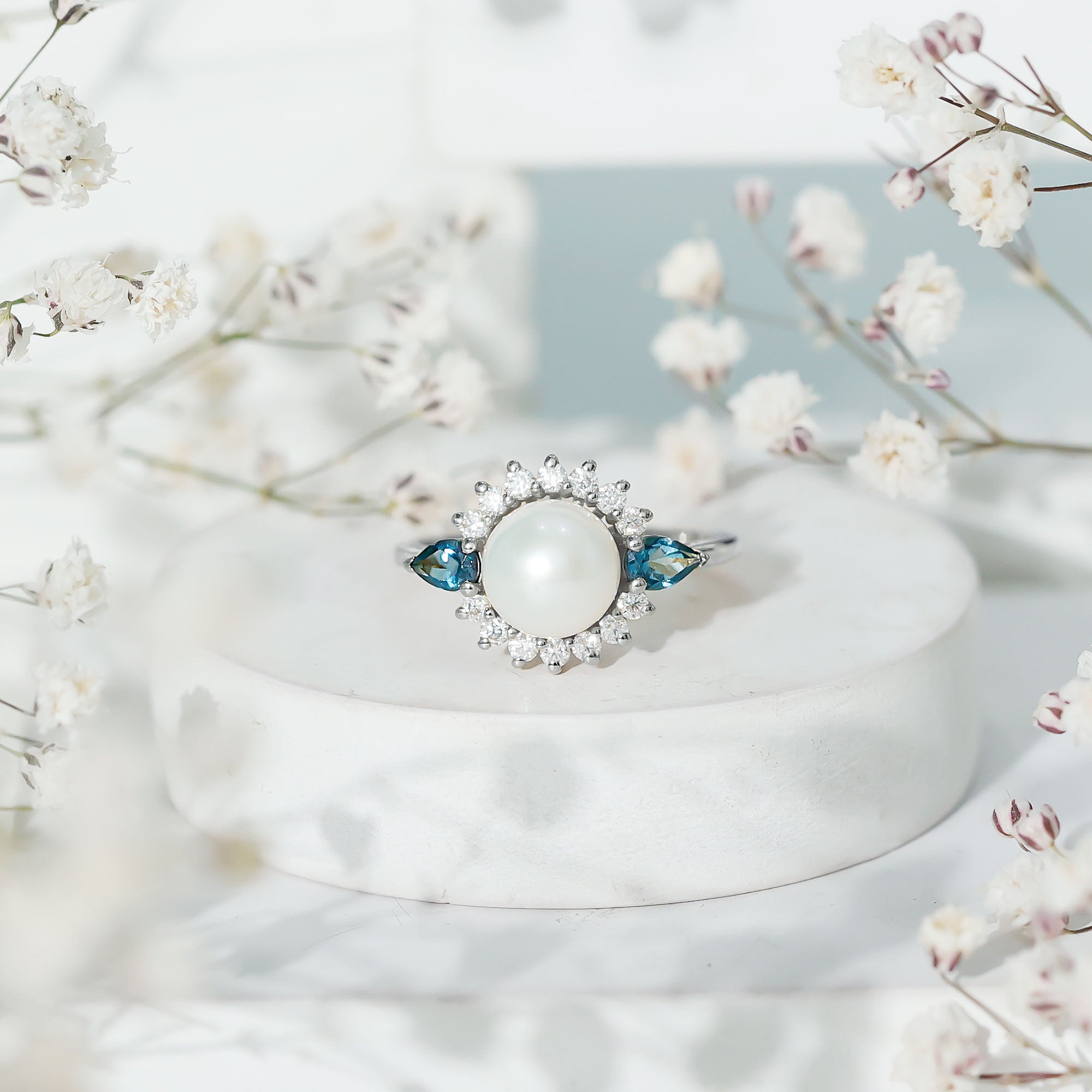 - Floral Pearl Ring: A Floral pearl ring is fashioned with a floral inspired design, often studded with a center stone that is further enhanced with a floral halo or has metal engraved with a floral design.