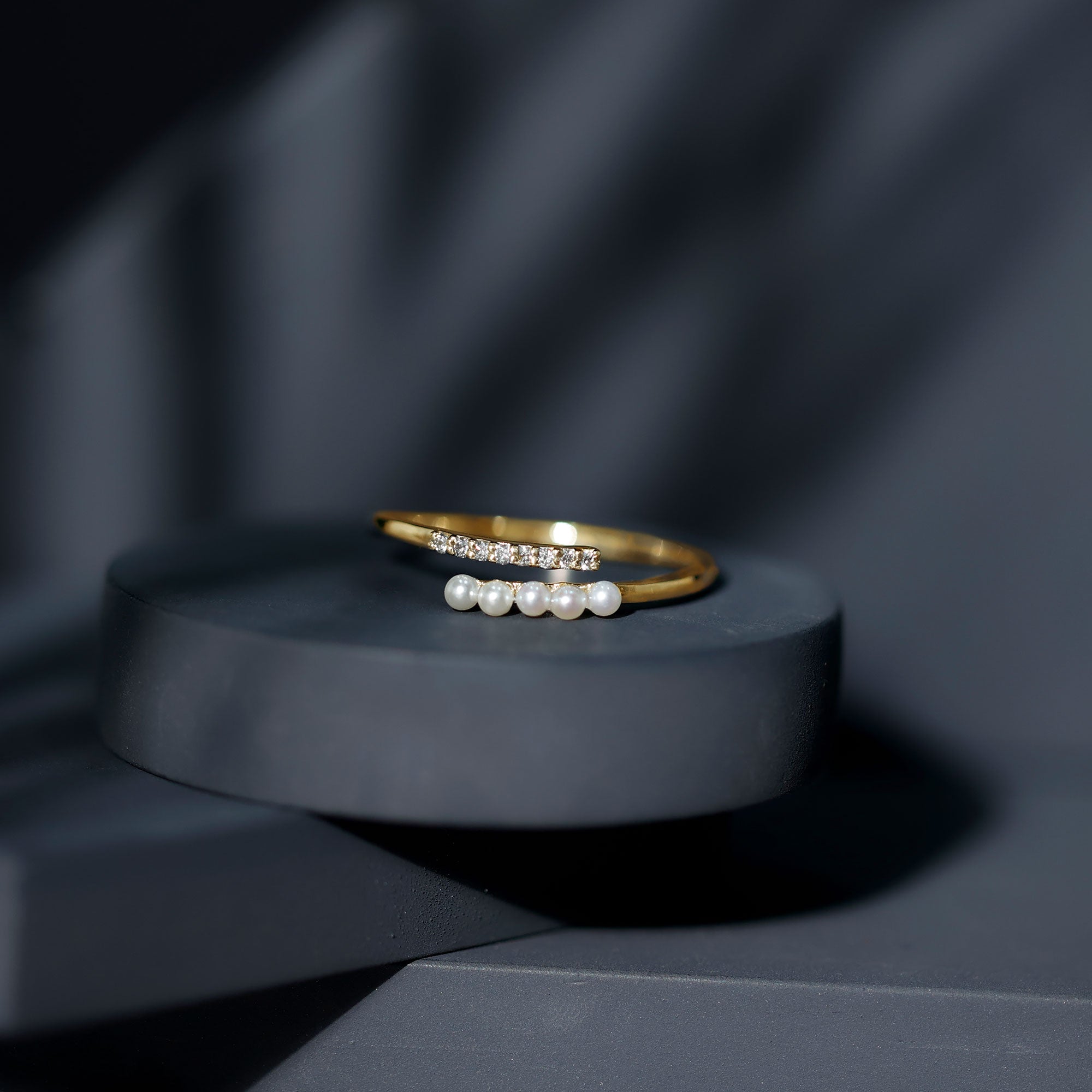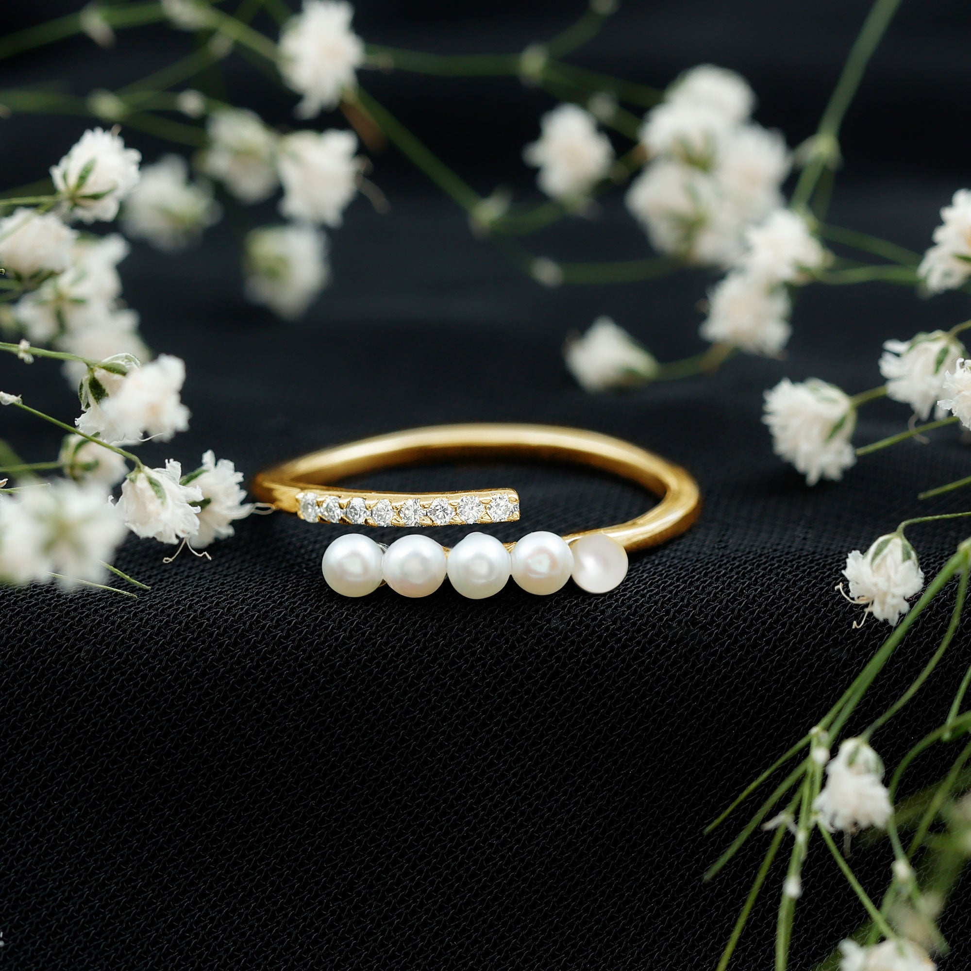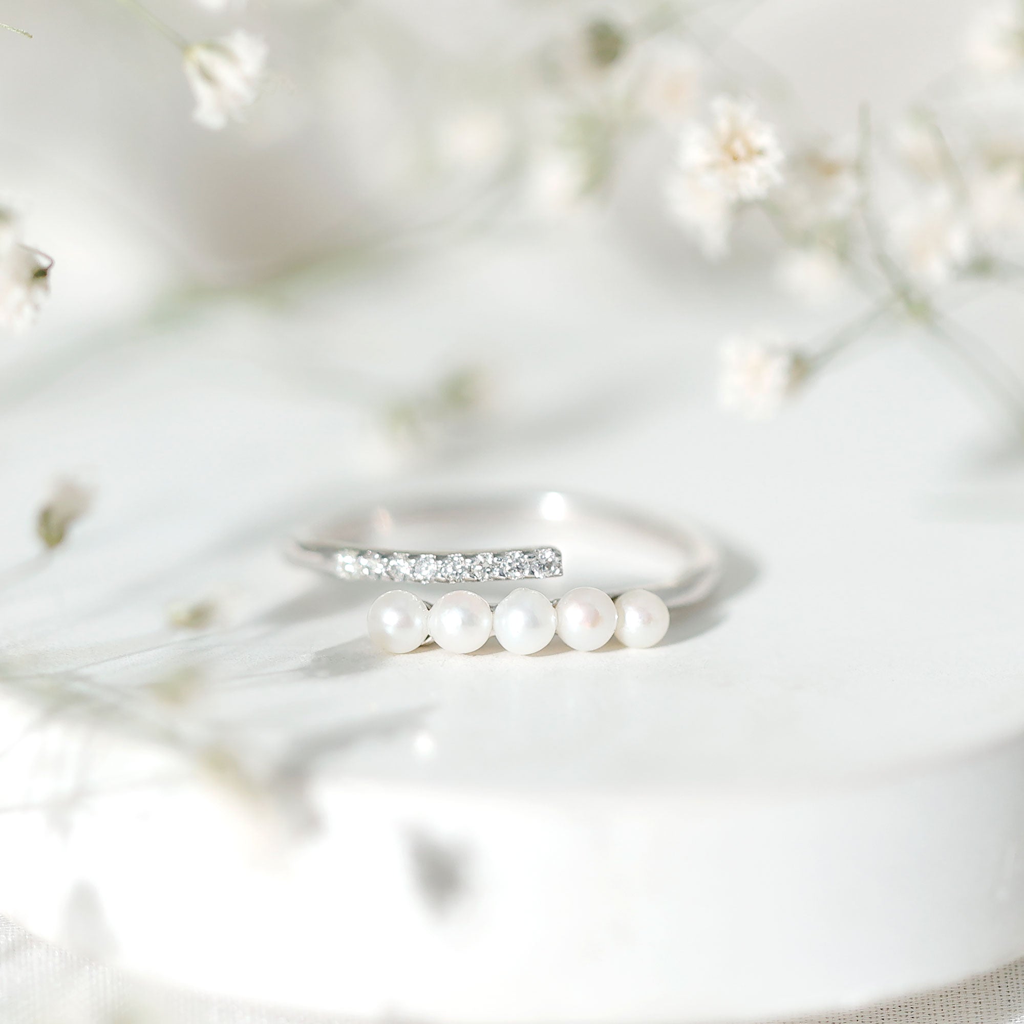 - Pearl Bypass Ring: Hands down, the most unique kind of rings out there, a pearl bypass ring featuring overlapping, parting metal band with two sections embedded with two pearls or either joint together with a single pearl.