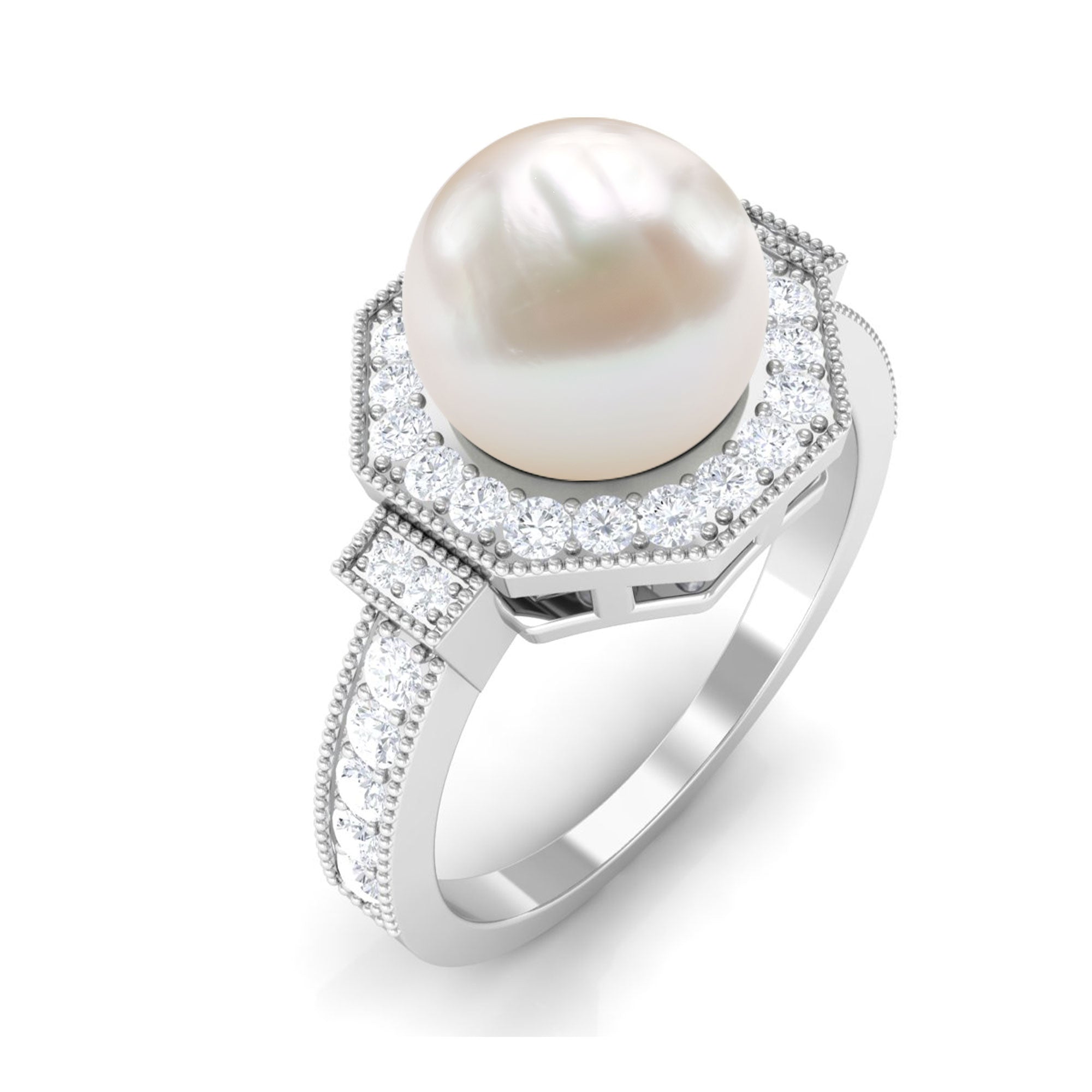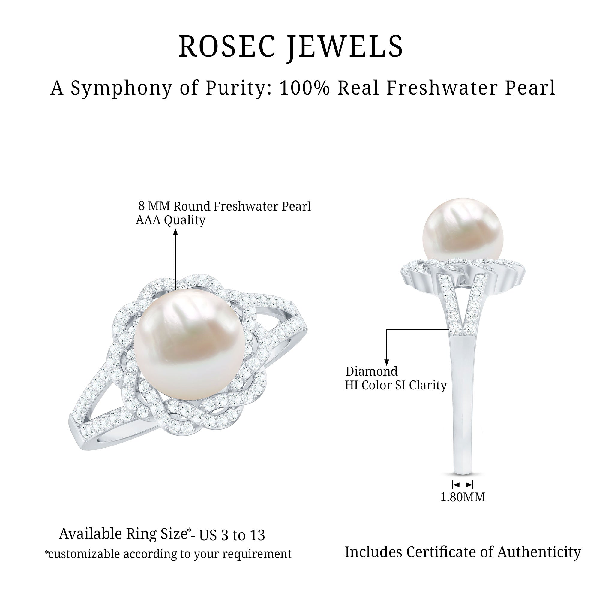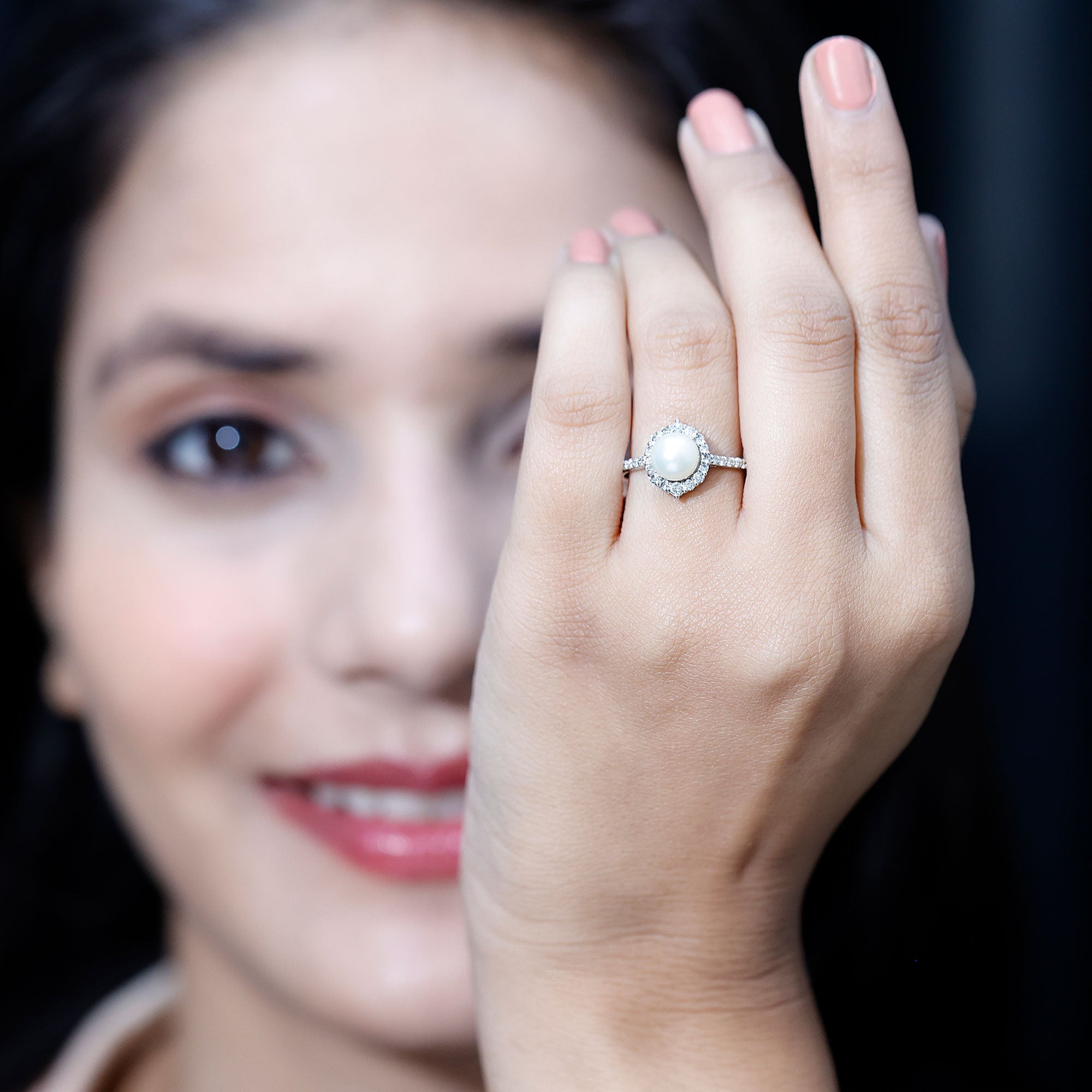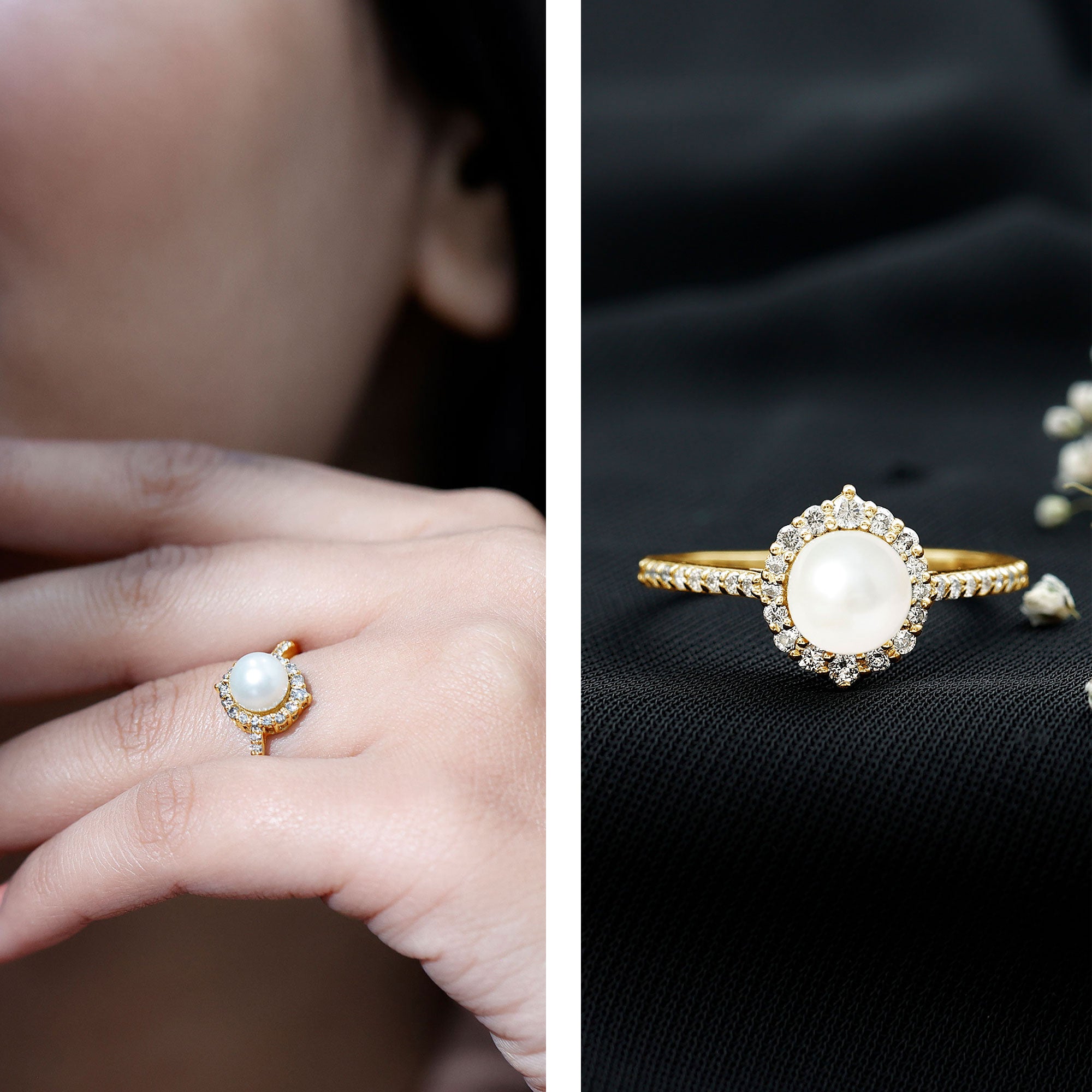 Freshwater Pearls Halo Rings: - each piece of freshwater pearl halo ring features a center attraction pearl that is securely encircled by small glittering diamonds or moissanite. This contrast maximizes the charm and elegance of the pearl, offering an enchanting visual impact.