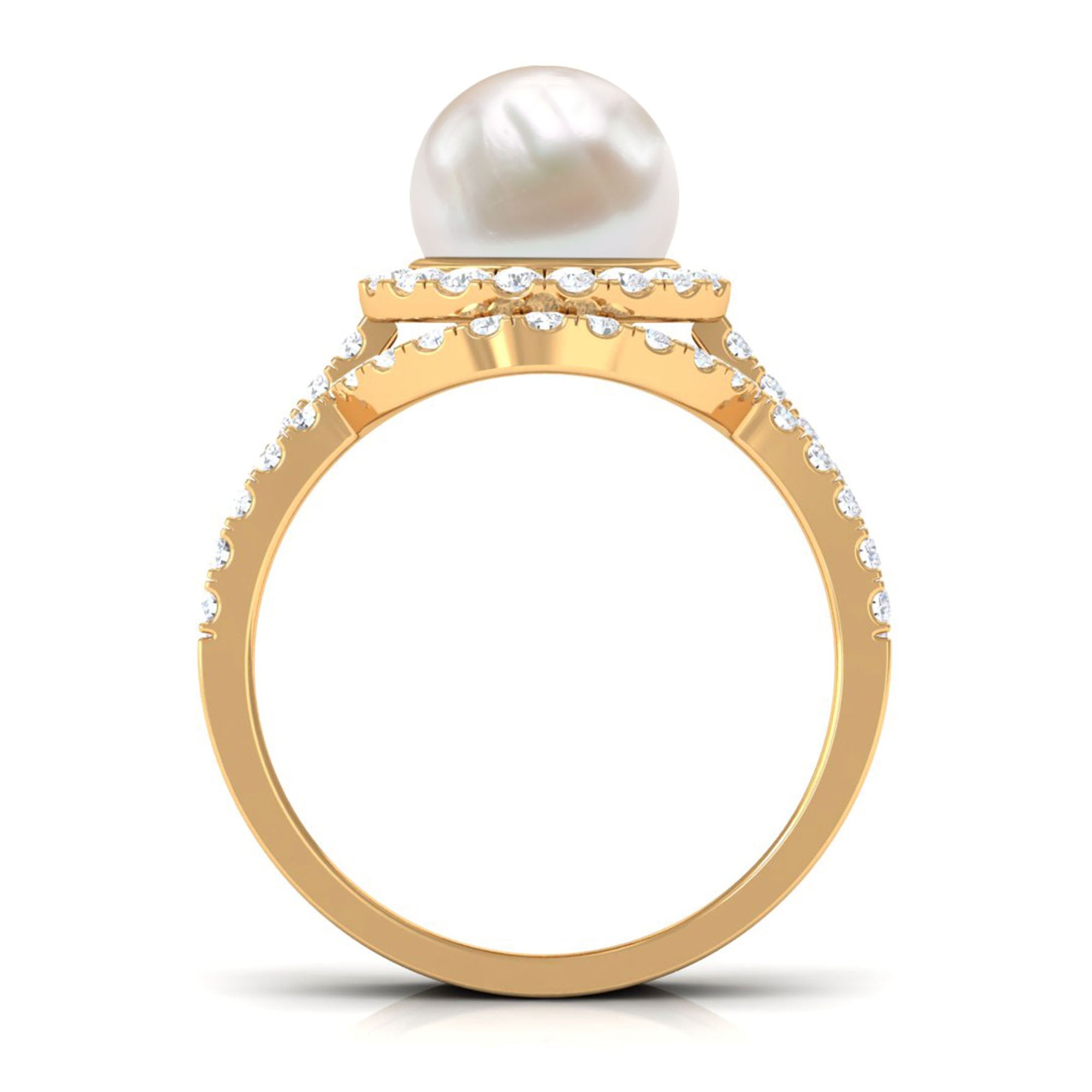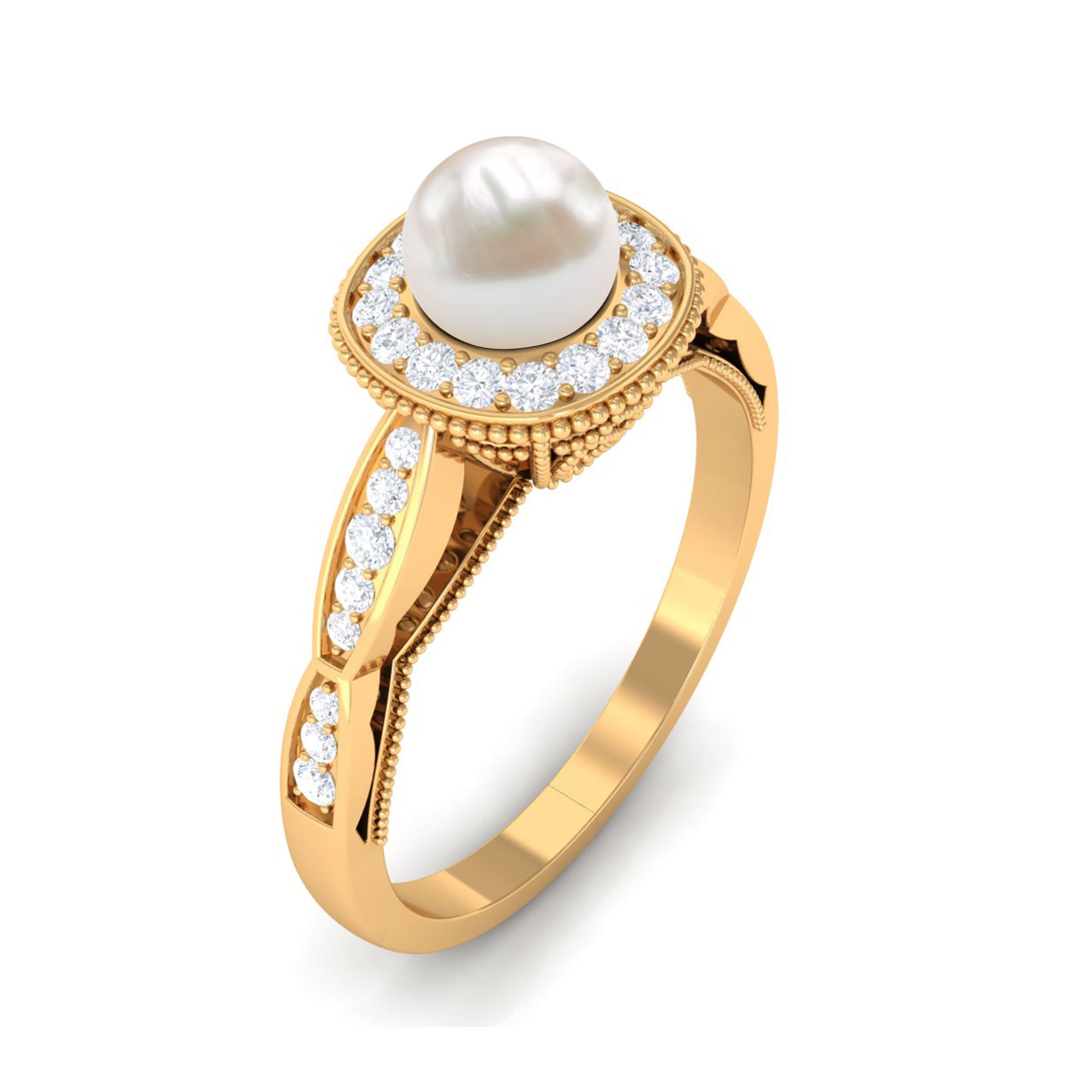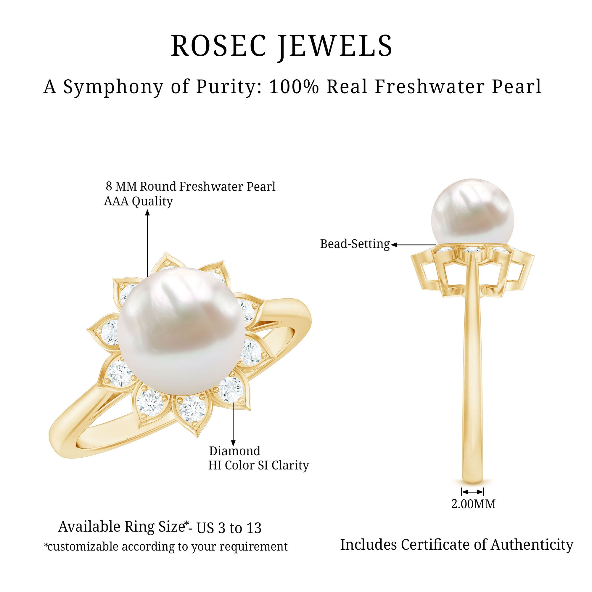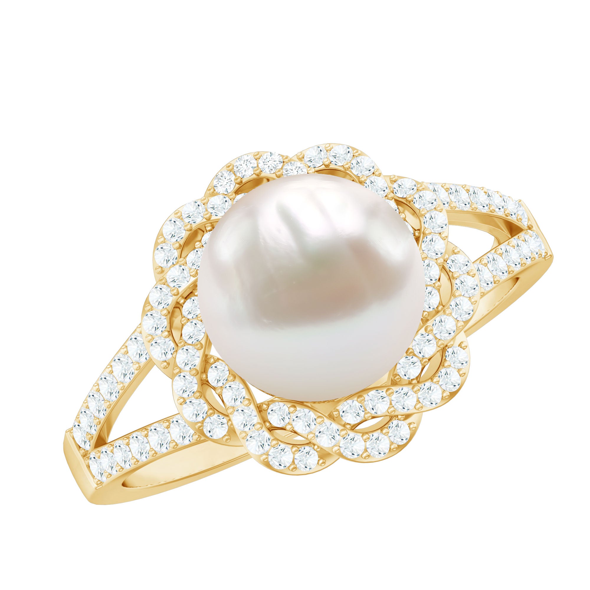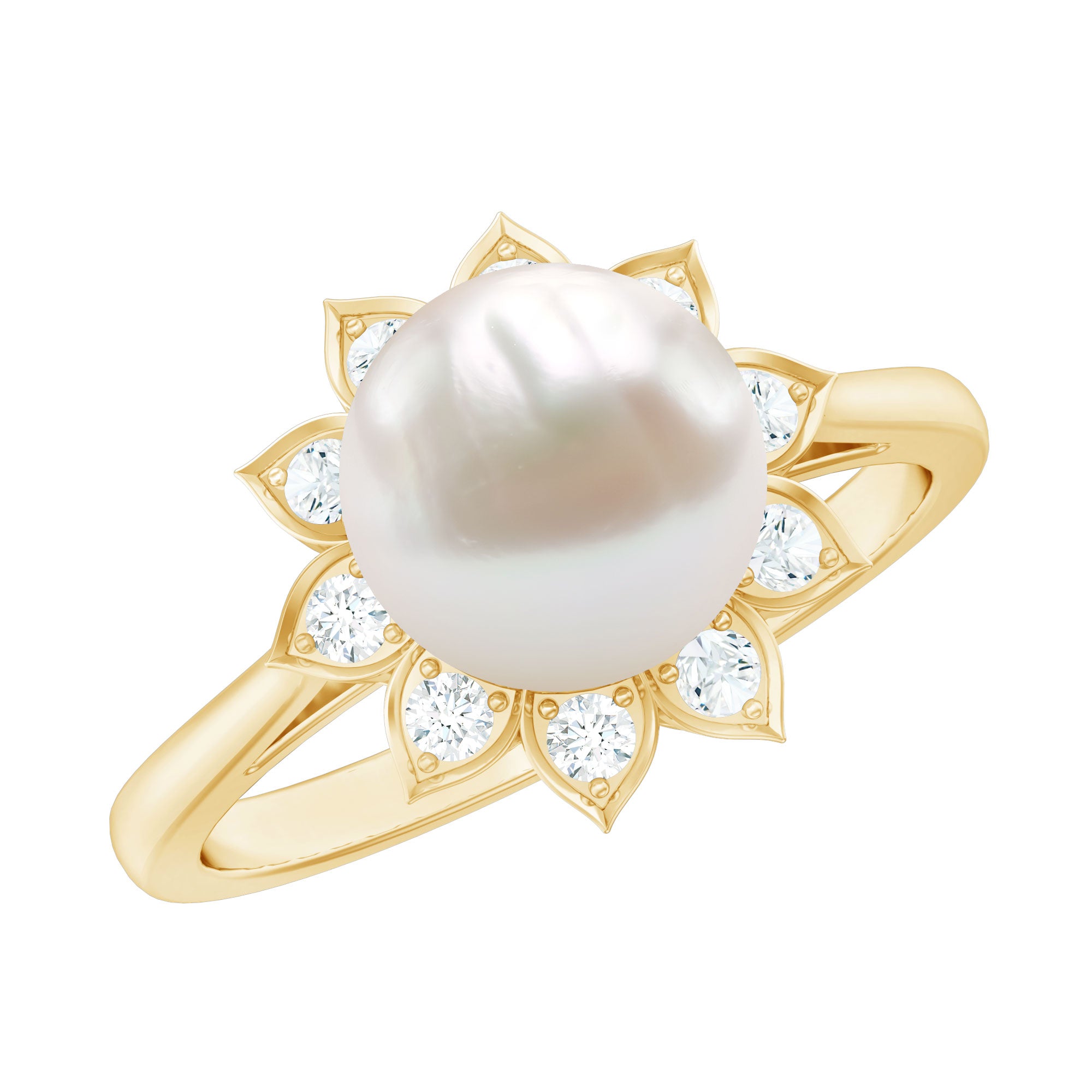 Freshwater Pearls Halo Rings: - each piece of freshwater pearl halo ring features a center attraction pearl that is securely encircled by small glittering diamonds or moissanite. This contrast maximizes the charm and elegance of the pearl, offering an enchanting visual impact.
