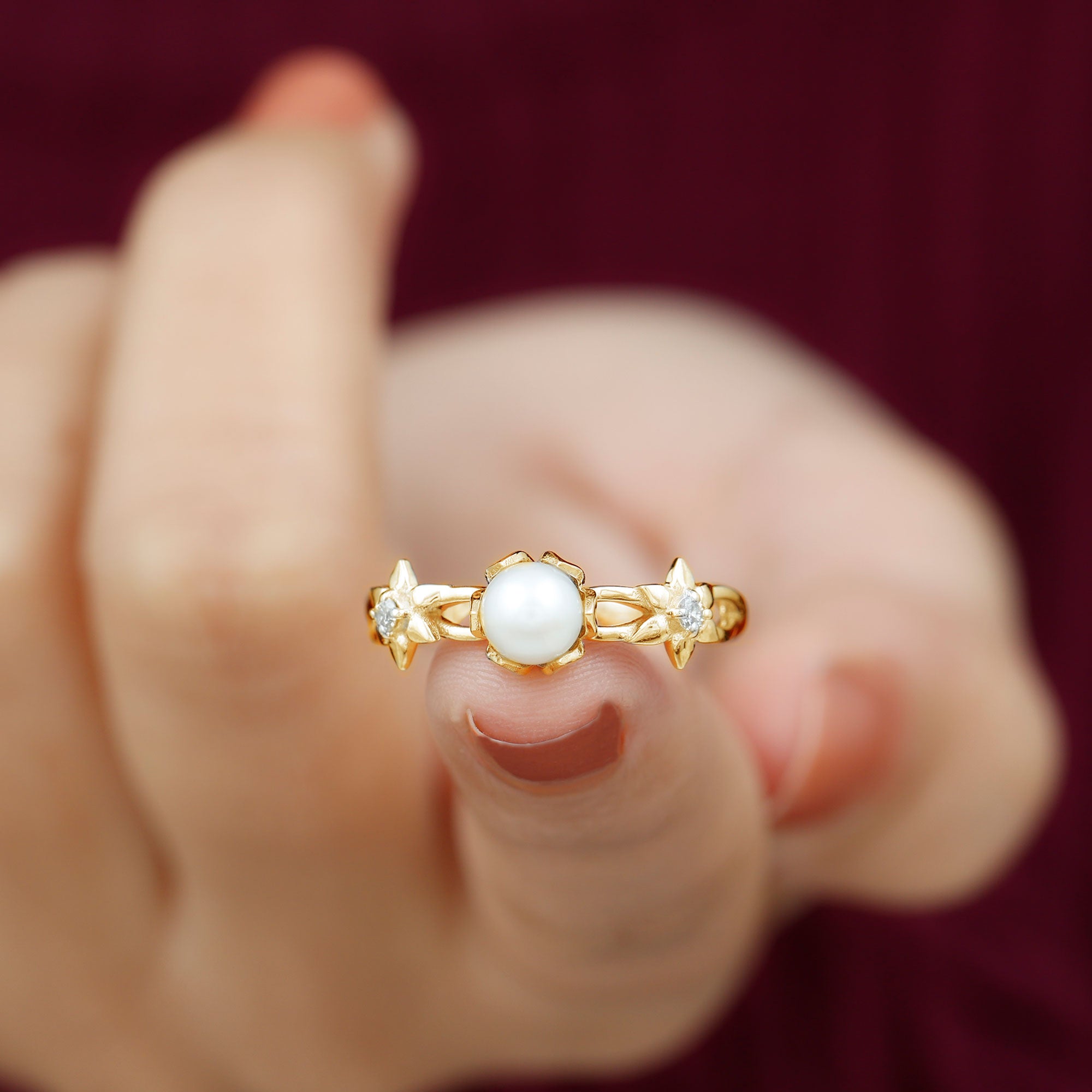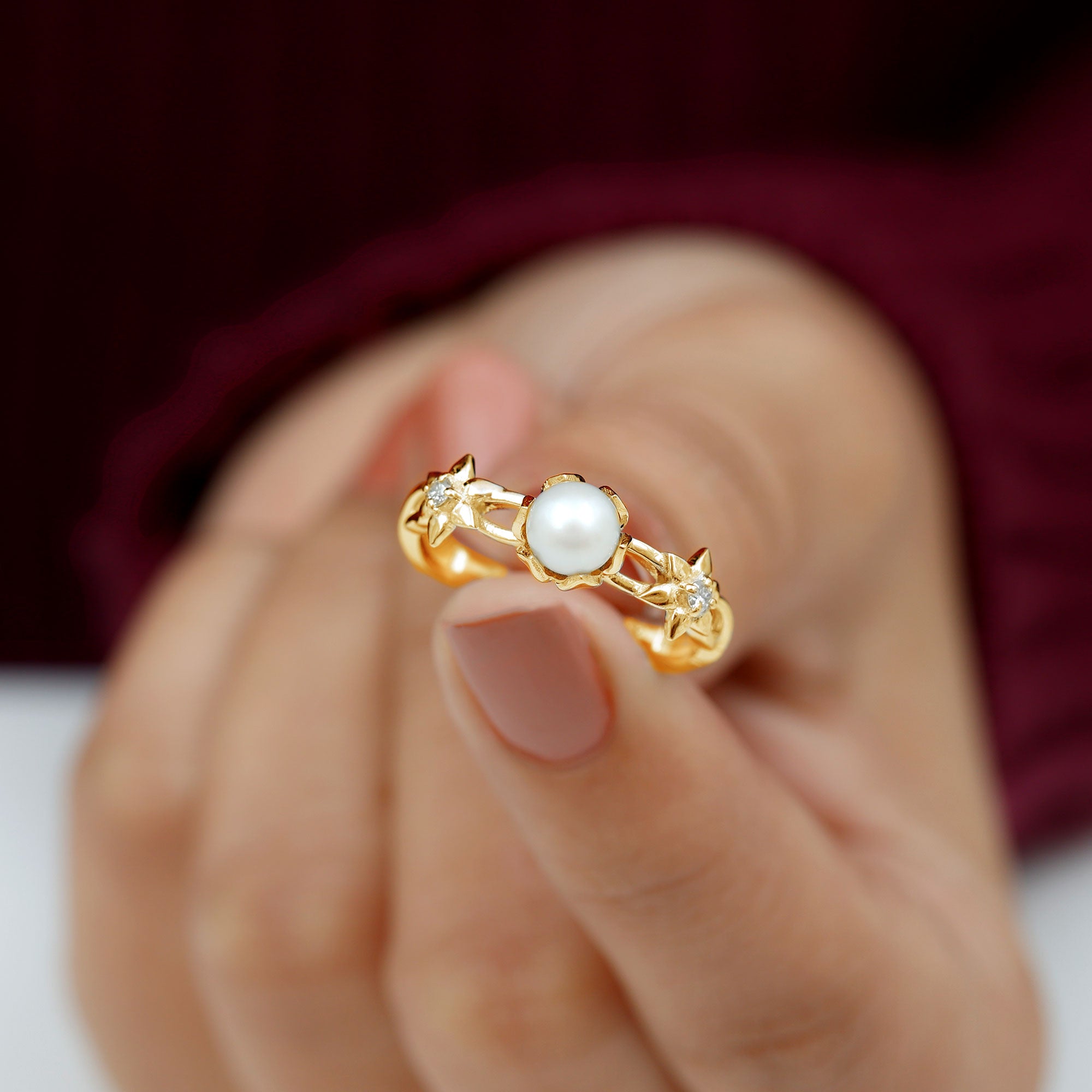 Nature Inspired Freshwater Pearl Rings: - elegantly exuding freshwater pearl, this ring is designed with the elements drawn from nature like leaf shape, and flower details. These rings elegantly combine the simplicity of peal with the nature inspired metal theme, creating a perfect mixture of artistic craftsmanship and timeless beauty. Each design is specially crafted for those who desire to buy valuable jewelry with an earth-inspired and organic aesthetic.