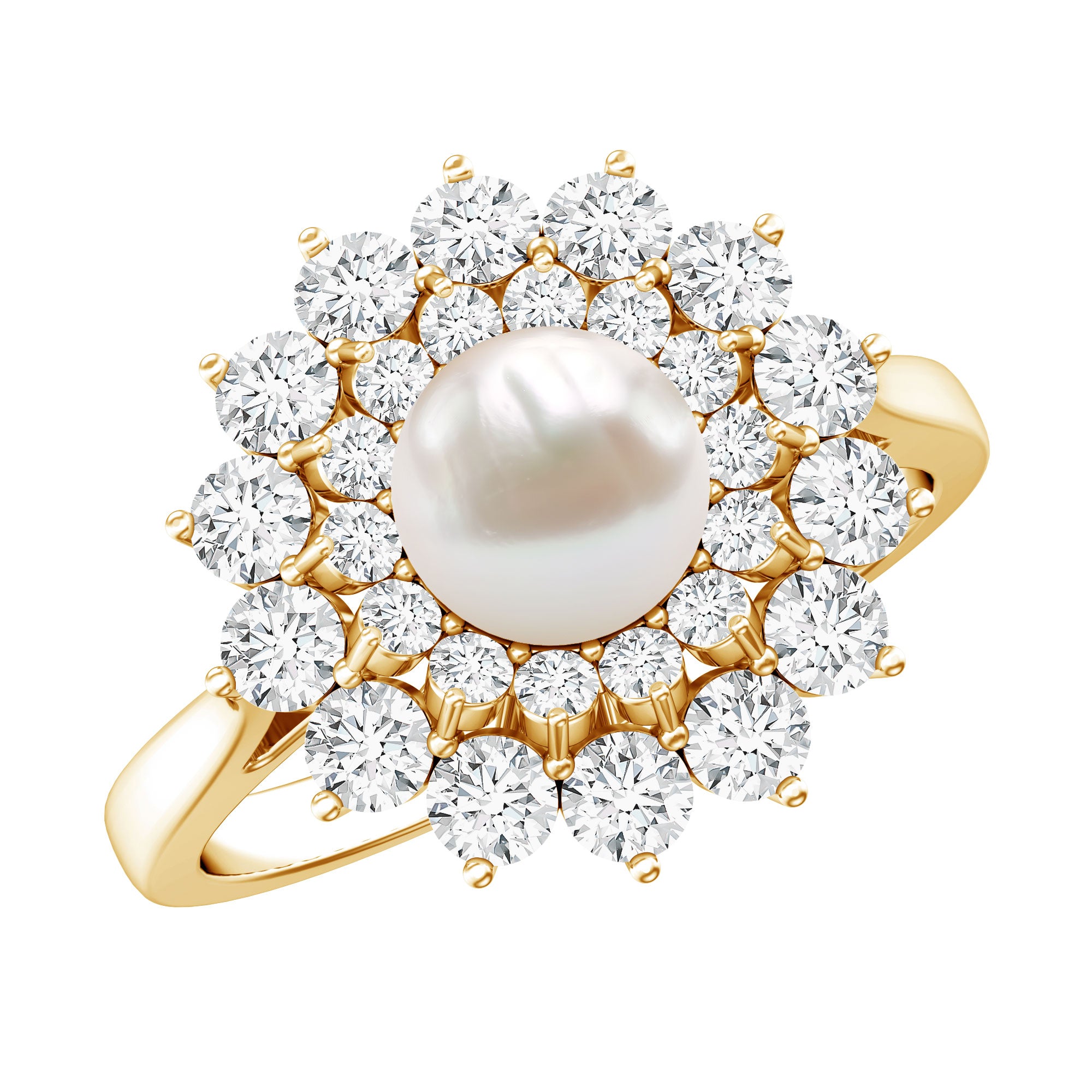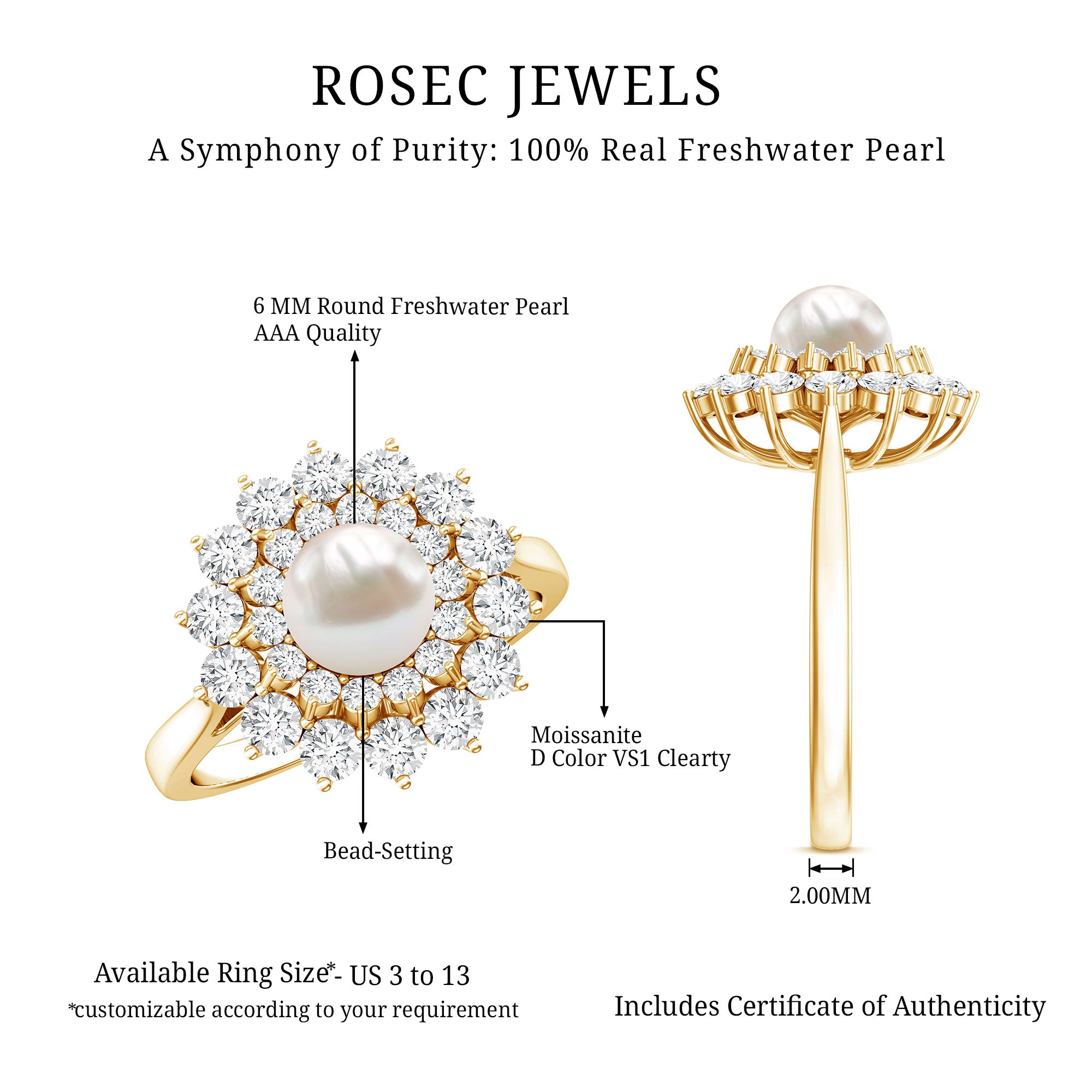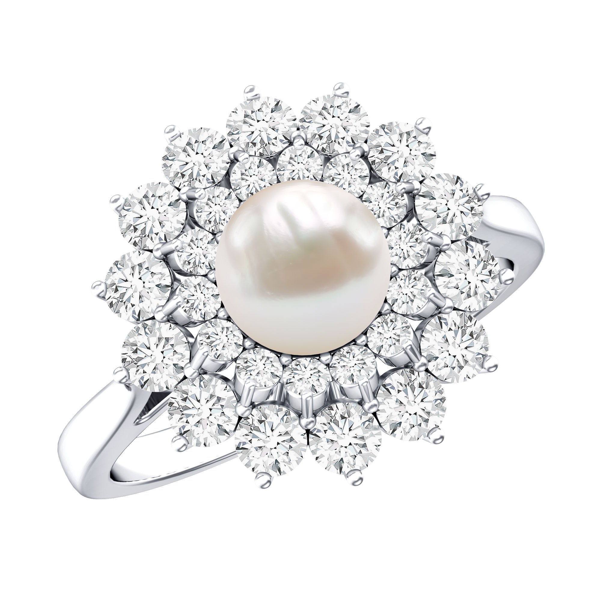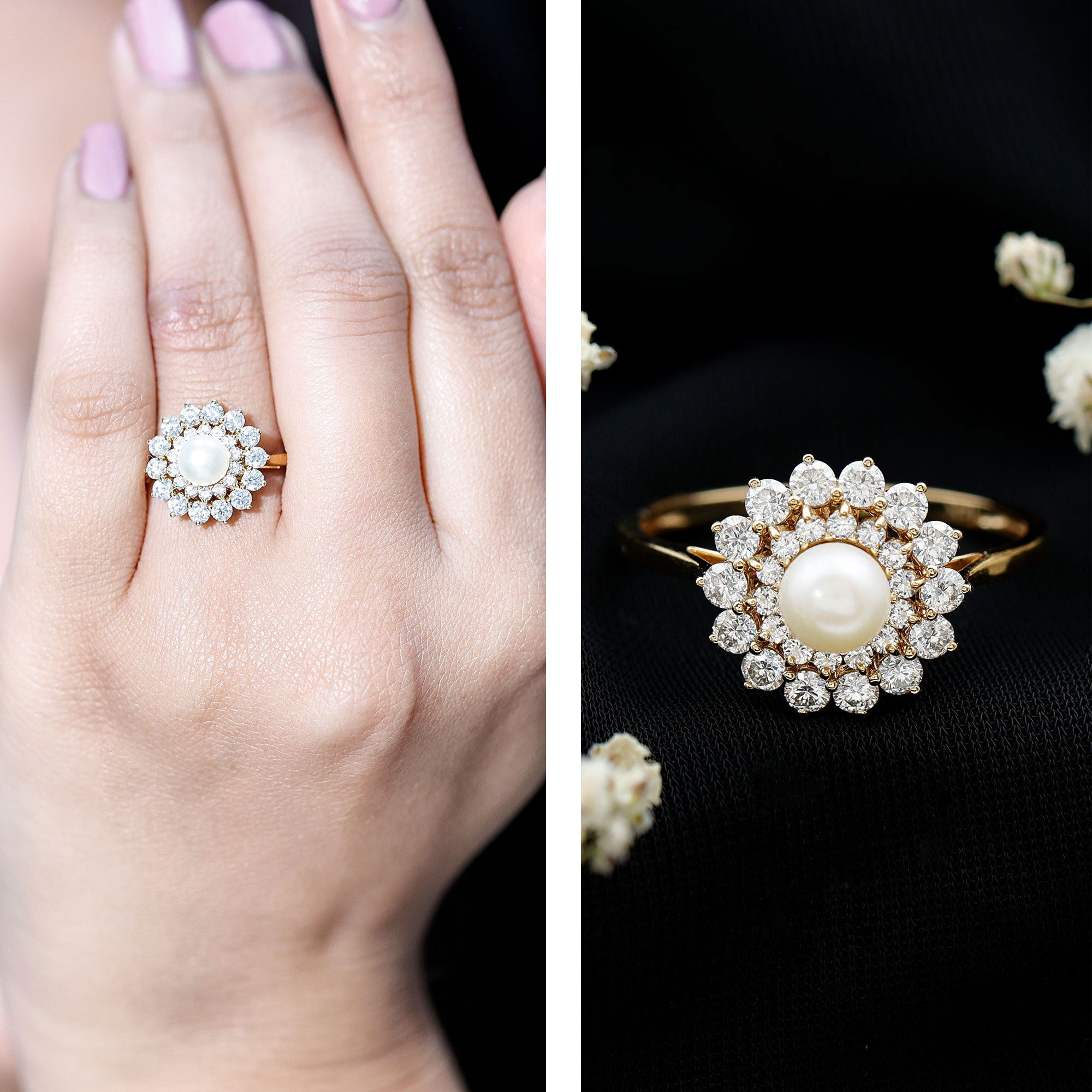 Freshwater Pearls Halo Rings: - each piece of freshwater pearl halo ring features a center attraction pearl that is securely encircled by small glittering diamonds or moissanite. This contrast maximizes the charm and elegance of the pearl, offering an enchanting visual impact.