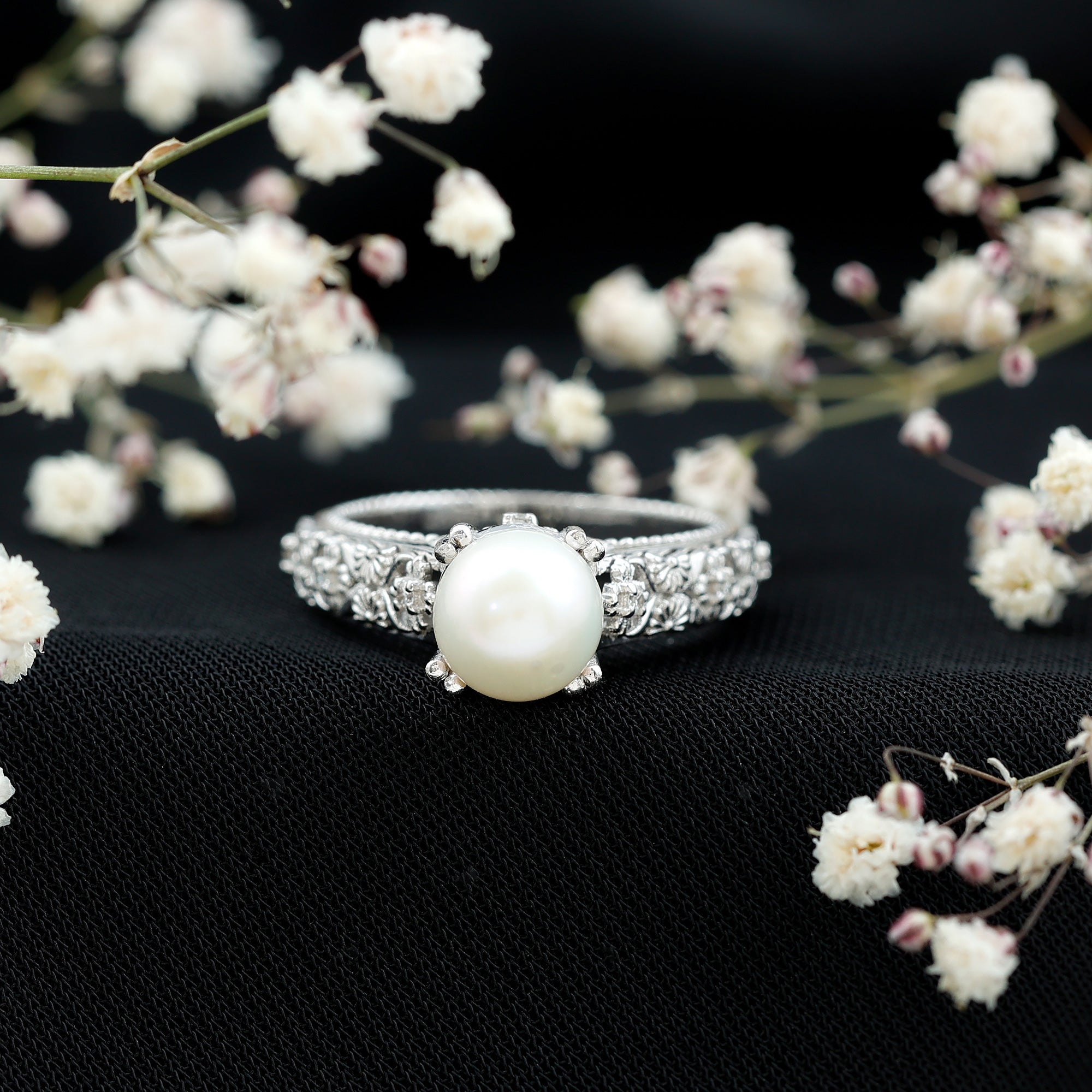 Freshwater Pearl Solitaire Rings: - Features a single pearl, set to grab the attention as a centerpiece. Our freshwater pearl solitaire rings are sought-after for their refinement and simplicity. Typically, solitaire pearl rings crafted in metal bands like white gold, yellow gold, and sterling silver, create timeless elegance for wearers.
