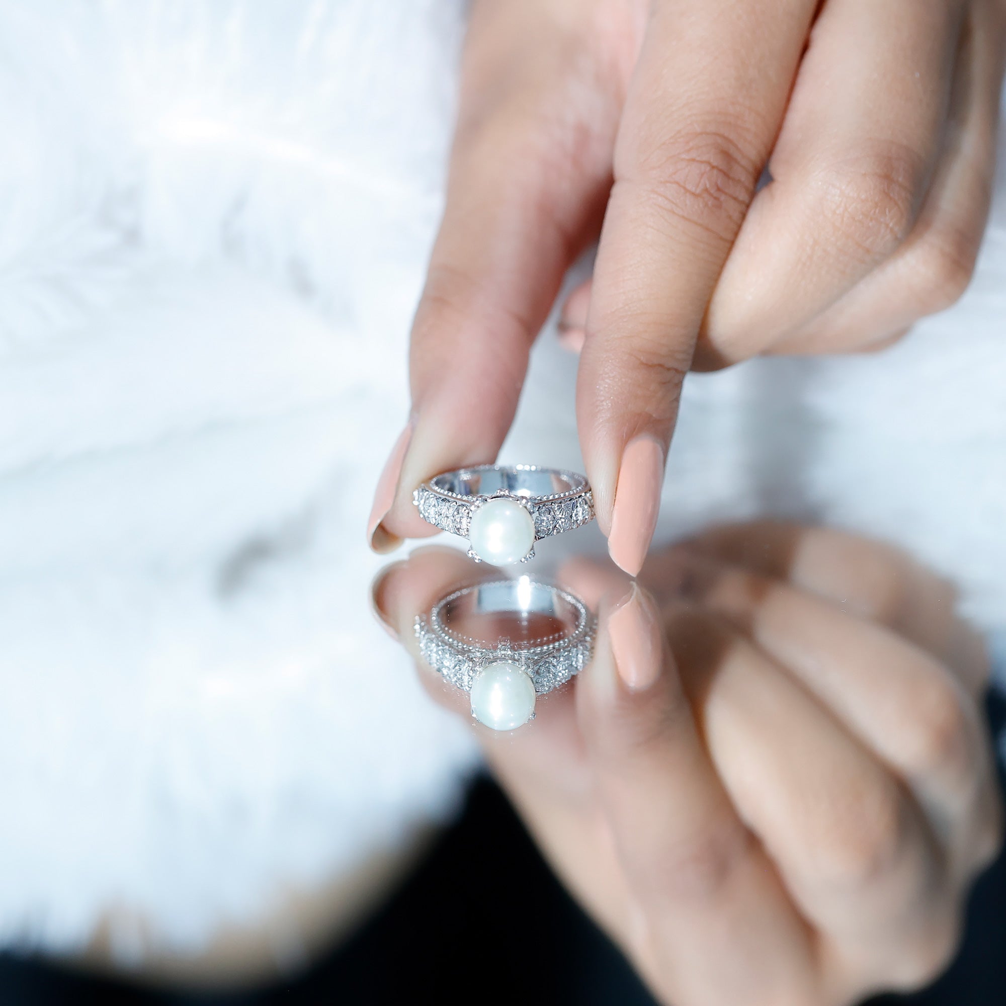 Freshwater Pearl Cocktail Rings: - creates a bold statement but yet exhibits a sophisticated look. The freshwater pearl cocktail rings intricate the large freshwater pearl often elaborated with additional gemstones like diamond and moissanite. All the cocktail rings are designed to be a centerpiece of attention, each one is crafted to radiate an enchanting glow and glamour.