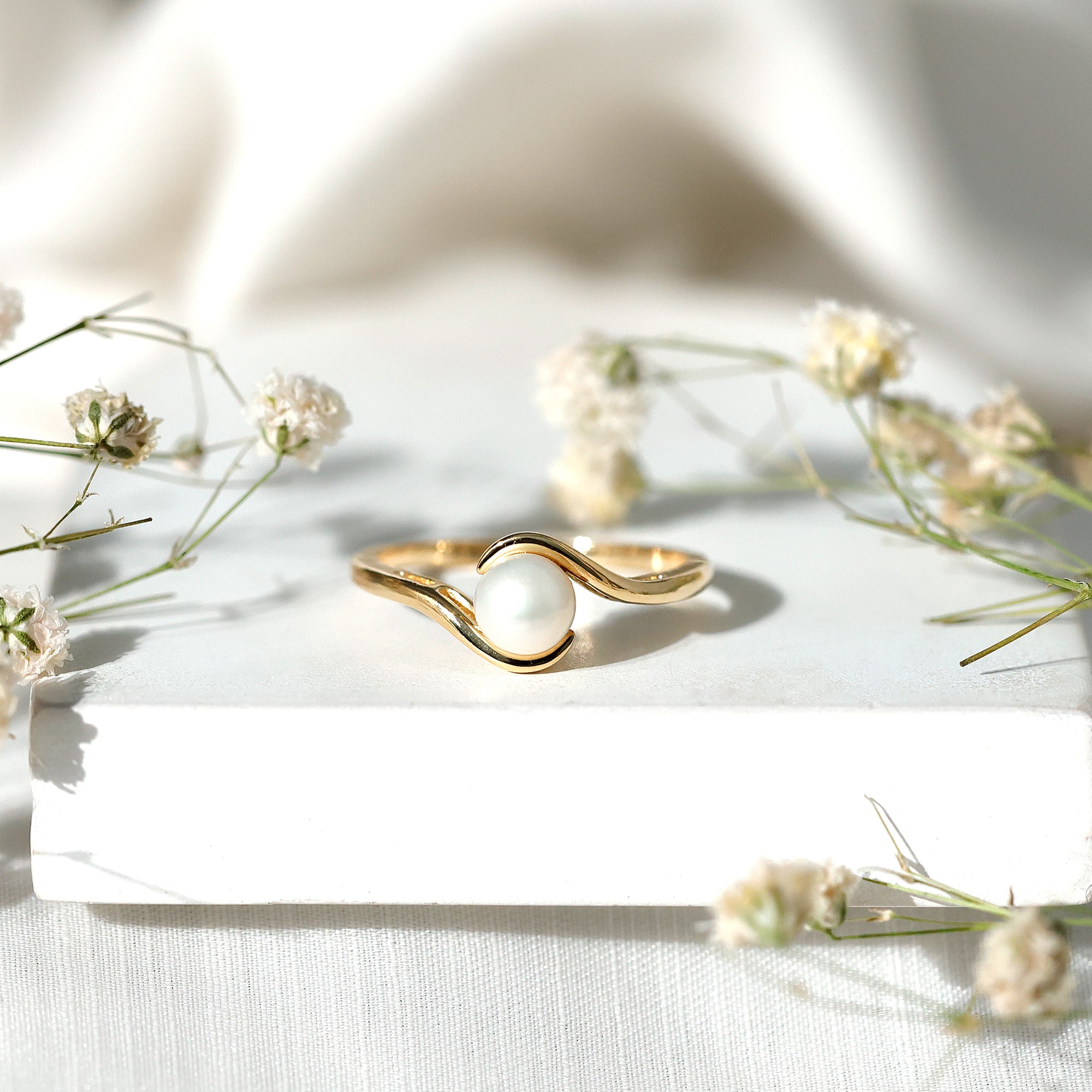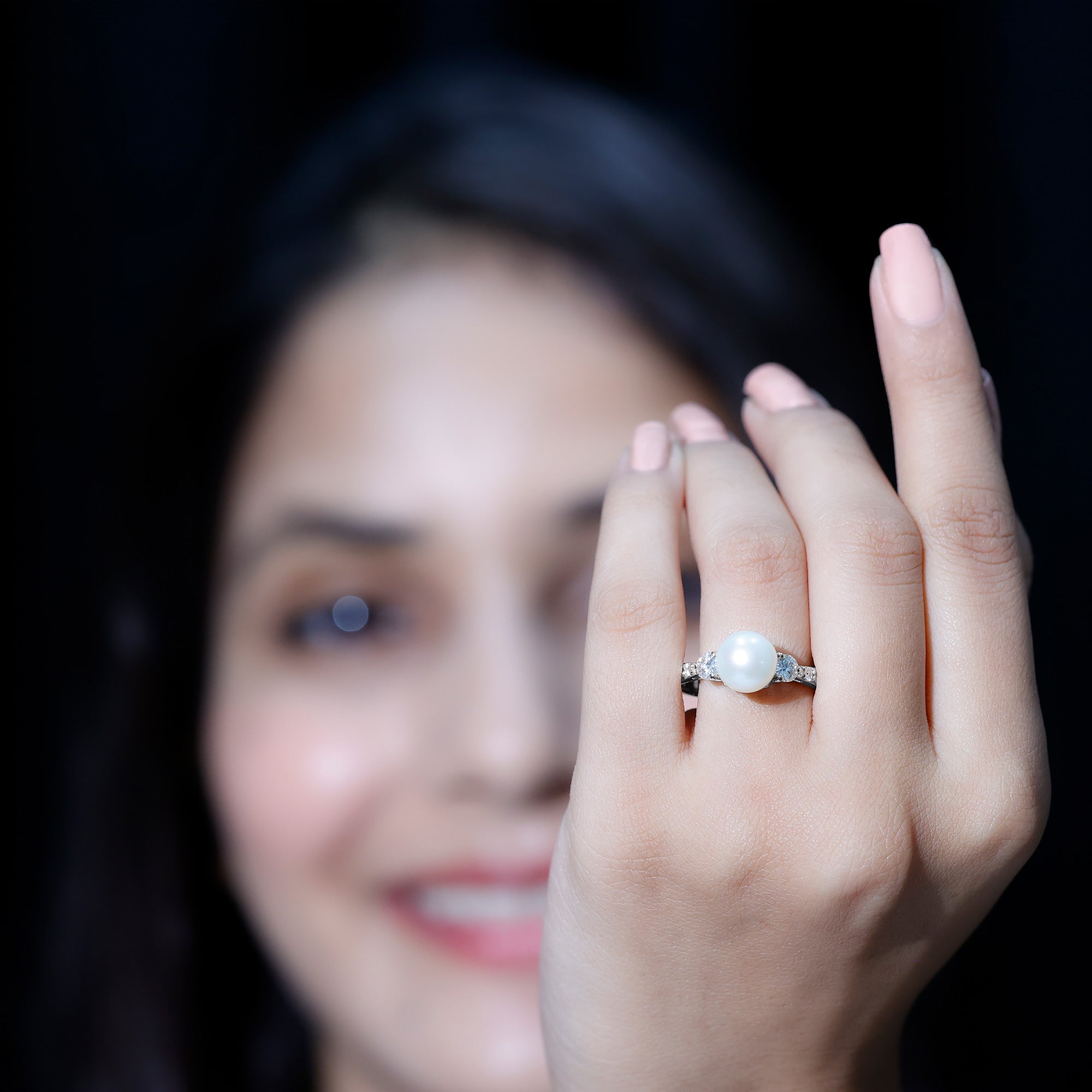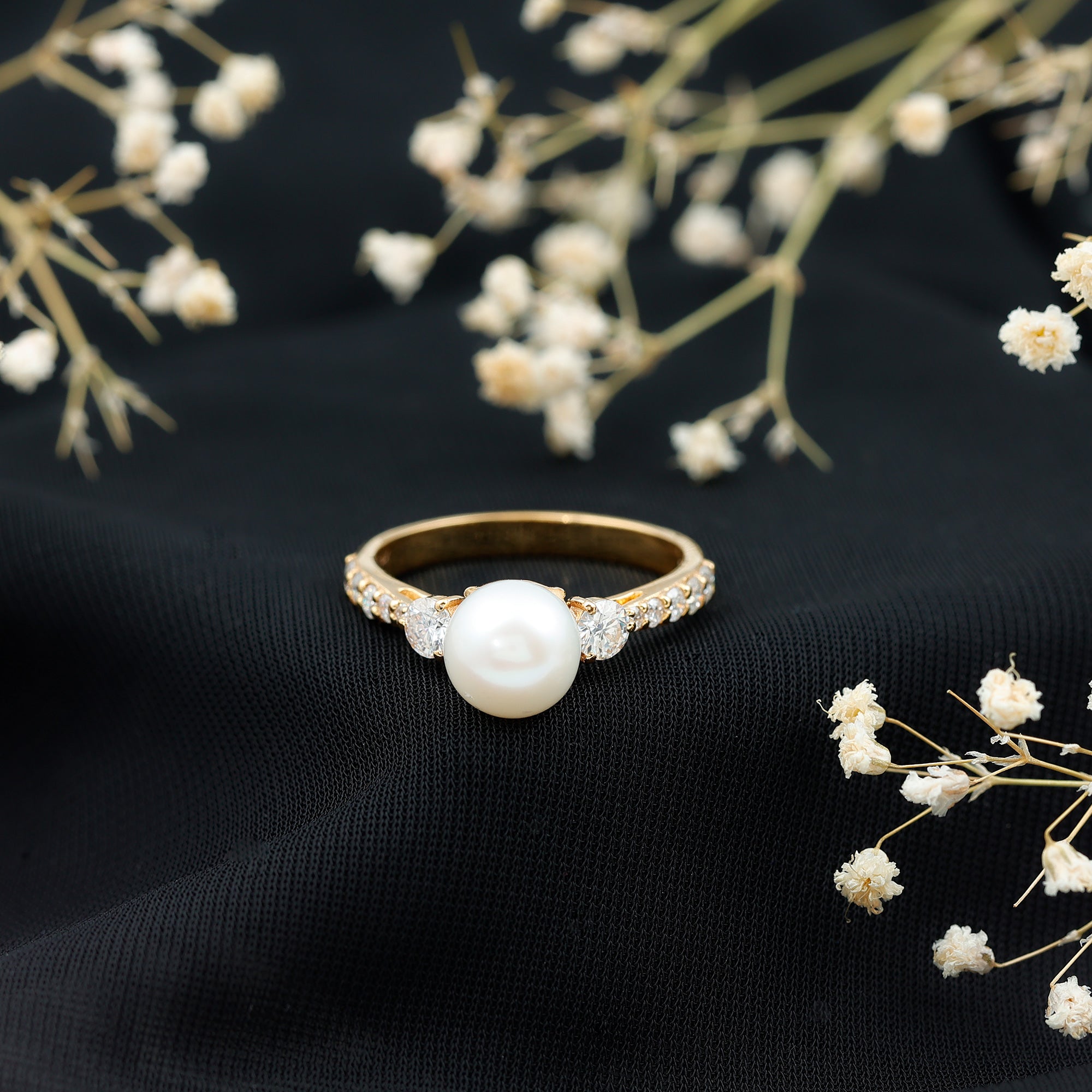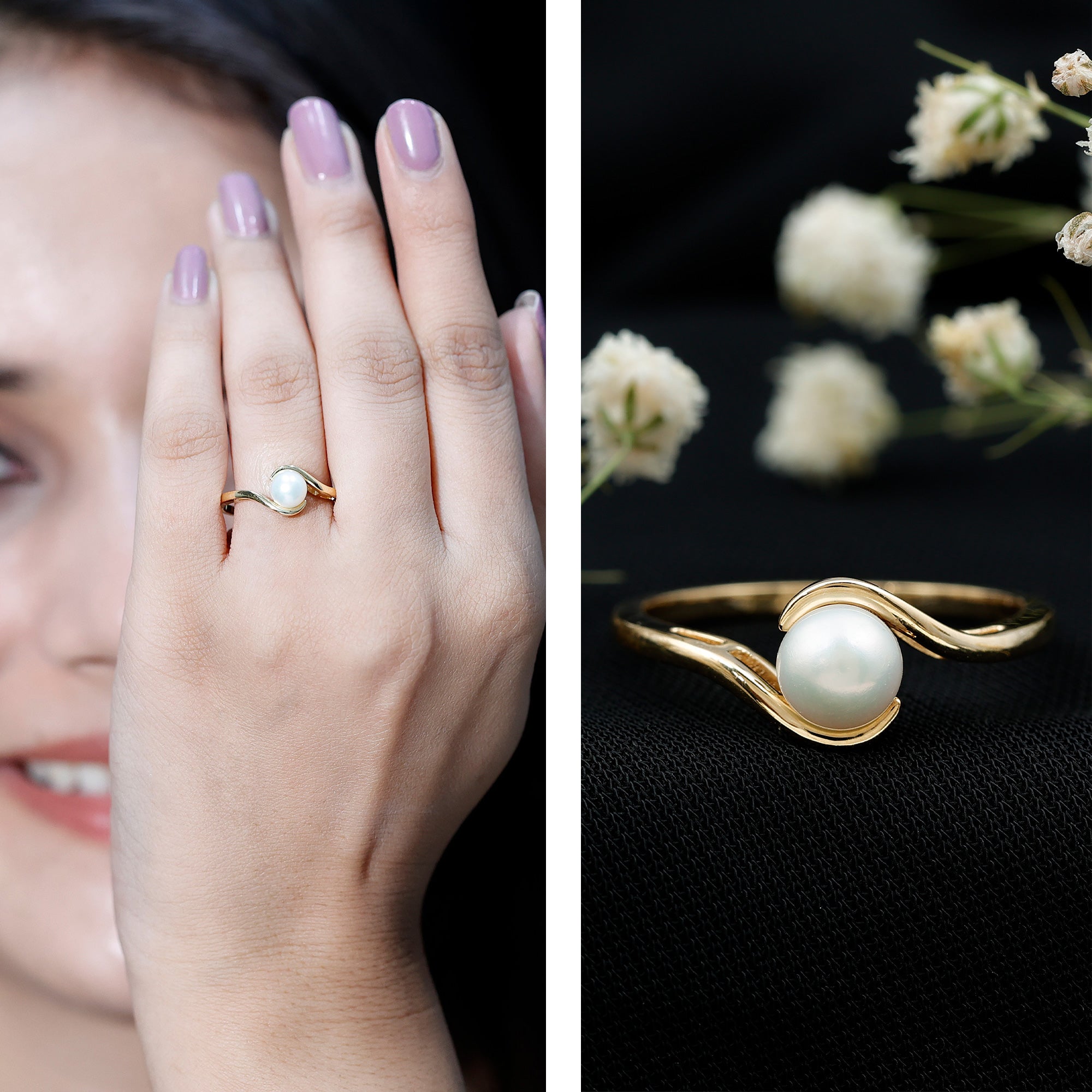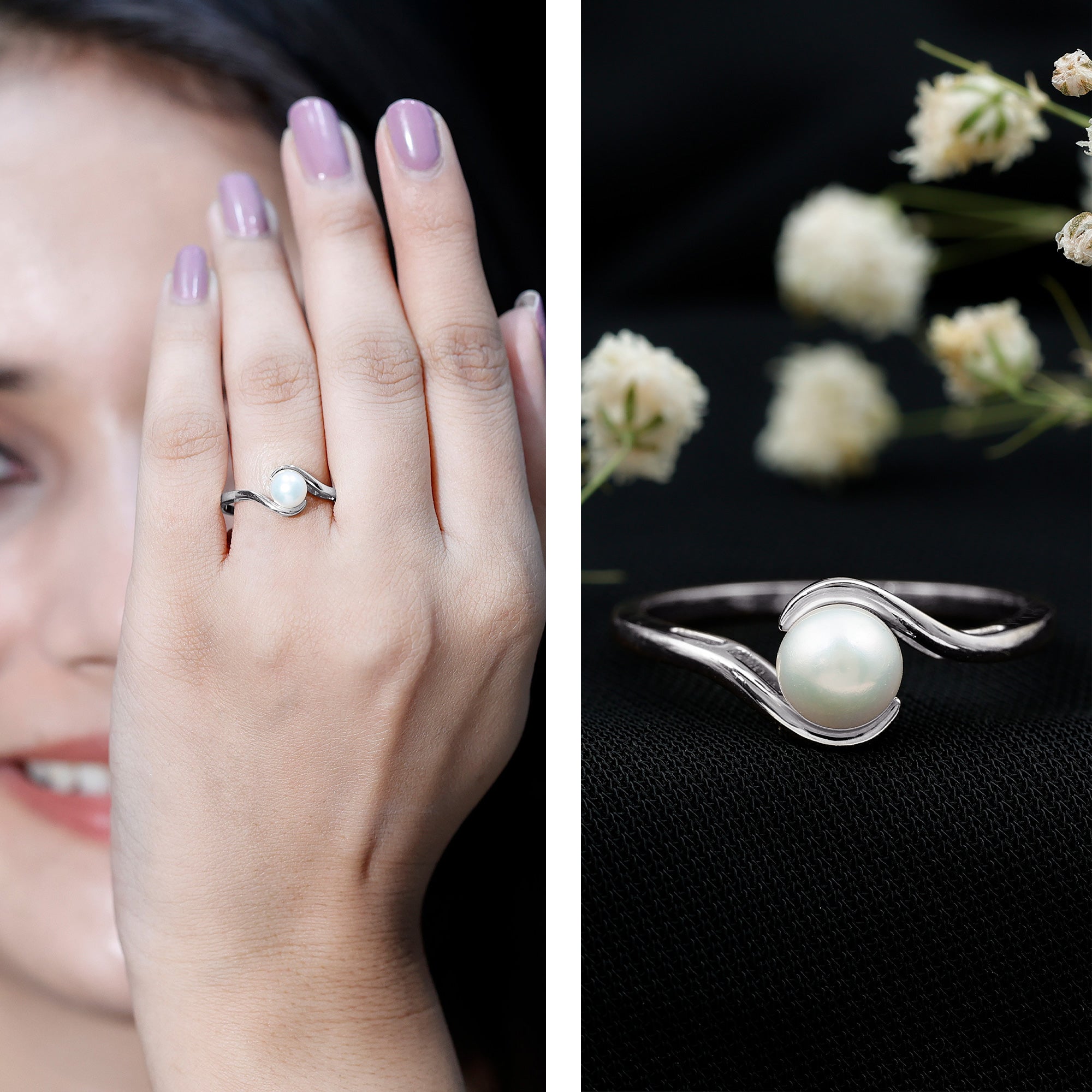 Freshwater Pearl Solitaire Rings: - Features a single pearl, set to grab the attention as a centerpiece. Our freshwater pearl solitaire rings are sought-after for their refinement and simplicity. Typically, solitaire pearl rings crafted in metal bands like white gold, yellow gold, and sterling silver, create timeless elegance for wearers.