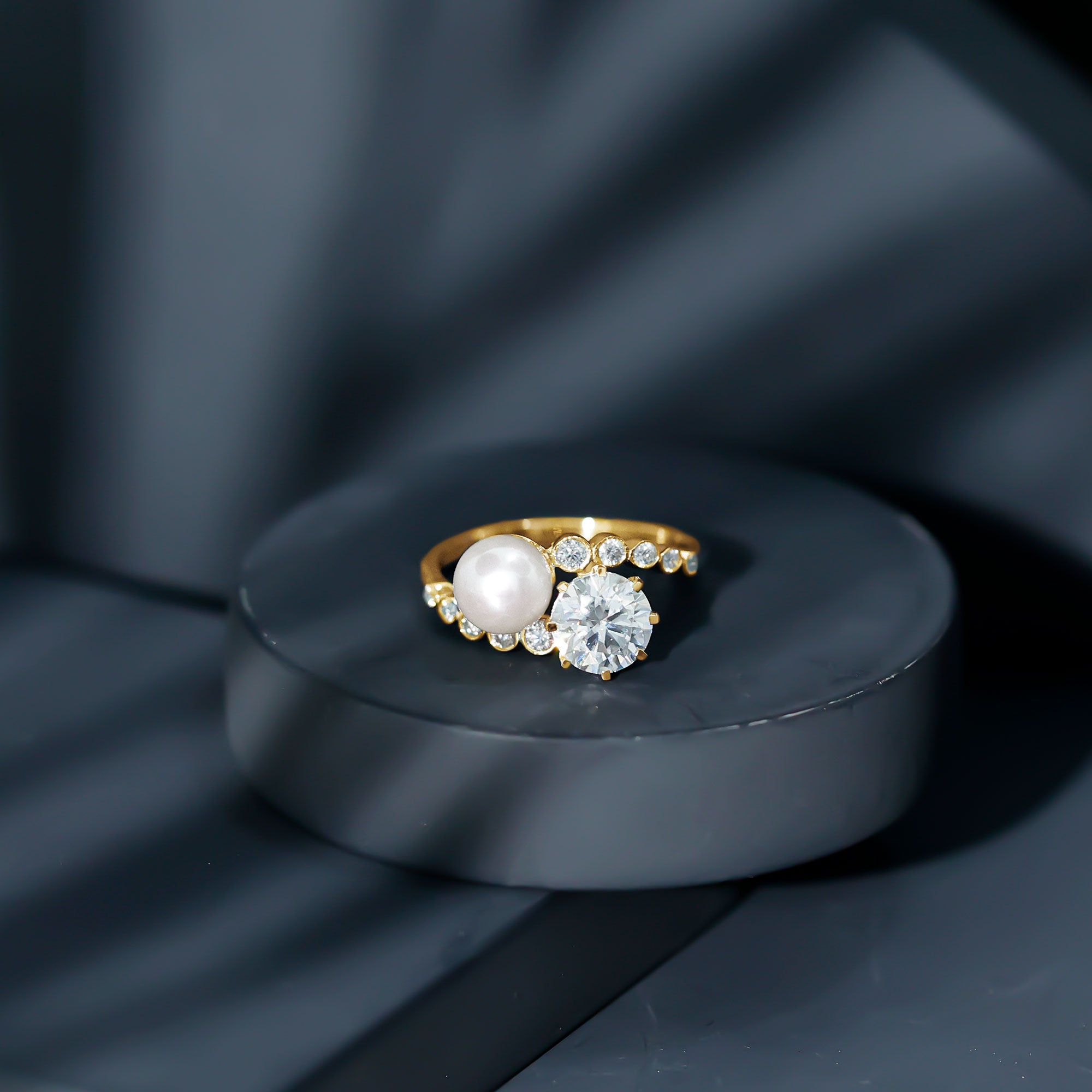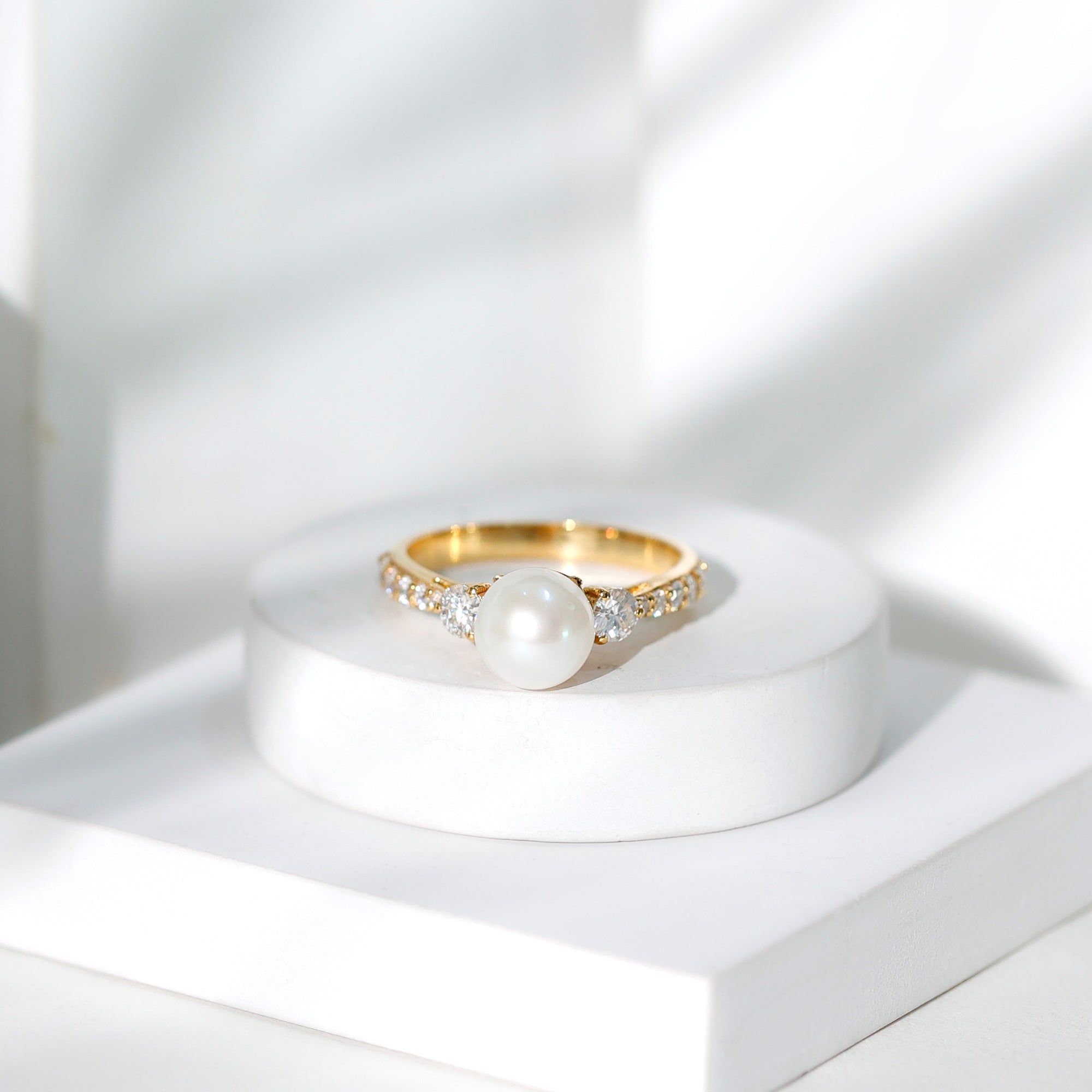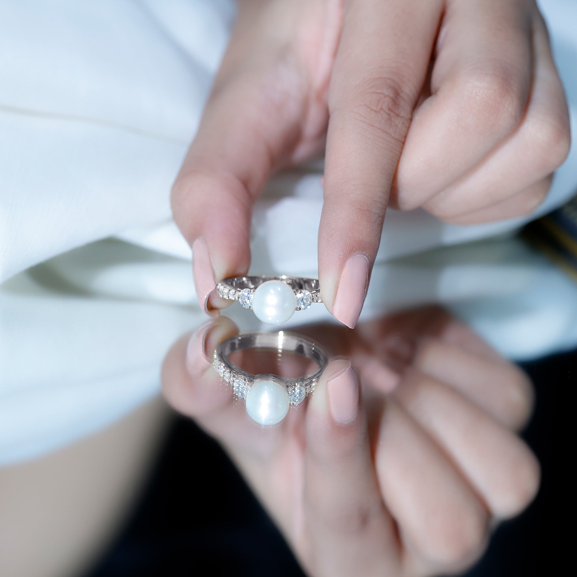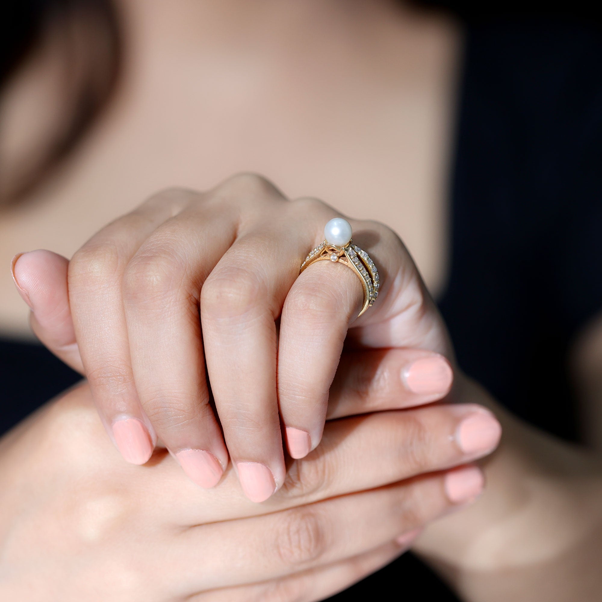 Freshwater Pearl Contemporary Rings: represents a fusion of modern design with the aesthetic charm of freshwater pearls. Each ring is characterized by contemporary styles that combine with classic elegance of pearl and extra gemstones such as diamonds and others. Typically, each contemporary freshwater pearl ring features a minimalist wrap design and sparkling diamond gems, adding a contemporary twist.