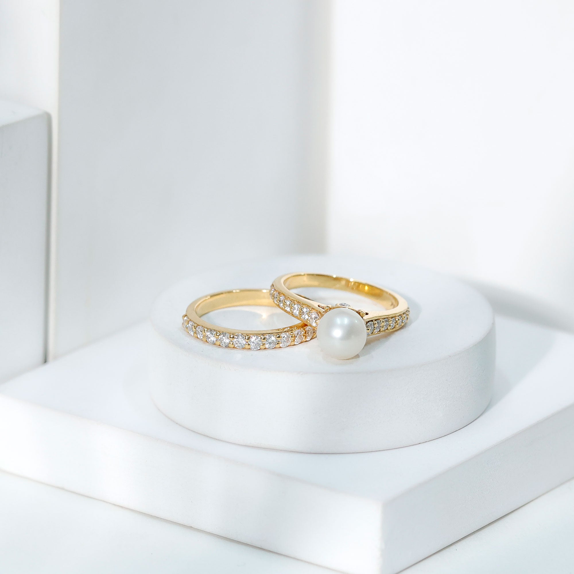 Freshwater Pearl Wedding Ring Set: - These exquisite ring sets often include an engagement ring and wedding band, each ring integrates freshwater pearl as a main attraction with the complementary details. These rings merge the dazzling appeal of pearl with the extra gems, the perfect accessory for a wedding occasion with a romantic feel.