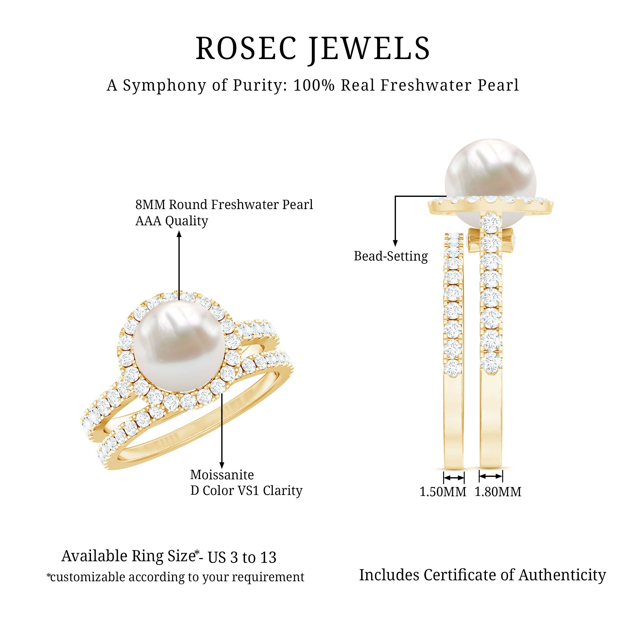Freshwater Pearls Halo Rings: - each piece of freshwater pearl halo ring features a center attraction pearl that is securely encircled by small glittering diamonds or moissanite. This contrast maximizes the charm and elegance of the pearl, offering an enchanting visual impact.