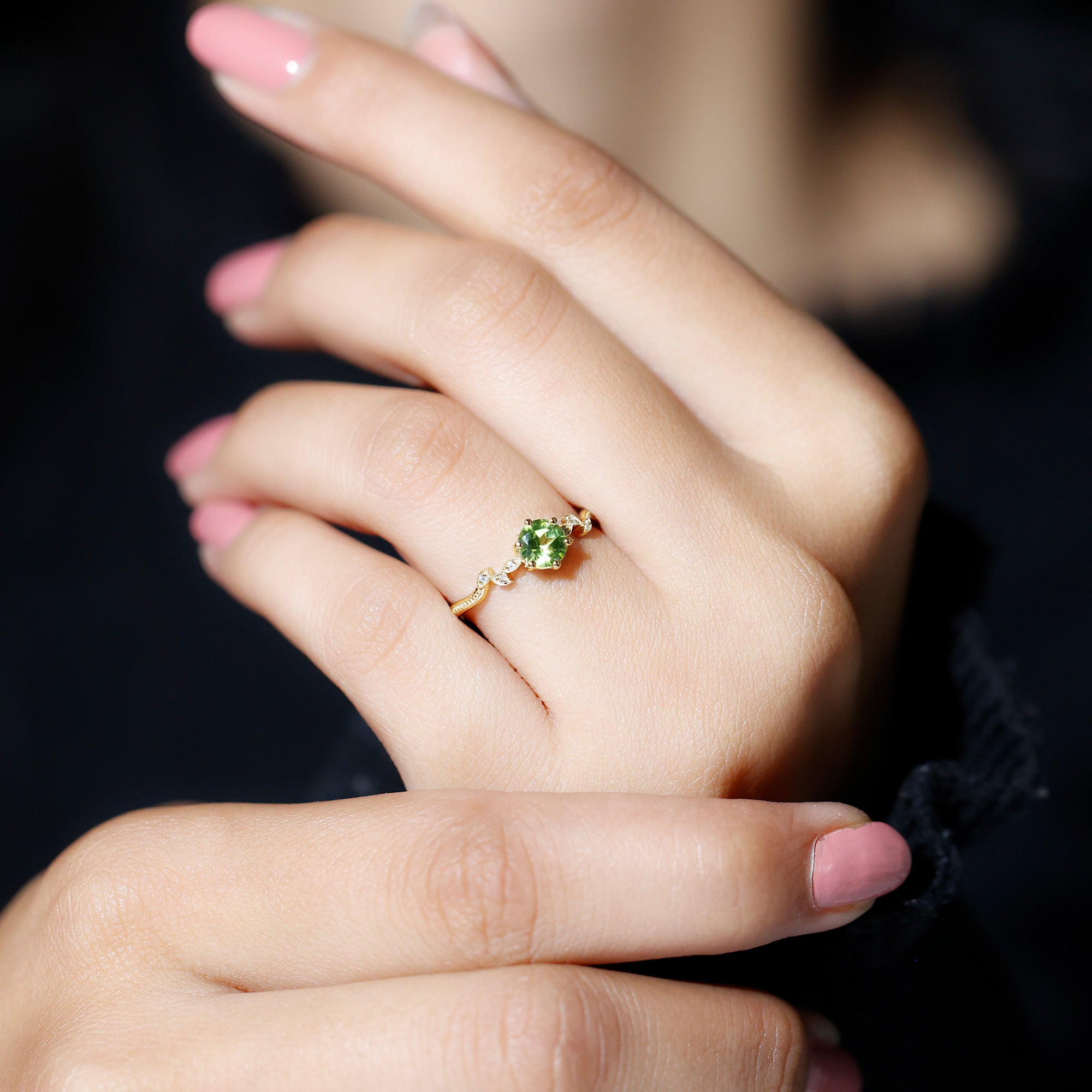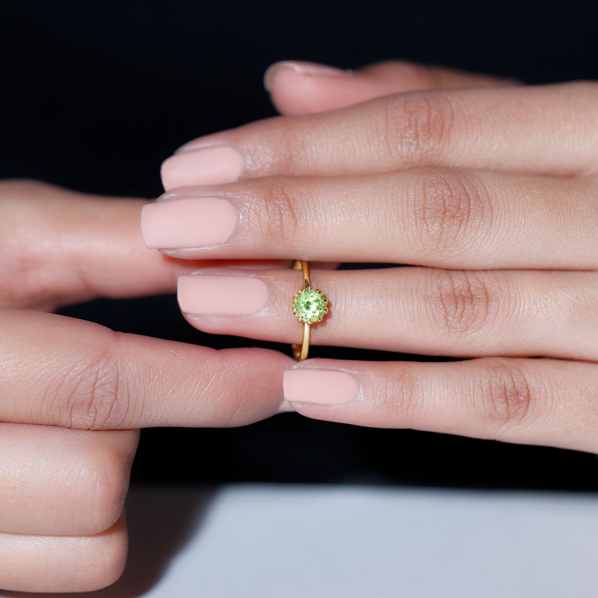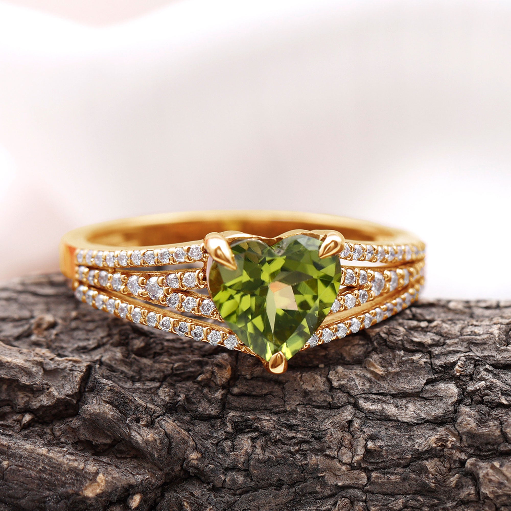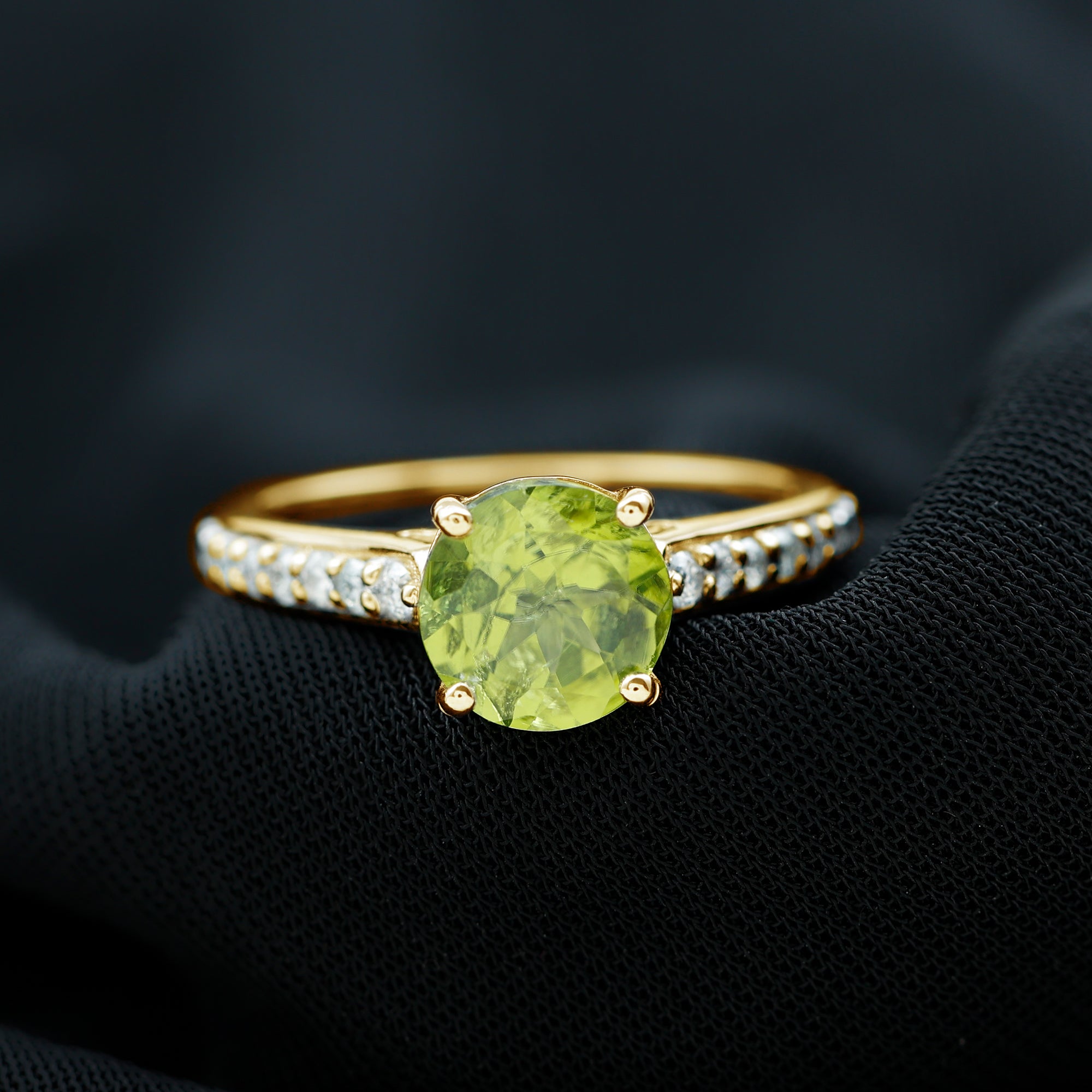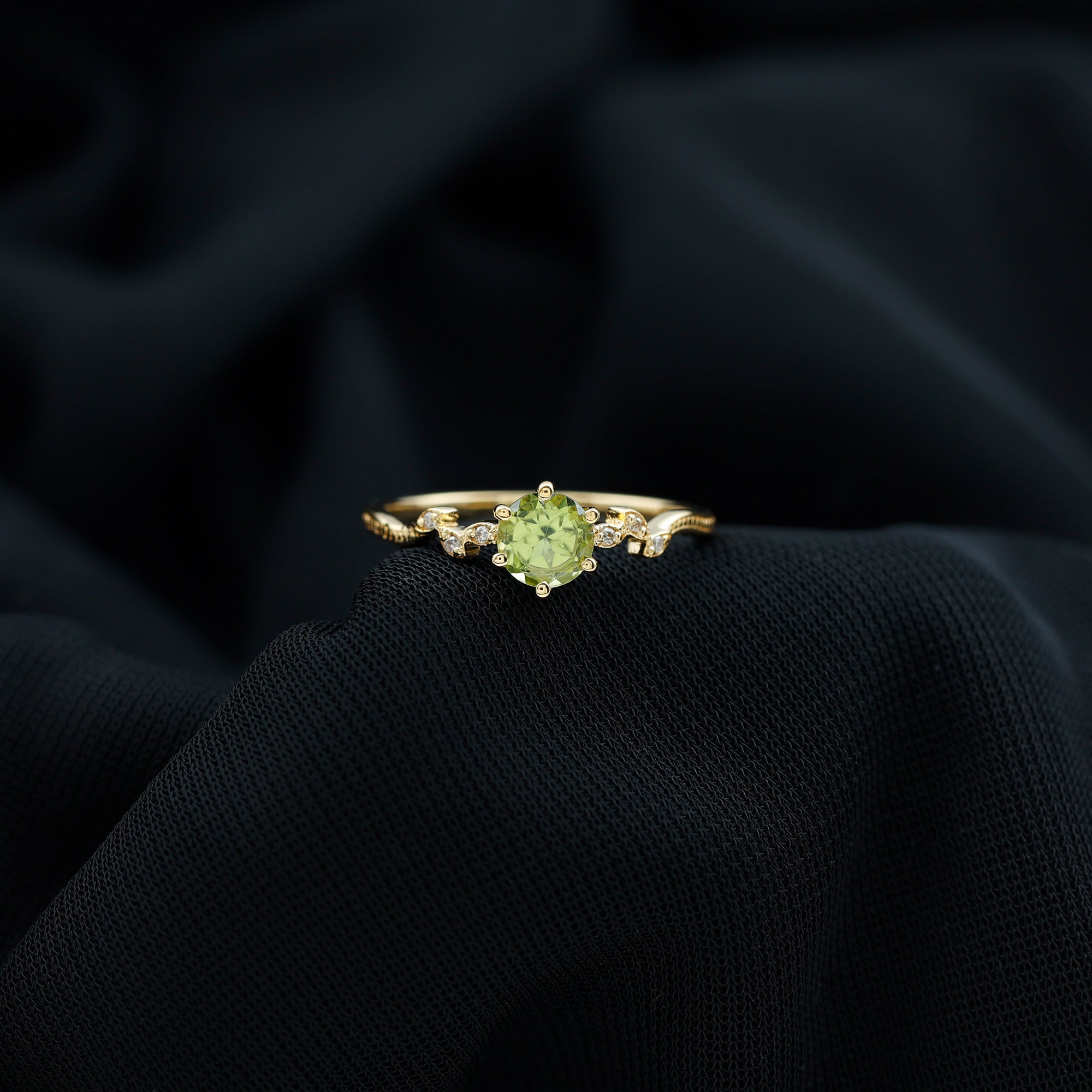 Held in high regard as one of the most classic Peridot Engagement Rings out there, it is characterized by a solo centerpiece of Peridot that steals the limelight. It can also be labeled as the most versatile ring style since the Peridot Solitaire offers you a sea of options in terms of aesthetics, be it the classic Round Peridot Rings offering a traditional aesthetic, the ones fashioned with Pear, Marquise, and Princess exuding an unconventional touch, or Asscher and Emerald Cut Peridot Rings for that perfect vintage vibe.