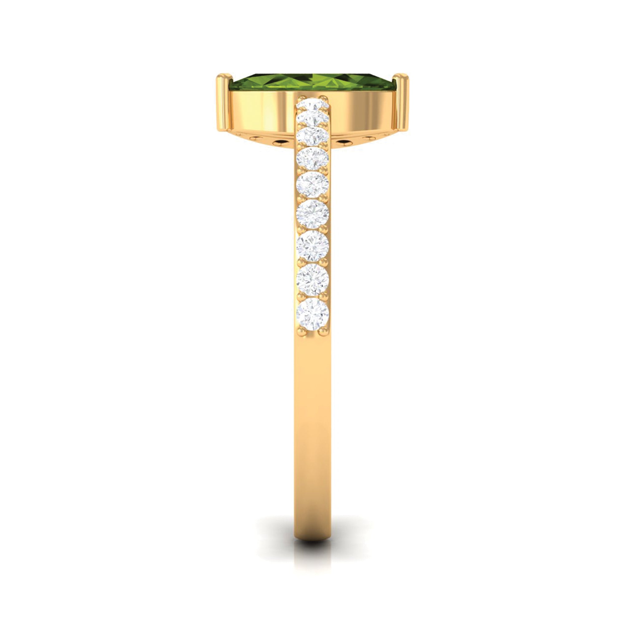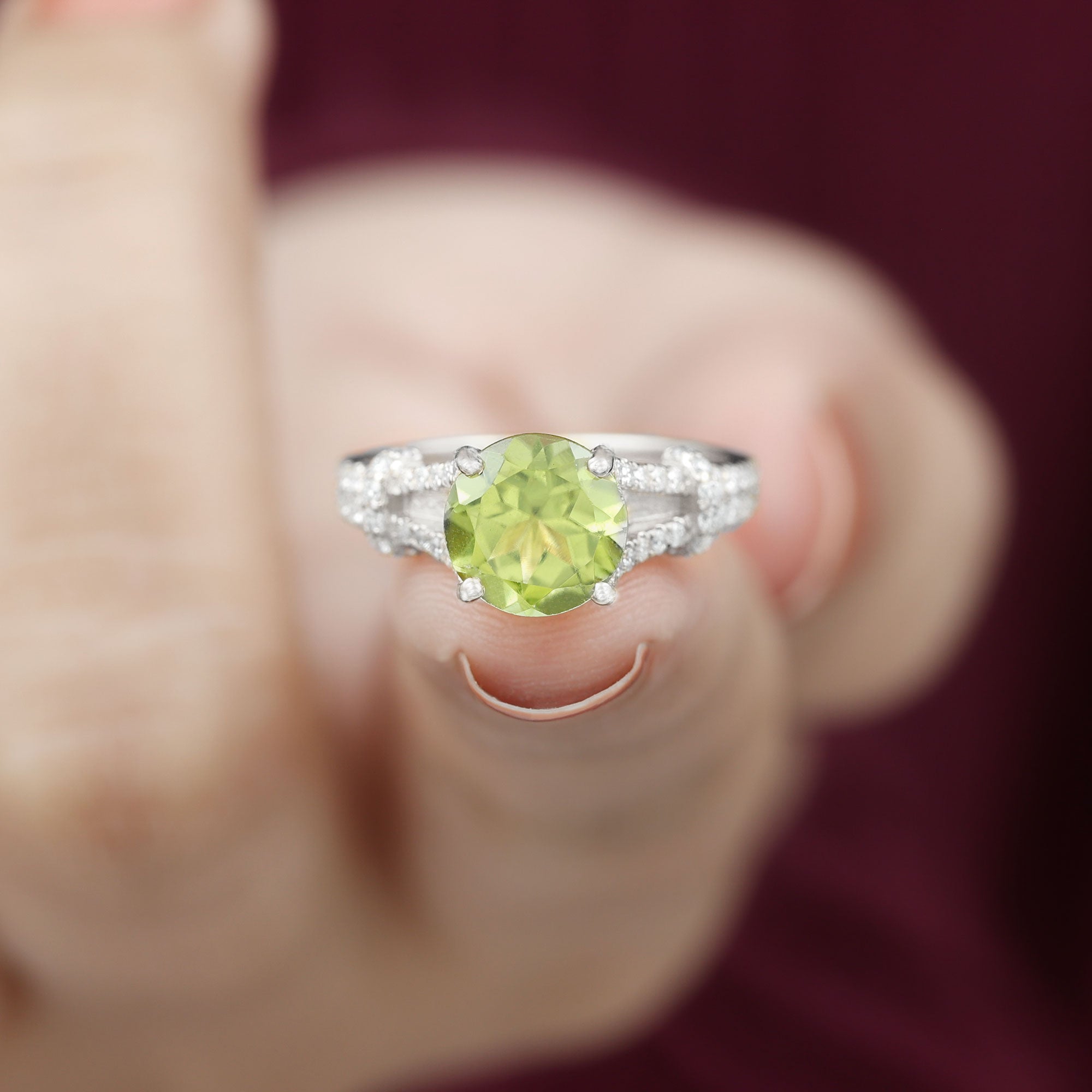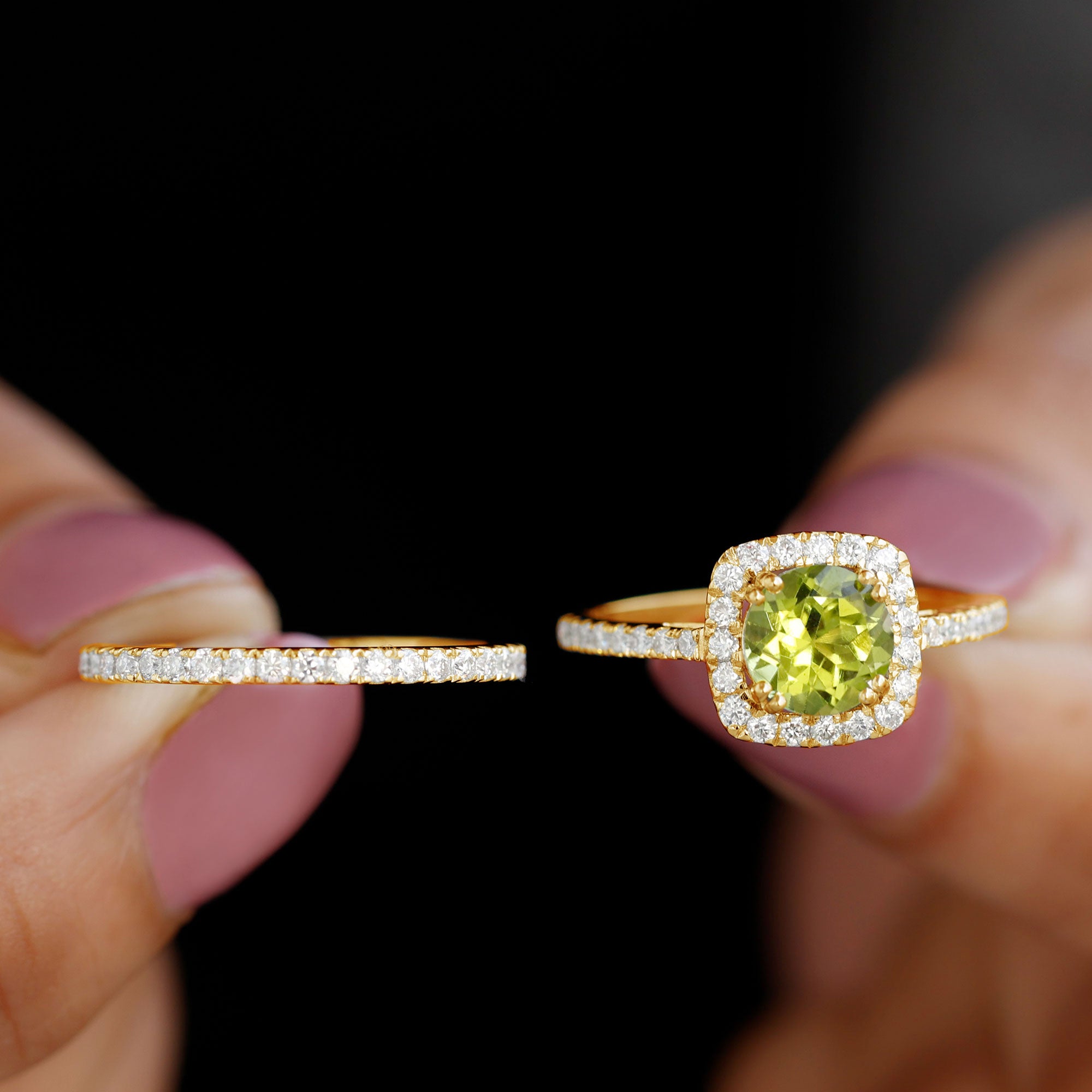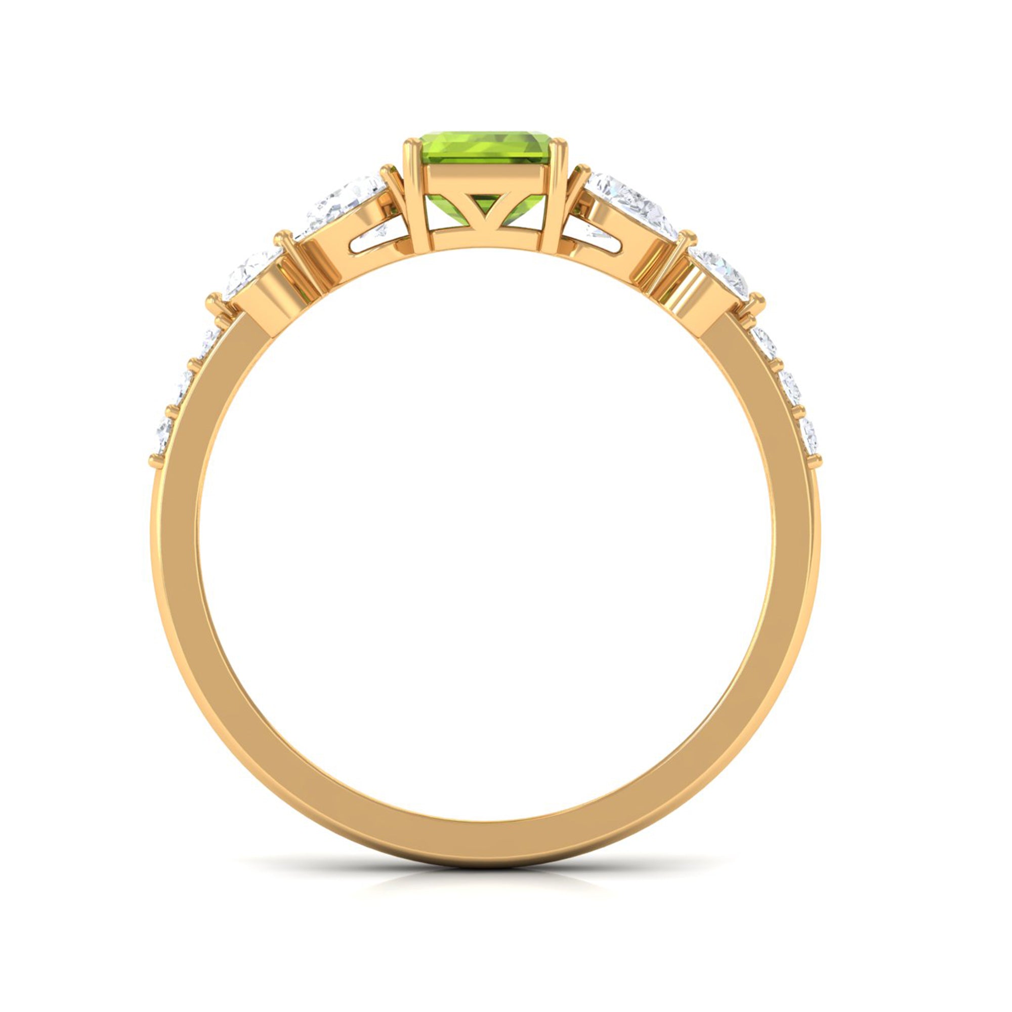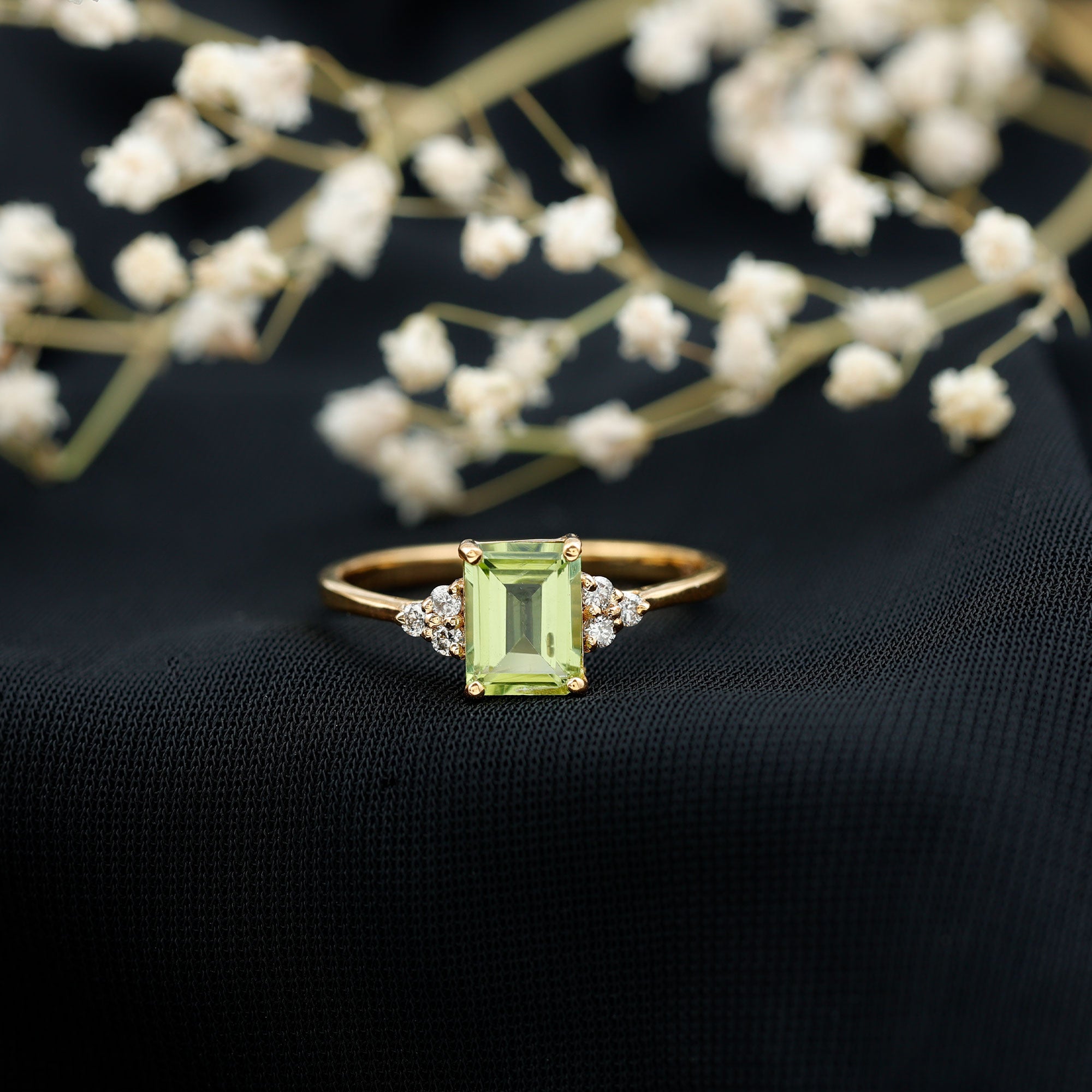 Held in high regard as one of the most classic Peridot Engagement Rings out there, it is characterized by a solo centerpiece of Peridot that steals the limelight. It can also be labeled as the most versatile ring style since the Peridot Solitaire offers you a sea of options in terms of aesthetics, be it the classic Round Peridot Rings offering a traditional aesthetic, the ones fashioned with Pear, Marquise, and Princess exuding an unconventional touch, or Asscher and Emerald Cut Peridot Rings for that perfect vintage vibe.