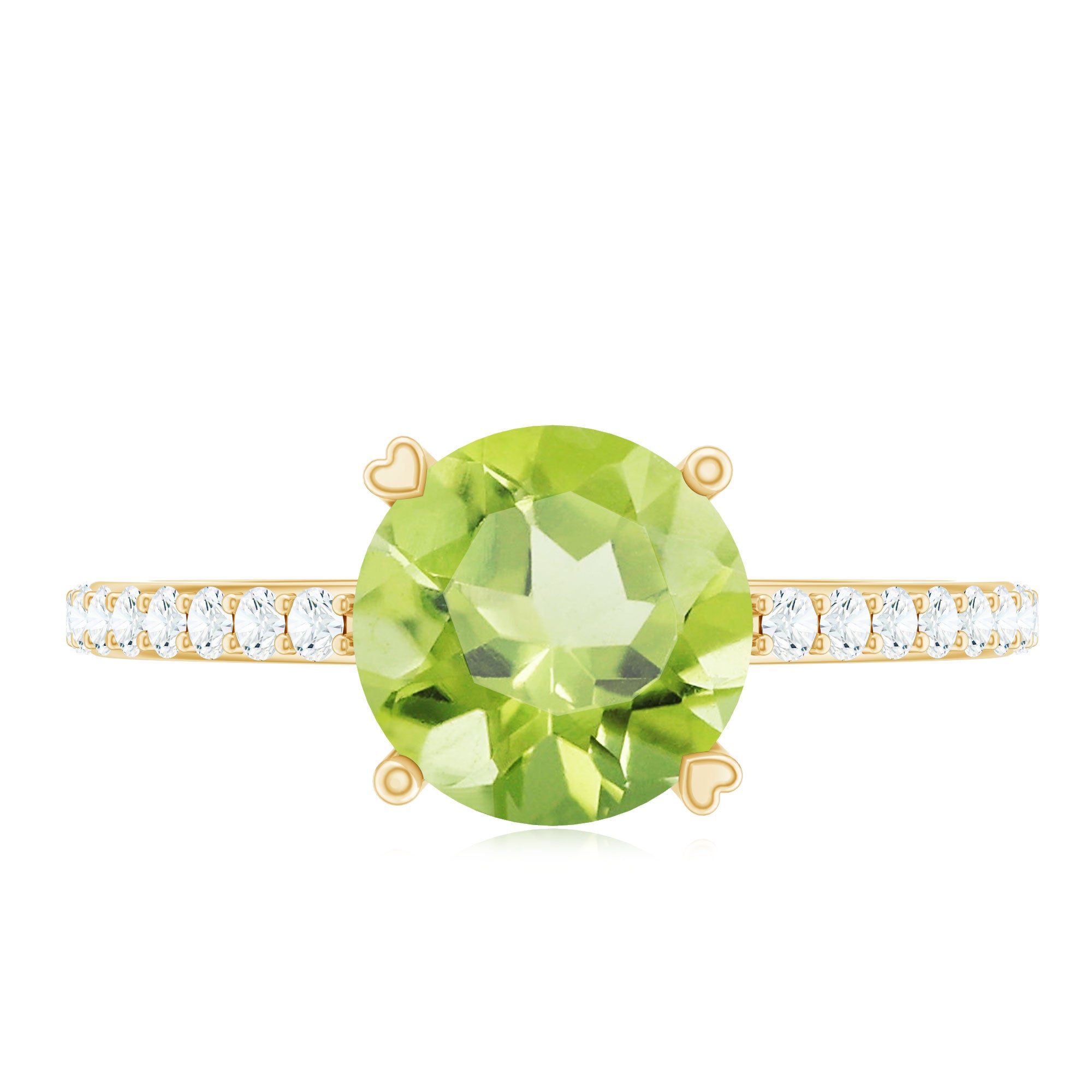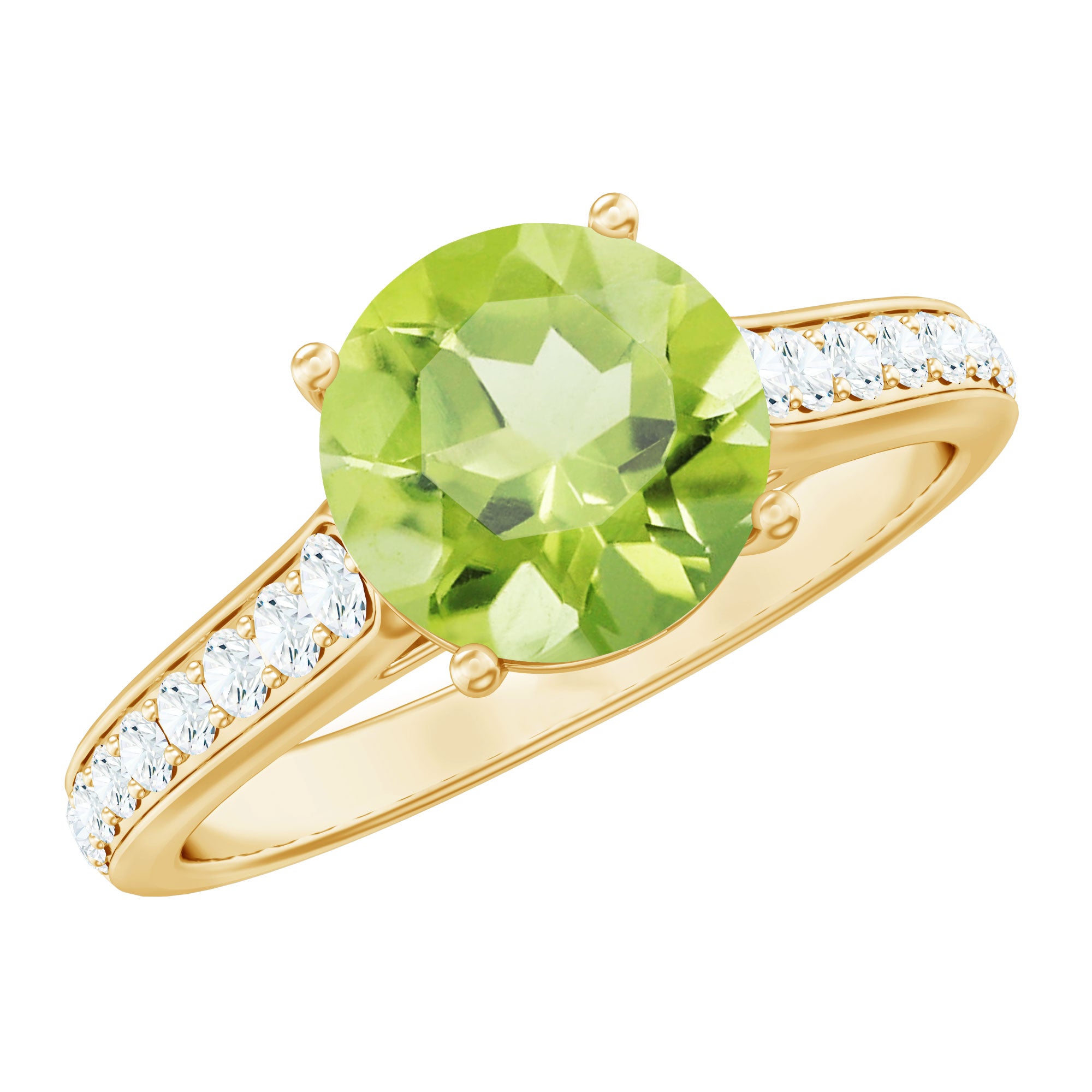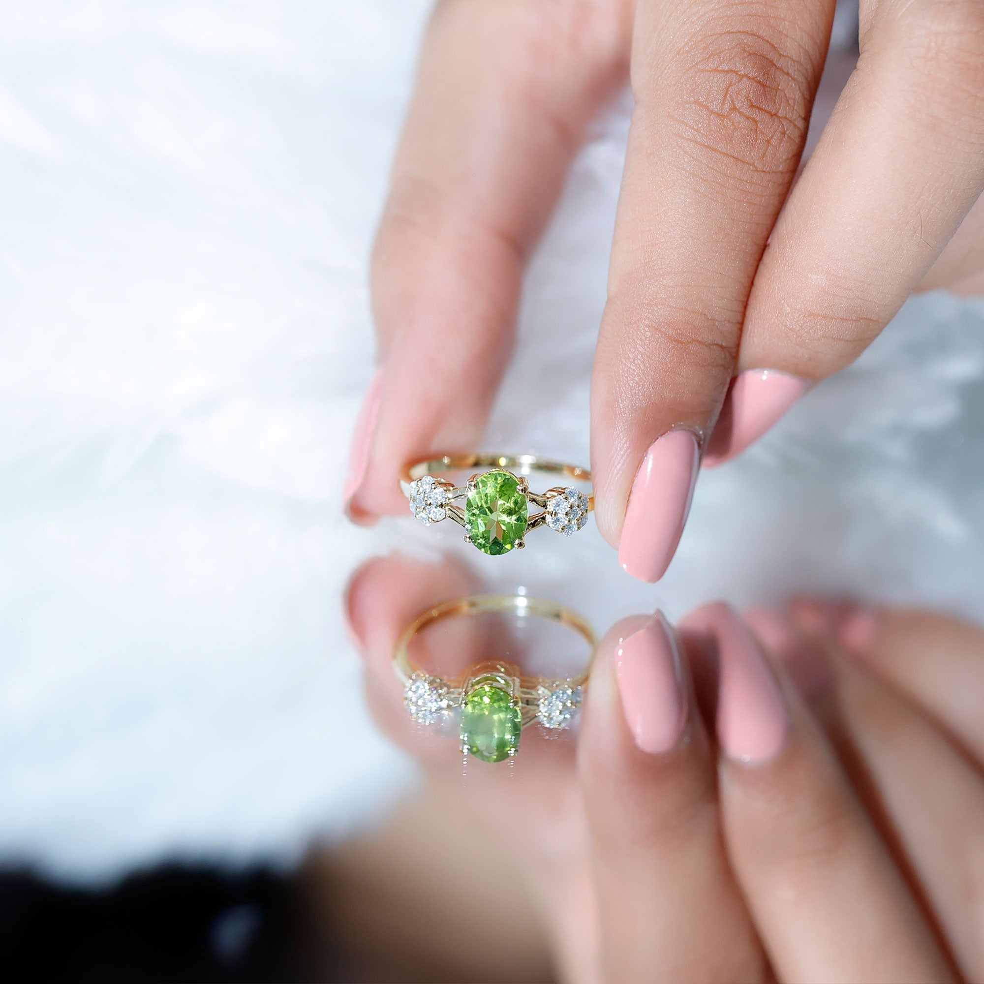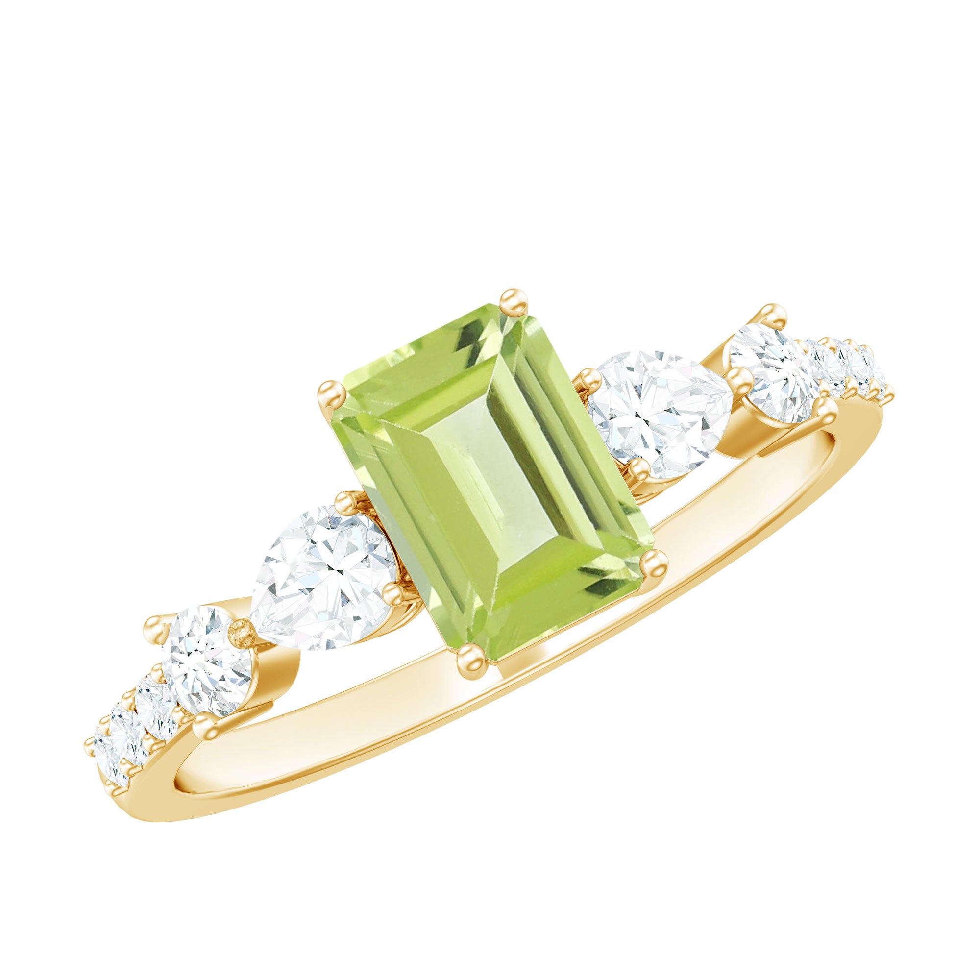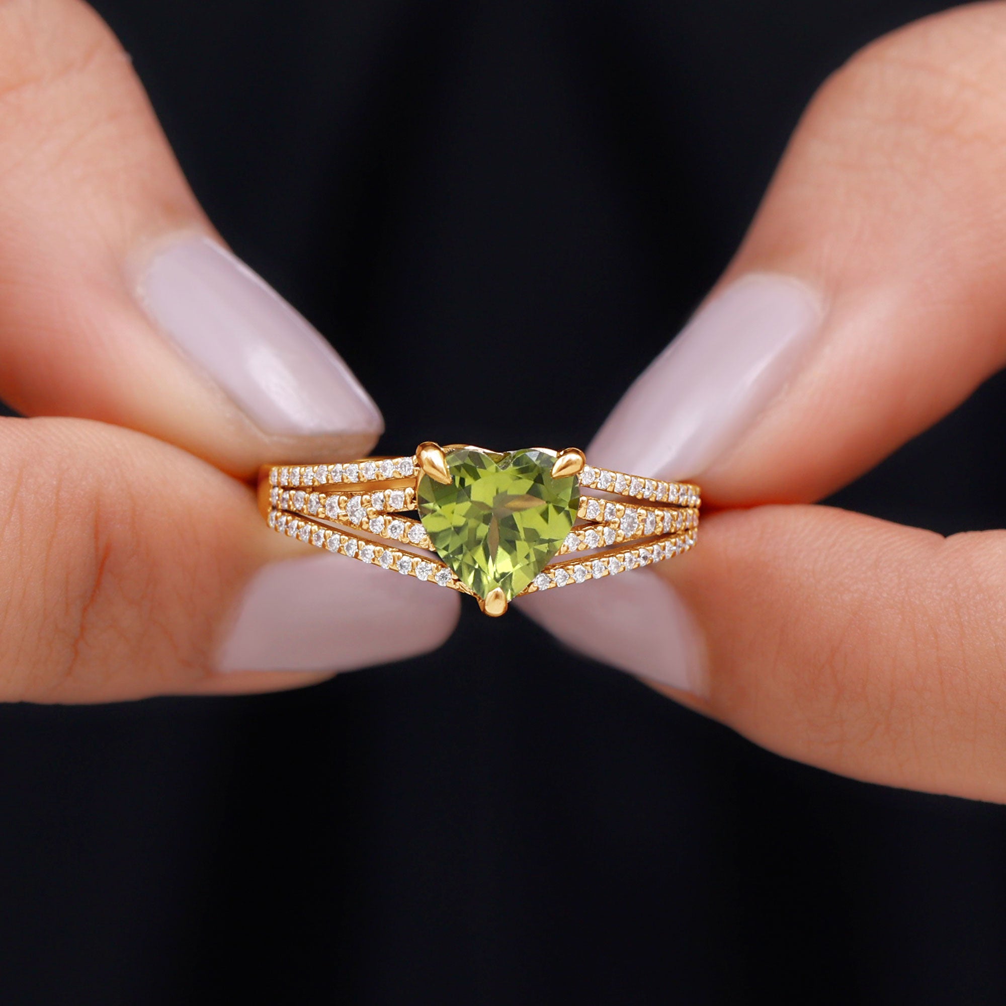 Held in high regard as one of the most classic Peridot Engagement Rings out there, it is characterized by a solo centerpiece of Peridot that steals the limelight. It can also be labeled as the most versatile ring style since the Peridot Solitaire offers you a sea of options in terms of aesthetics, be it the classic Round Peridot Rings offering a traditional aesthetic, the ones fashioned with Pear, Marquise, and Princess exuding an unconventional touch, or Asscher and Emerald Cut Peridot Rings for that perfect vintage vibe.