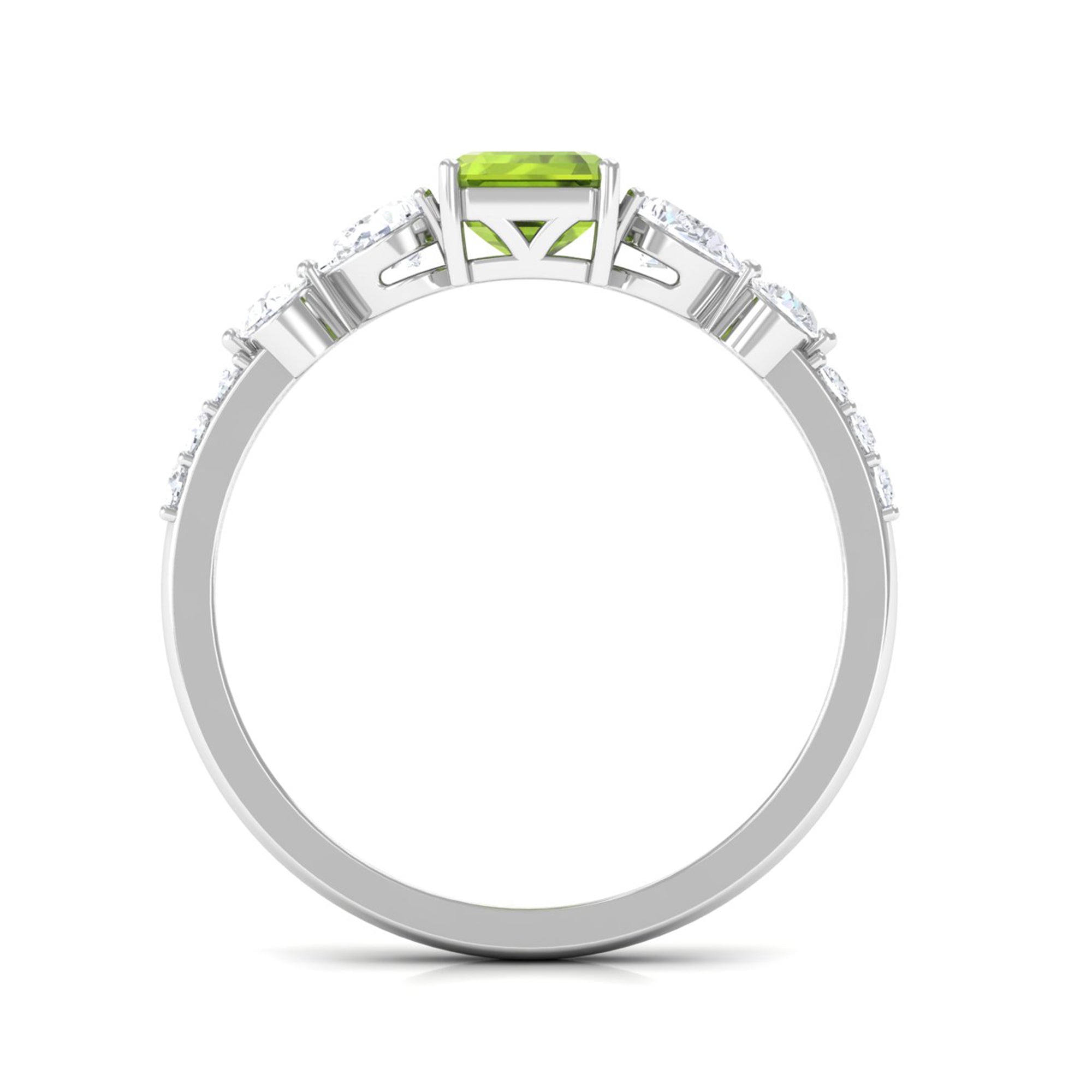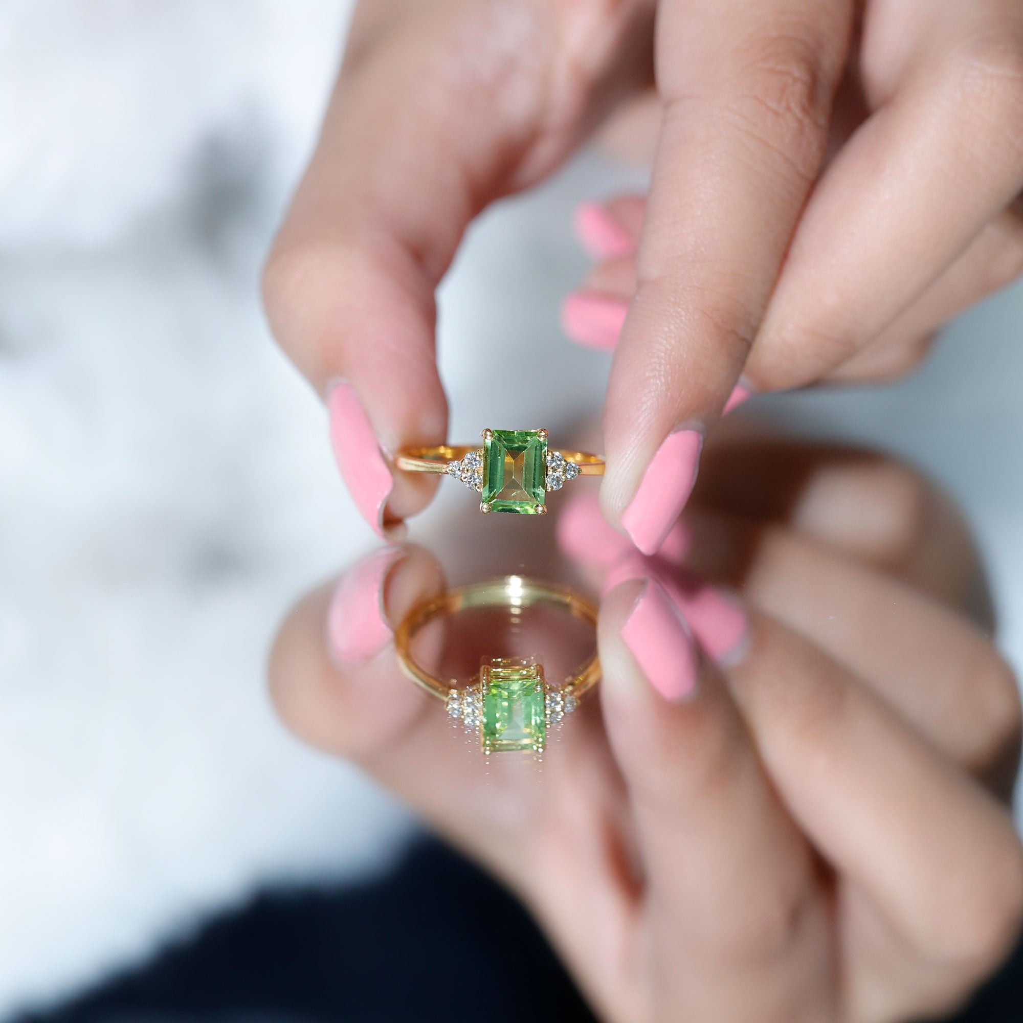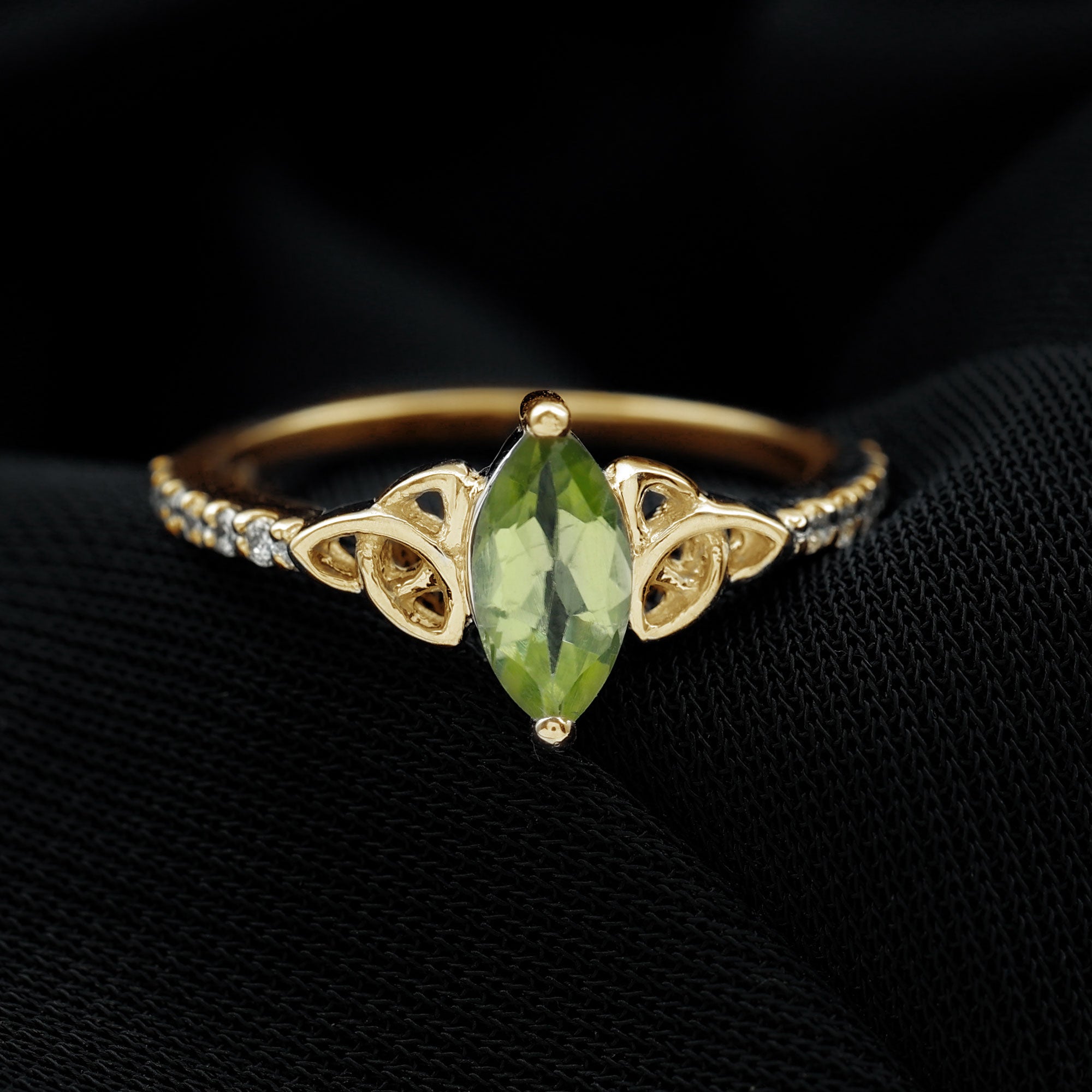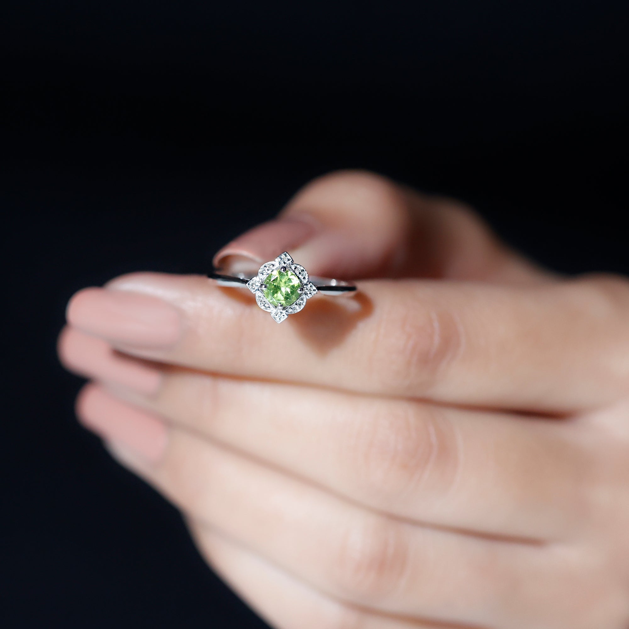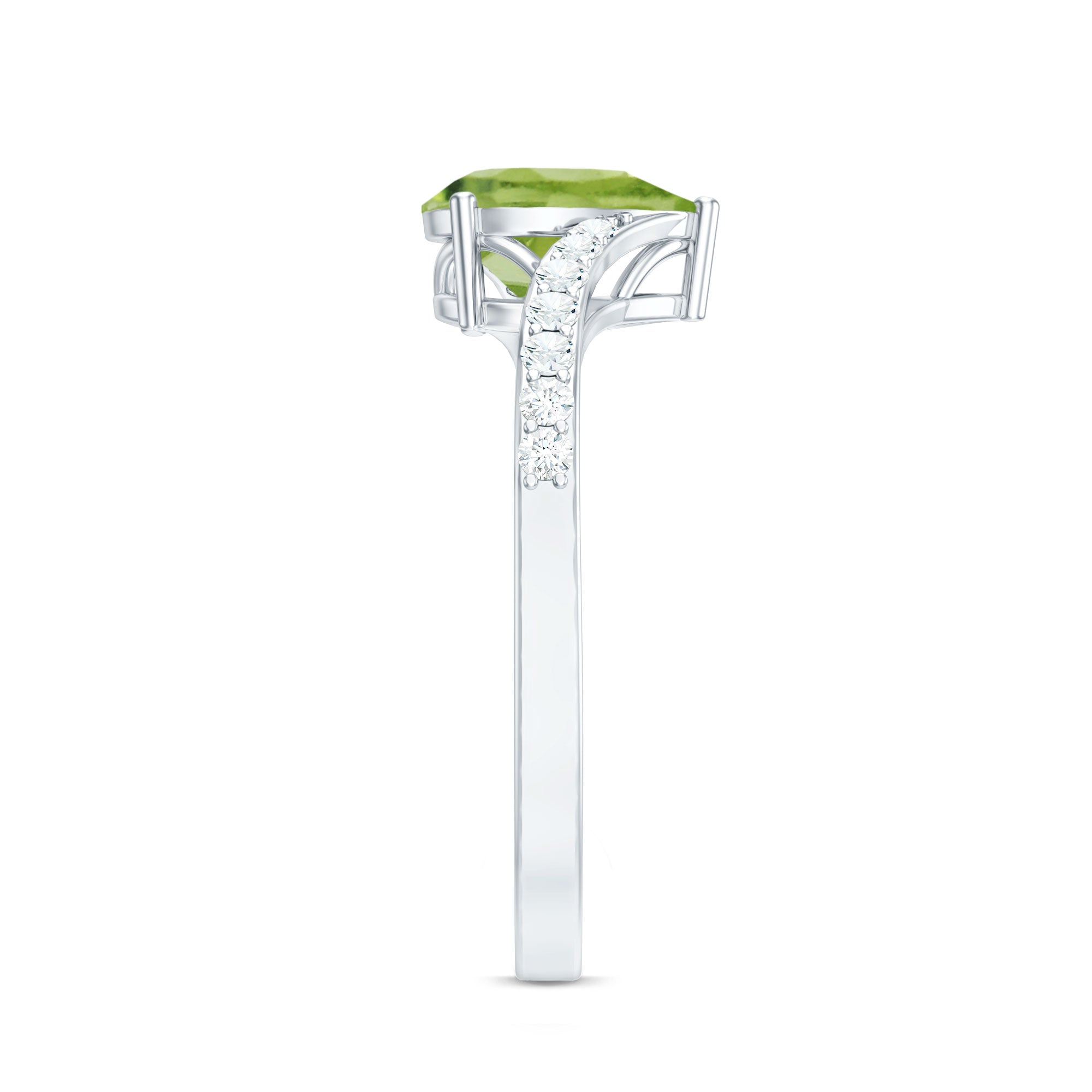 Held in high regard as one of the most classic Peridot Engagement Rings out there, it is characterized by a solo centerpiece of Peridot that steals the limelight. It can also be labeled as the most versatile ring style since the Peridot Solitaire offers you a sea of options in terms of aesthetics, be it the classic Round Peridot Rings offering a traditional aesthetic, the ones fashioned with Pear, Marquise, and Princess exuding an unconventional touch, or Asscher and Emerald Cut Peridot Rings for that perfect vintage vibe.