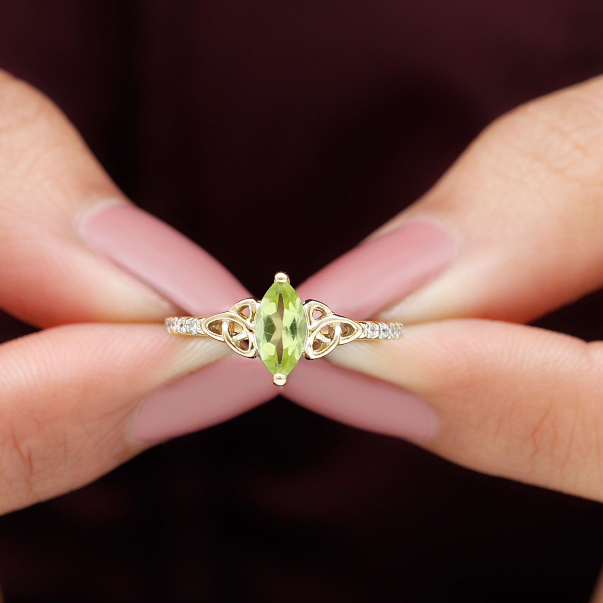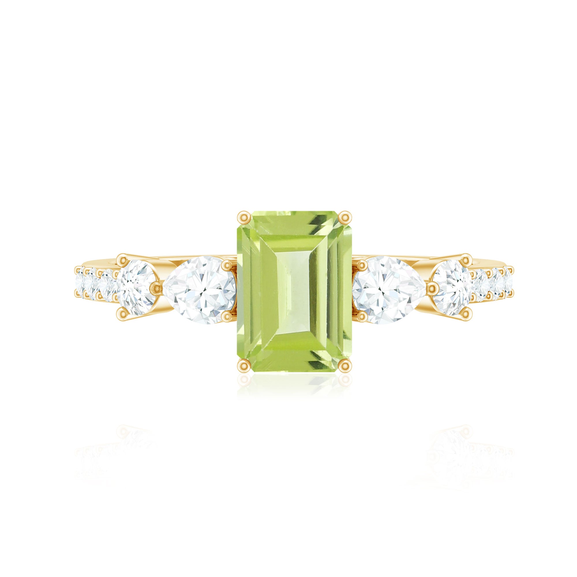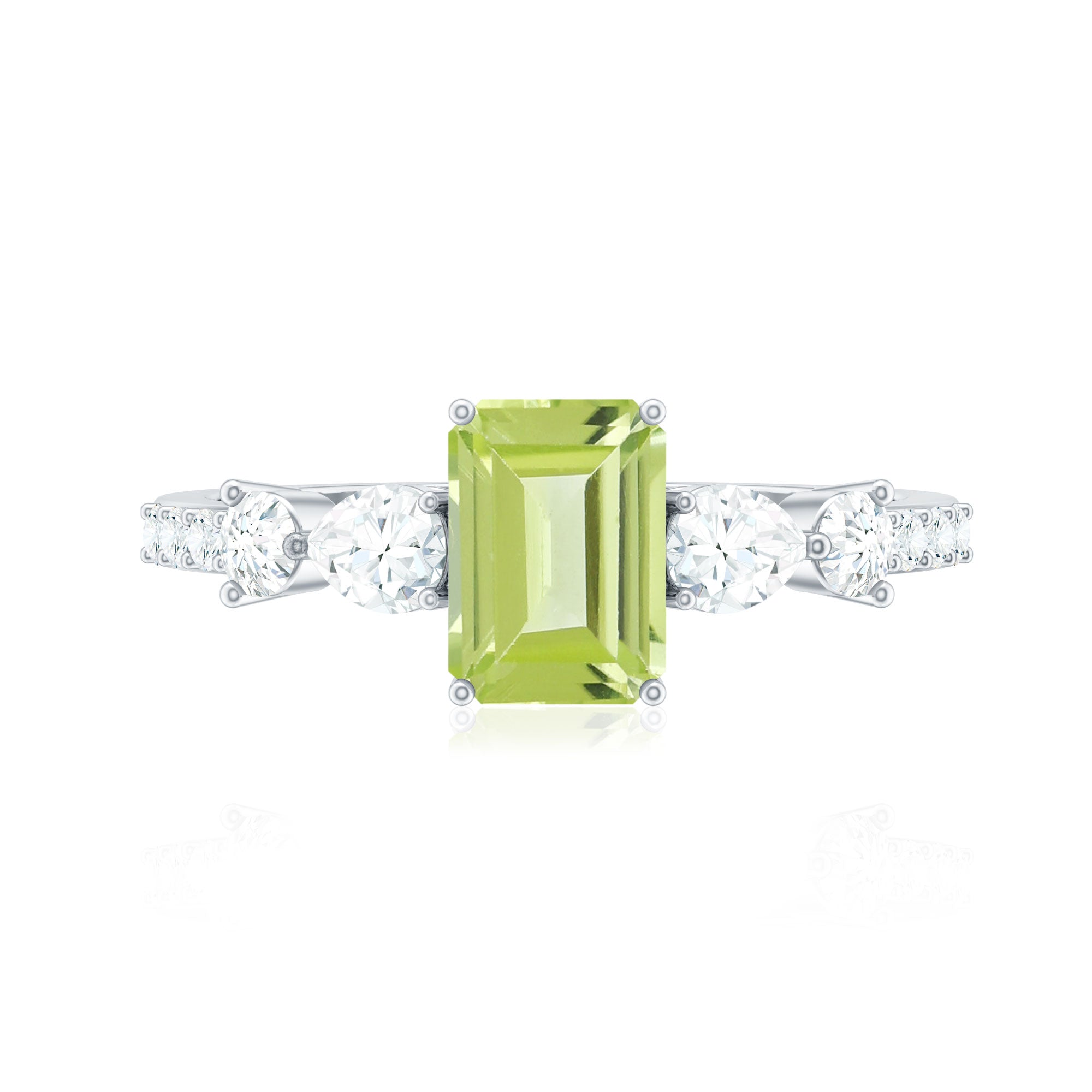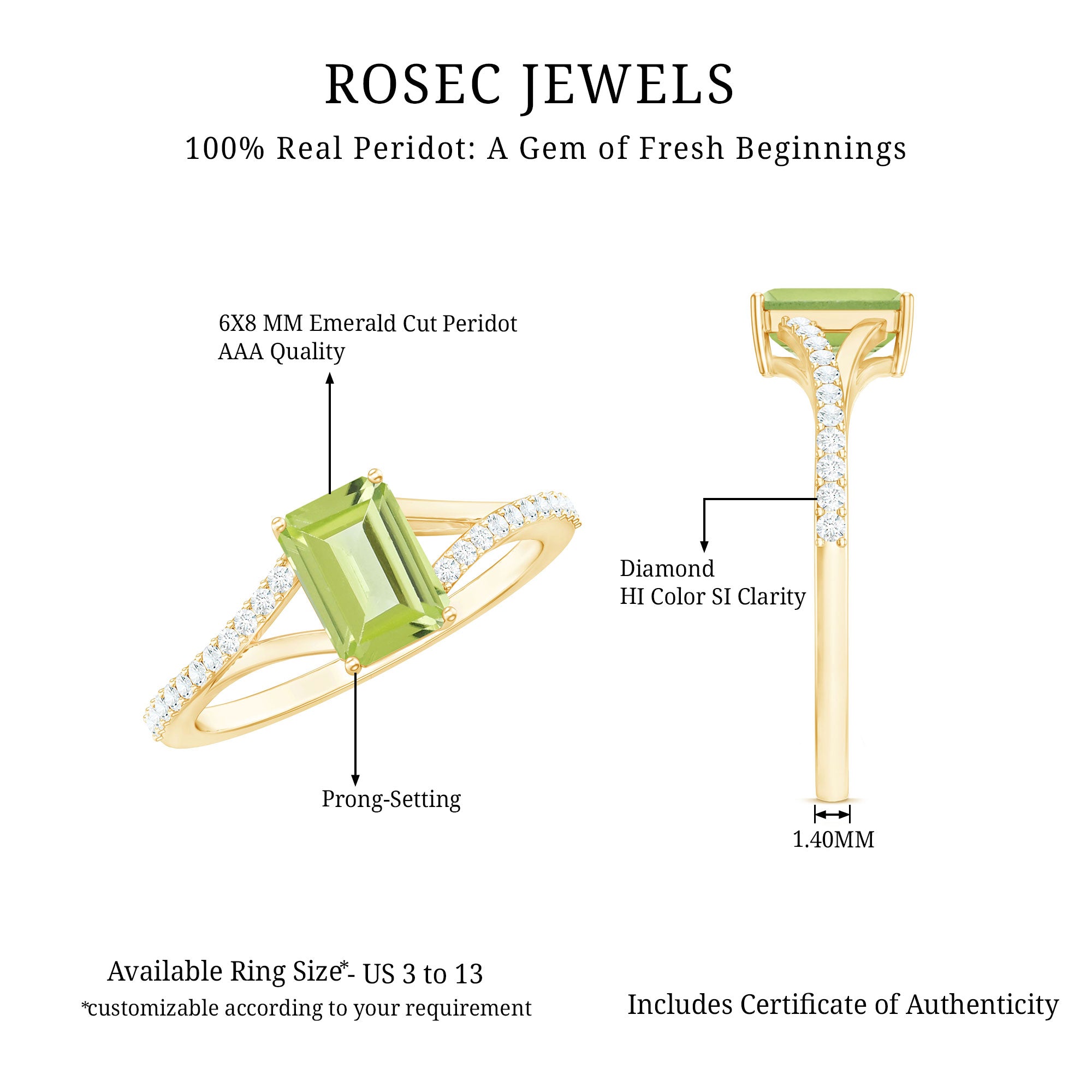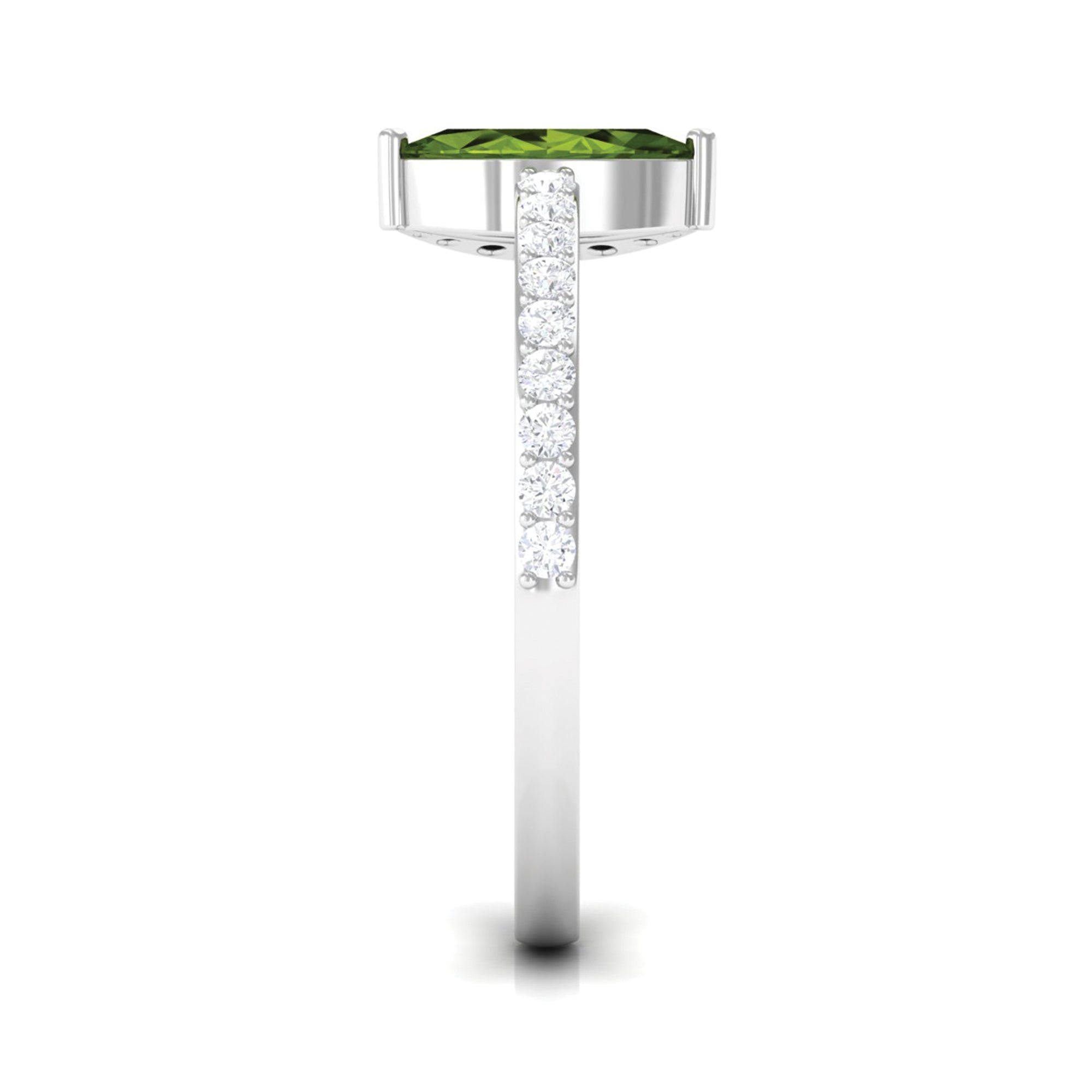 Held in high regard as one of the most classic Peridot Engagement Rings out there, it is characterized by a solo centerpiece of Peridot that steals the limelight. It can also be labeled as the most versatile ring style since the Peridot Solitaire offers you a sea of options in terms of aesthetics, be it the classic Round Peridot Rings offering a traditional aesthetic, the ones fashioned with Pear, Marquise, and Princess exuding an unconventional touch, or Asscher and Emerald Cut Peridot Rings for that perfect vintage vibe.