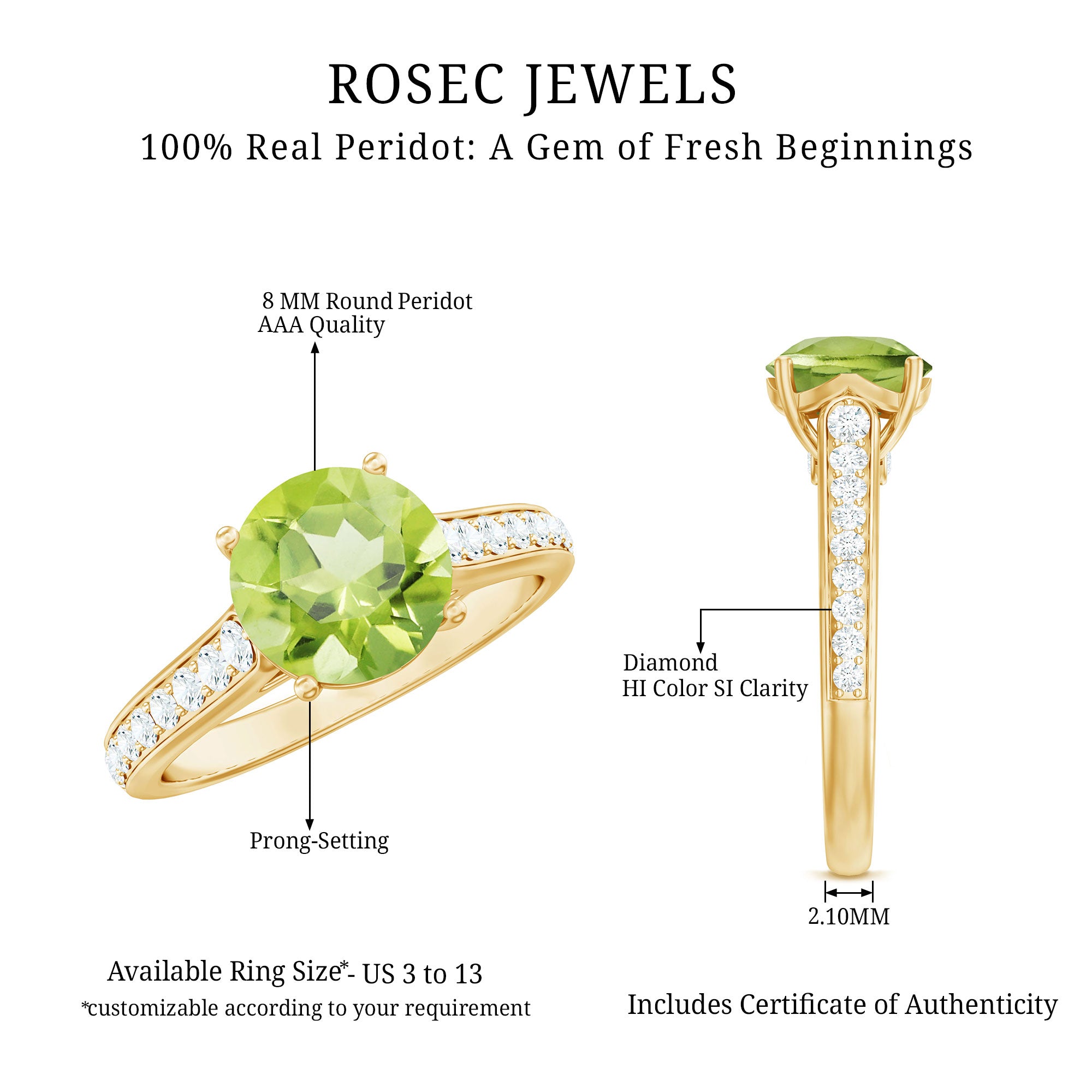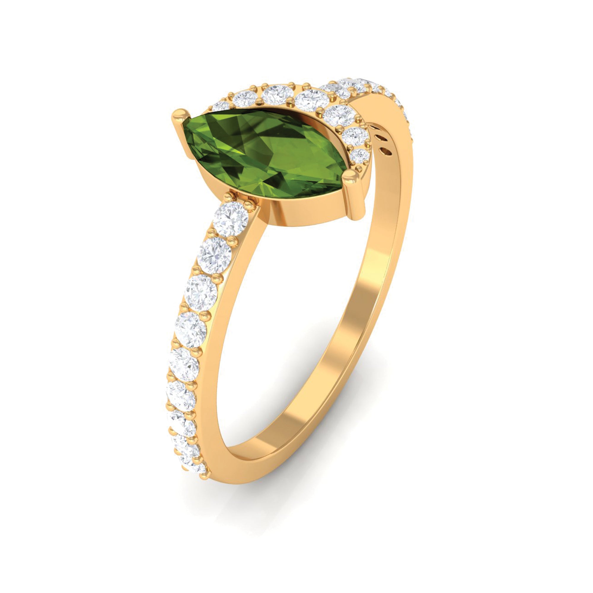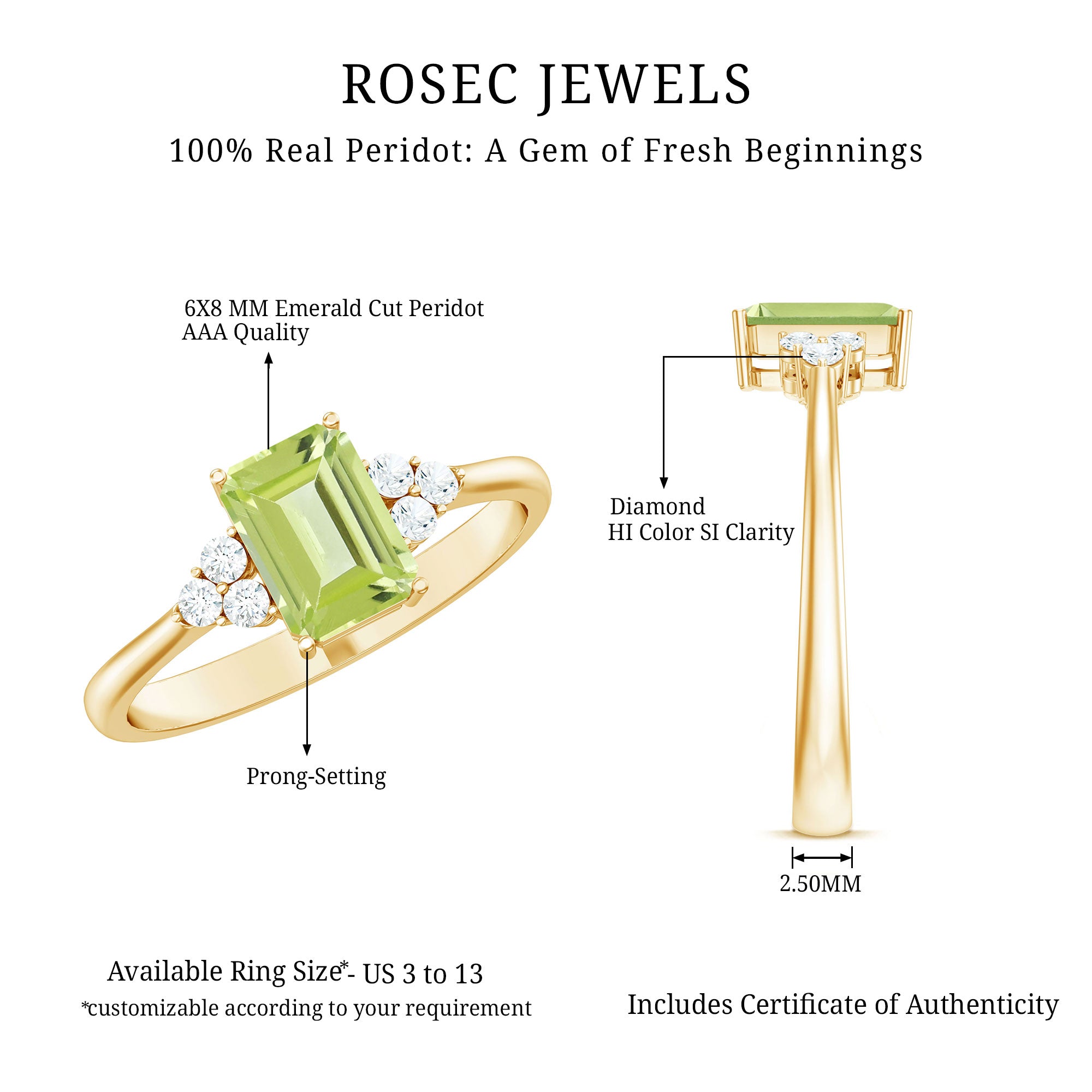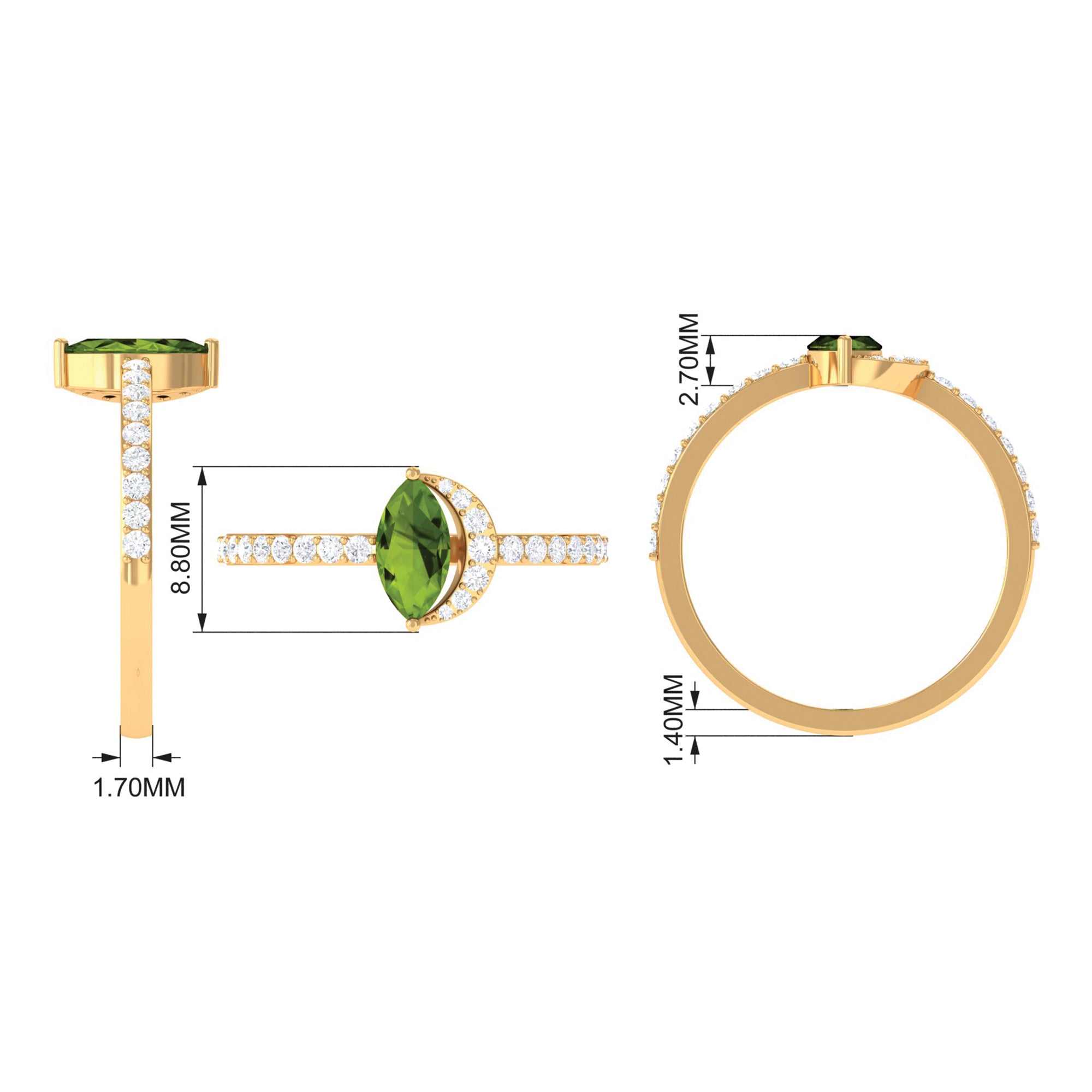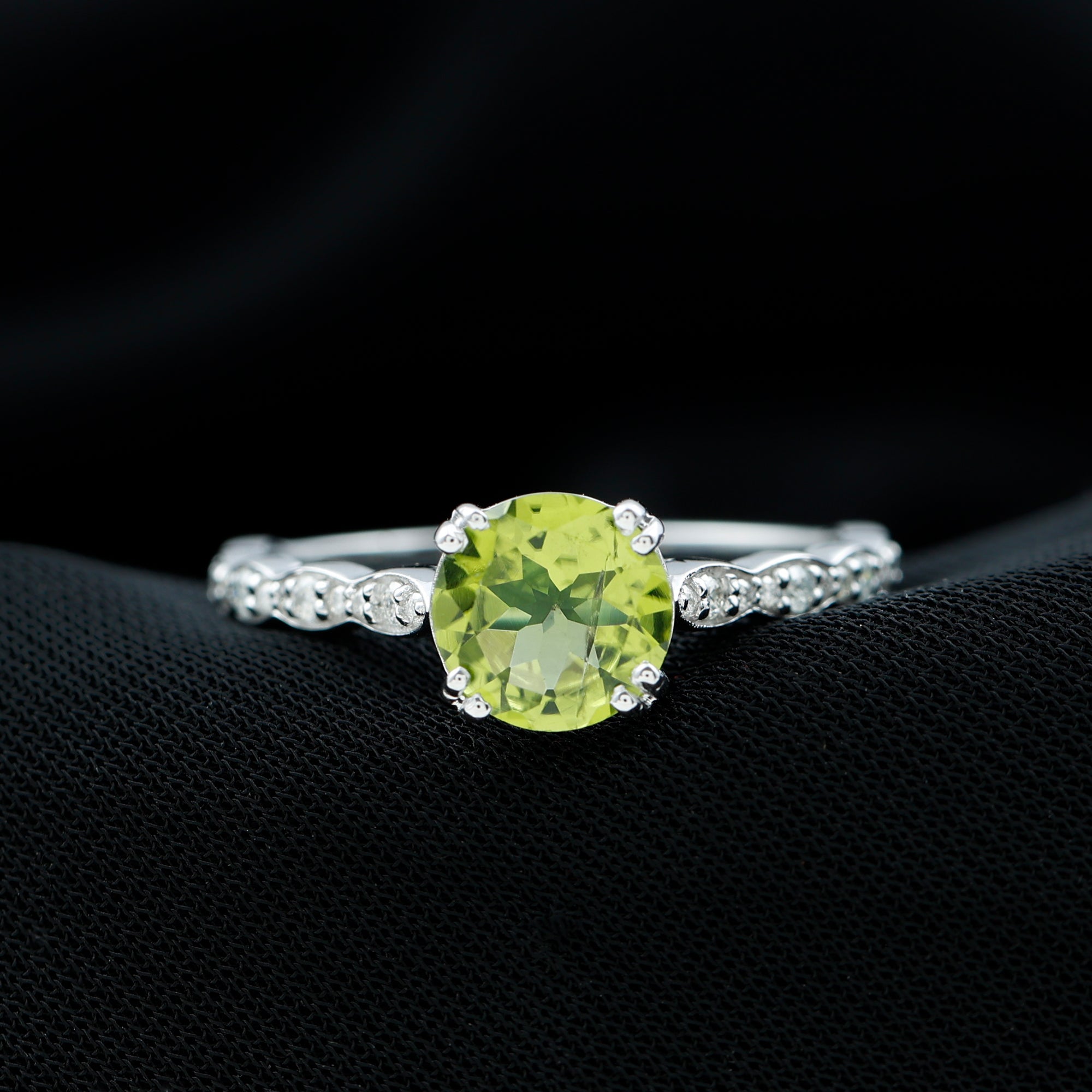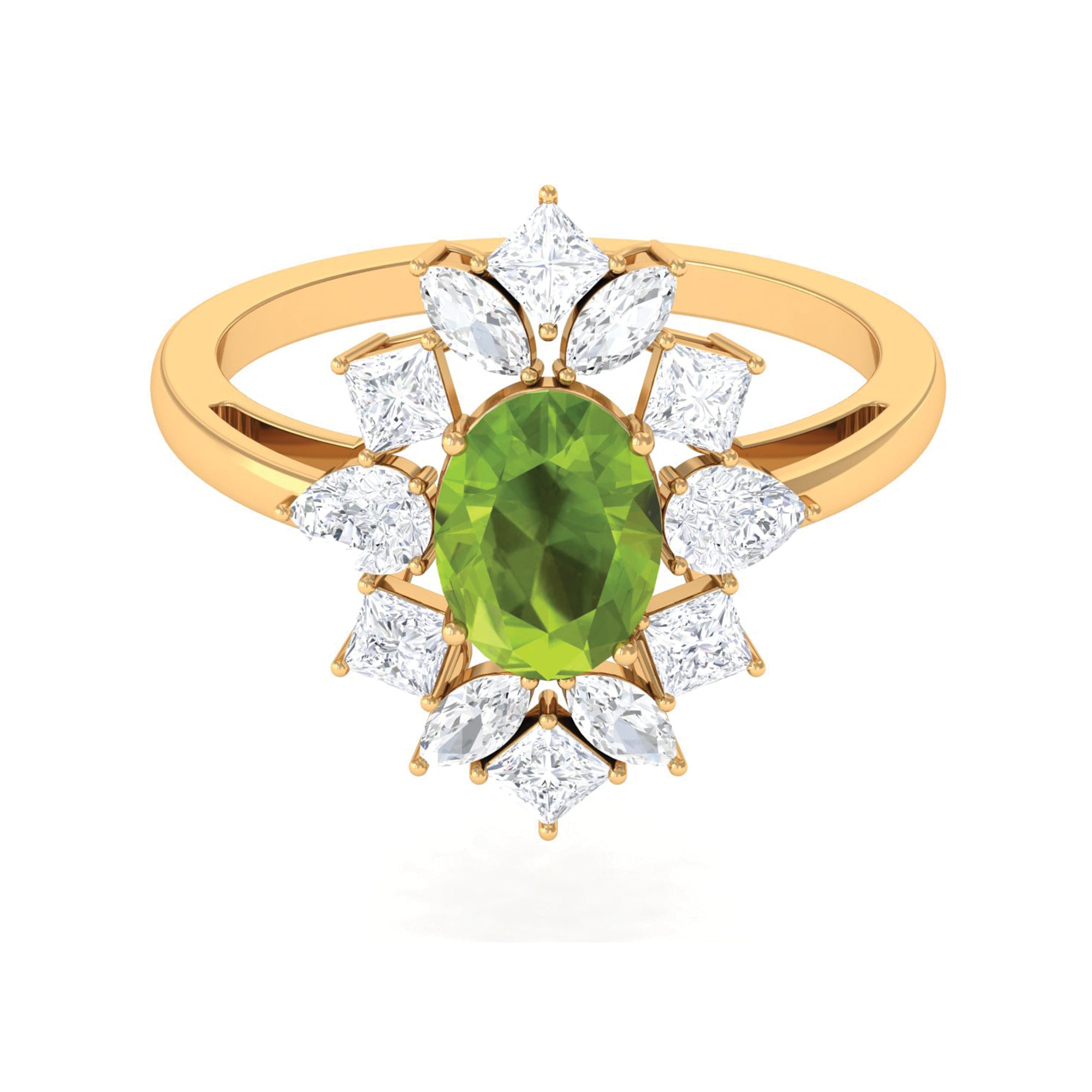 Held in high regard as one of the most classic Peridot Engagement Rings out there, it is characterized by a solo centerpiece of Peridot that steals the limelight. It can also be labeled as the most versatile ring style since the Peridot Solitaire offers you a sea of options in terms of aesthetics, be it the classic Round Peridot Rings offering a traditional aesthetic, the ones fashioned with Pear, Marquise, and Princess exuding an unconventional touch, or Asscher and Emerald Cut Peridot Rings for that perfect vintage vibe.