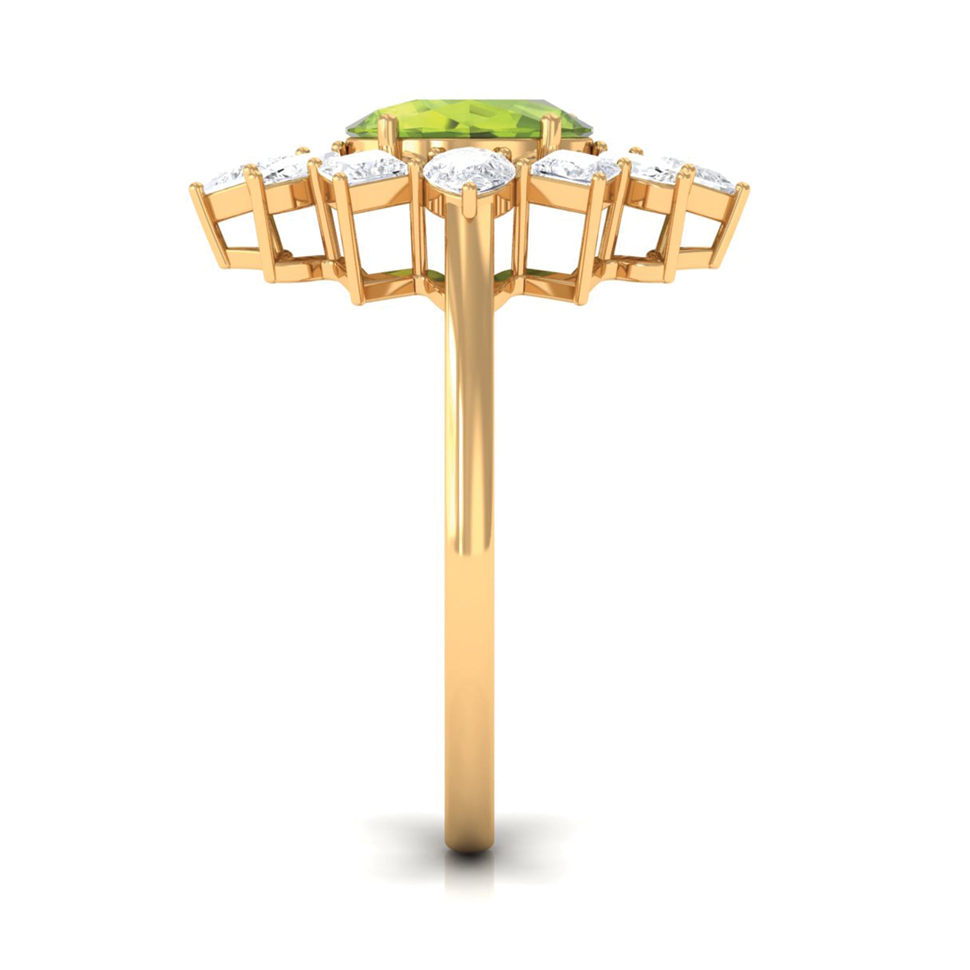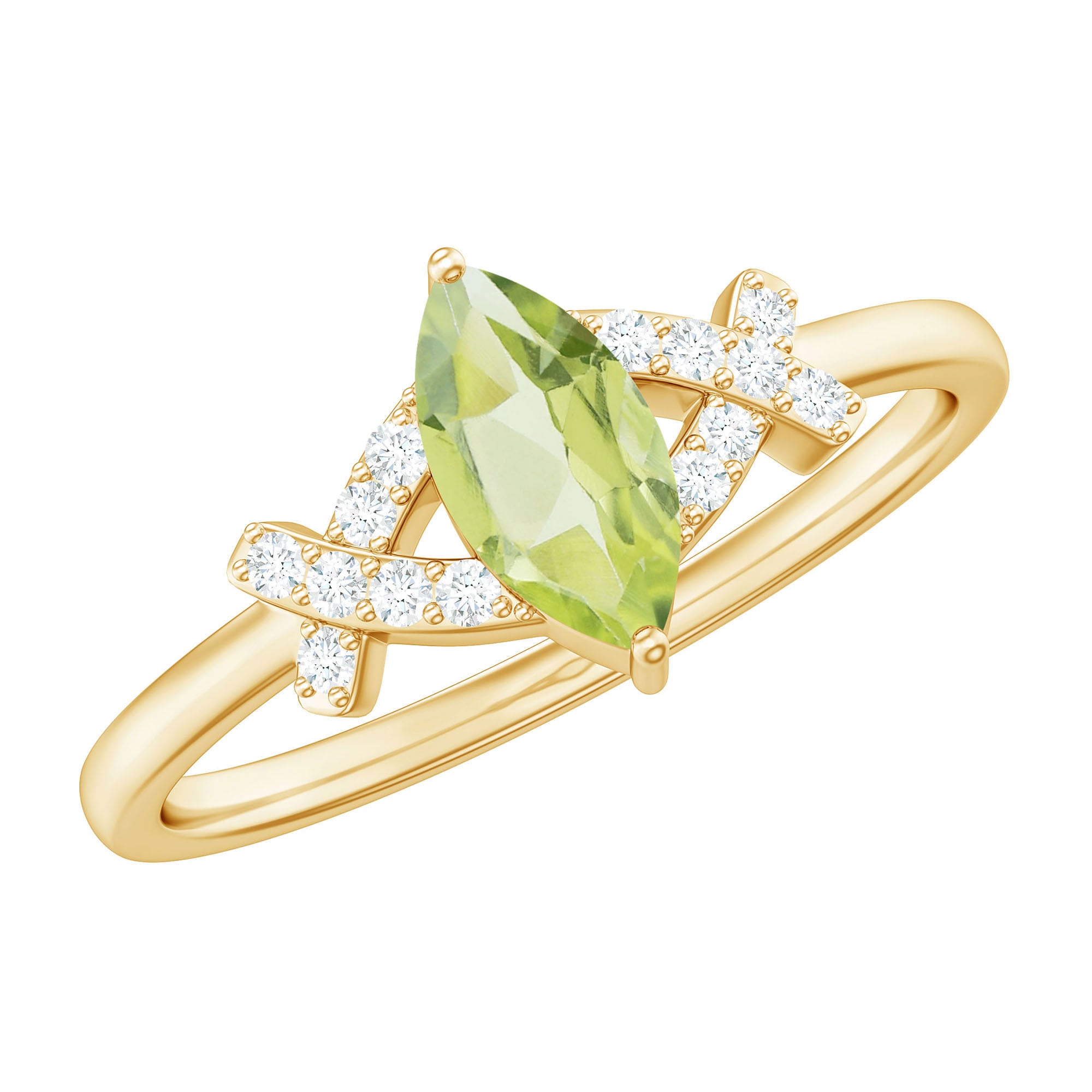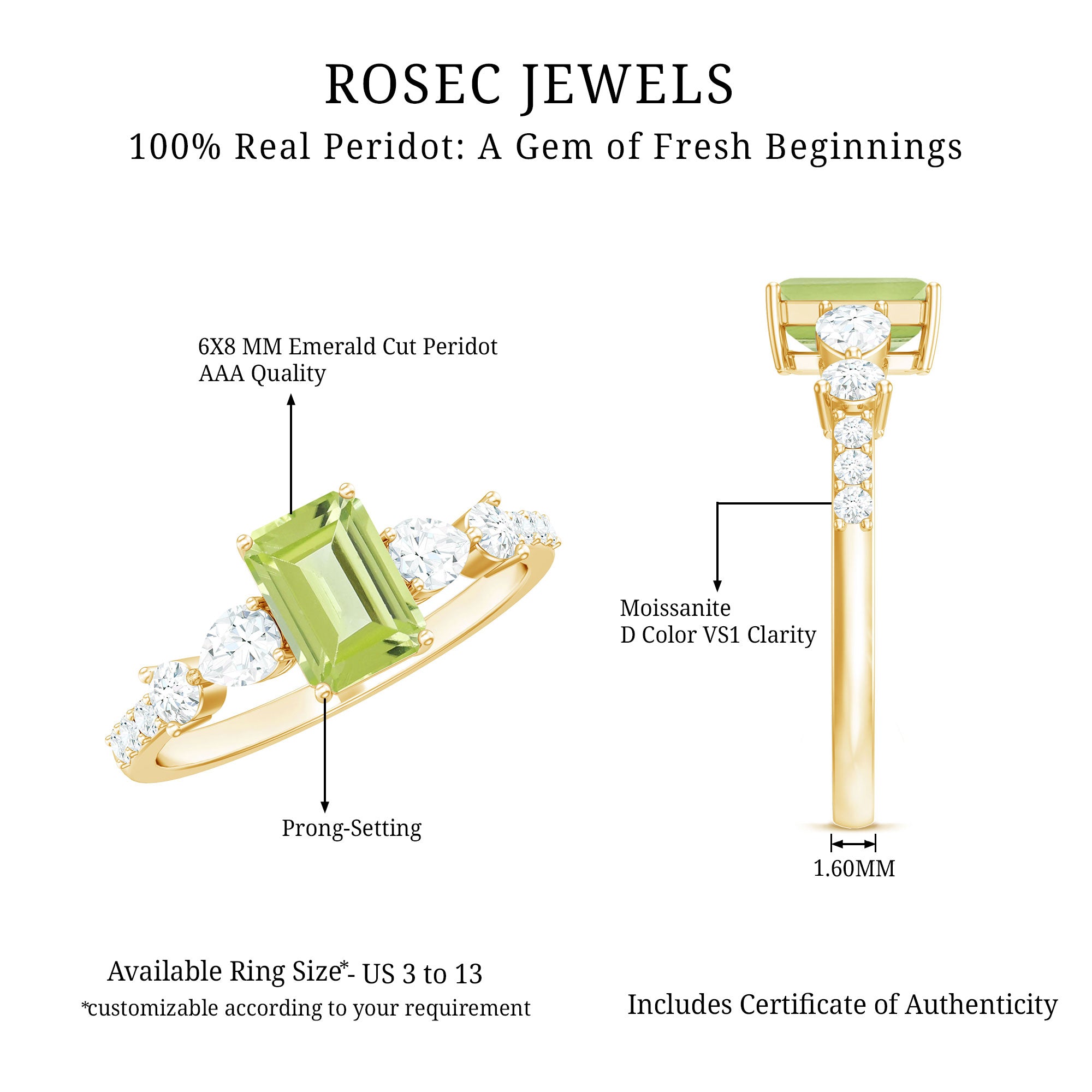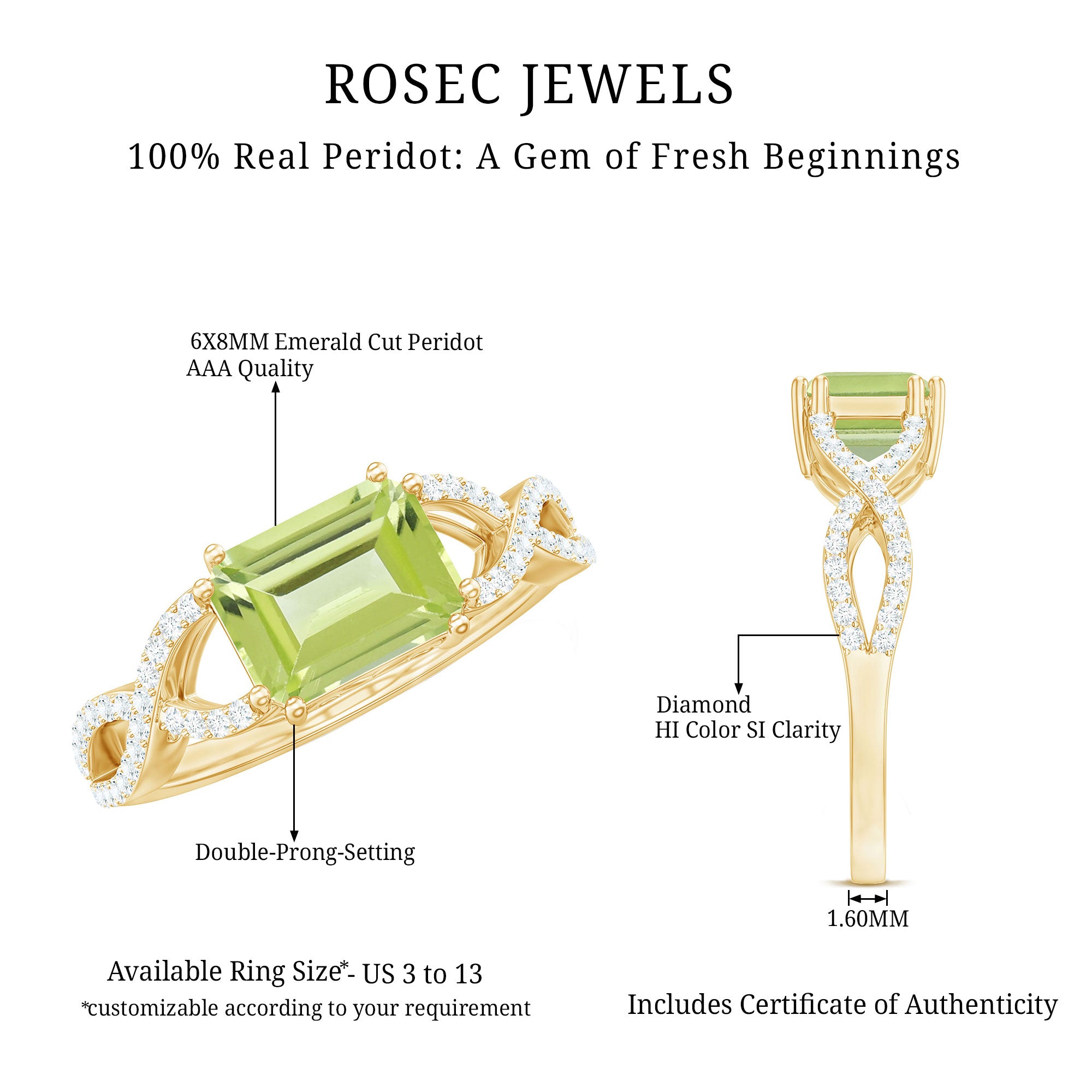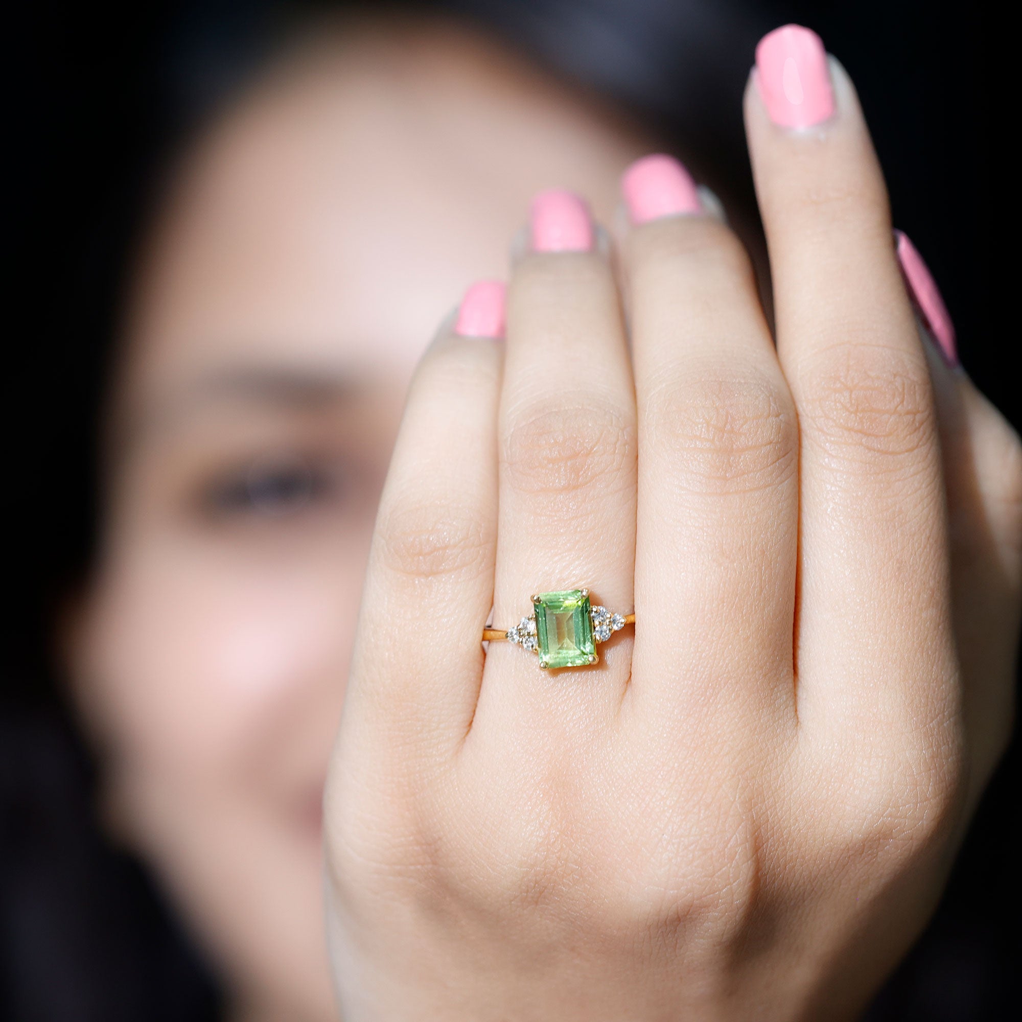Held in high regard as one of the most classic Peridot Engagement Rings out there, it is characterized by a solo centerpiece of Peridot that steals the limelight. It can also be labeled as the most versatile ring style since the Peridot Solitaire offers you a sea of options in terms of aesthetics, be it the classic Round Peridot Rings offering a traditional aesthetic, the ones fashioned with Pear, Marquise, and Princess exuding an unconventional touch, or Asscher and Emerald Cut Peridot Rings for that perfect vintage vibe.
