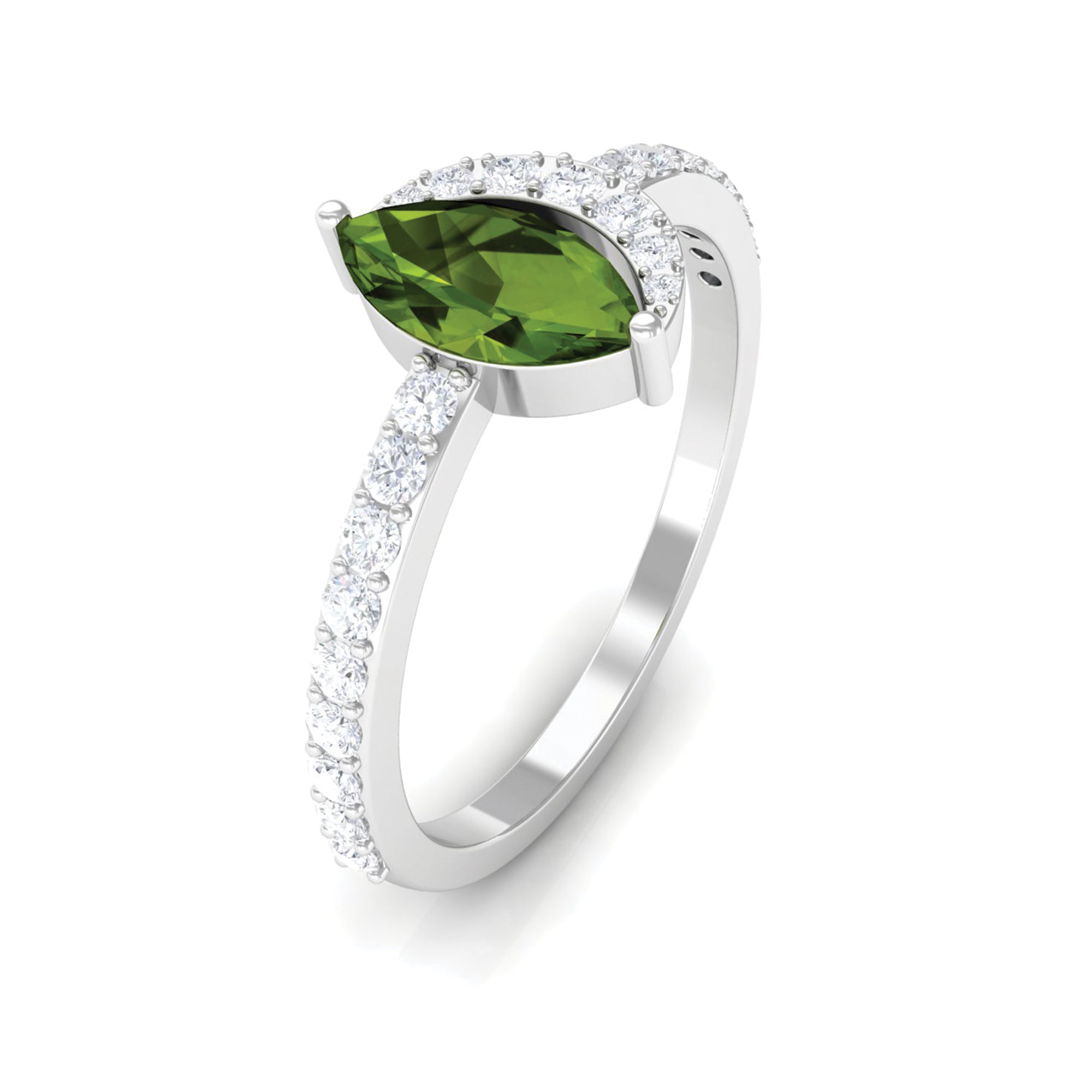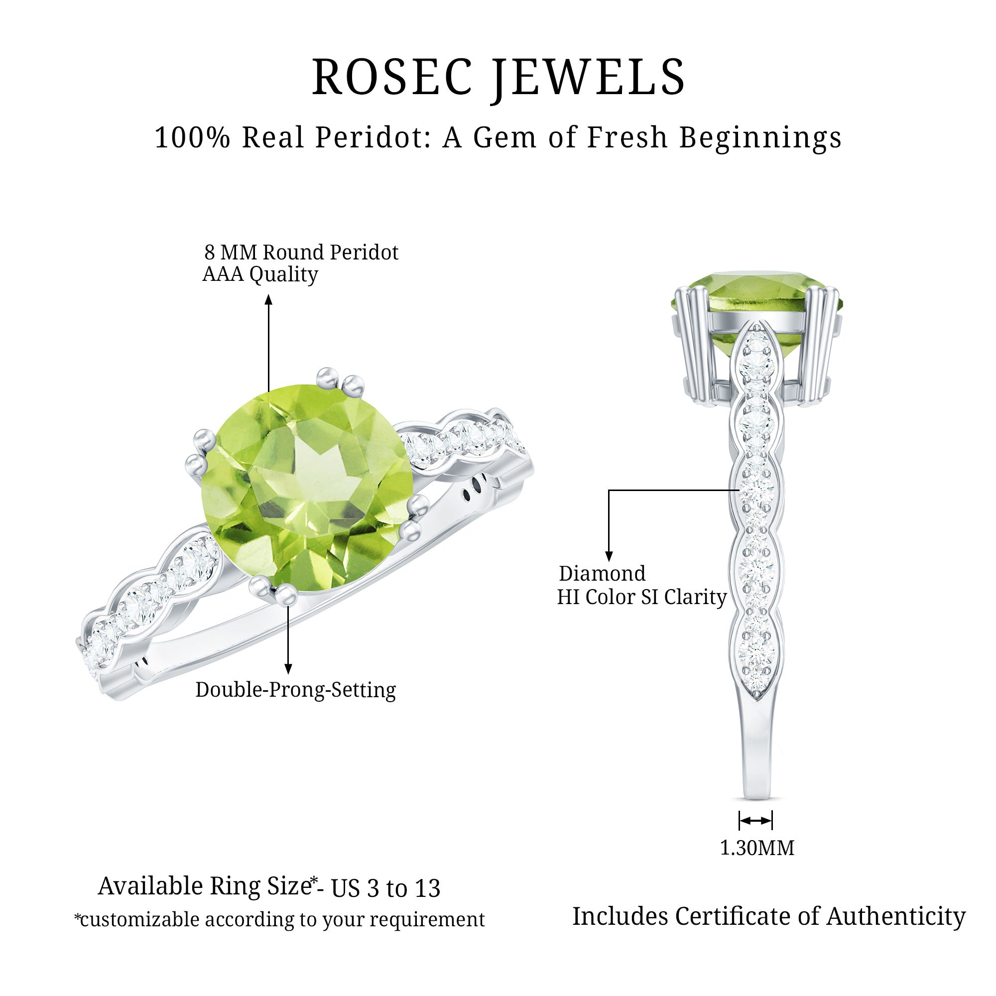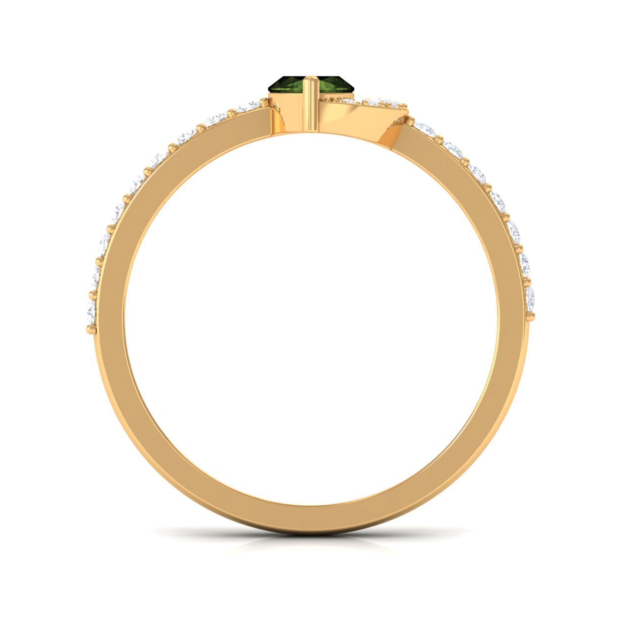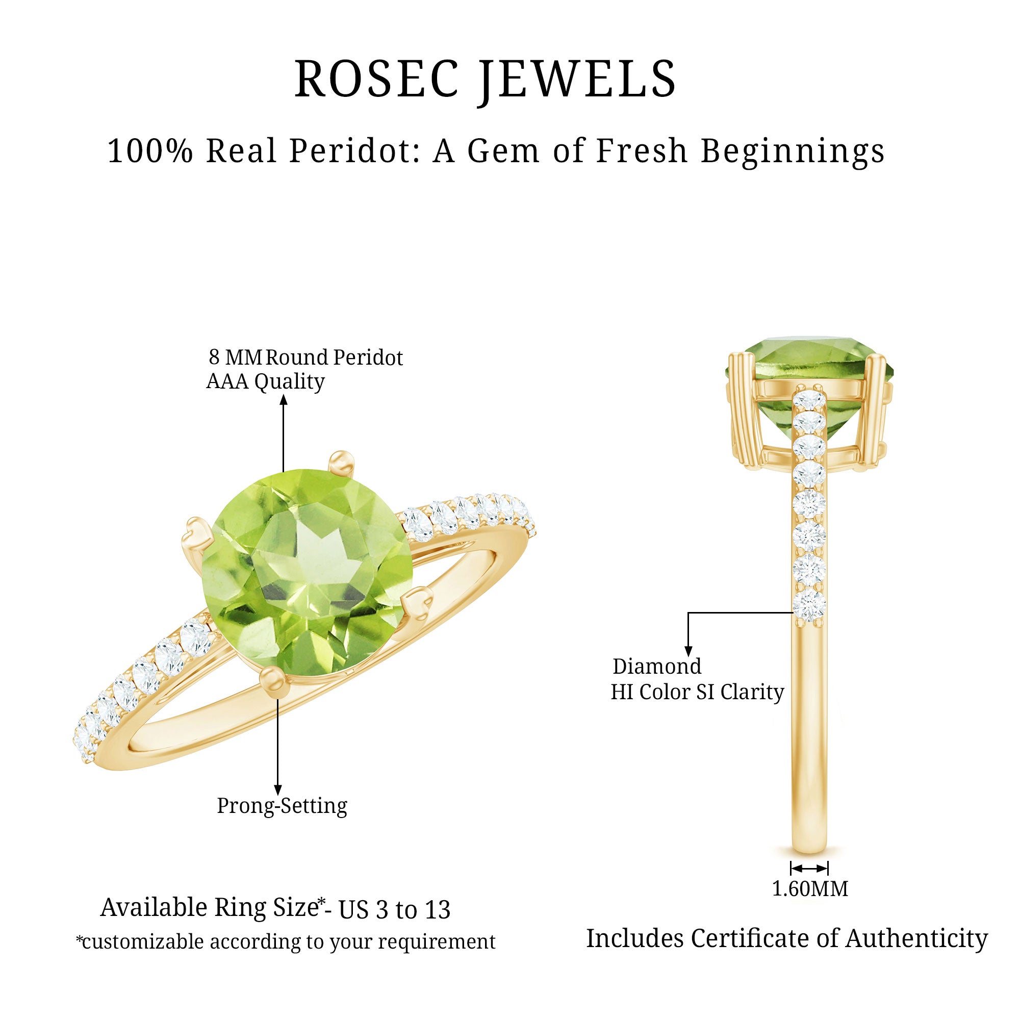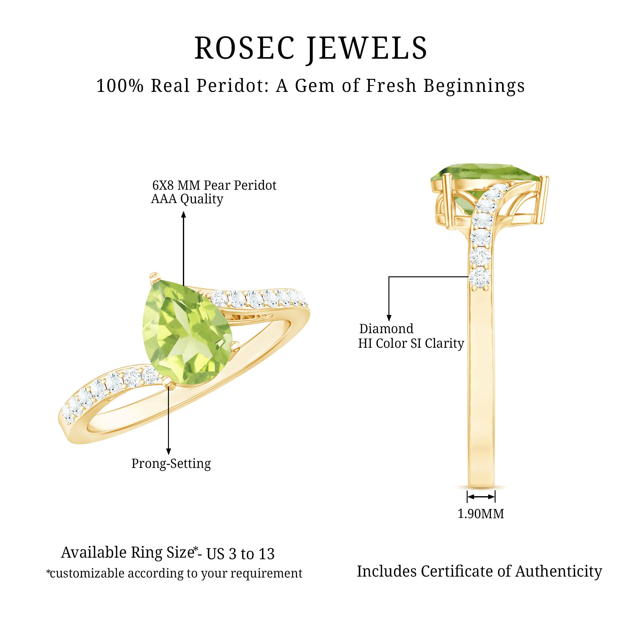 Held in high regard as one of the most classic Peridot Engagement Rings out there, it is characterized by a solo centerpiece of Peridot that steals the limelight. It can also be labeled as the most versatile ring style since the Peridot Solitaire offers you a sea of options in terms of aesthetics, be it the classic Round Peridot Rings offering a traditional aesthetic, the ones fashioned with Pear, Marquise, and Princess exuding an unconventional touch, or Asscher and Emerald Cut Peridot Rings for that perfect vintage vibe.