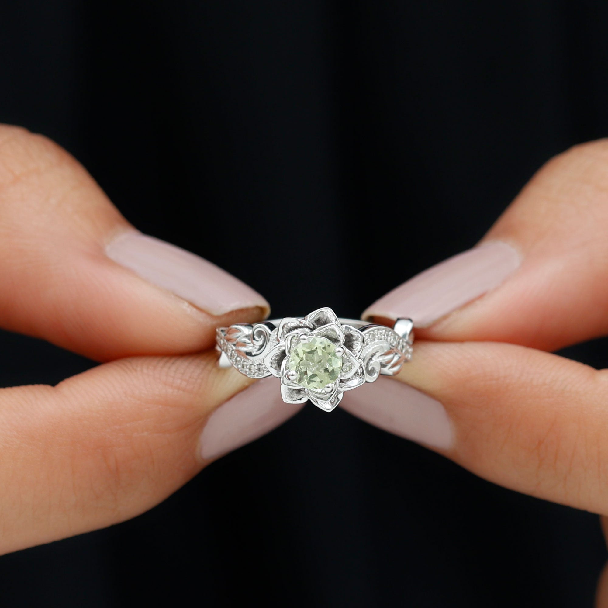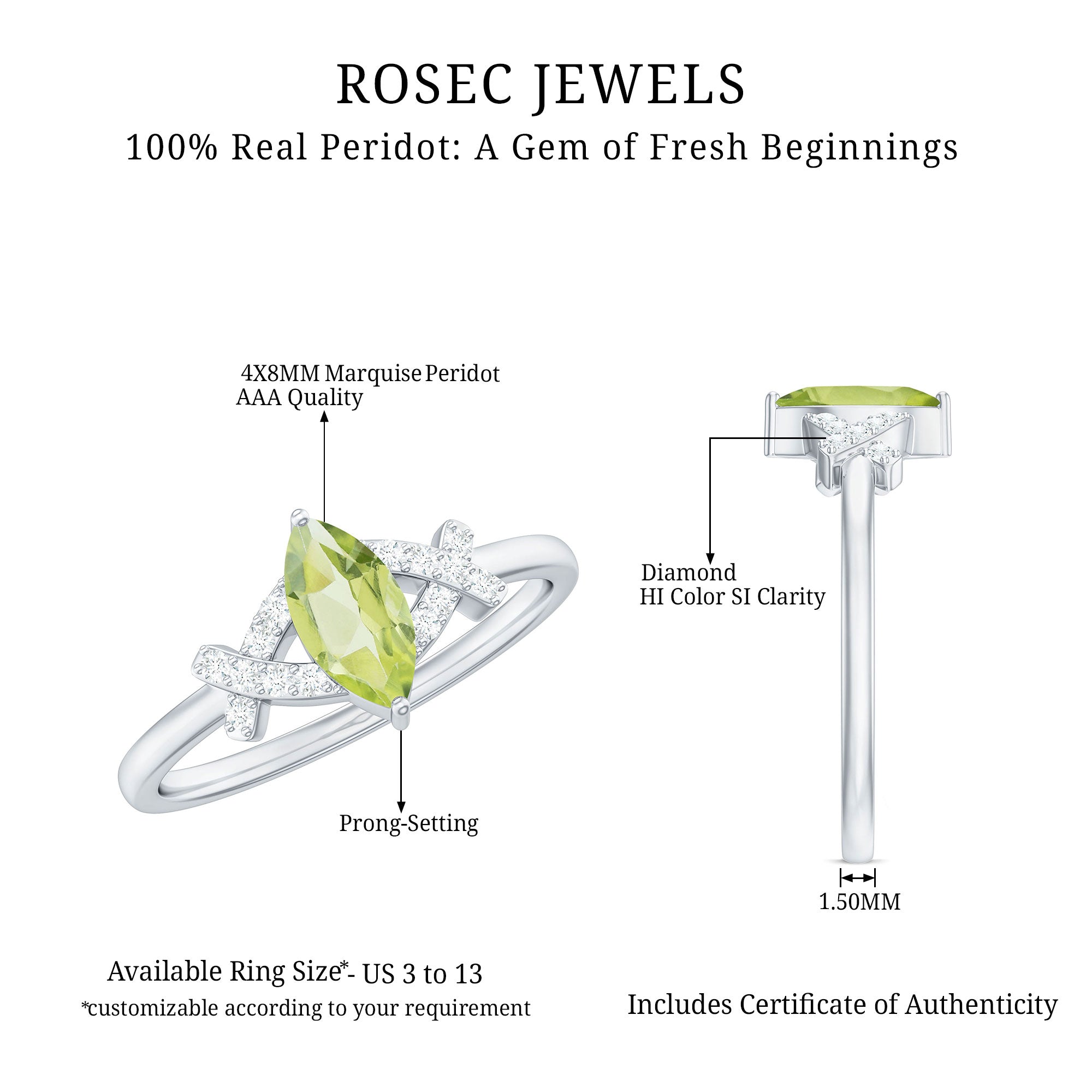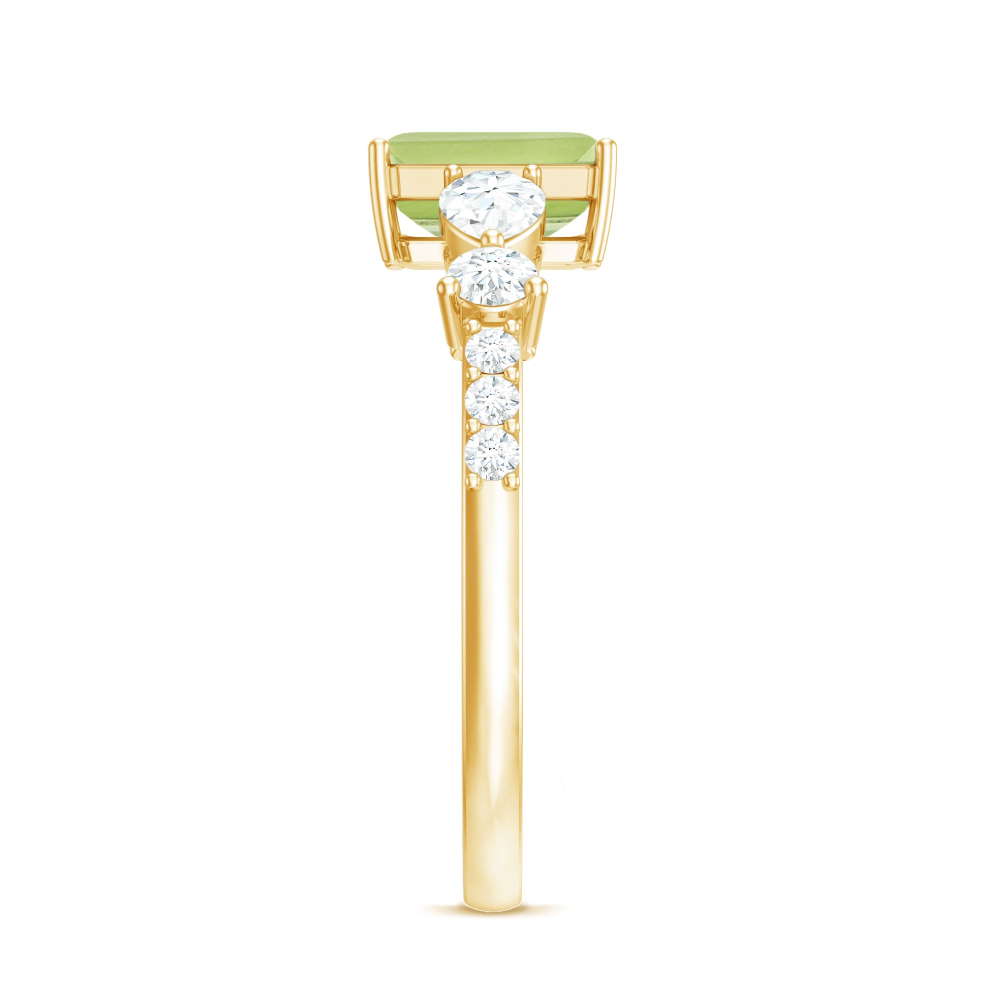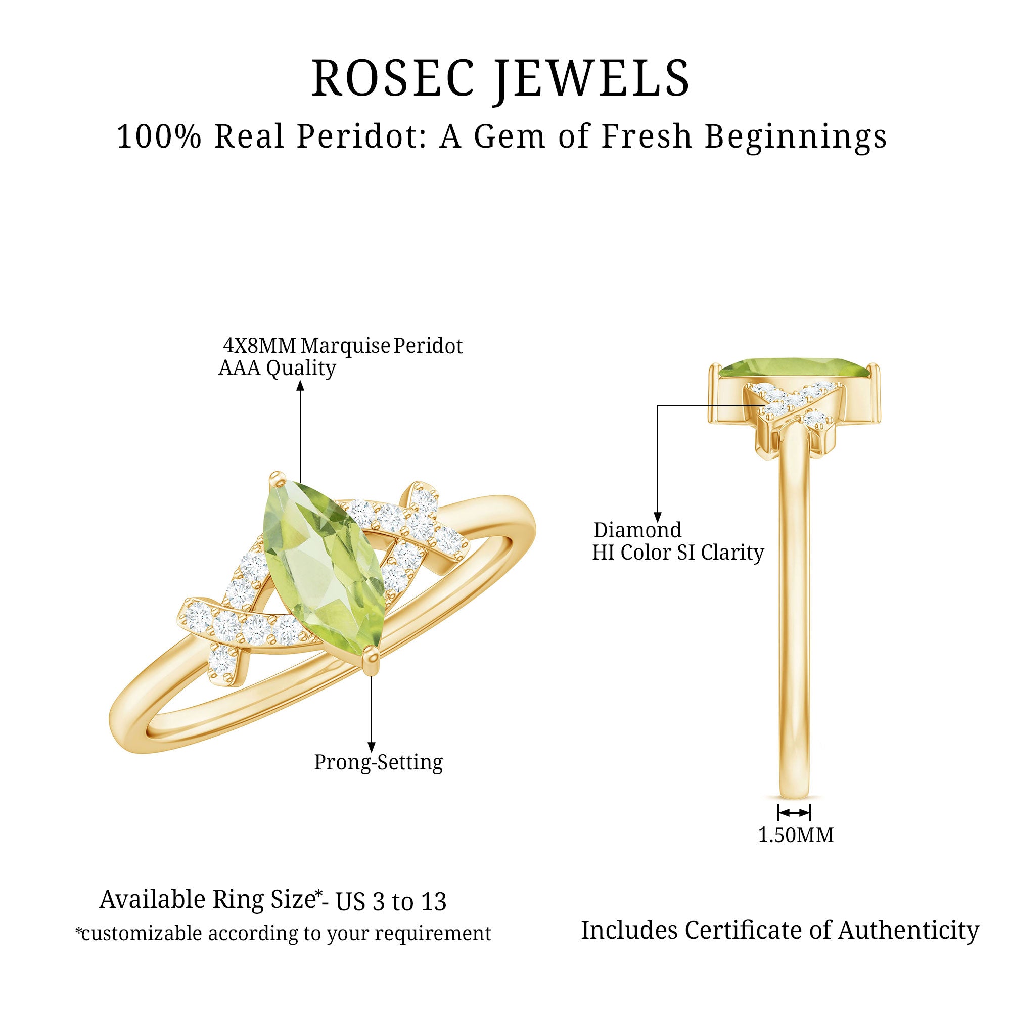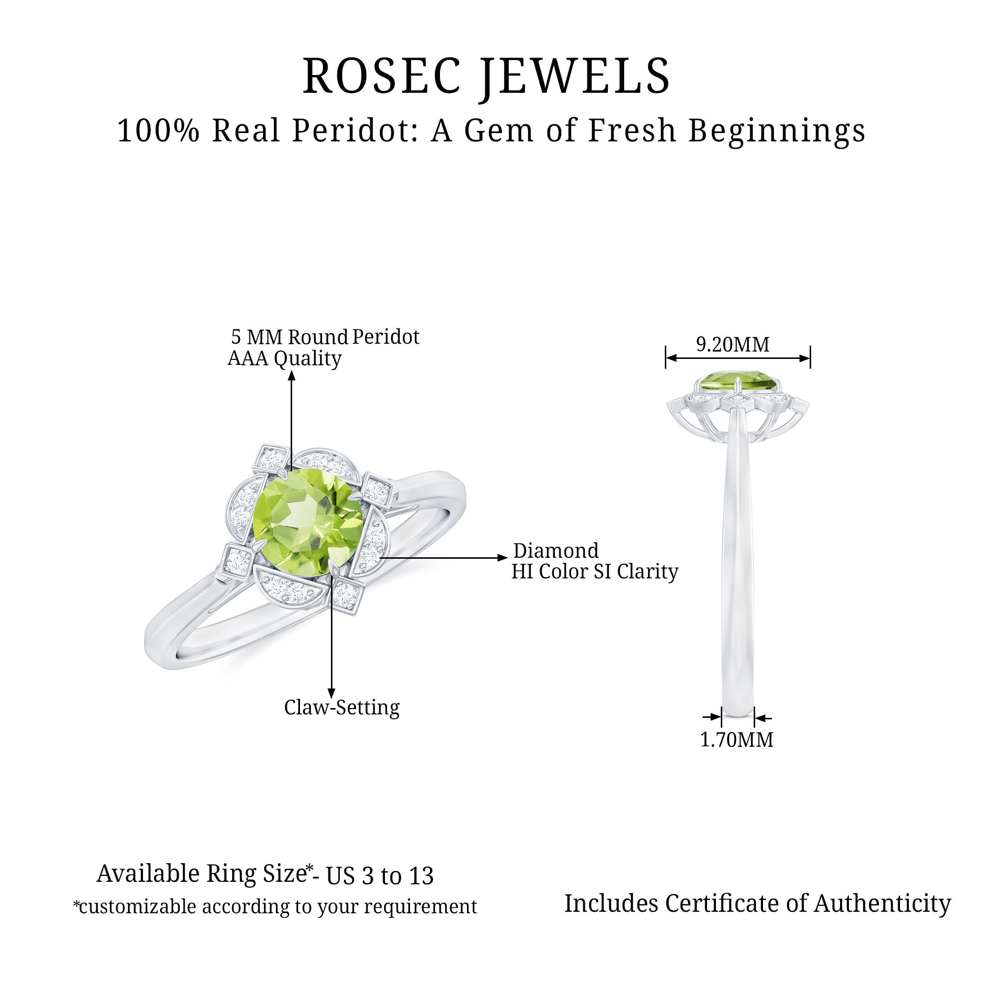 Held in high regard as one of the most classic Peridot Engagement Rings out there, it is characterized by a solo centerpiece of Peridot that steals the limelight. It can also be labeled as the most versatile ring style since the Peridot Solitaire offers you a sea of options in terms of aesthetics, be it the classic Round Peridot Rings offering a traditional aesthetic, the ones fashioned with Pear, Marquise, and Princess exuding an unconventional touch, or Asscher and Emerald Cut Peridot Rings for that perfect vintage vibe.